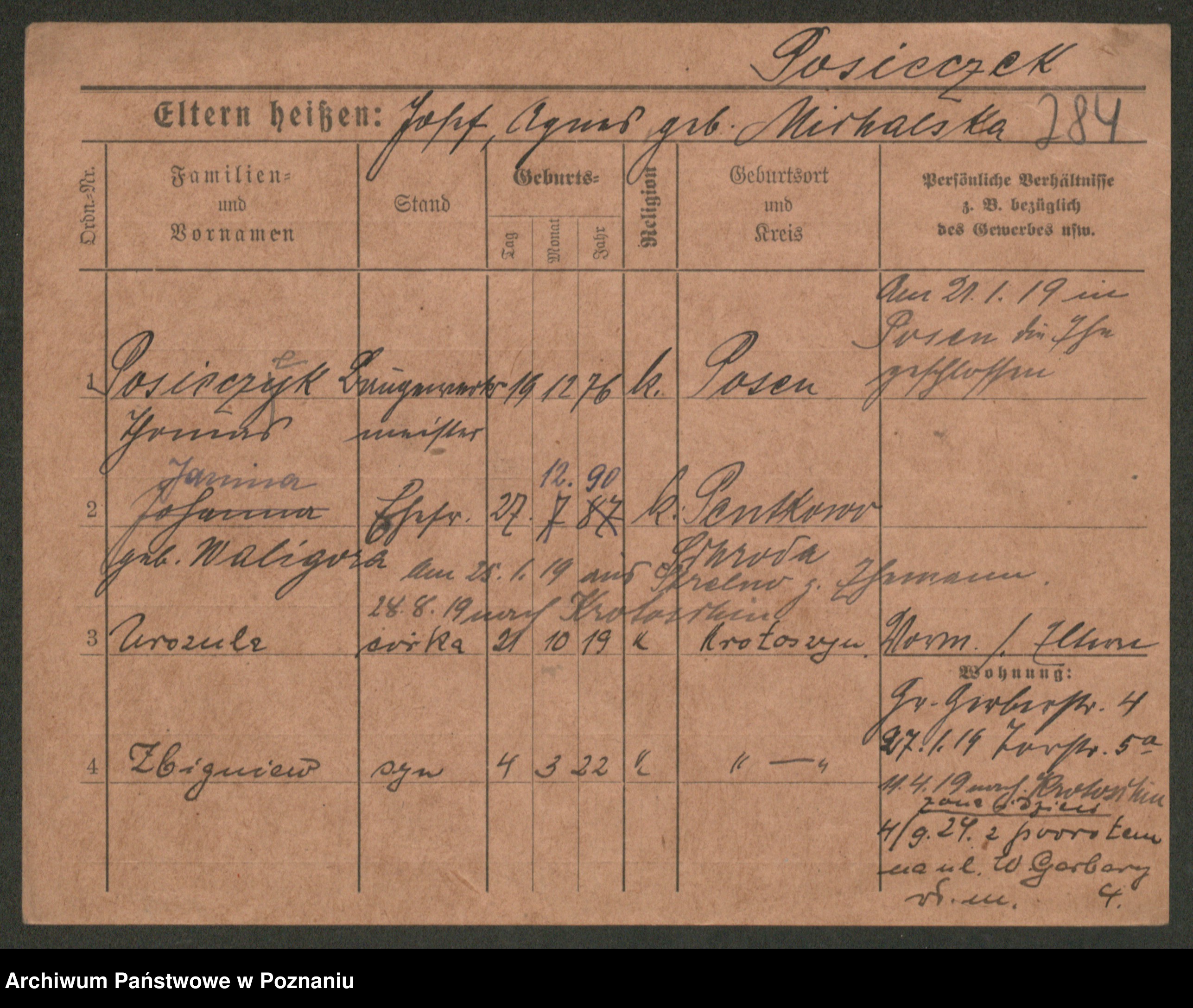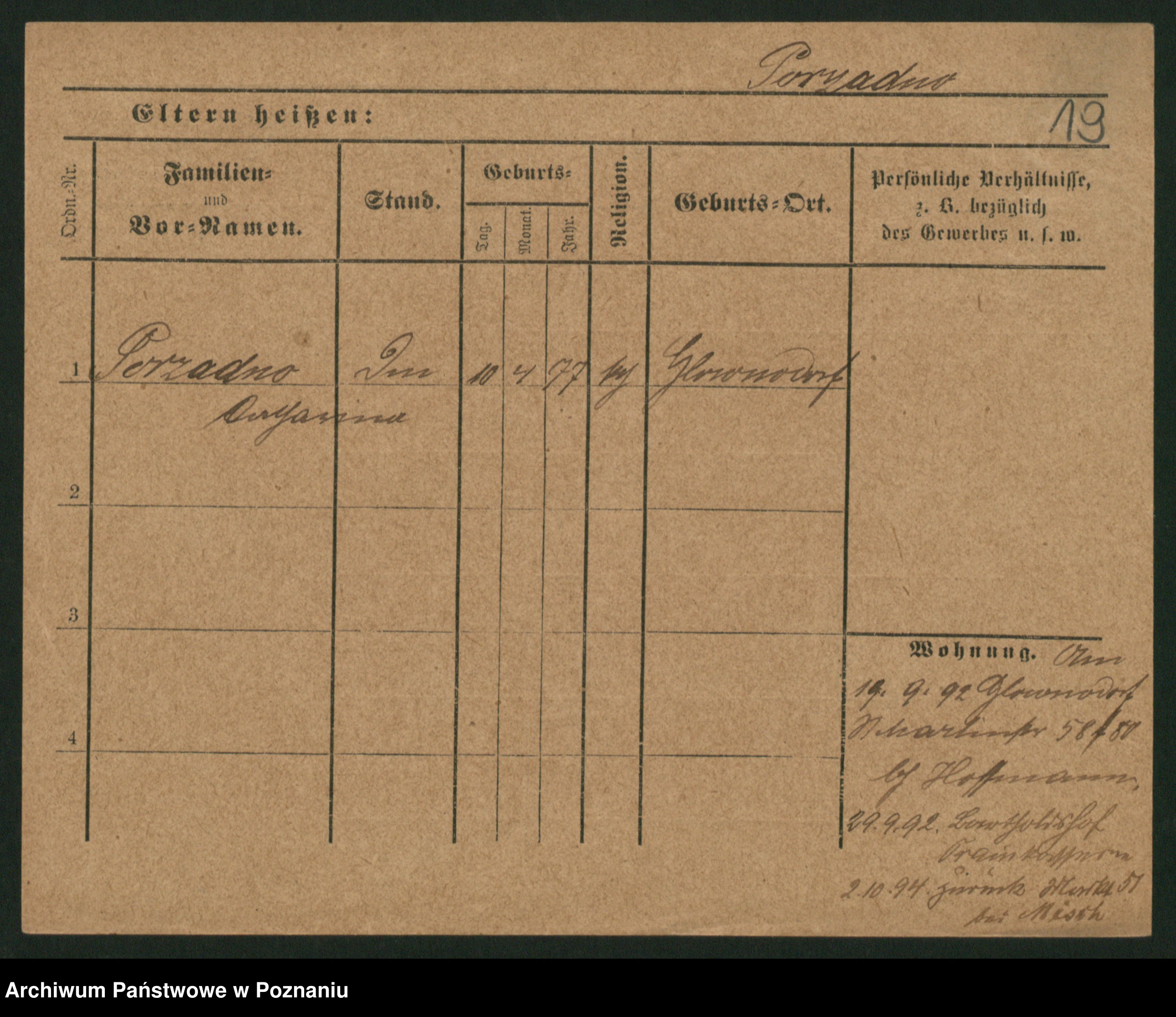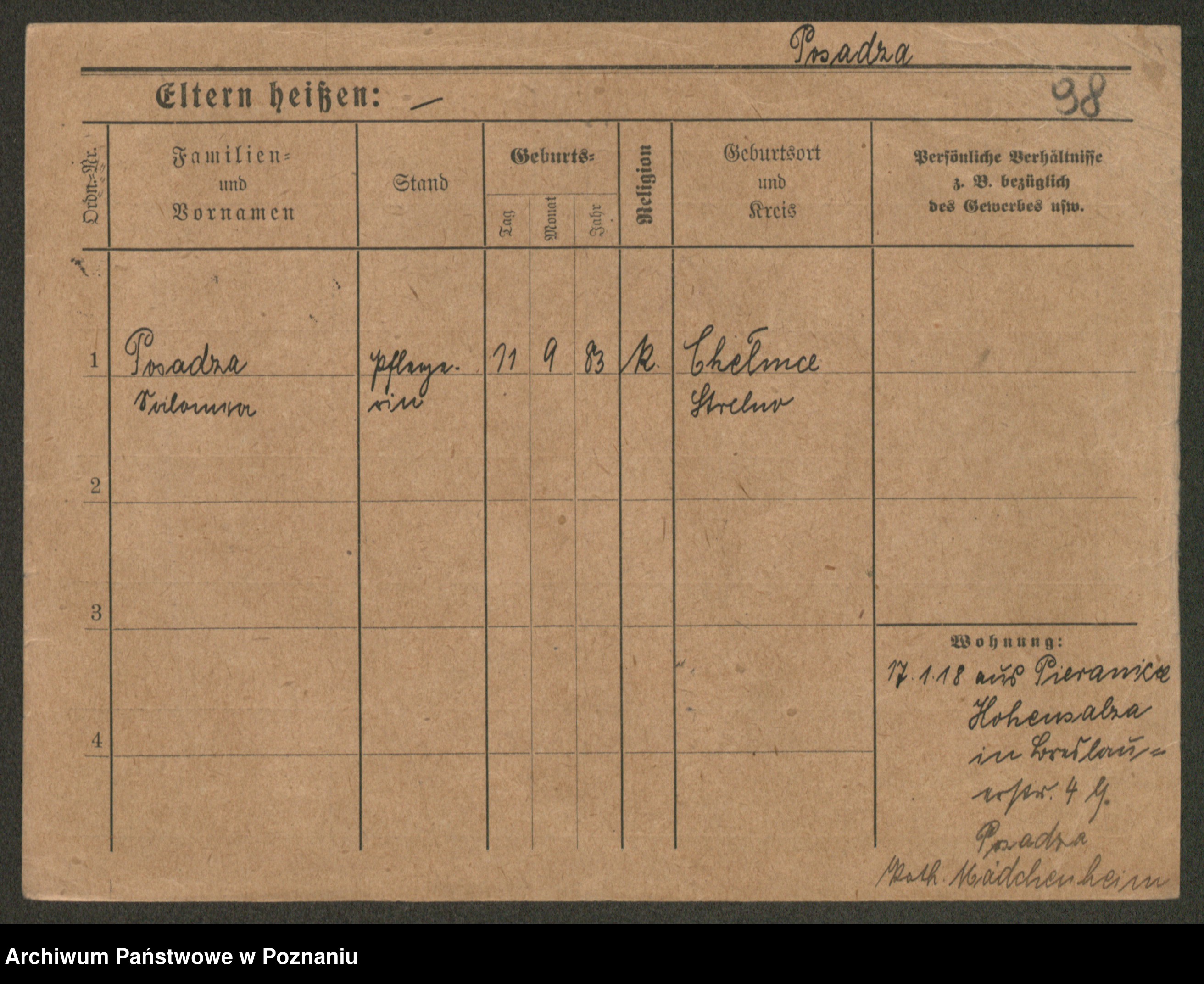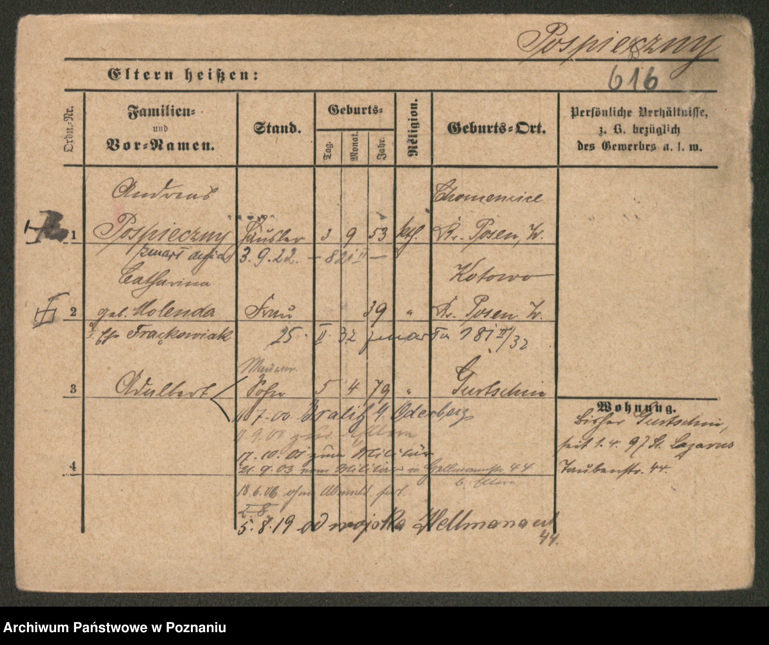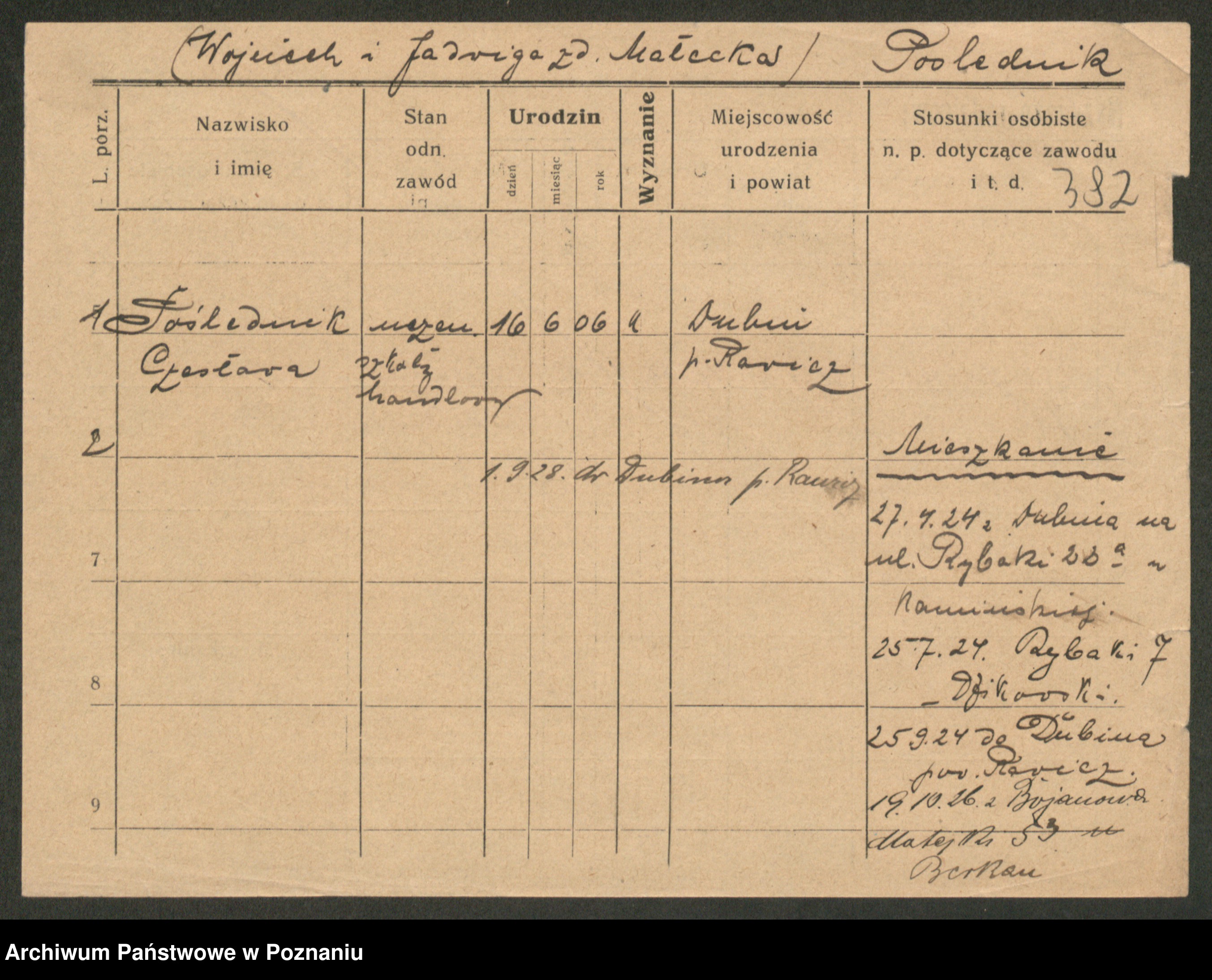 Post z d. Ptasinska, Antonina