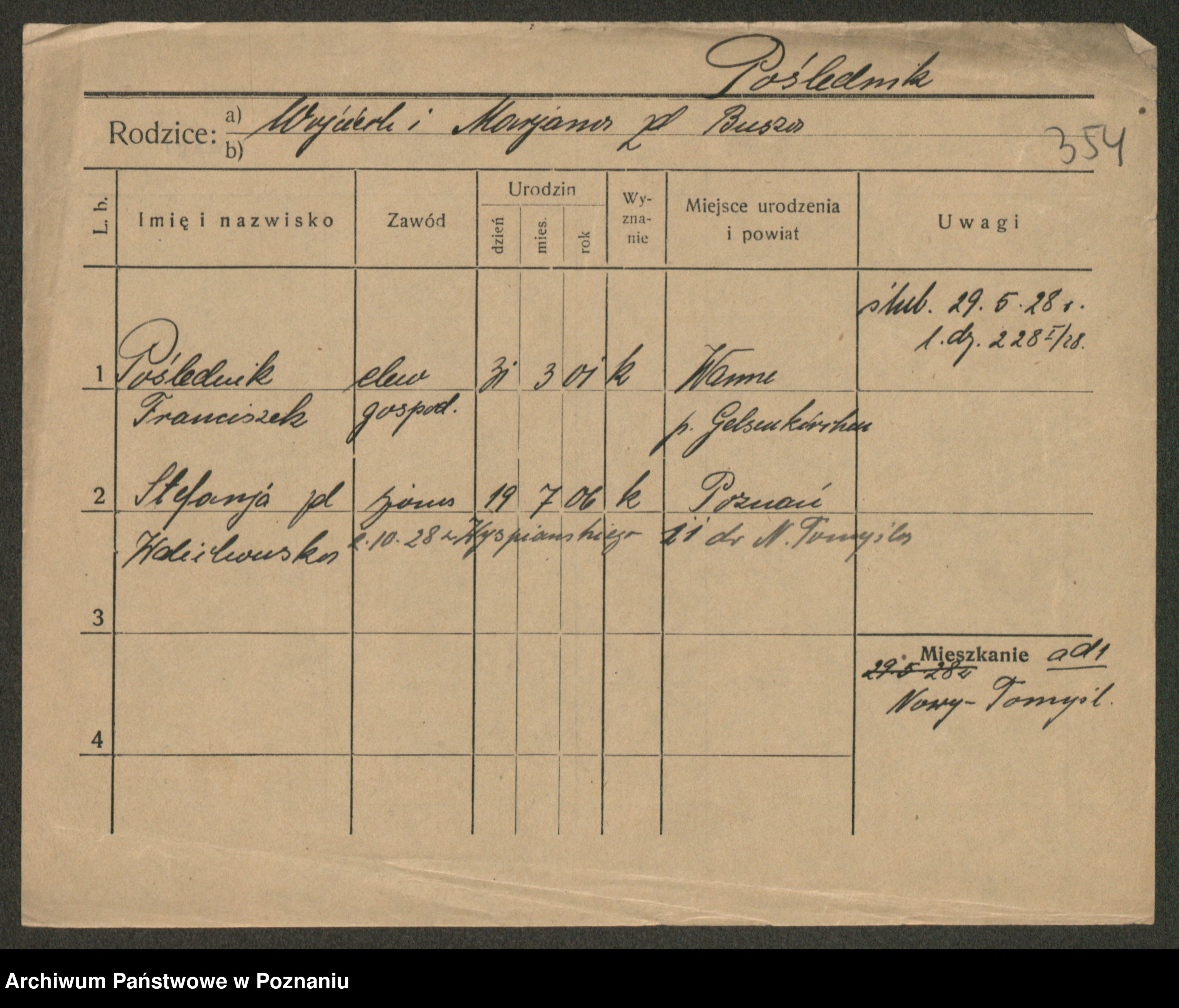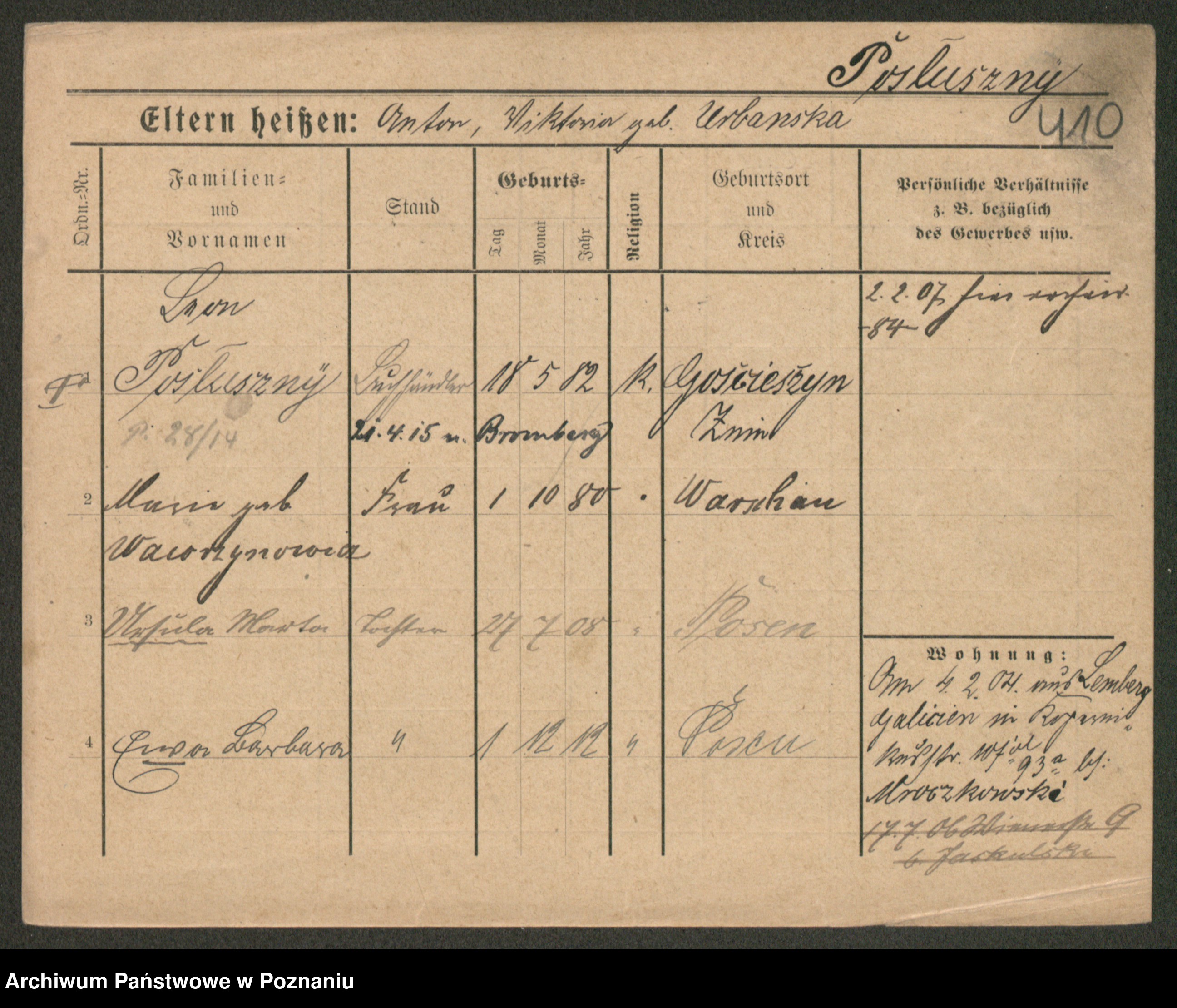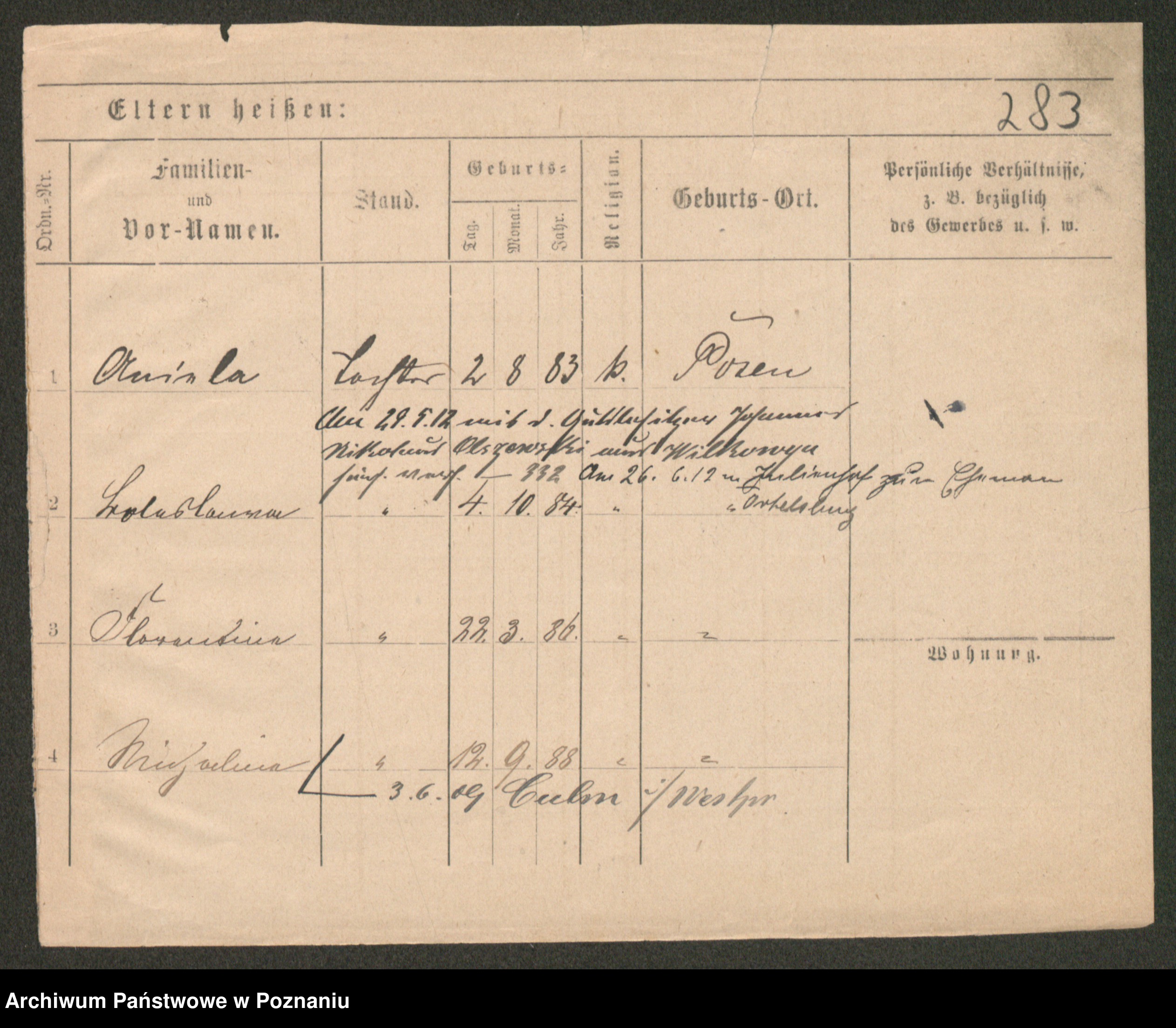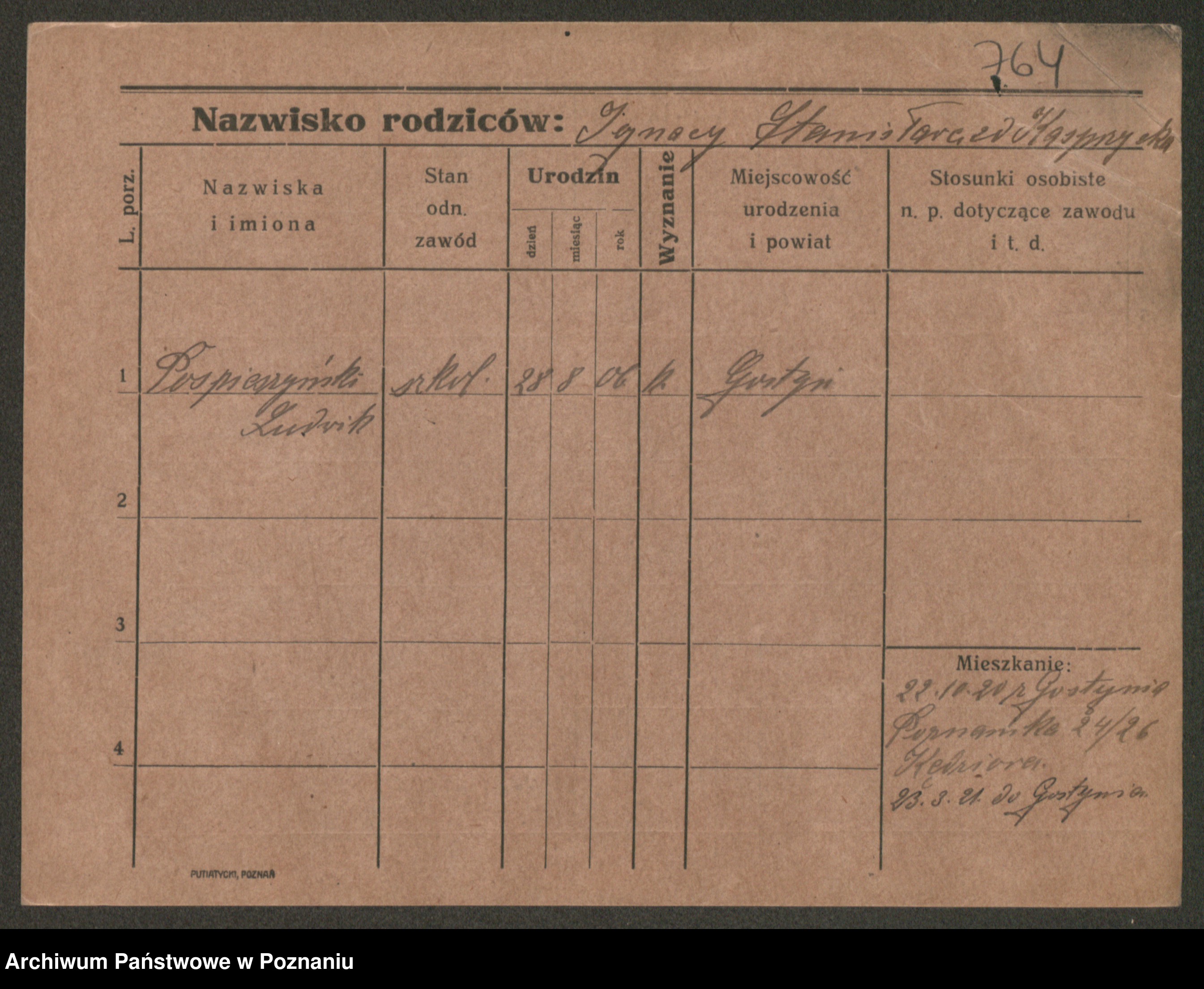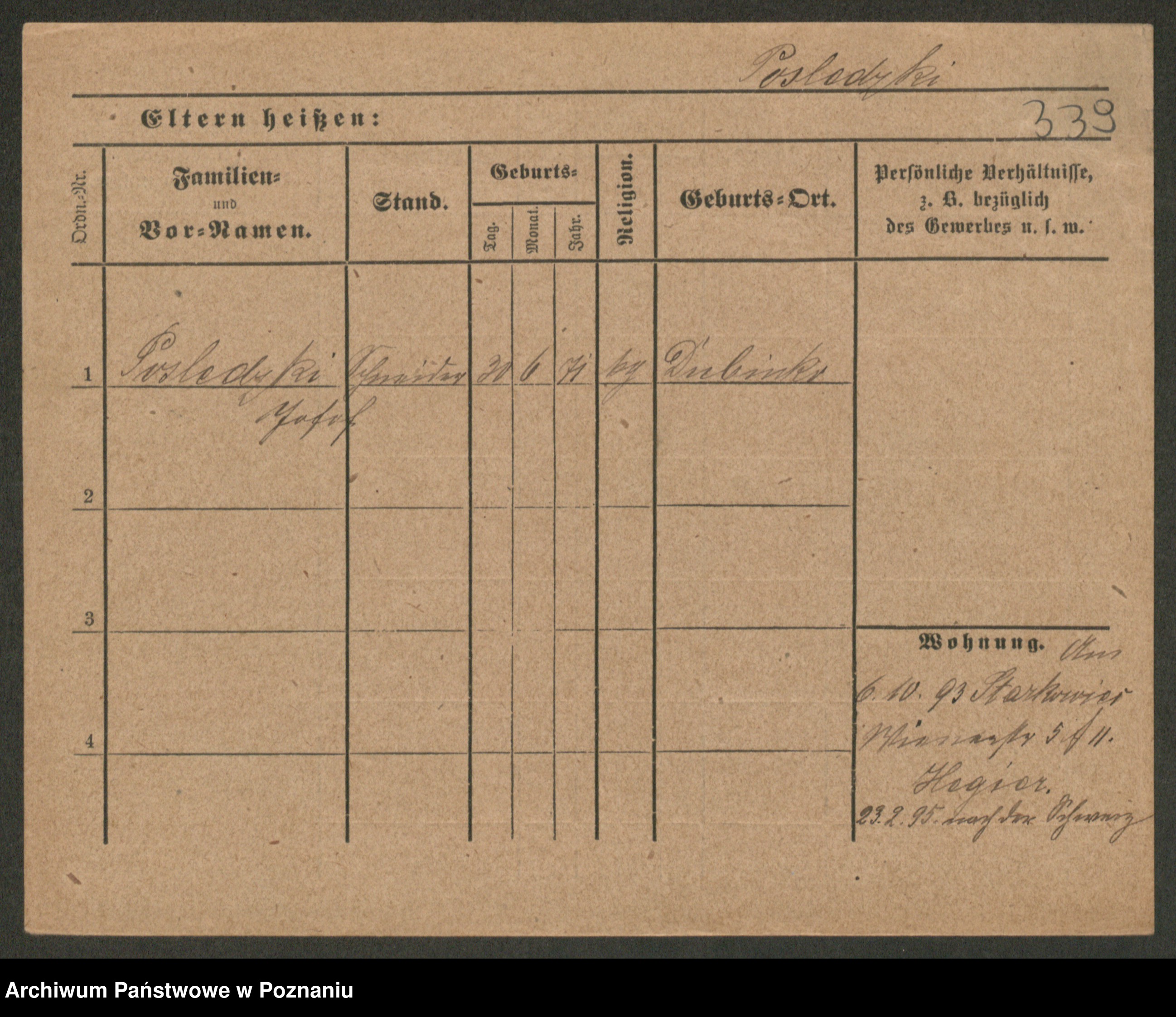 Post z d. Ptasinska, Antonina