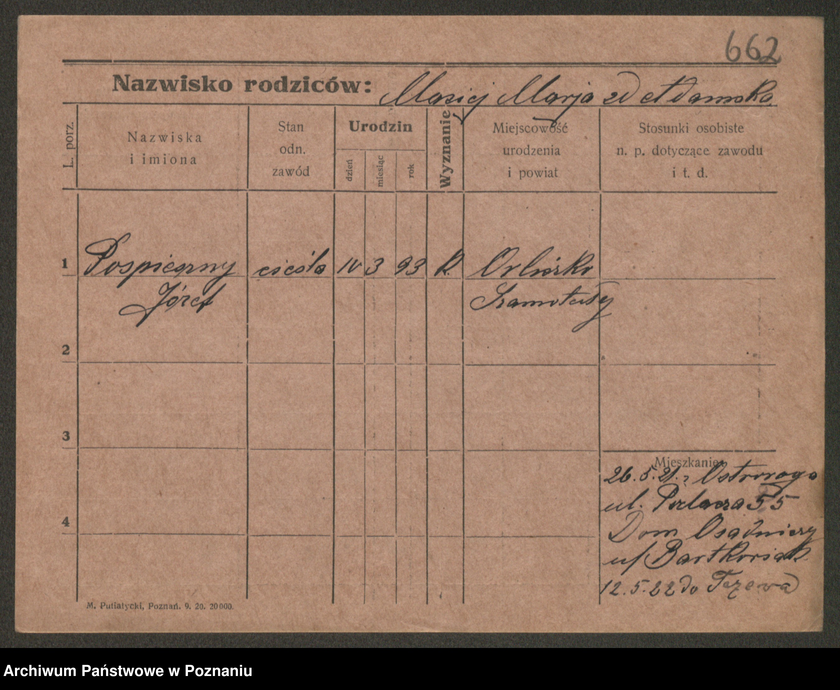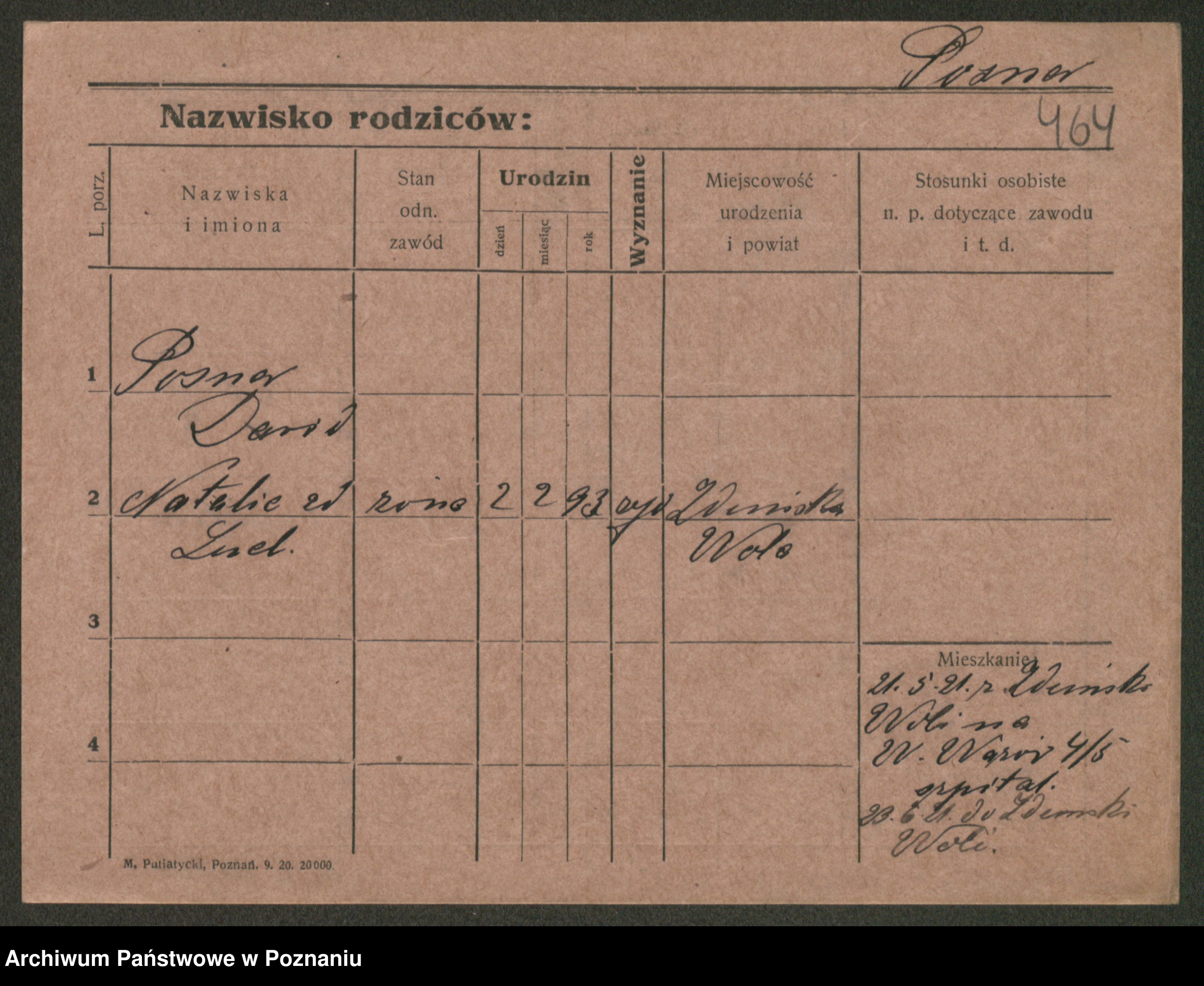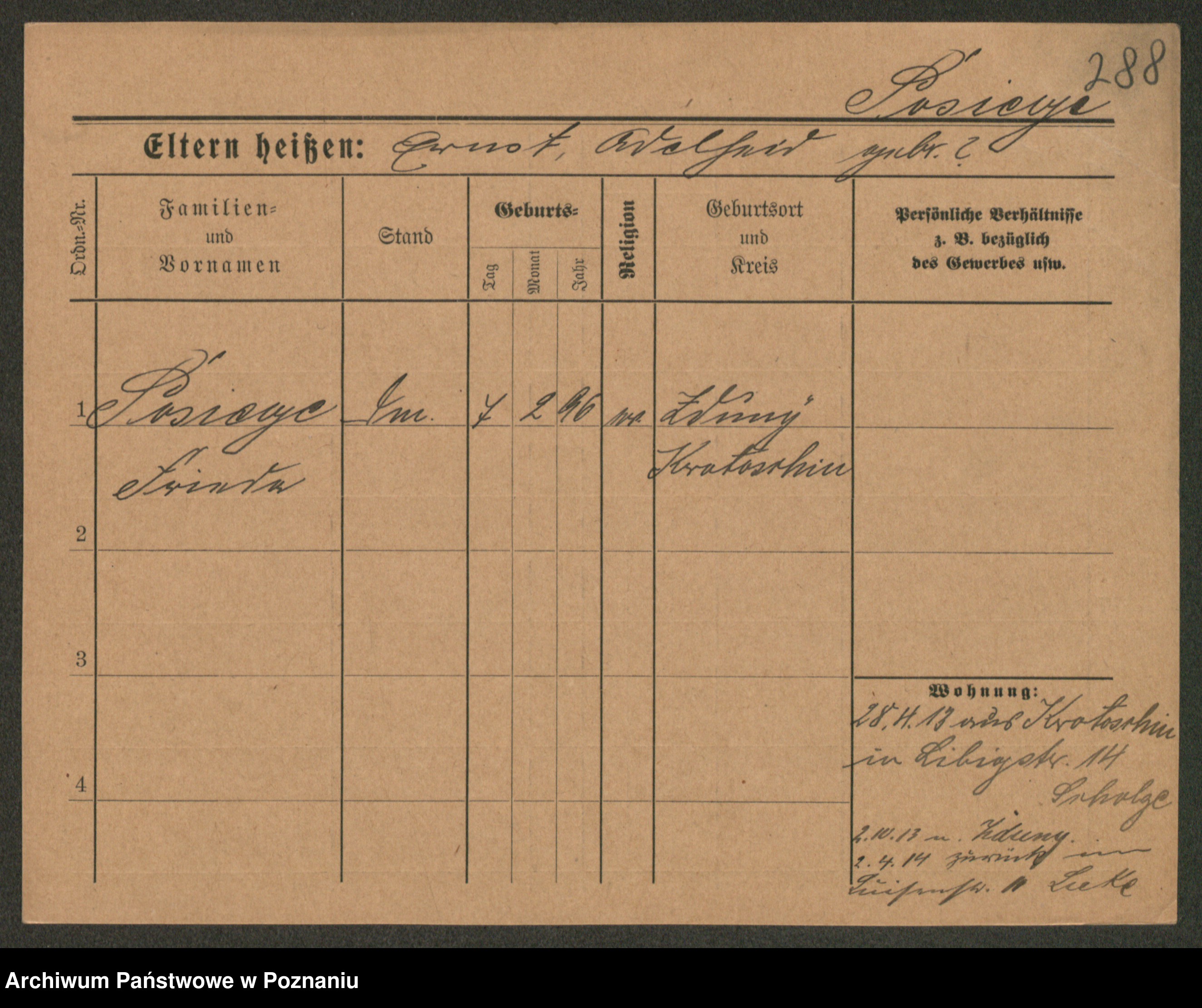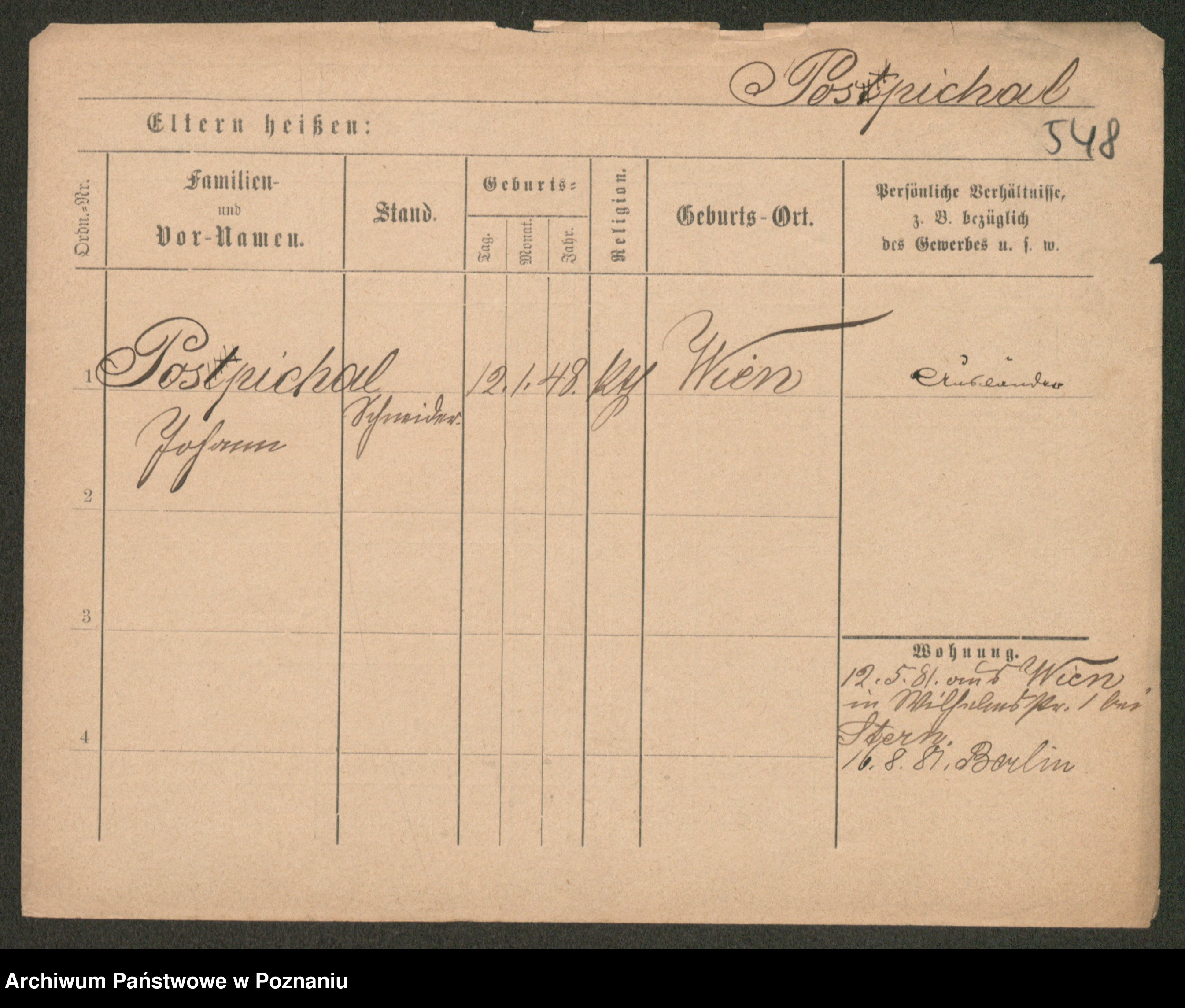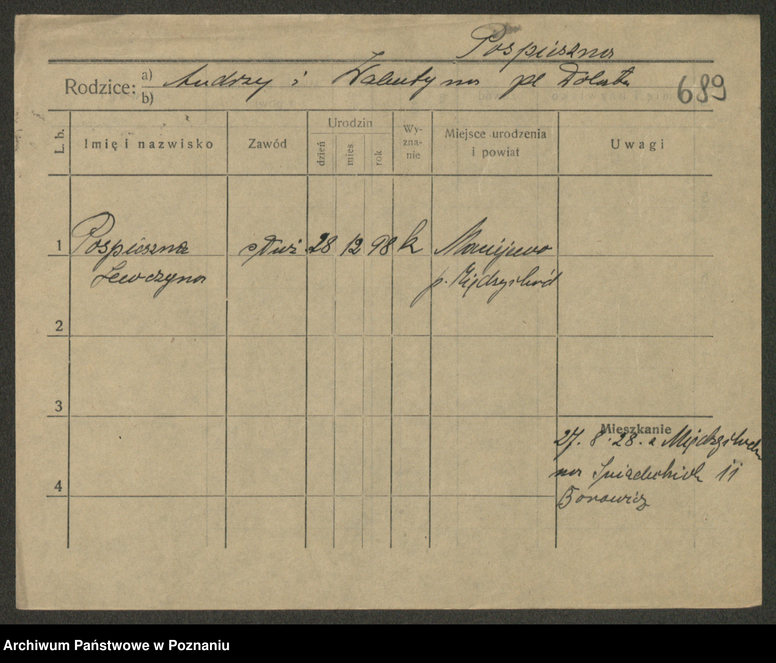Post z d. Ptasinska, Antonina