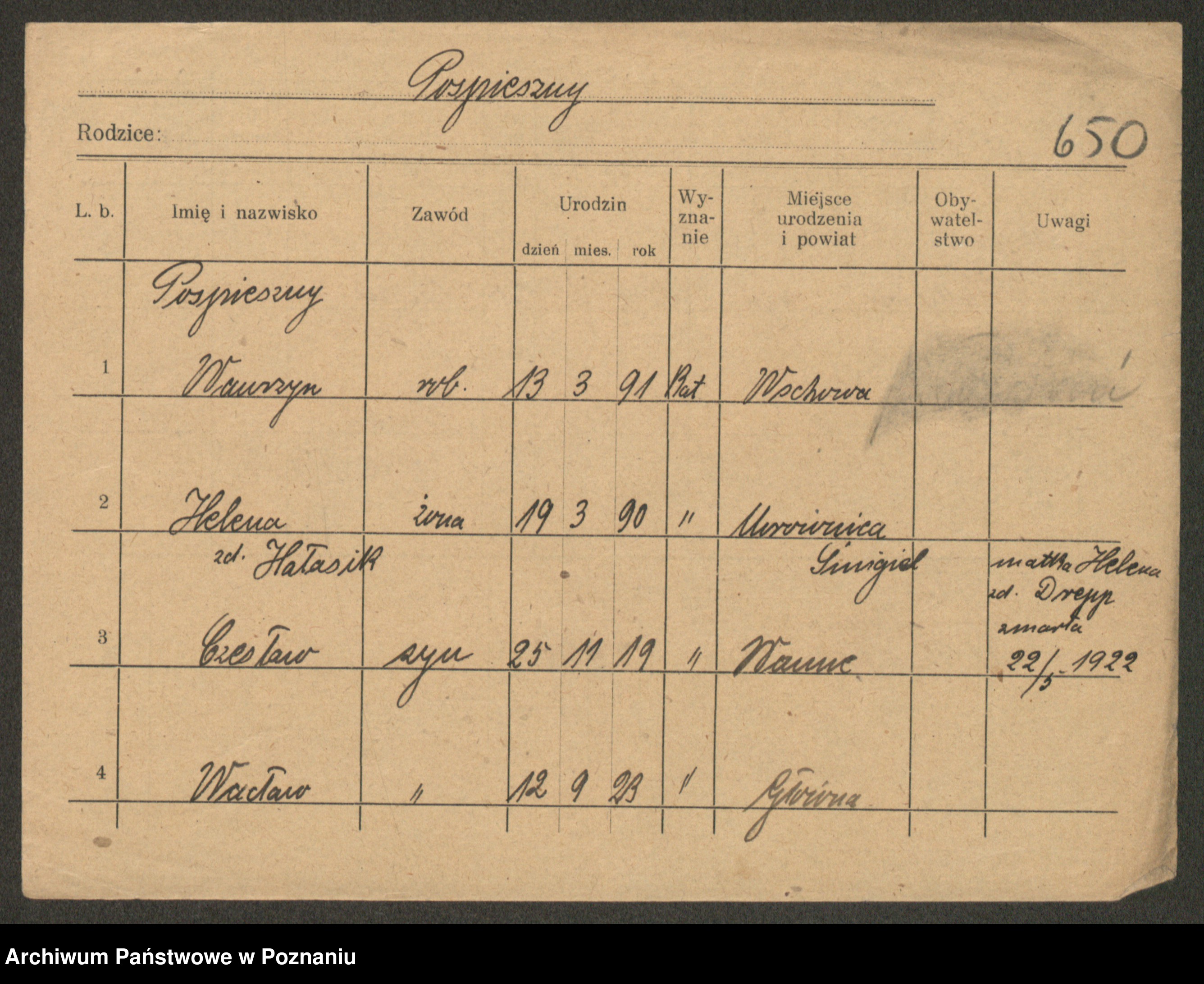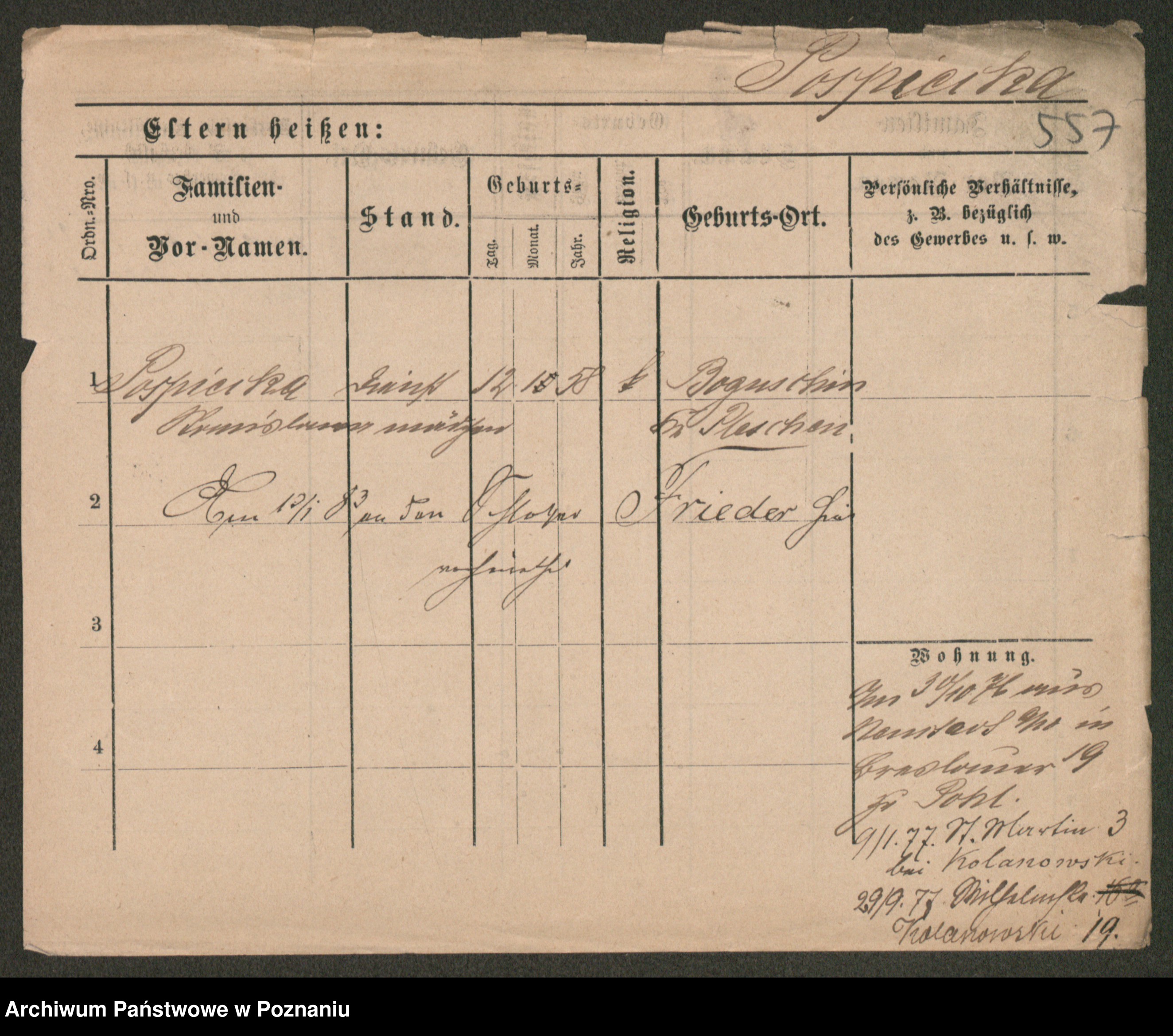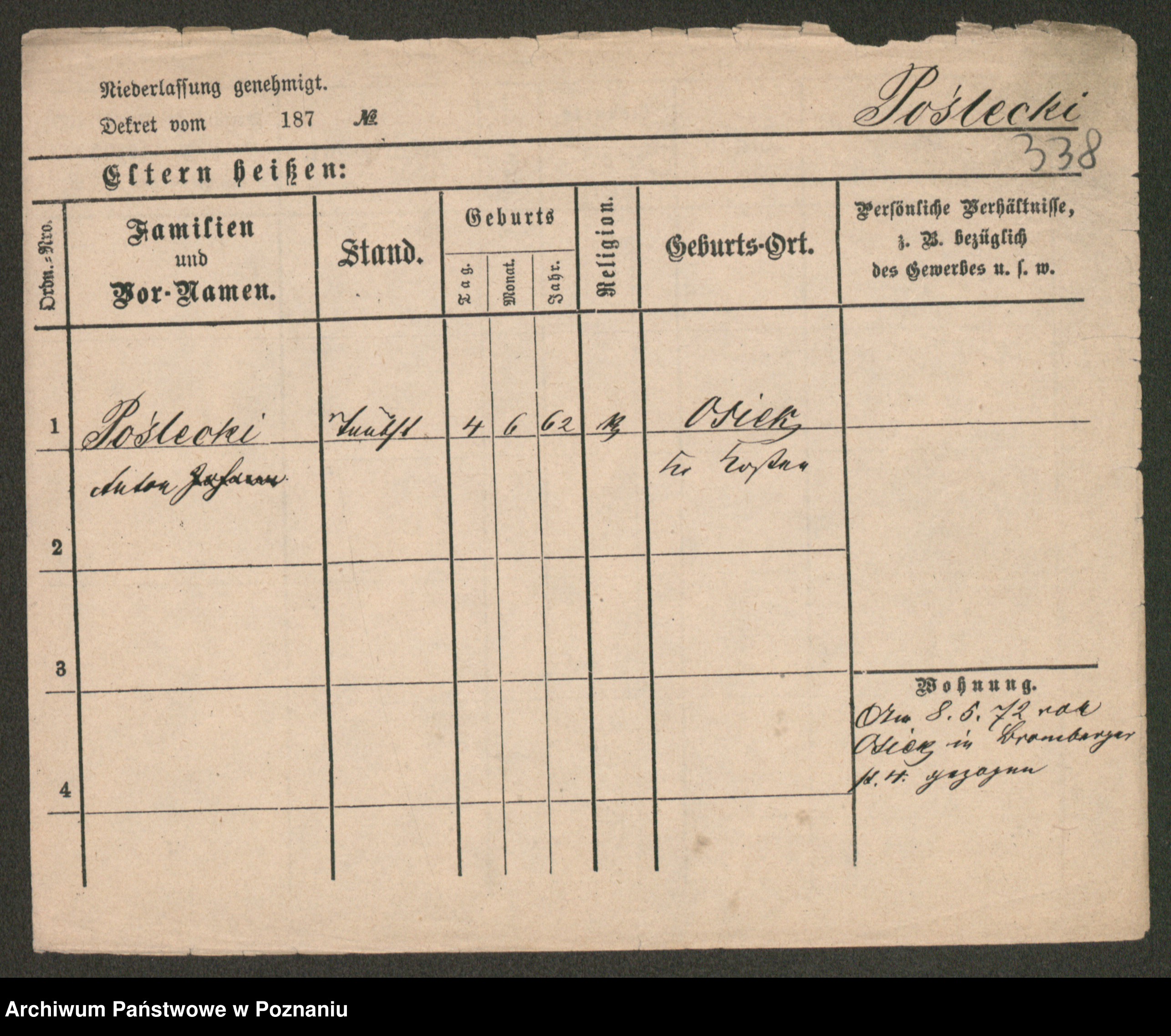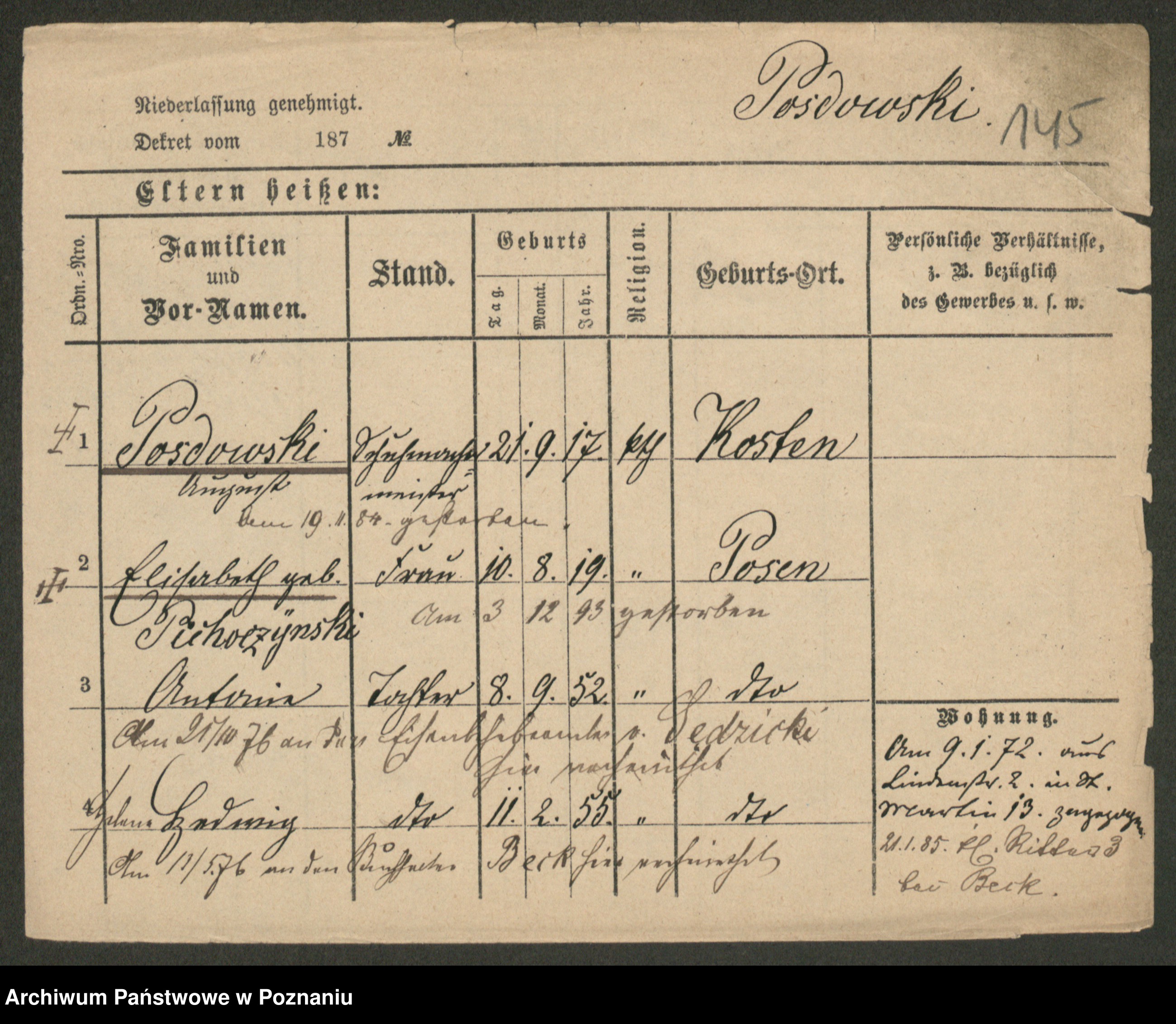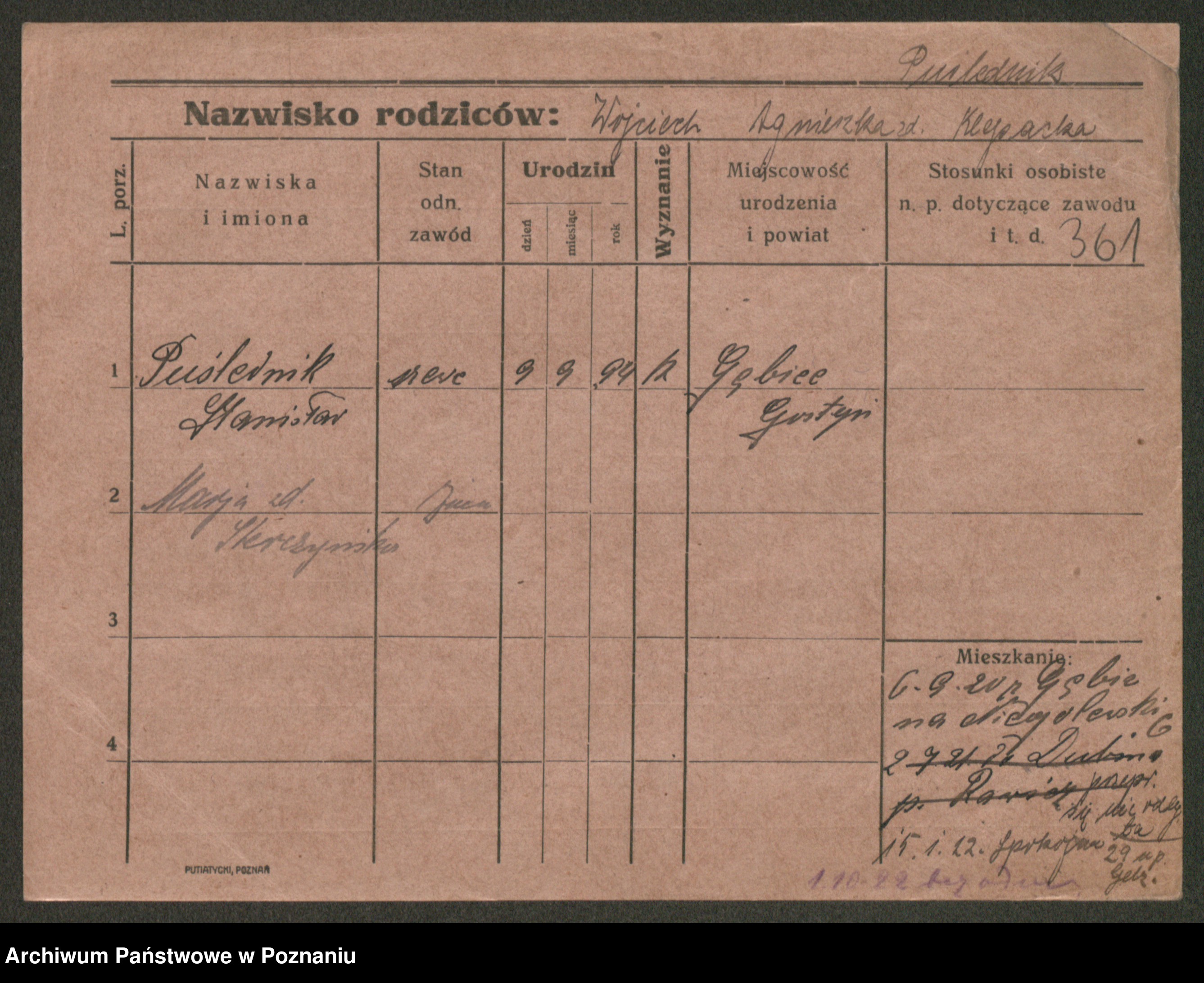 Post z d. Ptasinska, Antonina