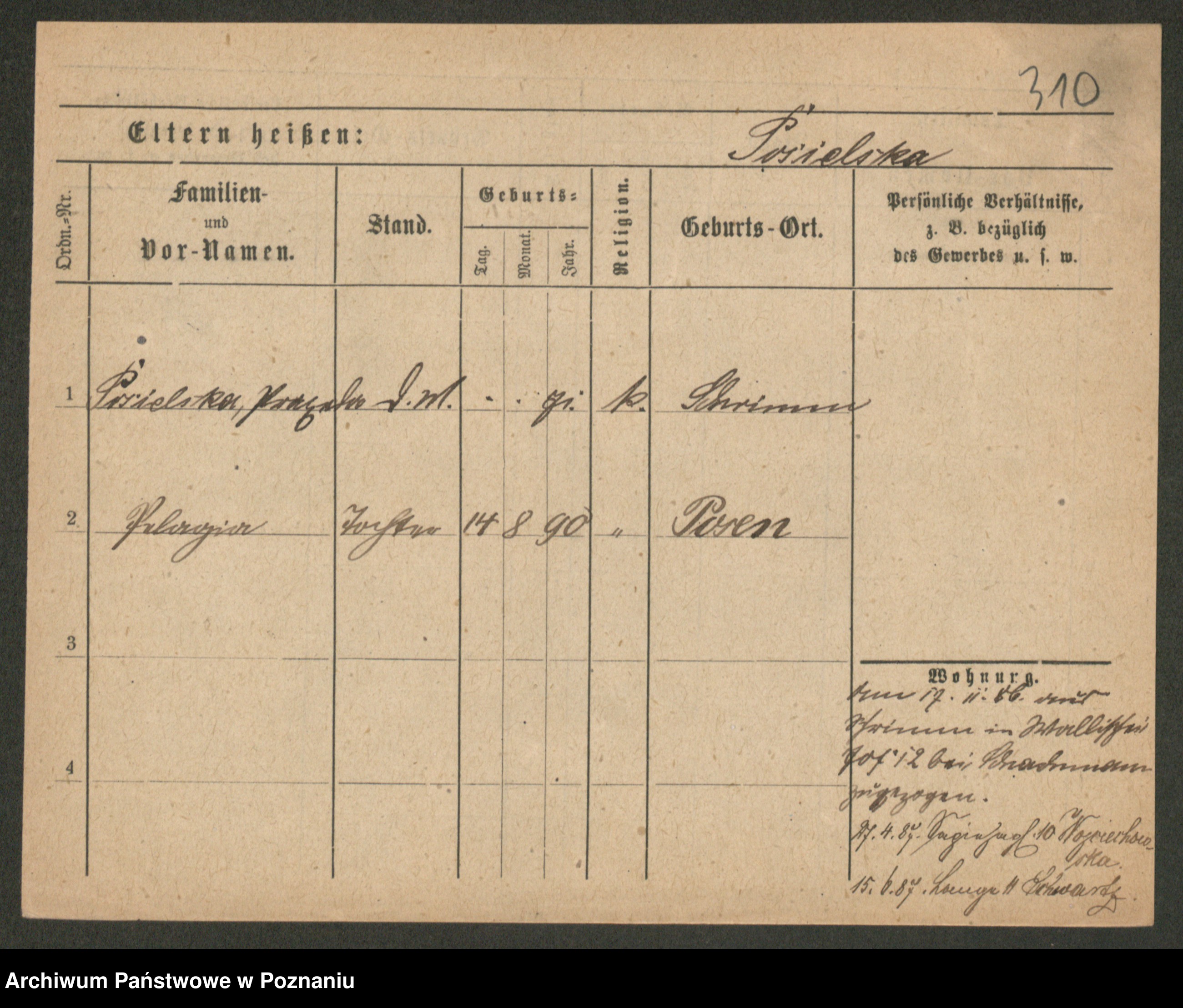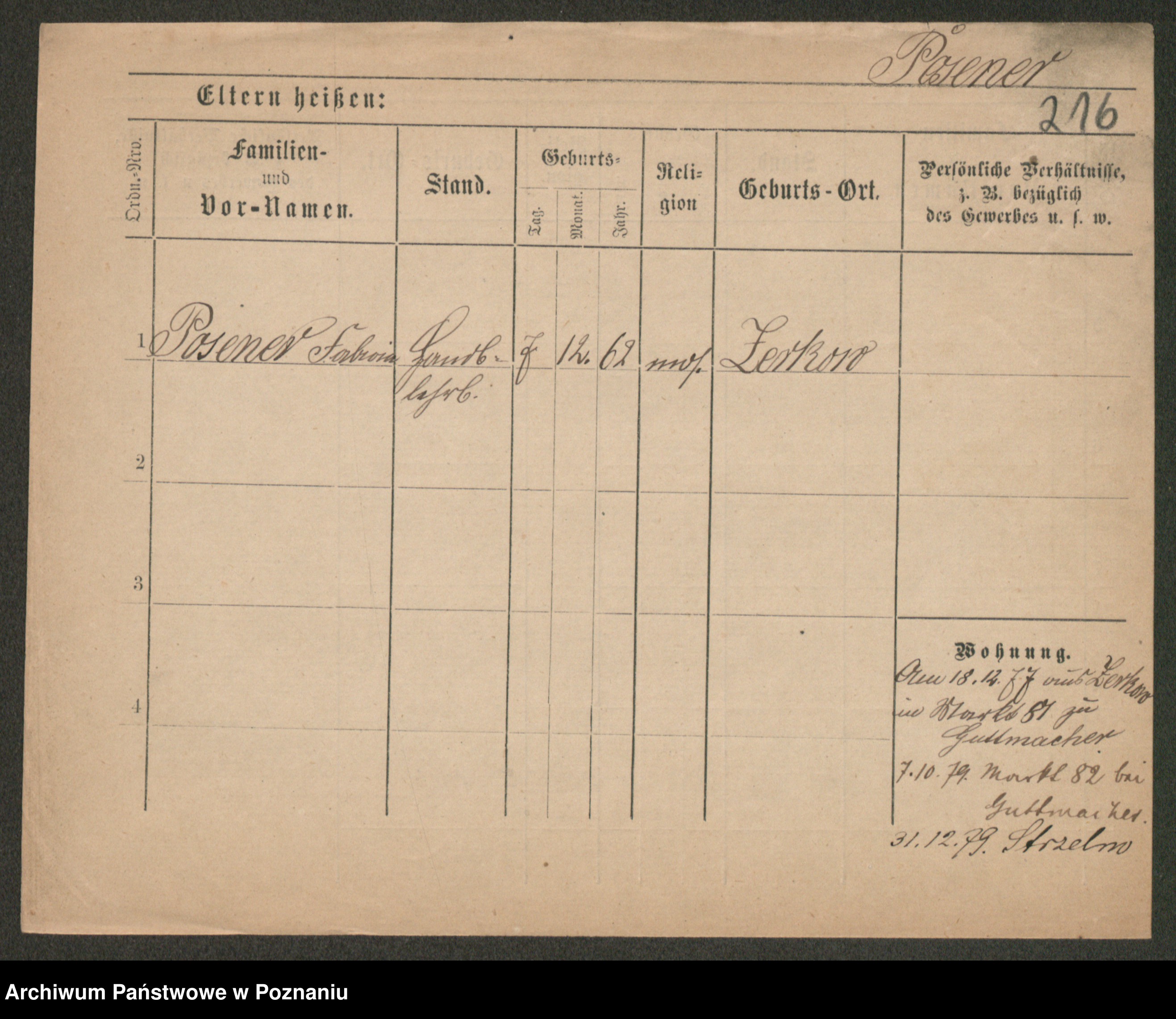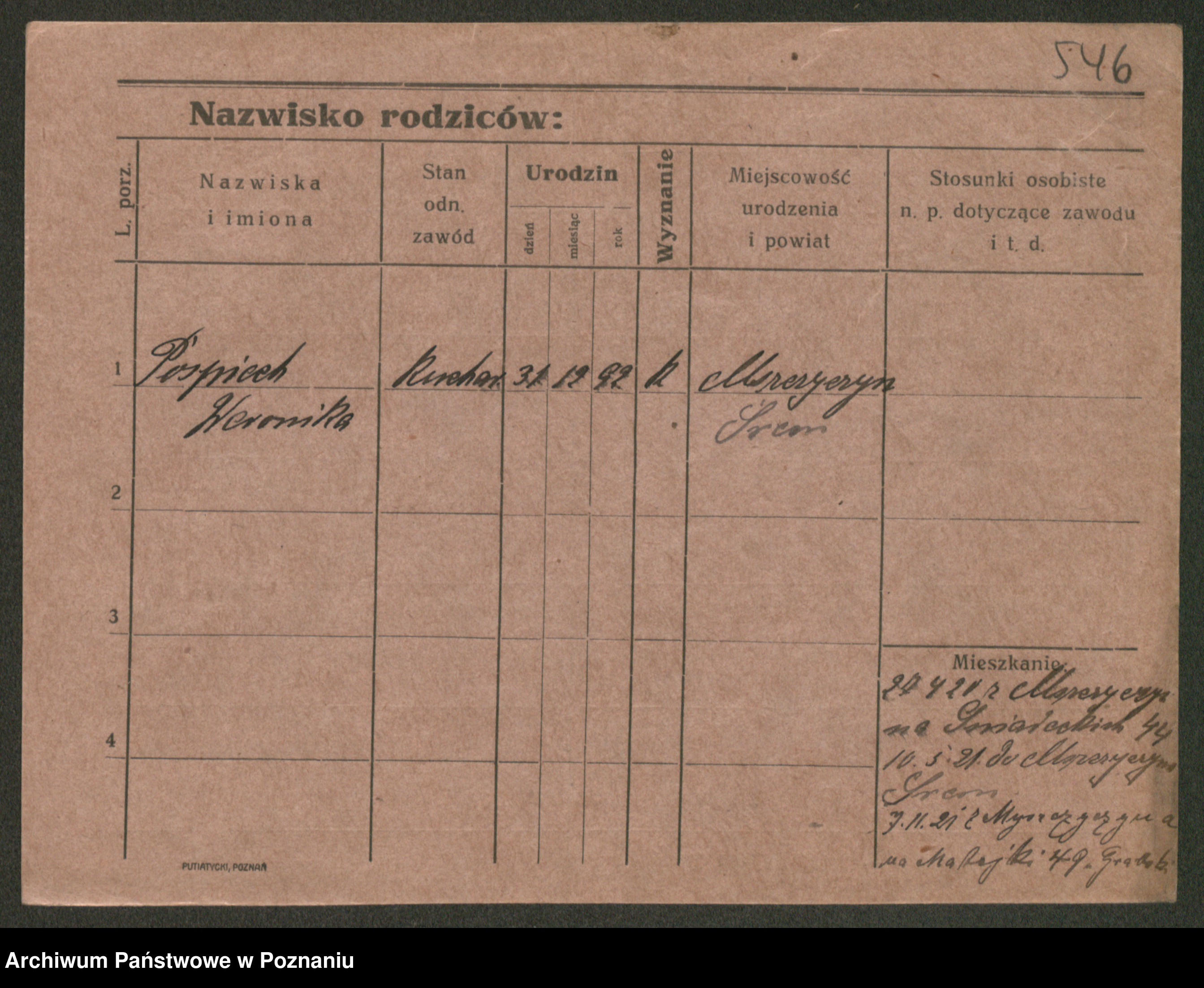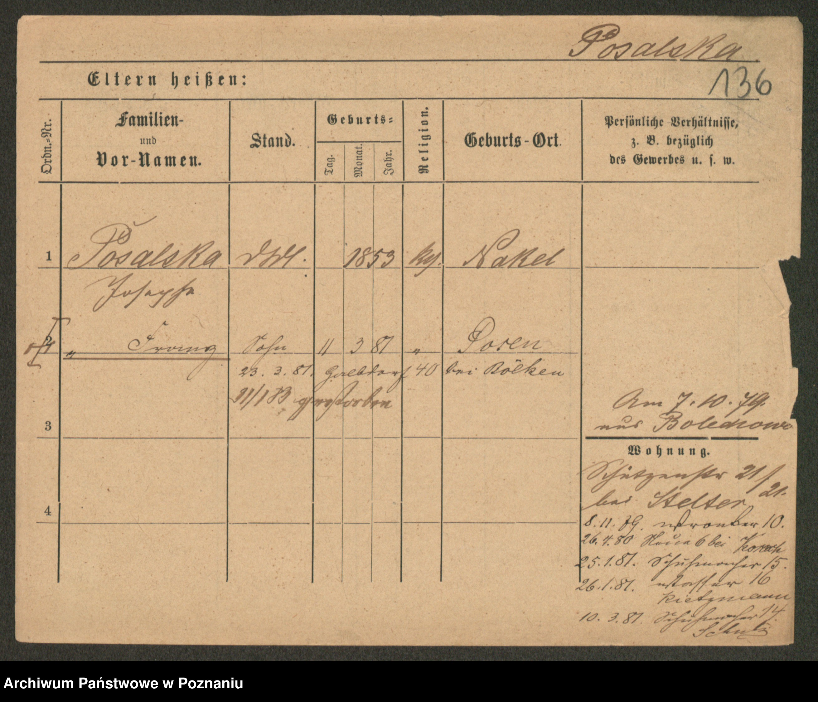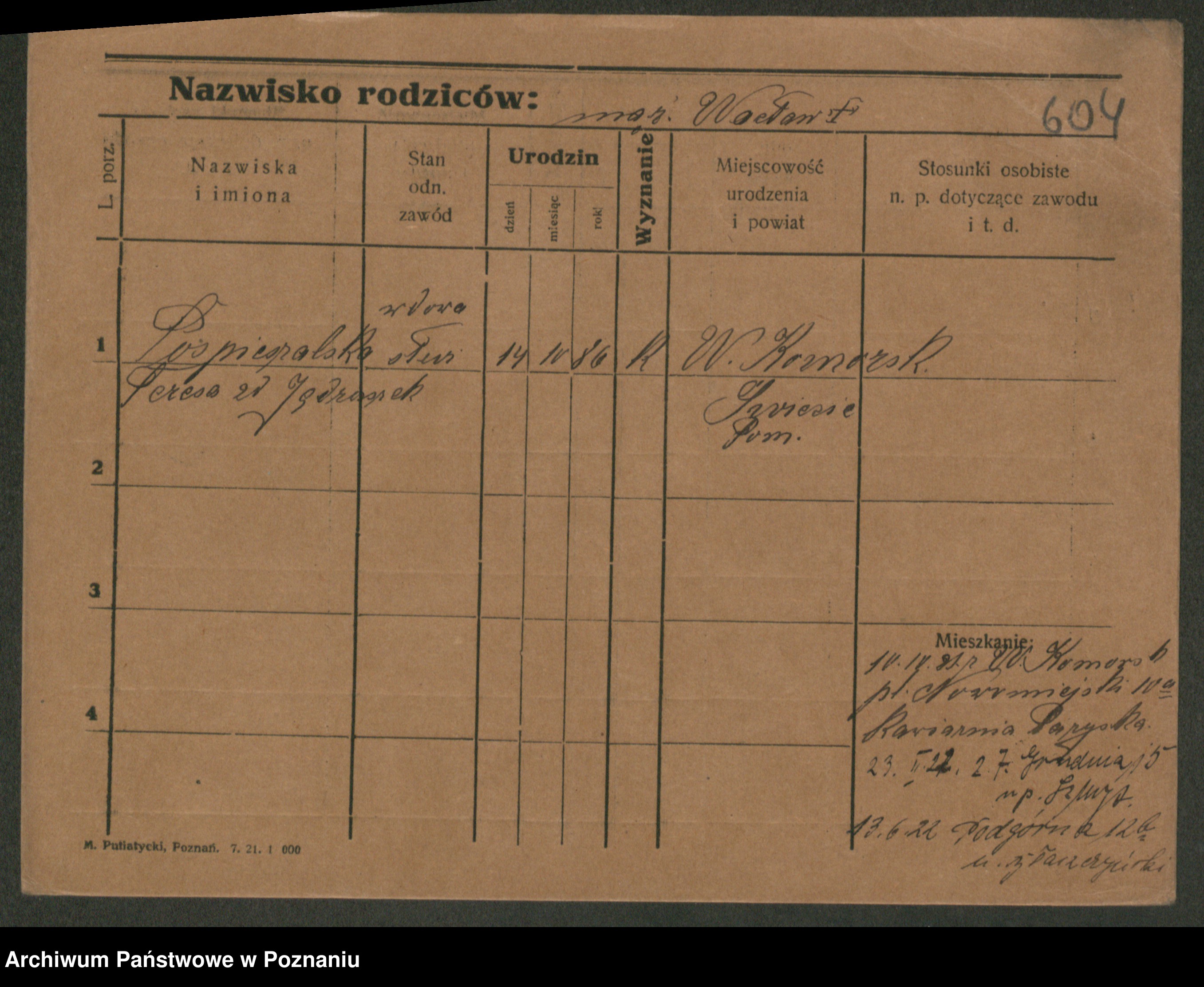 Post z d. Ptasinska, Antonina