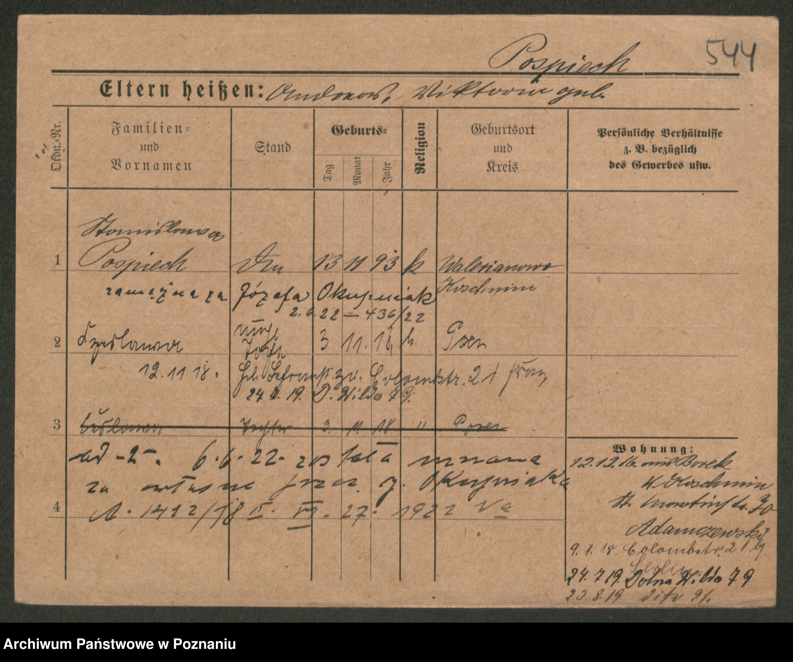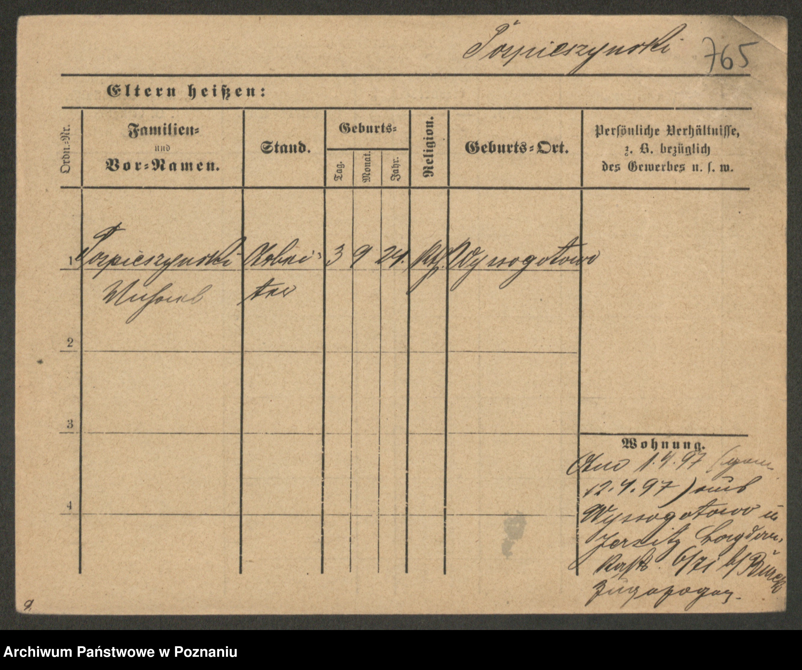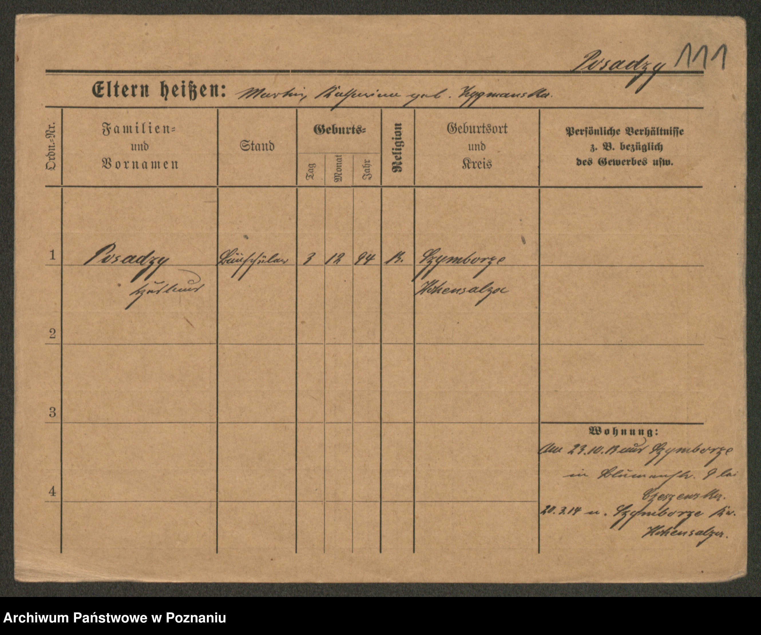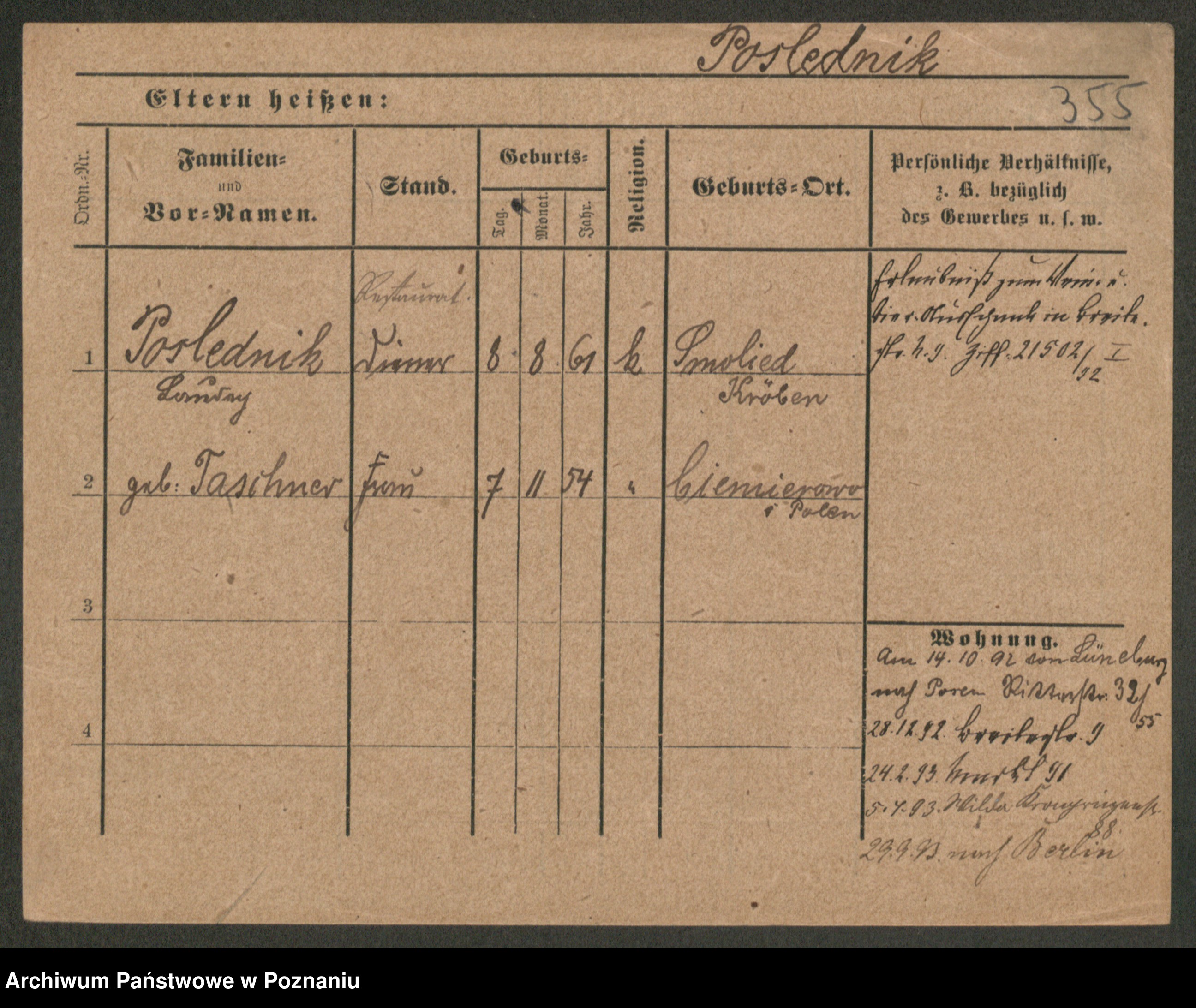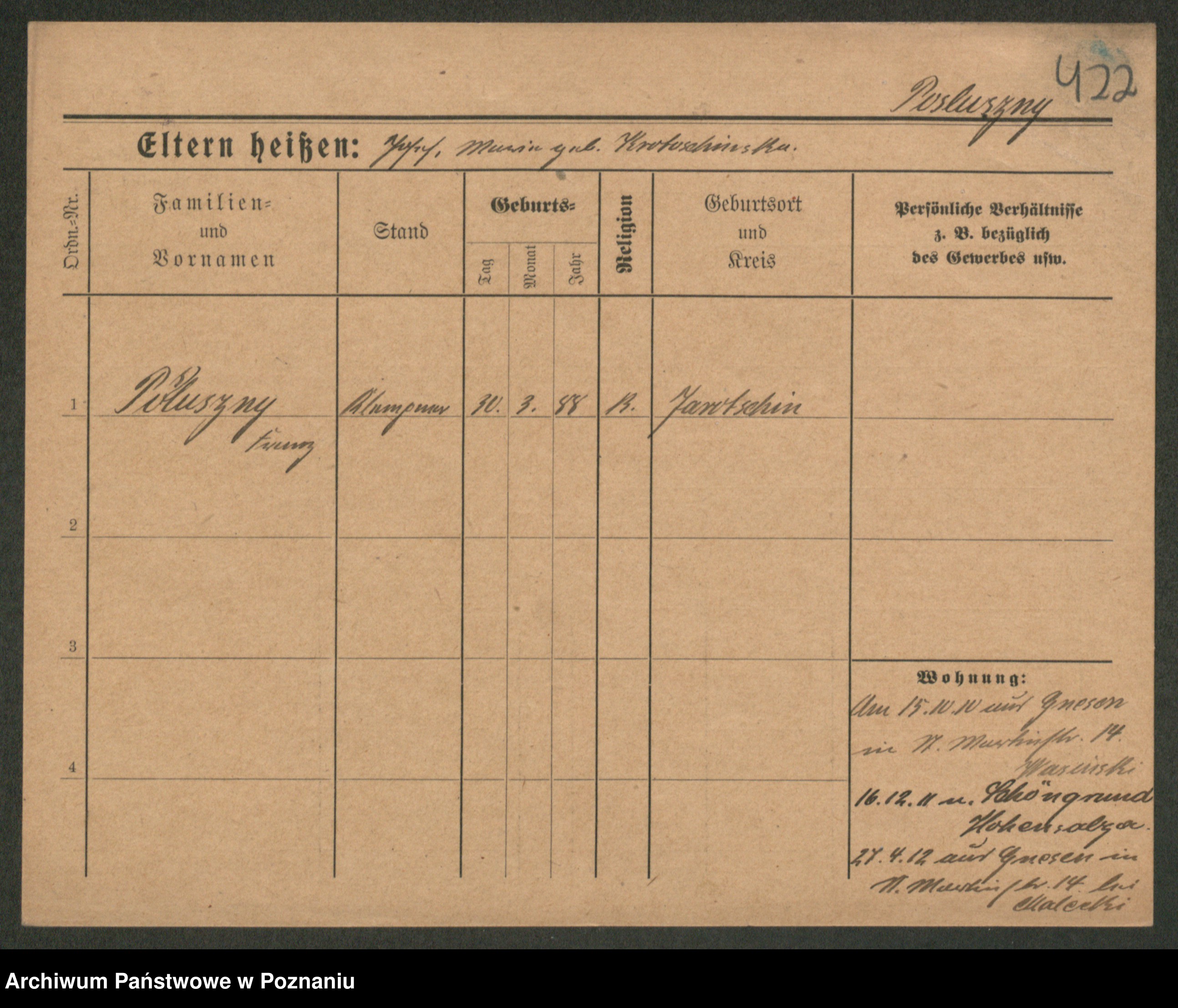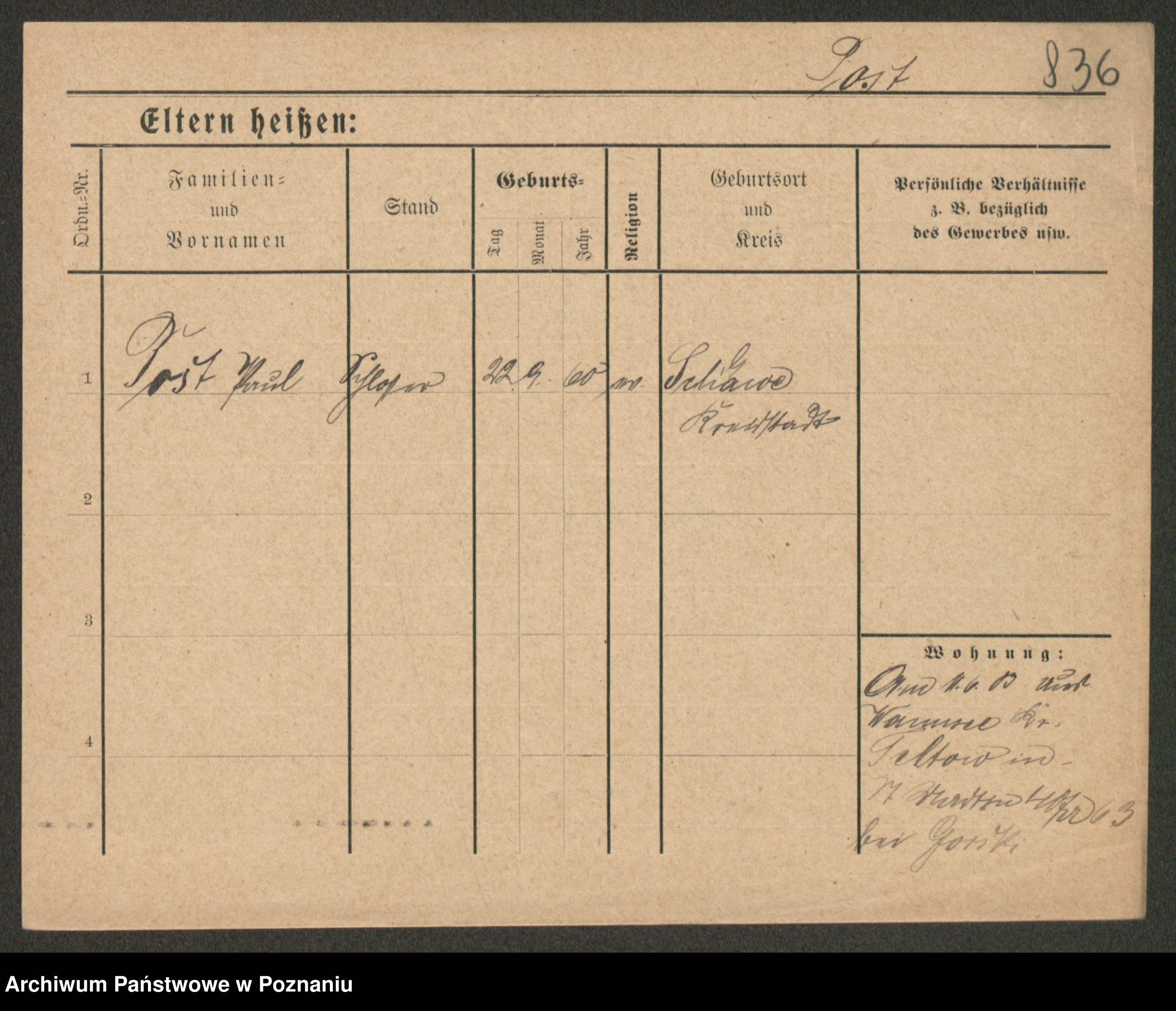 Post z d. Ptasinska, Antonina