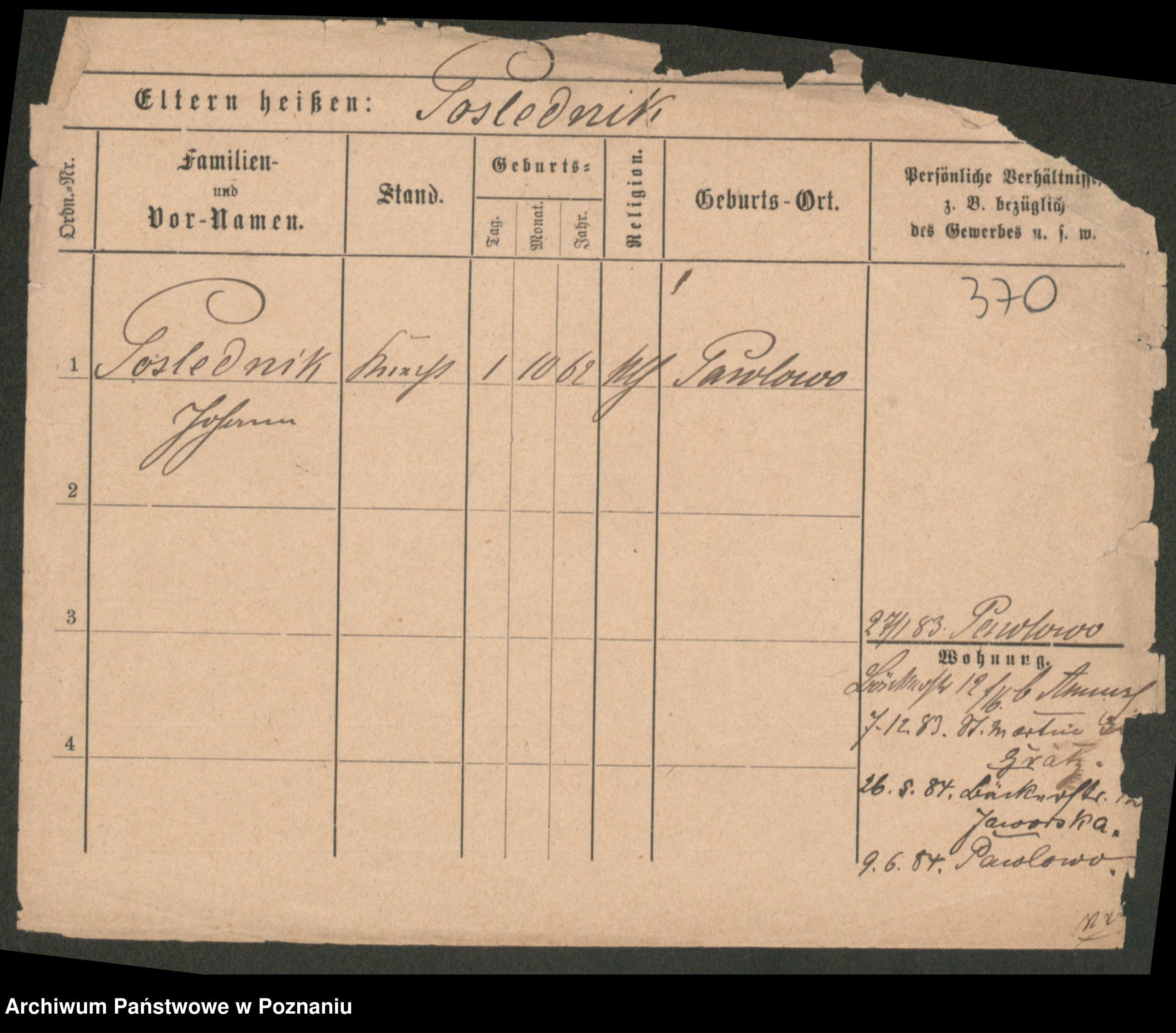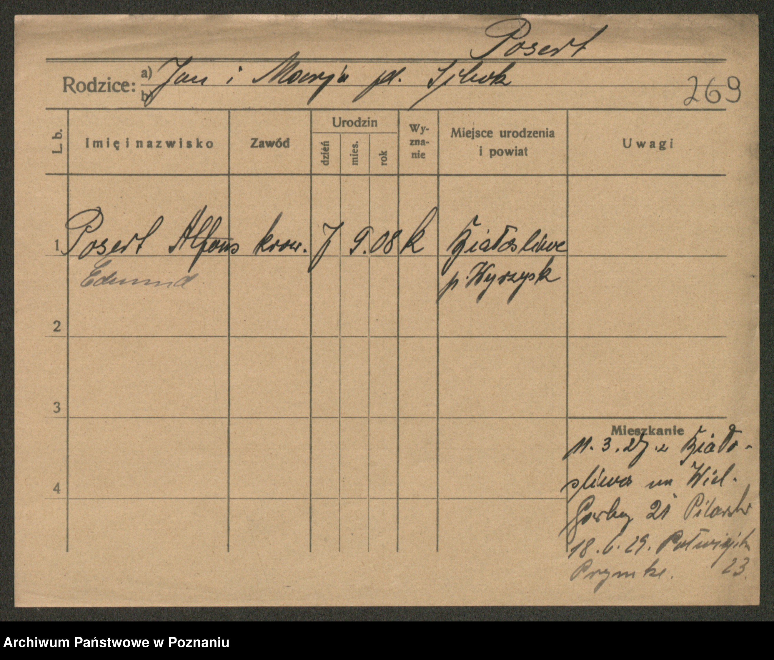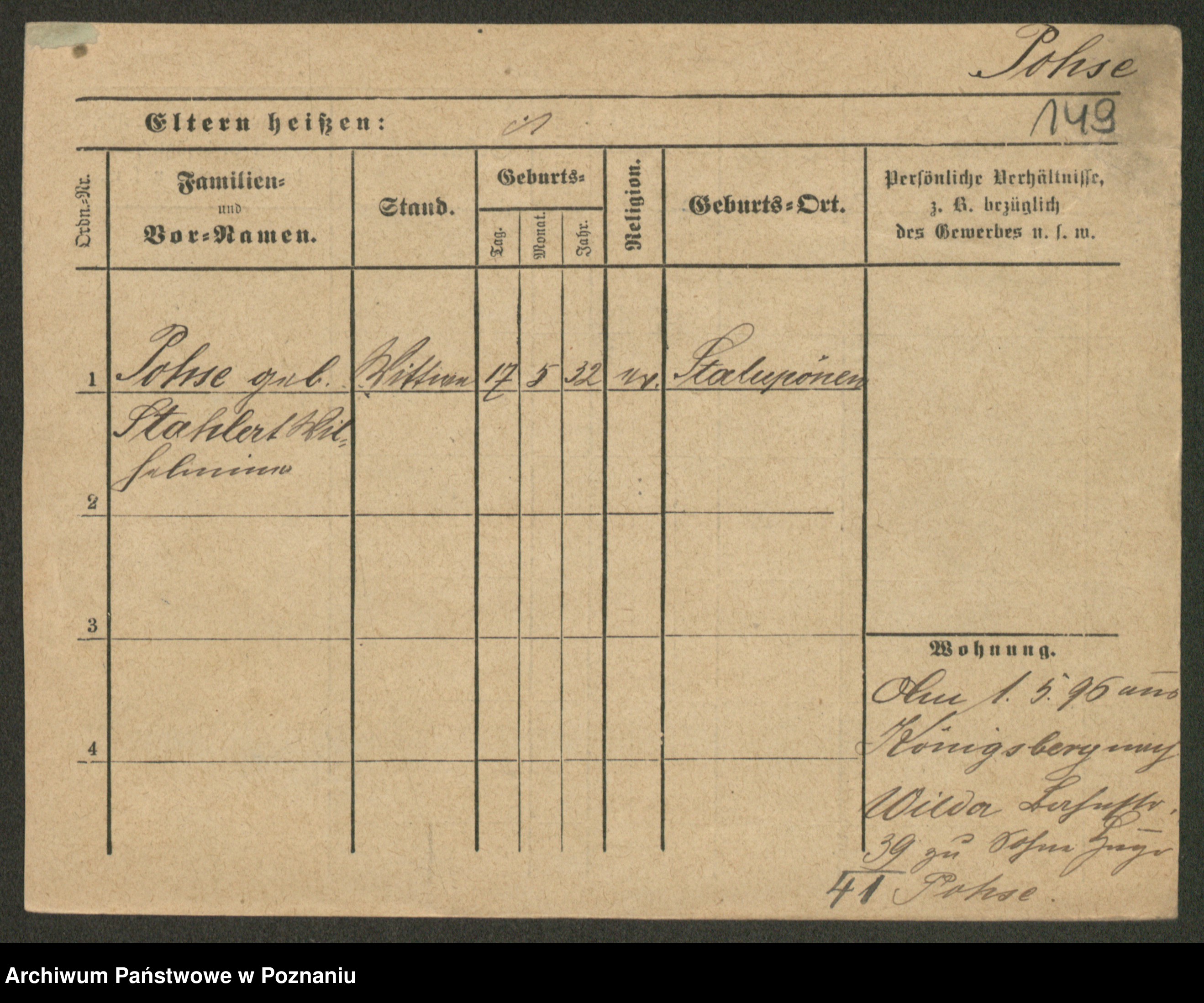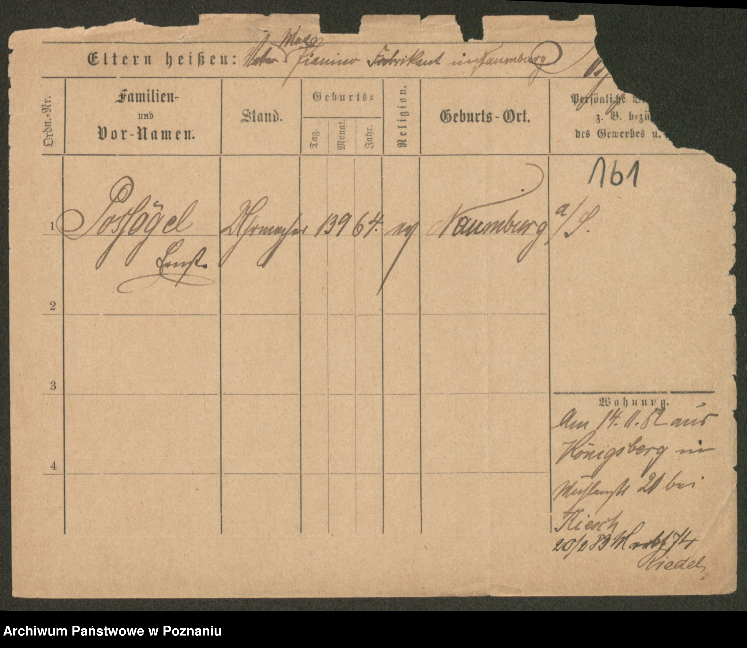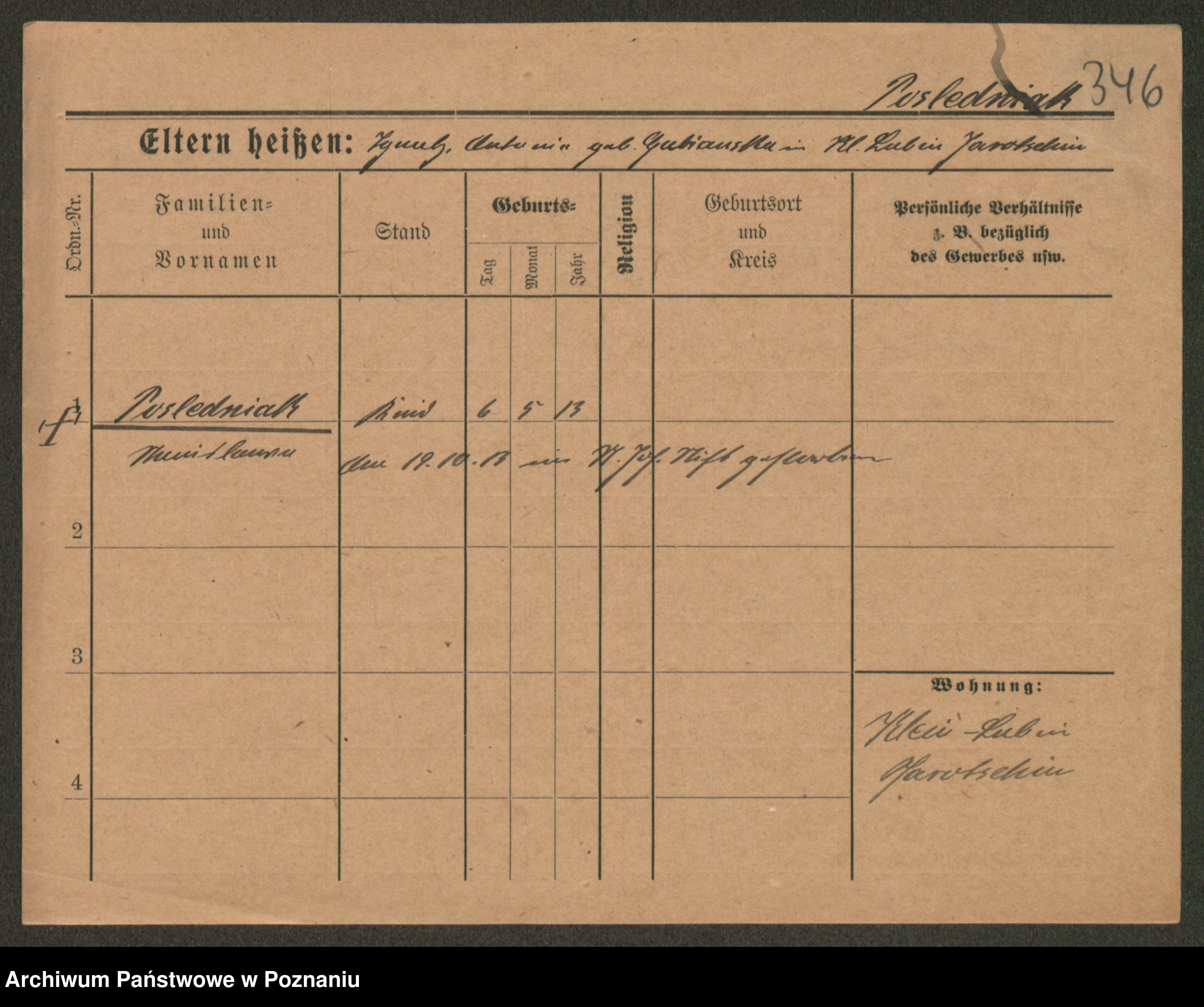 Post z d. Ptasinska, Antonina