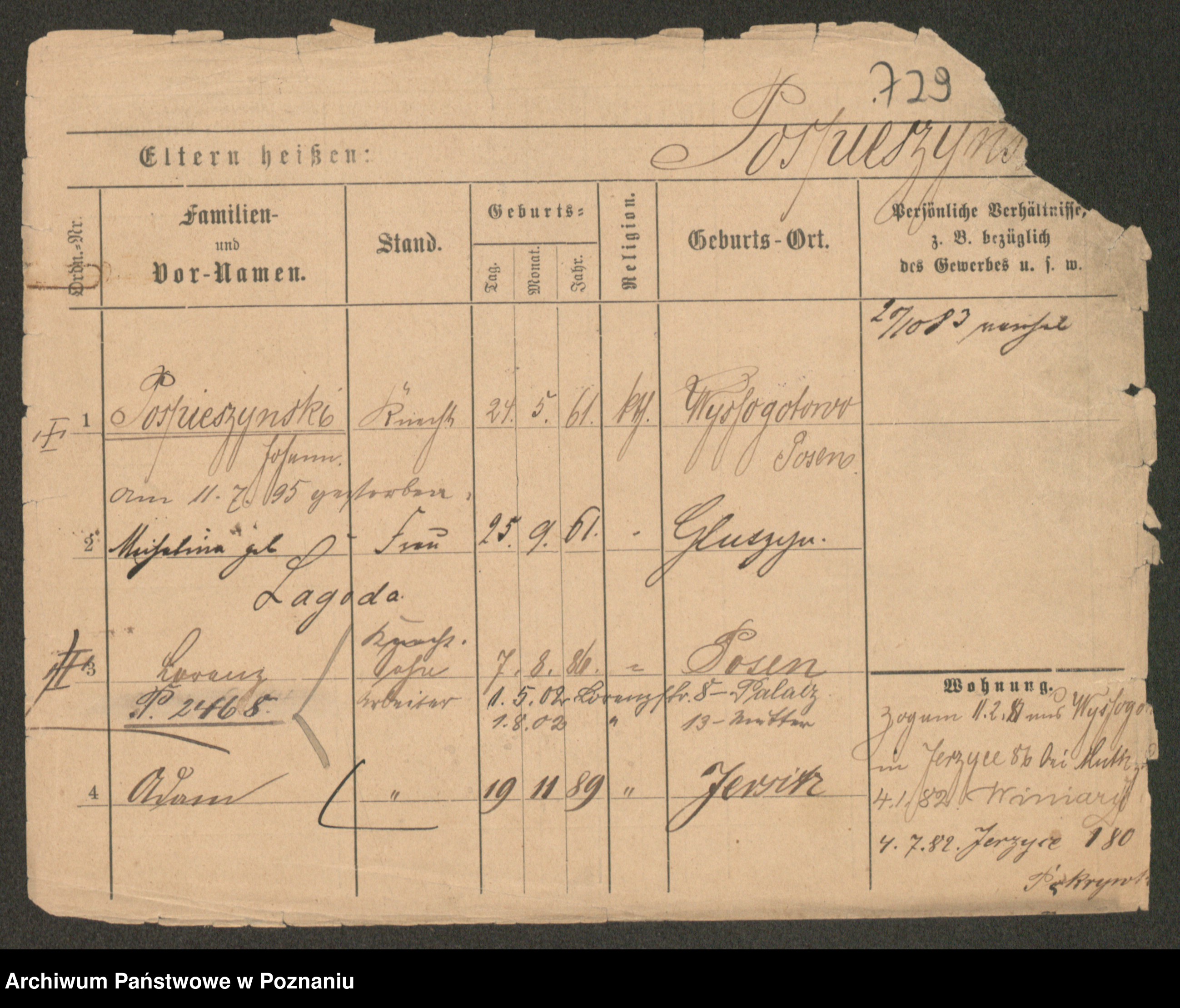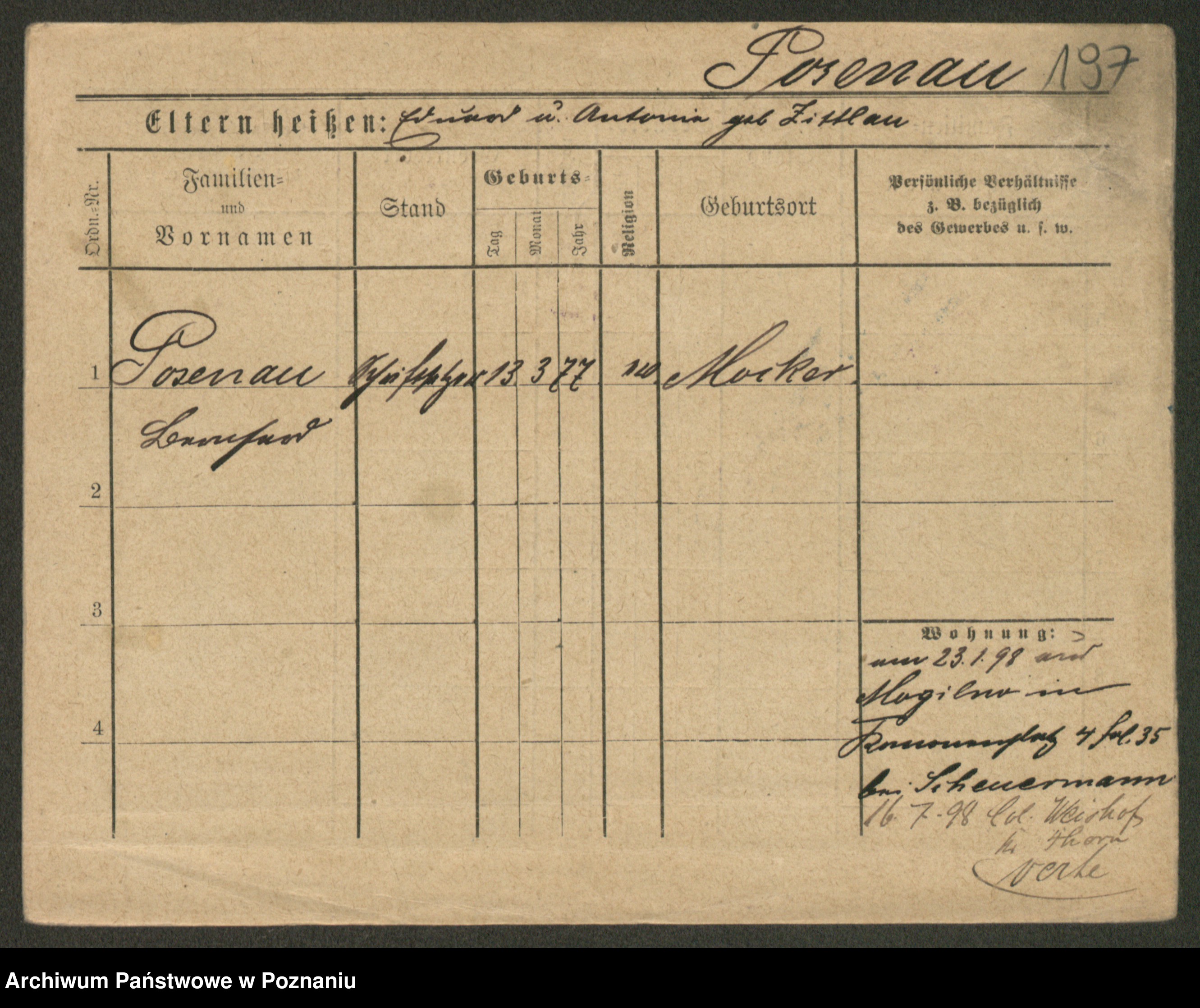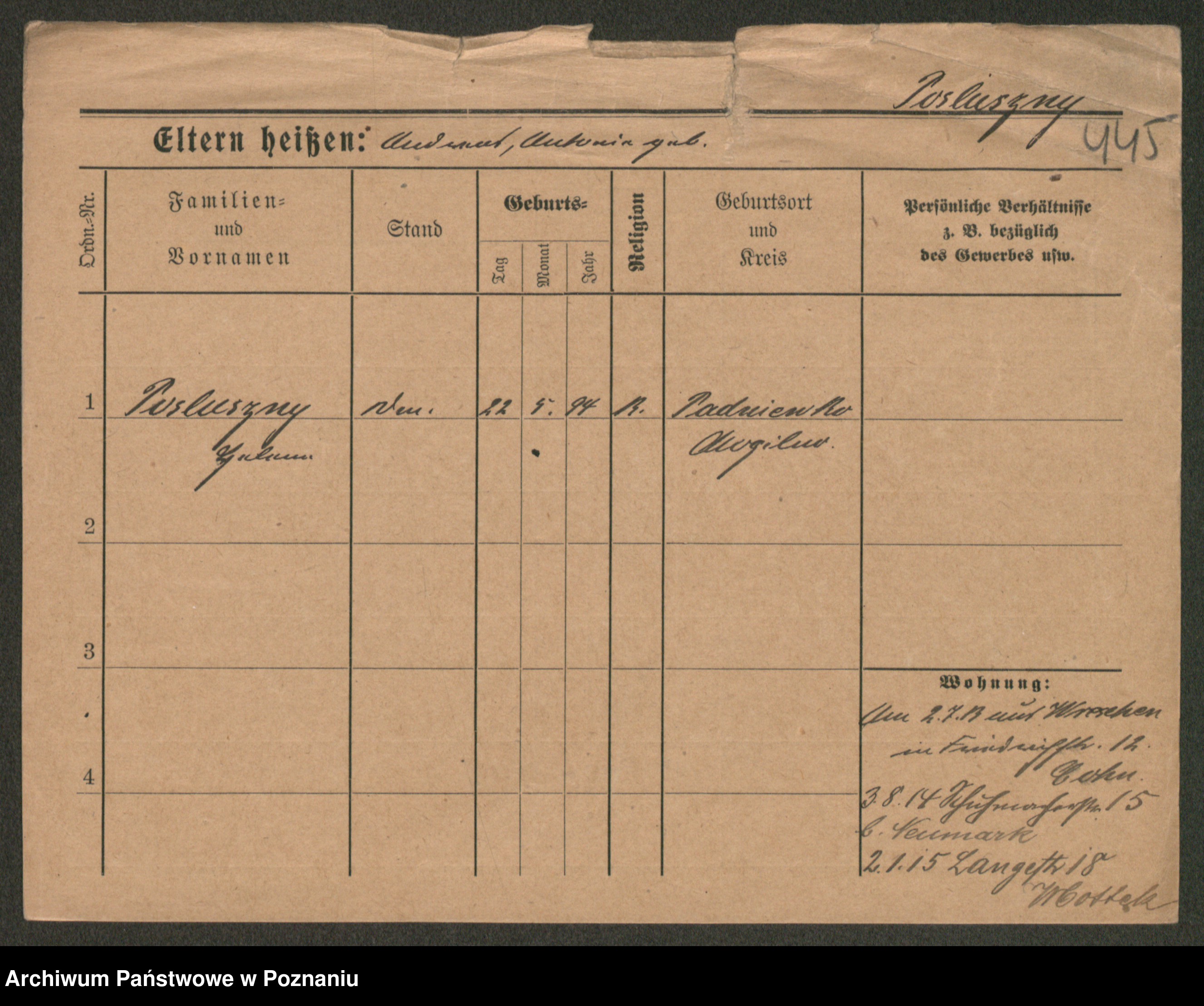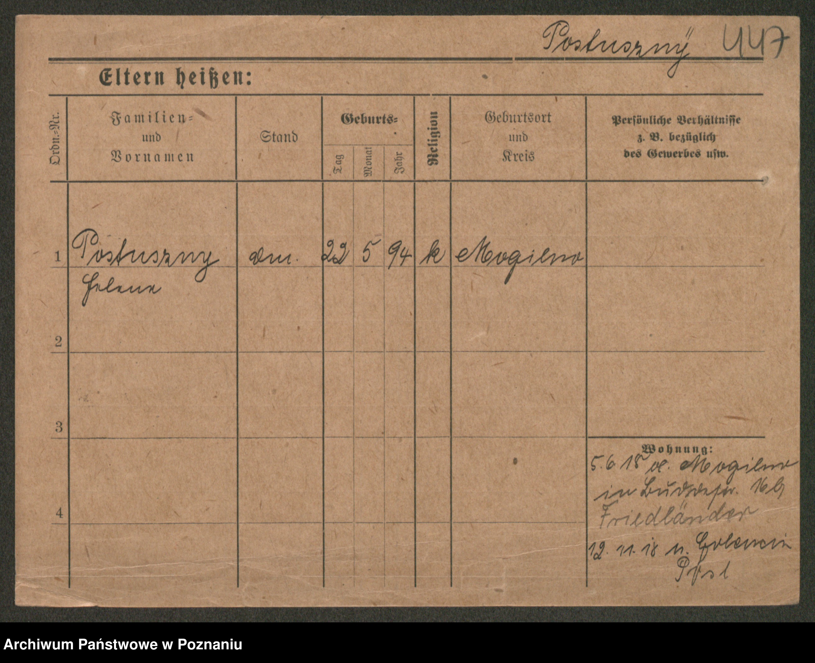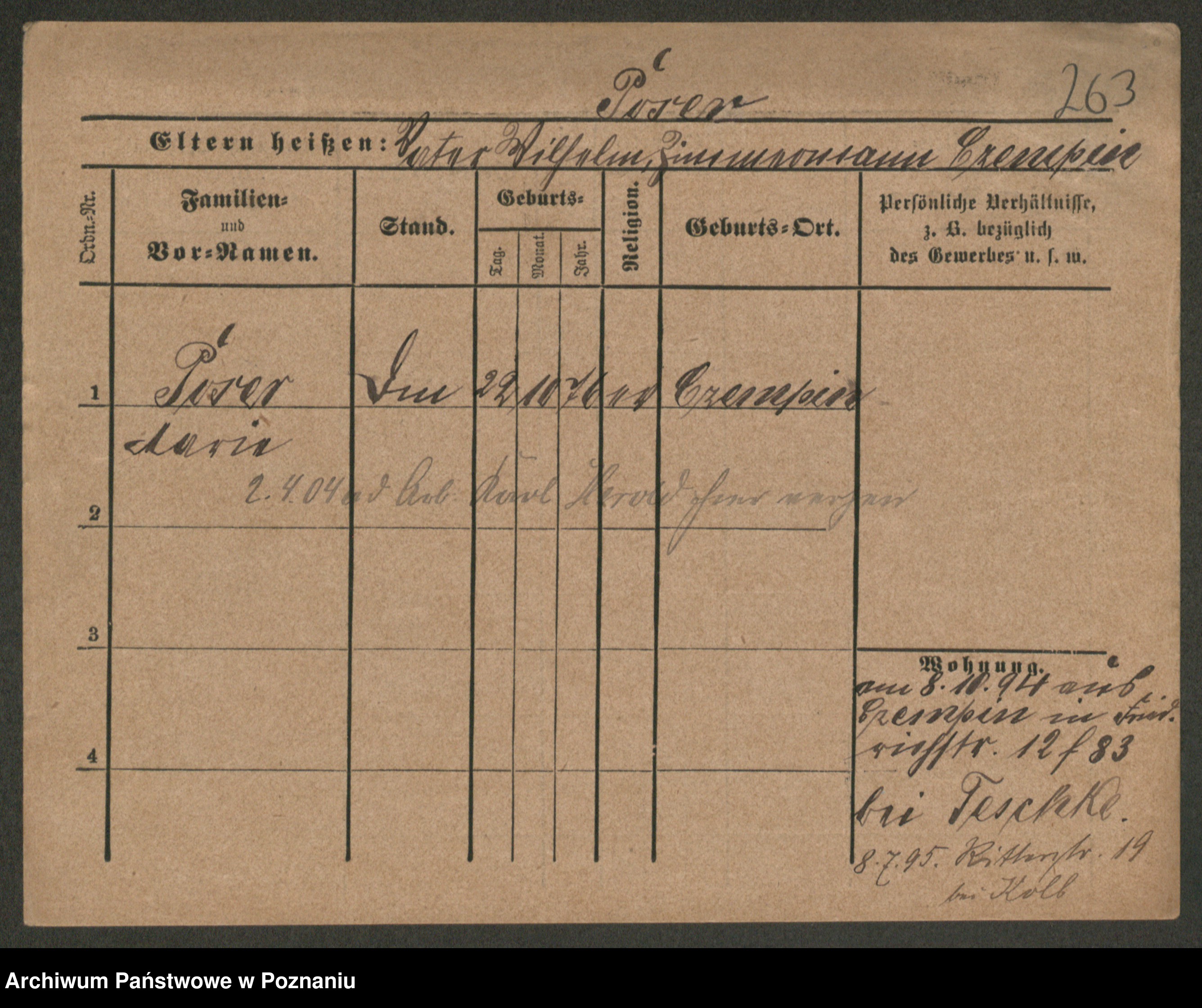 Post z d. Ptasinska, Antonina