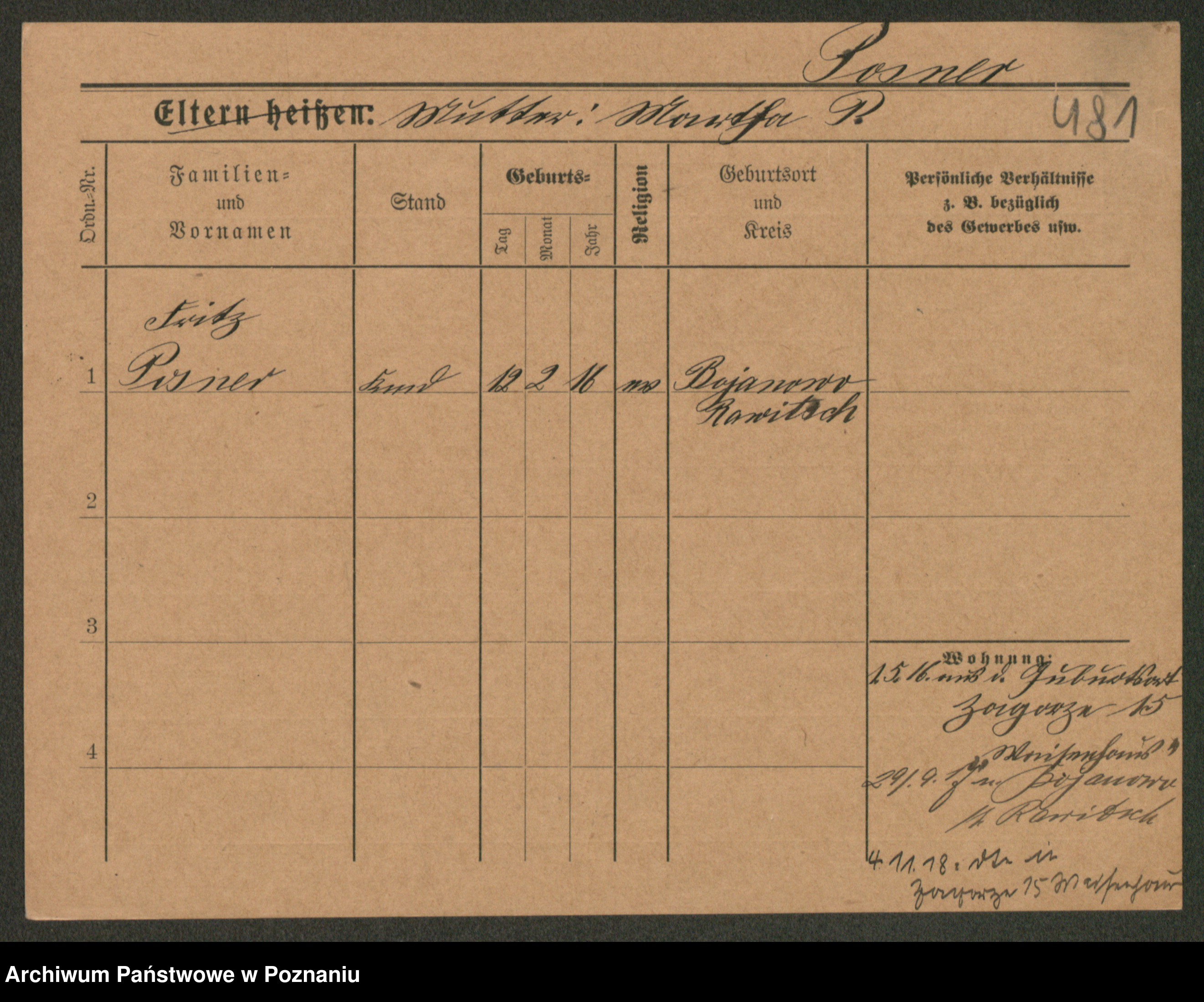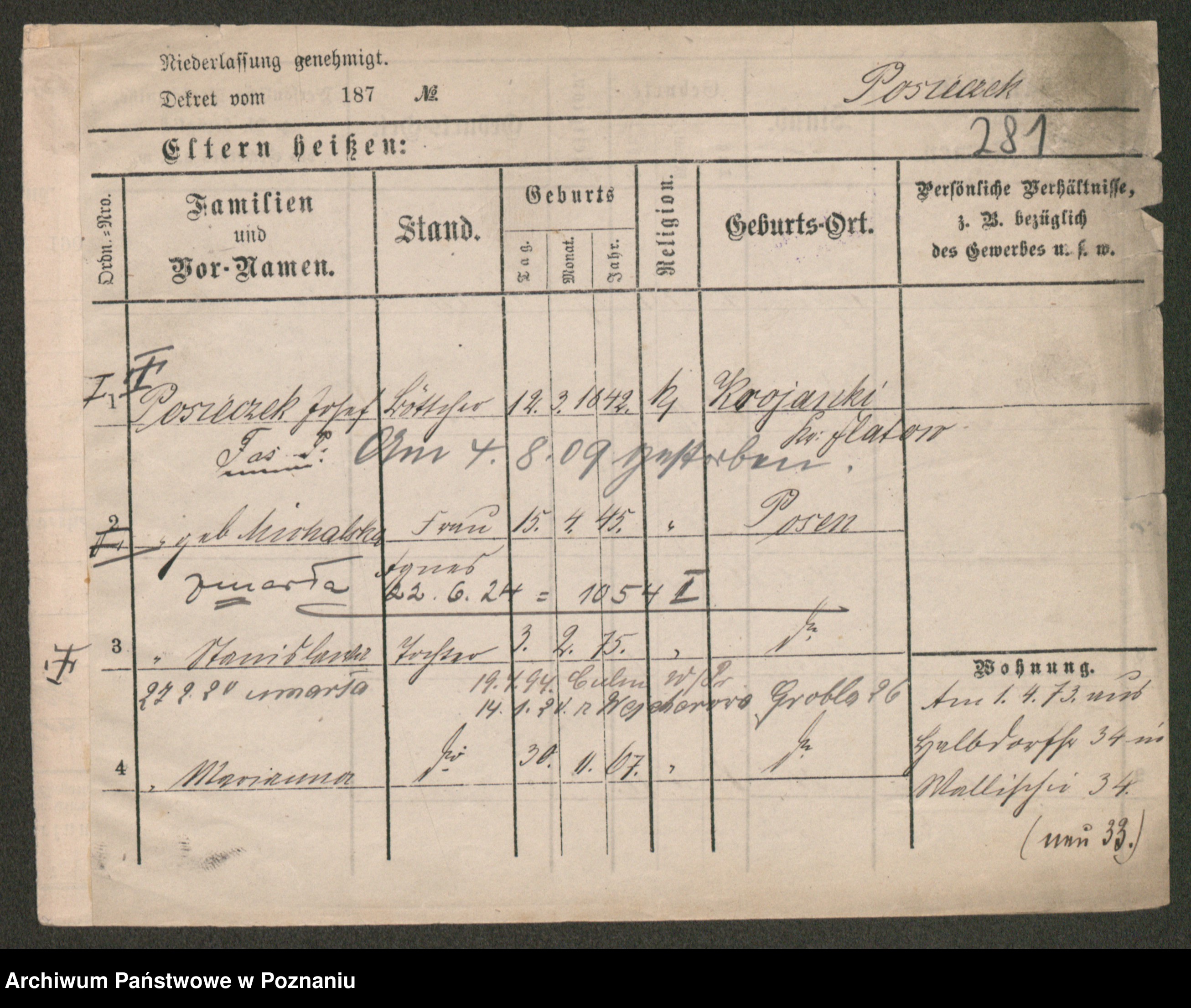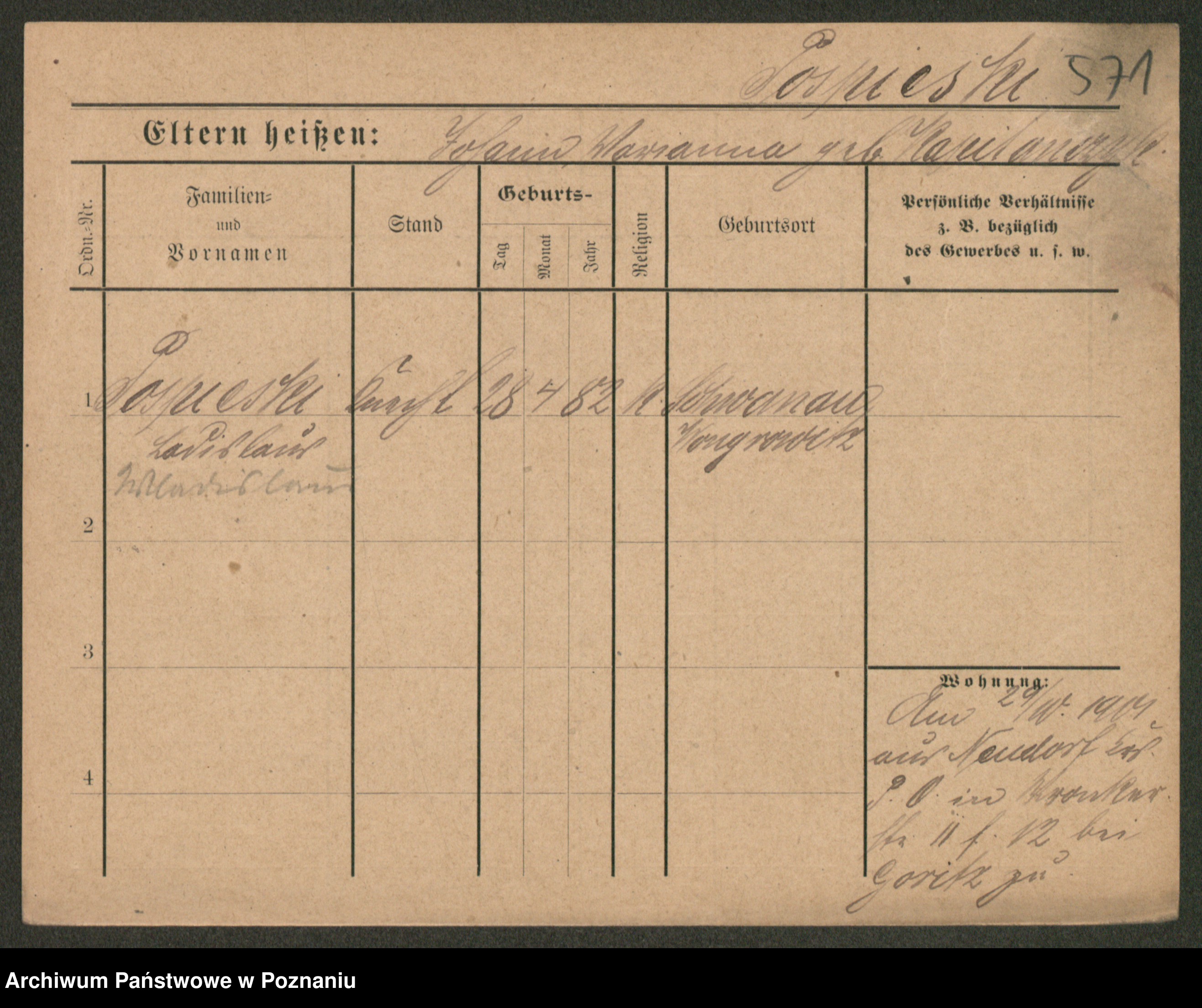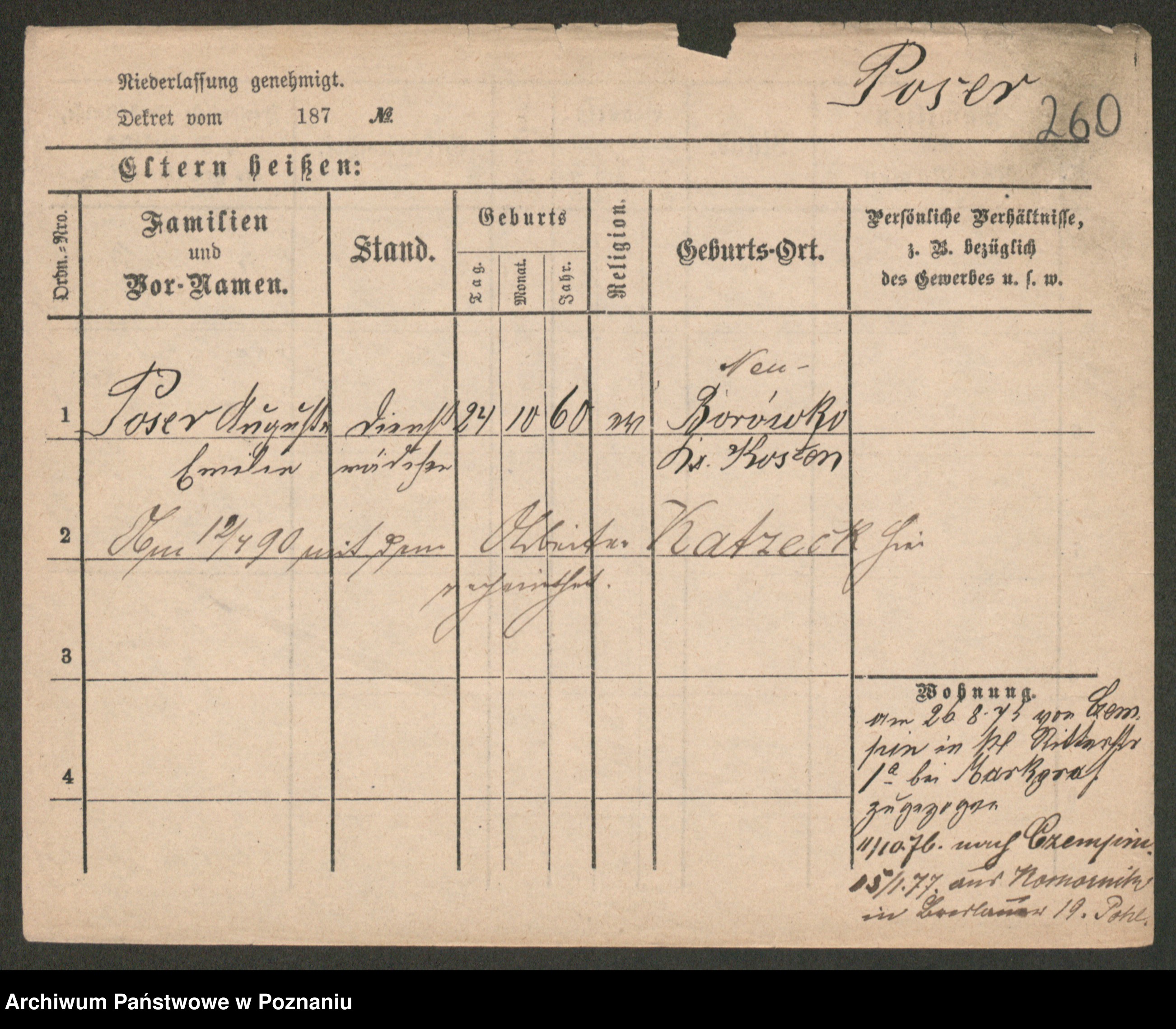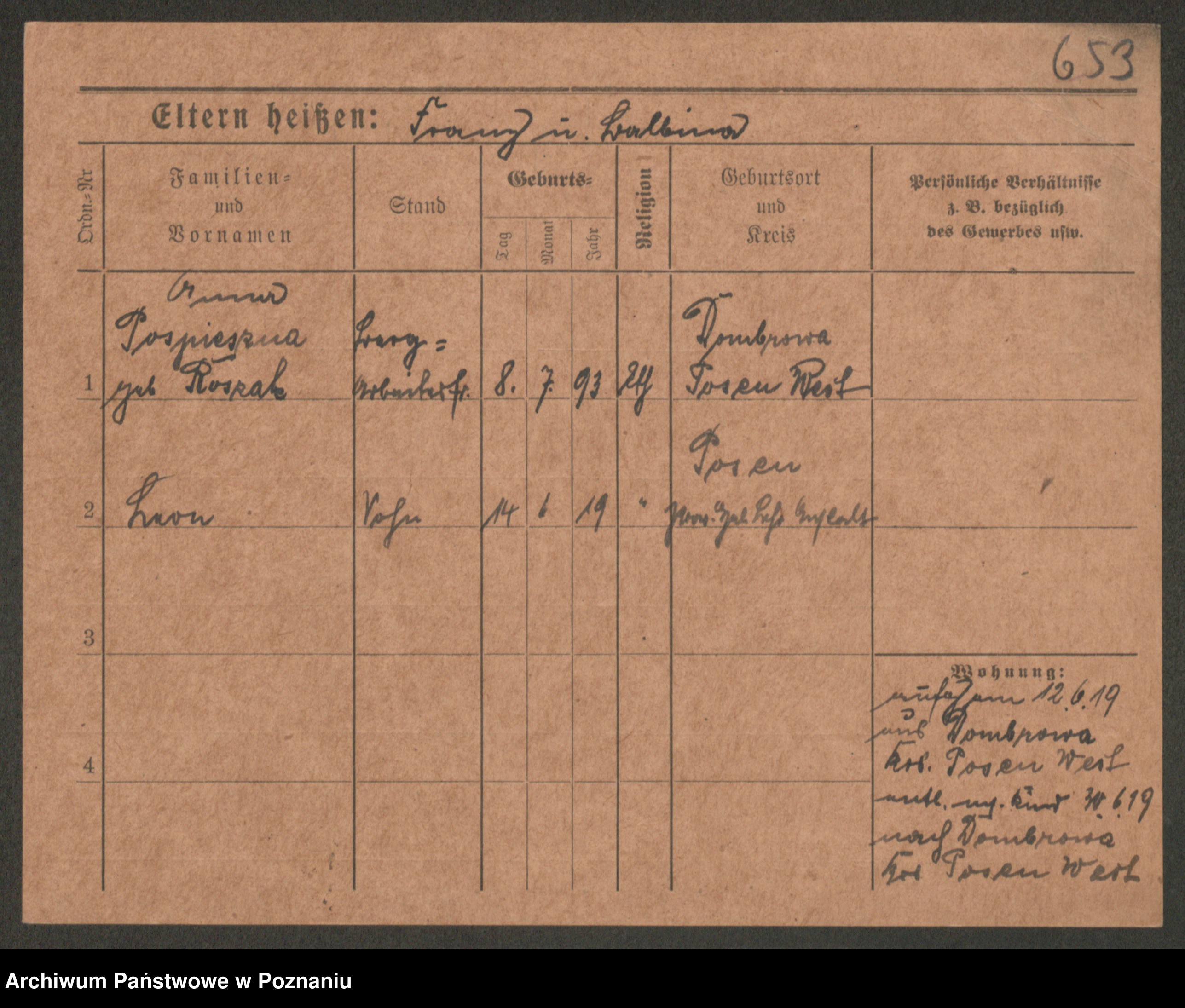 Post z d. Ptasinska, Antonina