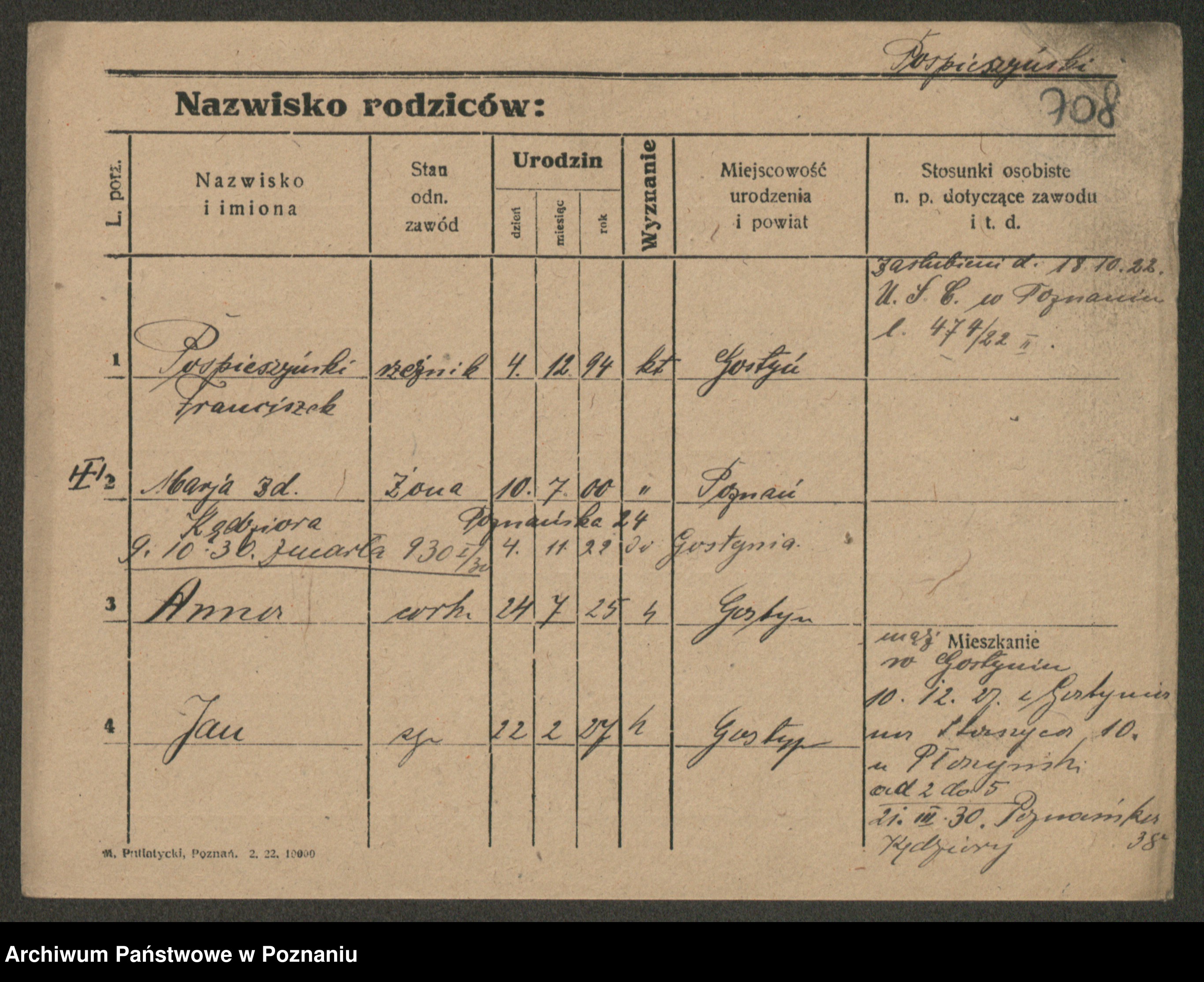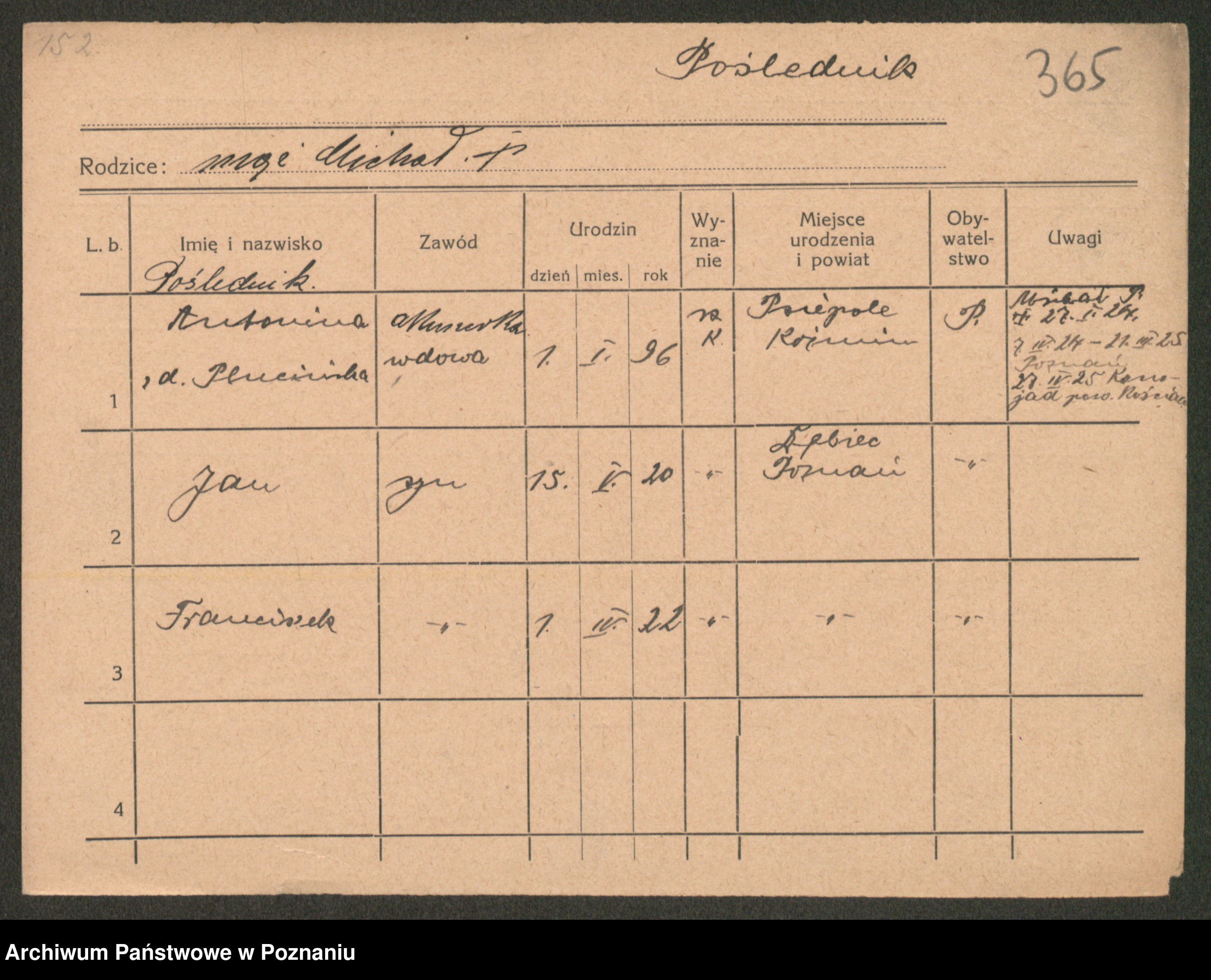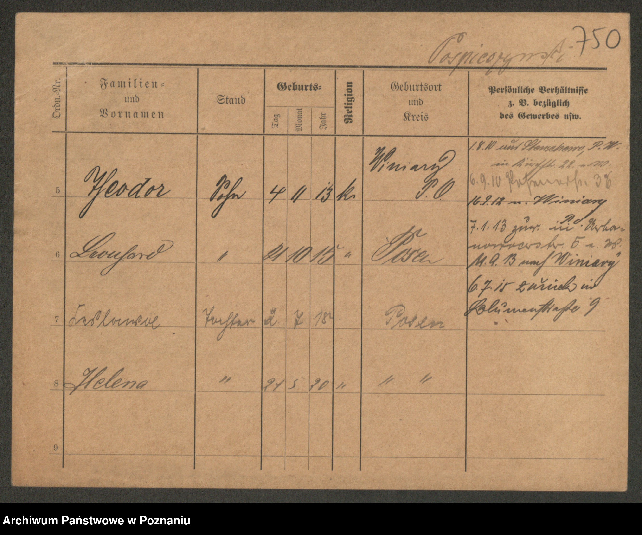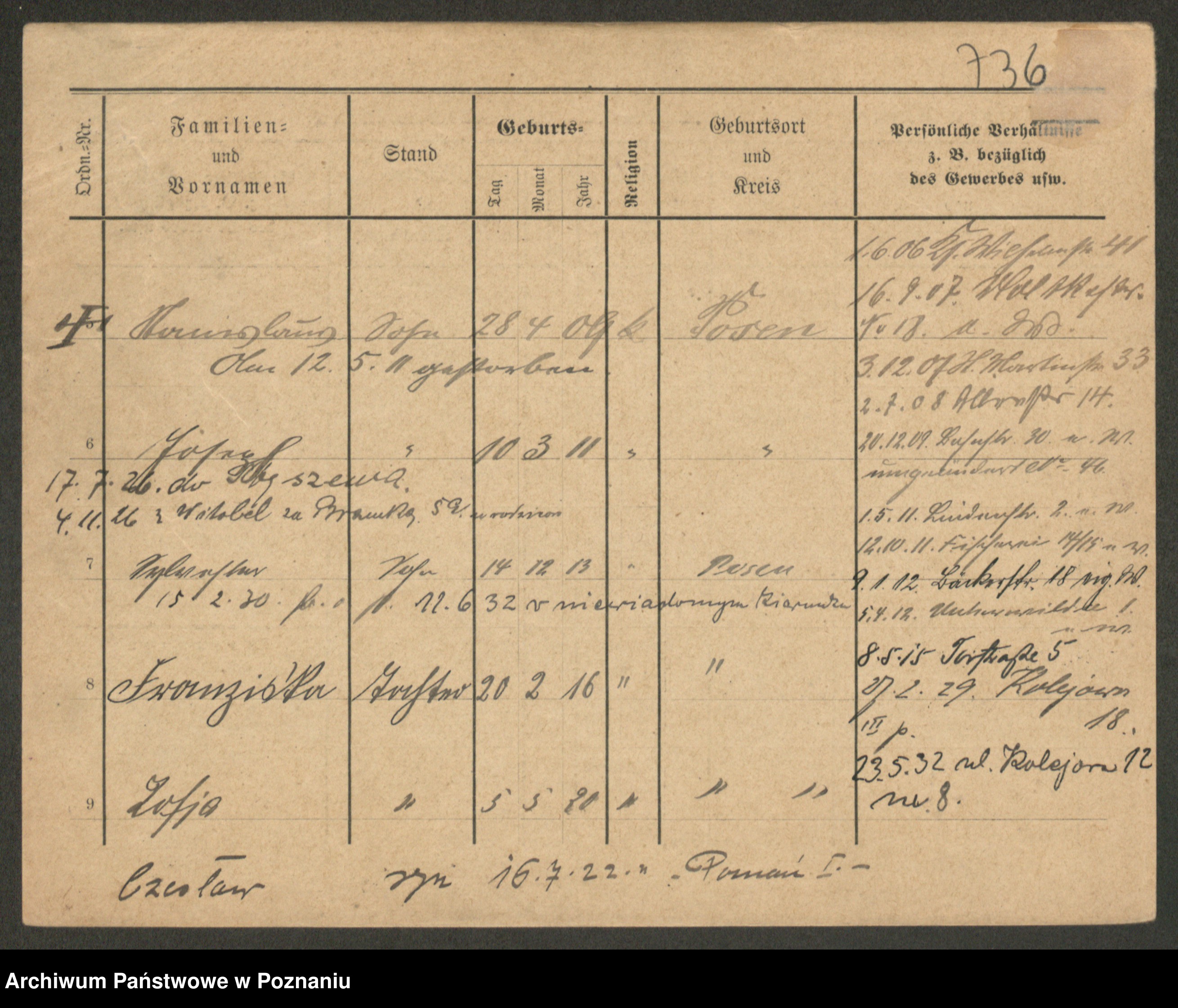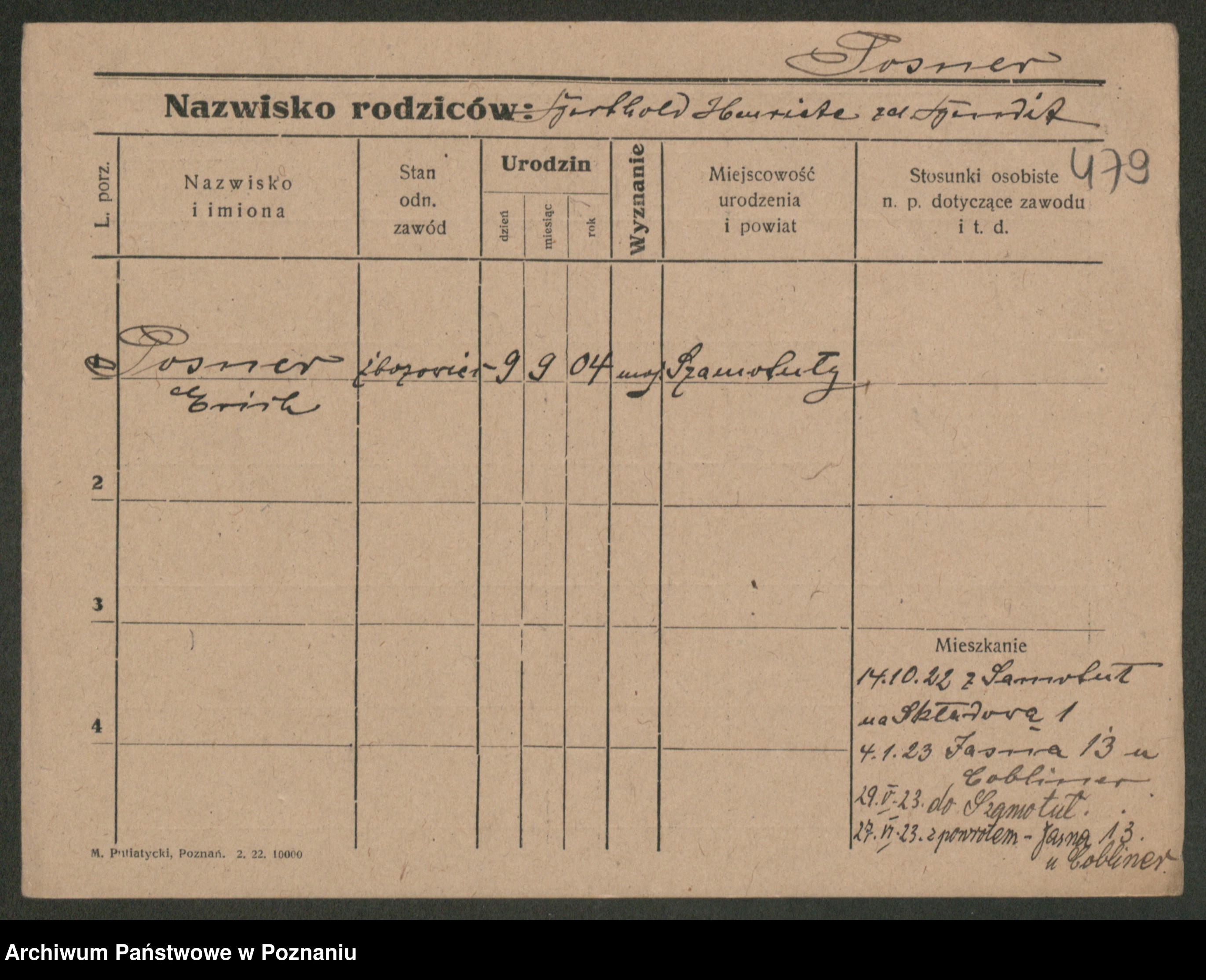Podgląd karty osobowej dostępny jest po kliknięciu na nazwisko lub ikonkę karty. Można dokonywać powiększenia (ikony na górze) lub przechodzić między kolejnymi skanami (strzałki po bokach).