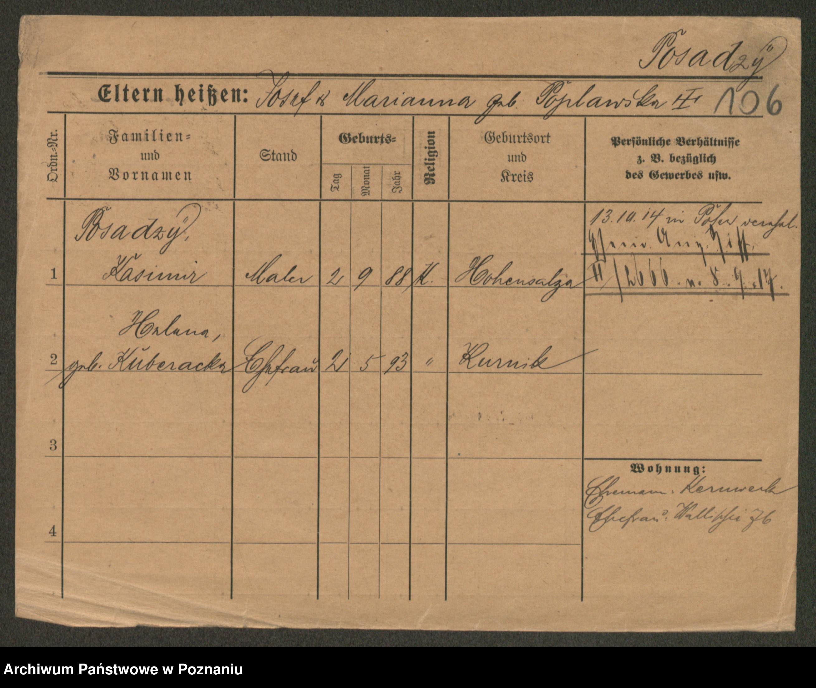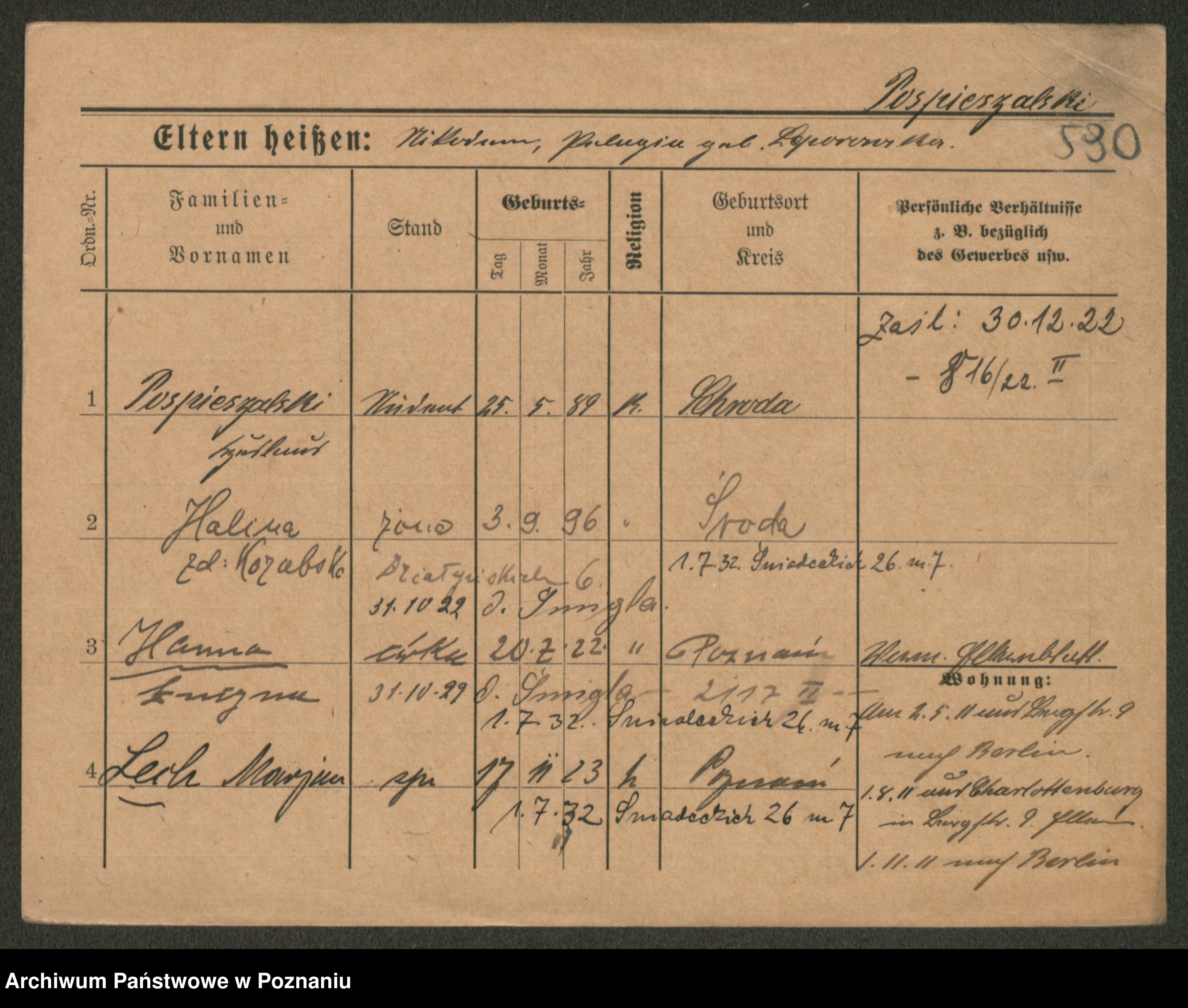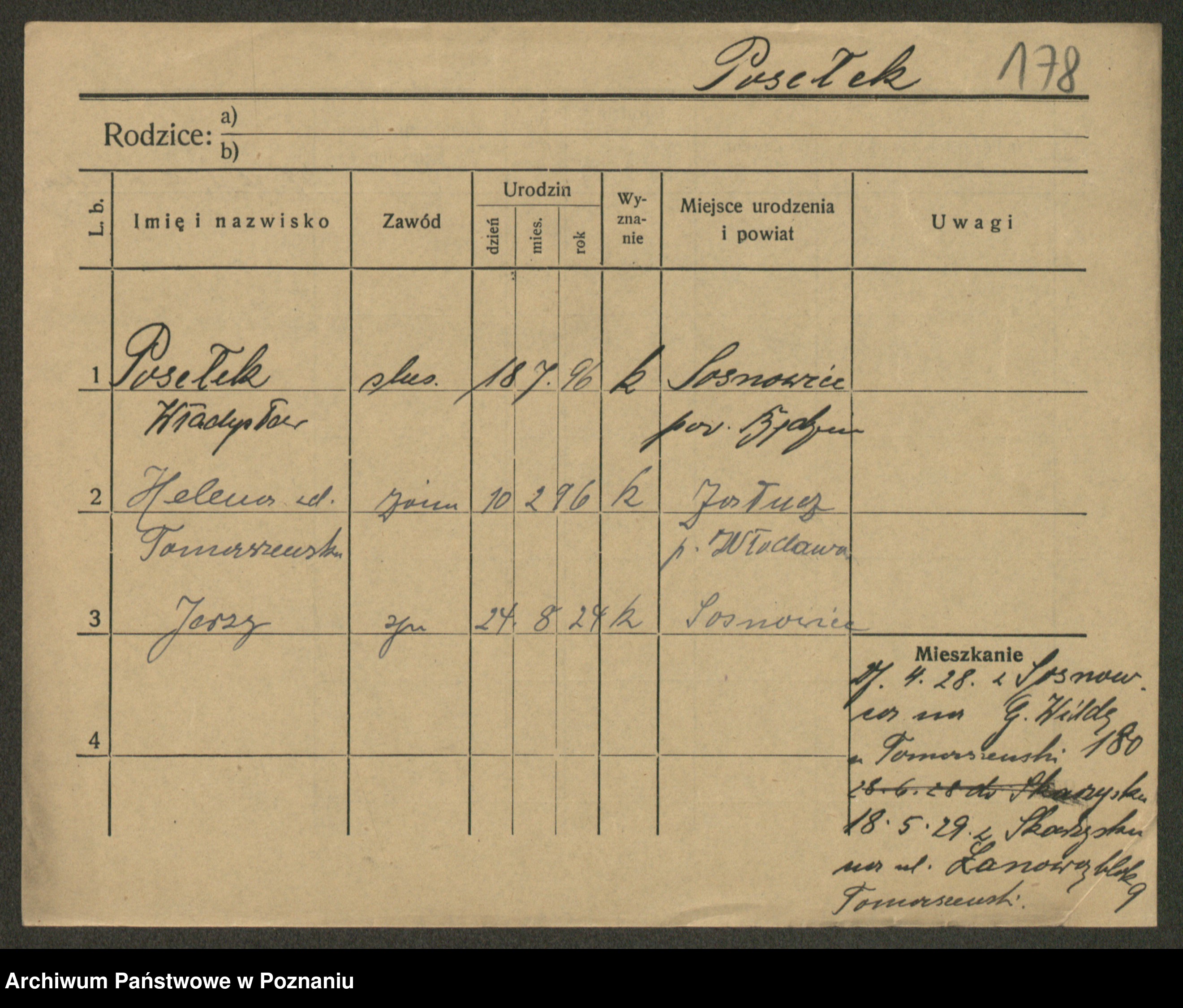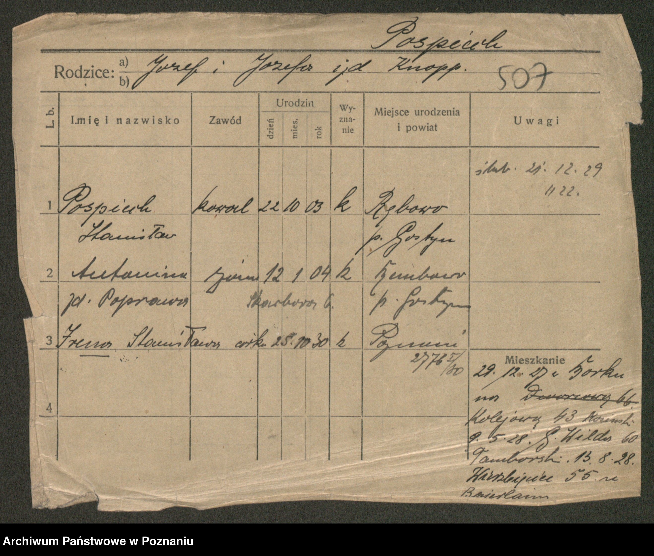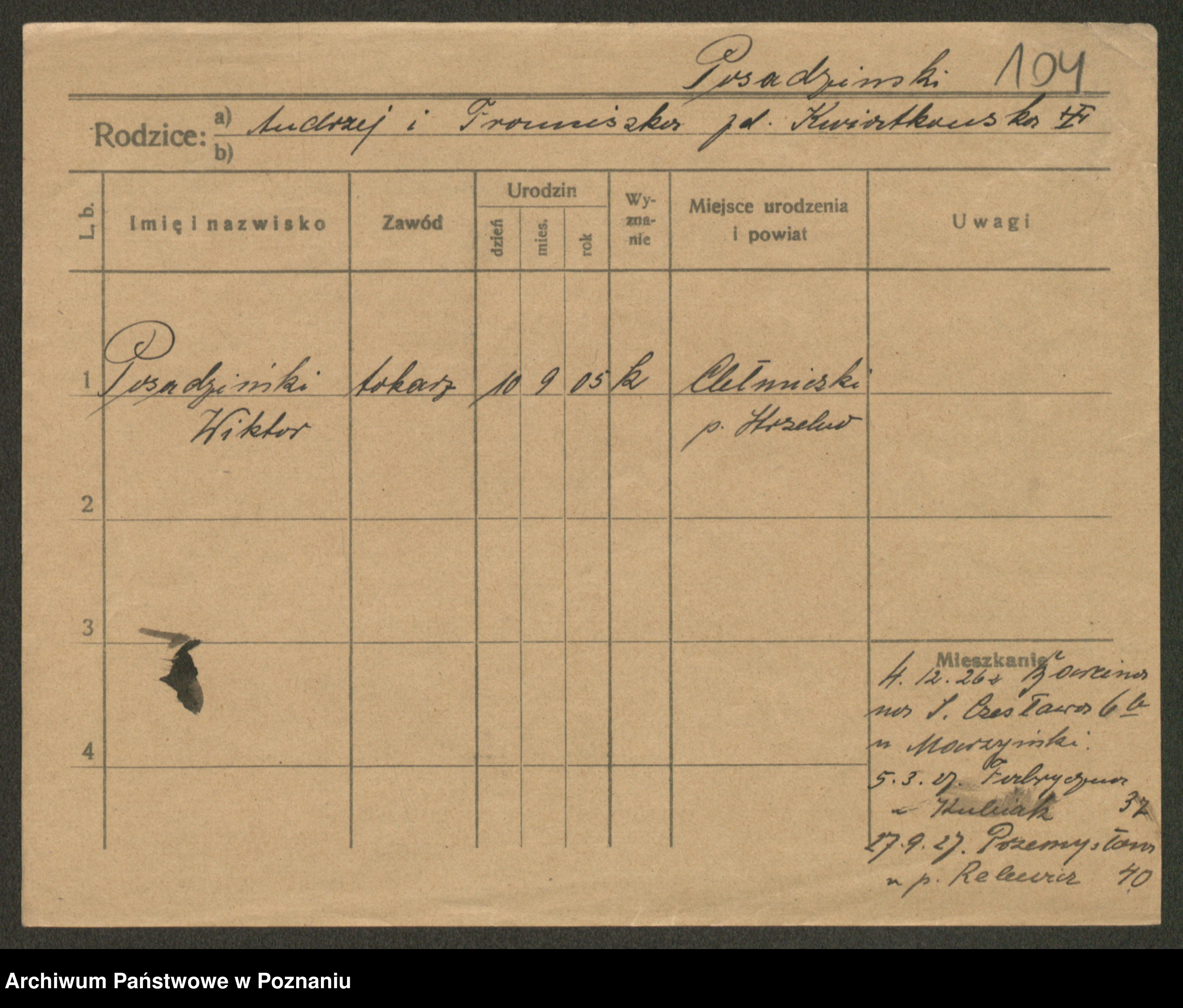 Podgląd karty osobowej dostępny jest po kliknięciu na nazwisko lub ikonkę karty. Można dokonywać powiększenia (ikony na górze) lub przechodzić między kolejnymi skanami (strzałki po bokach).