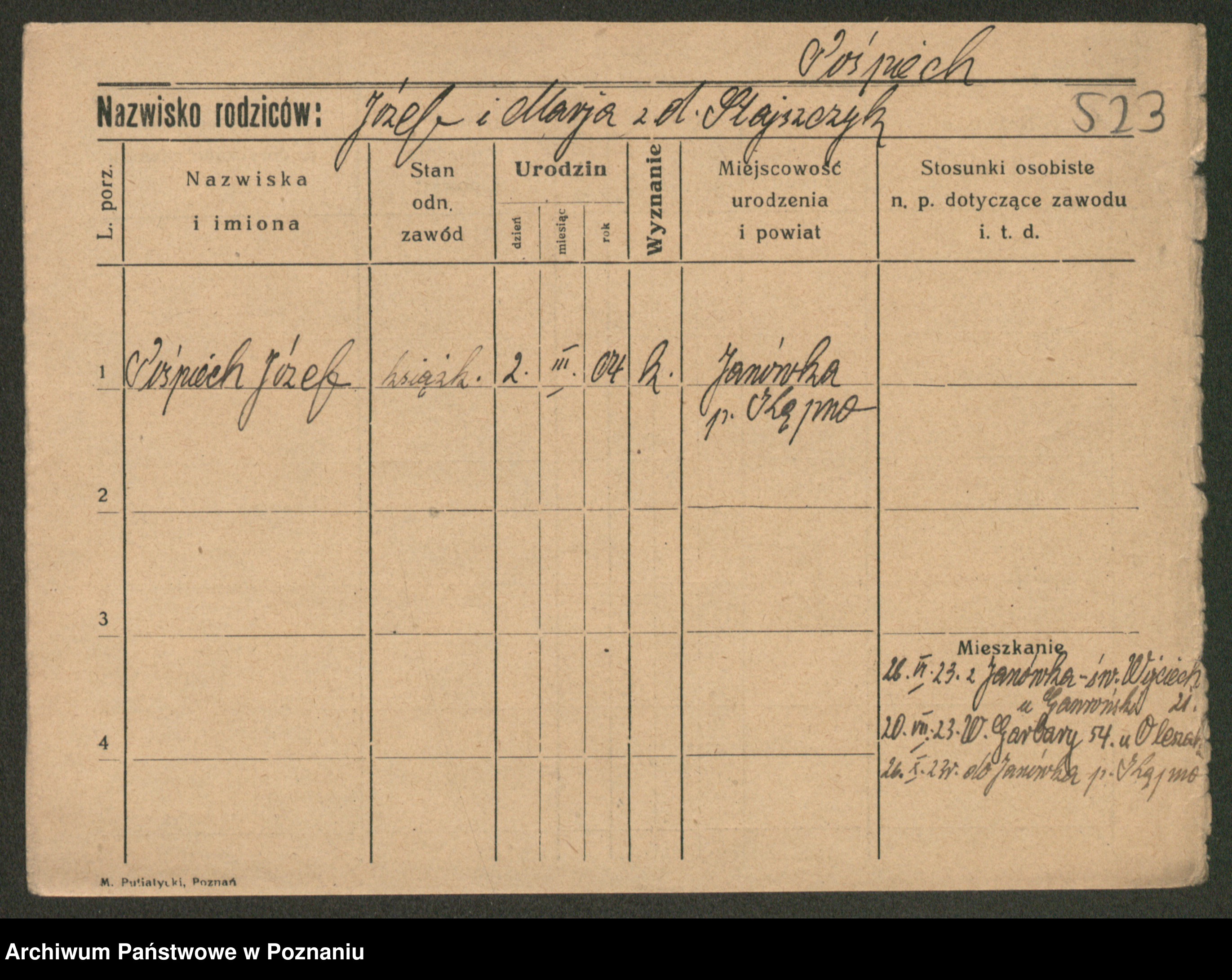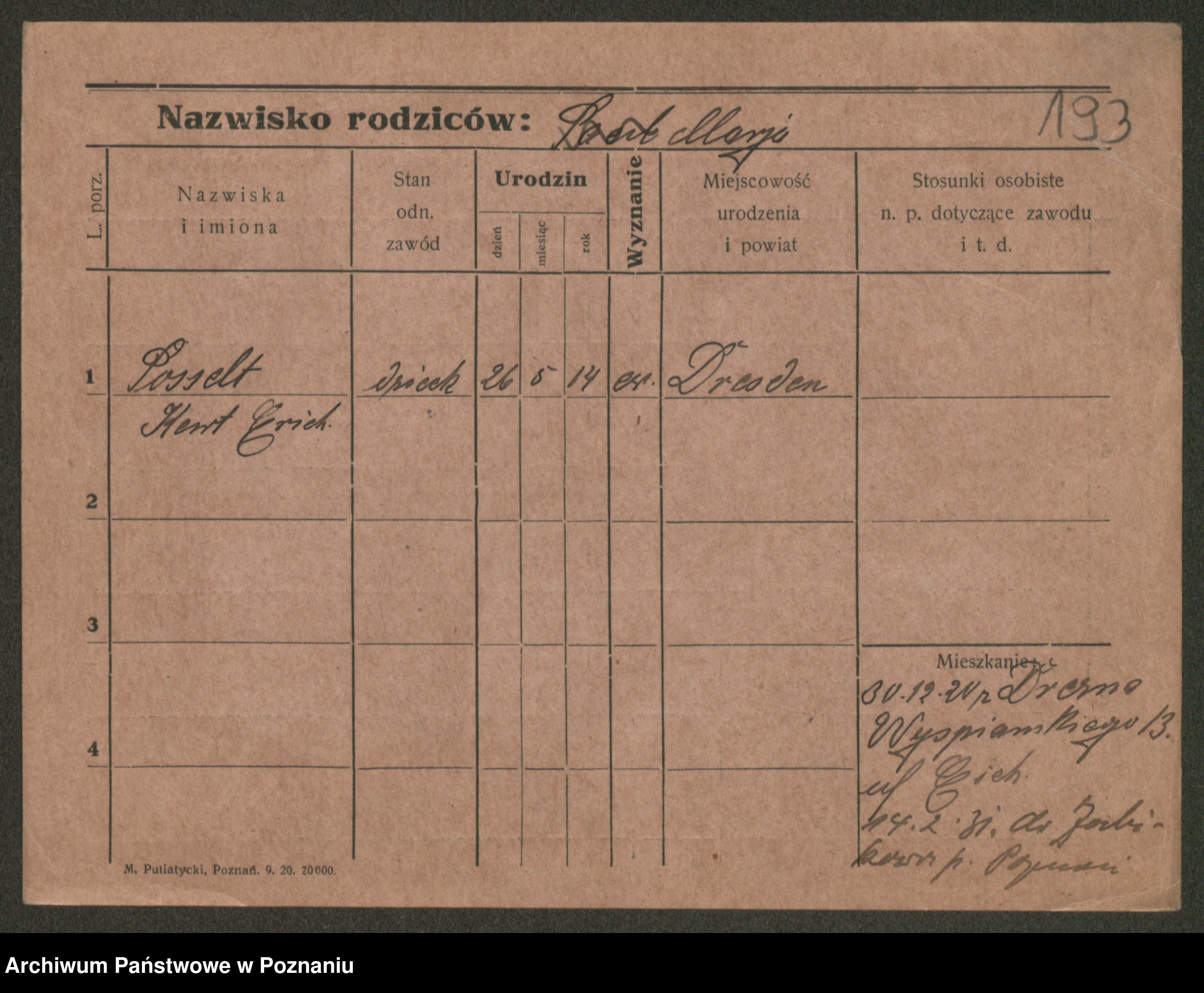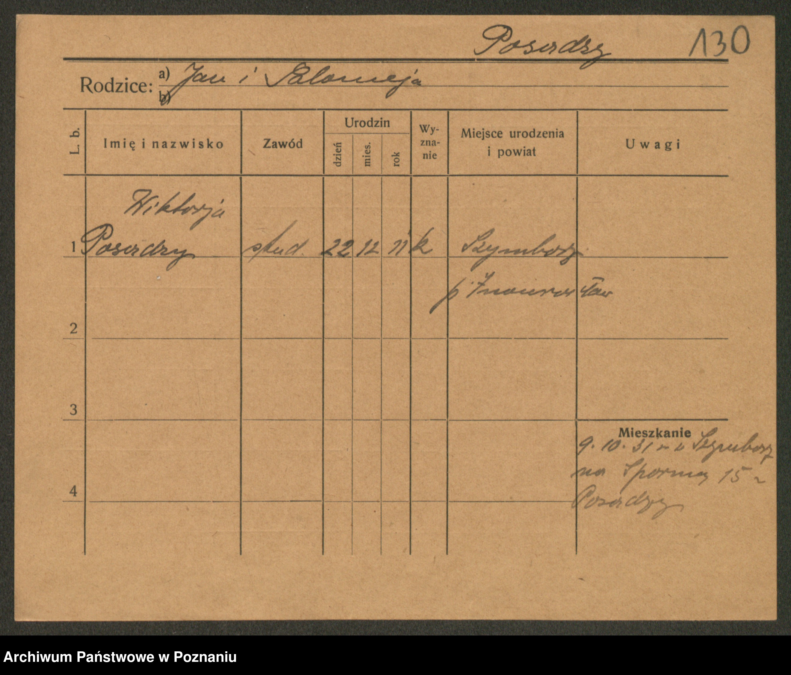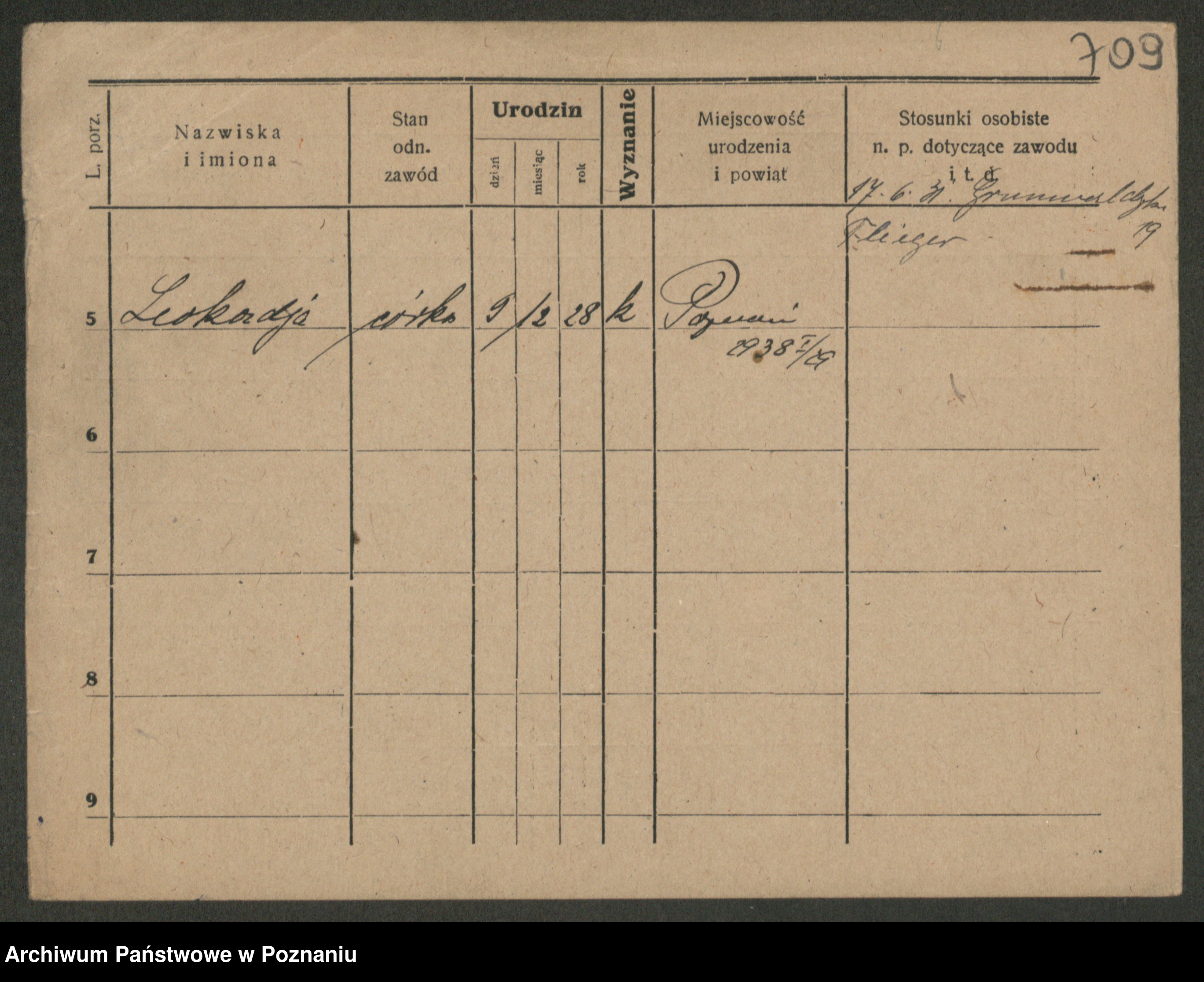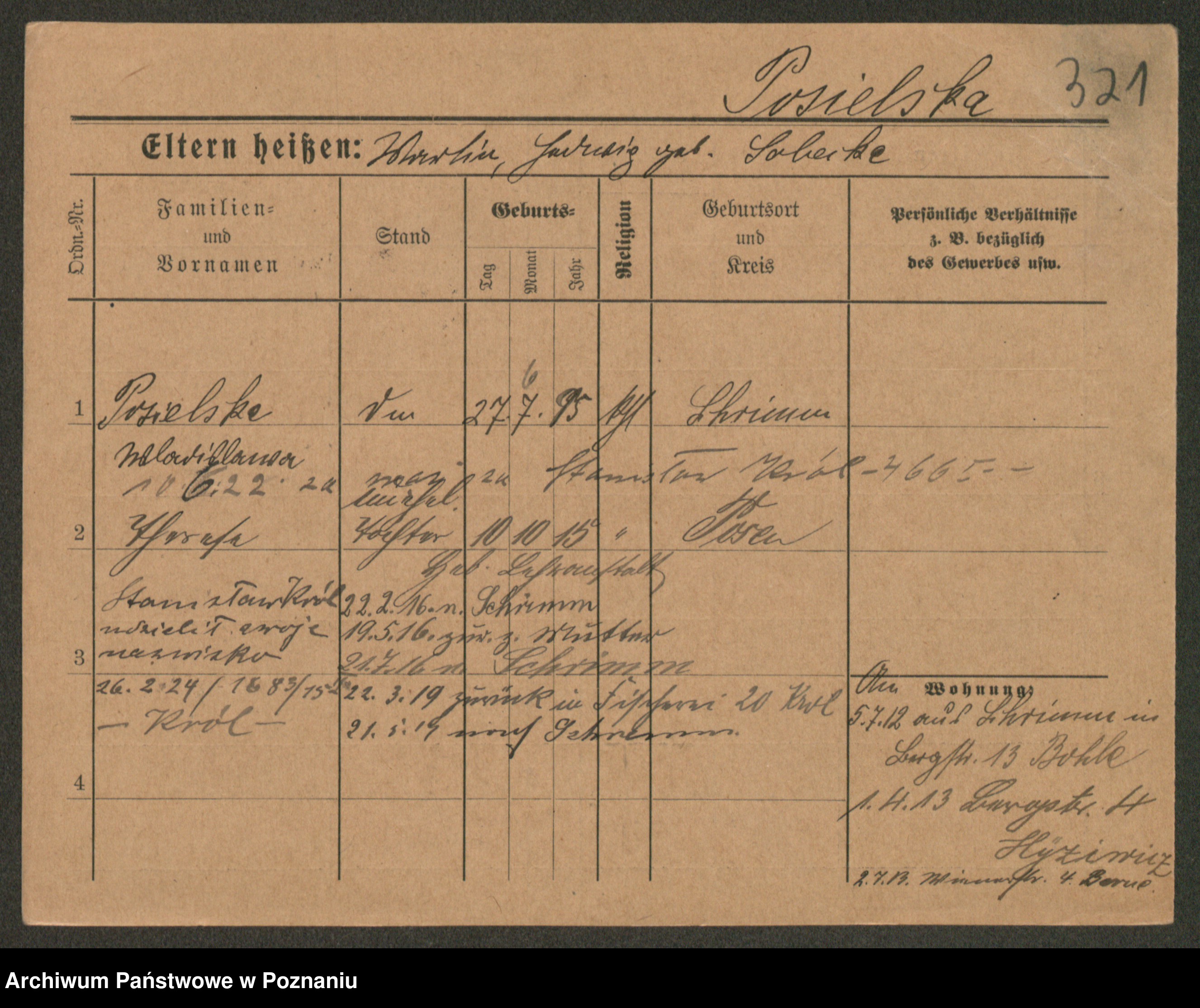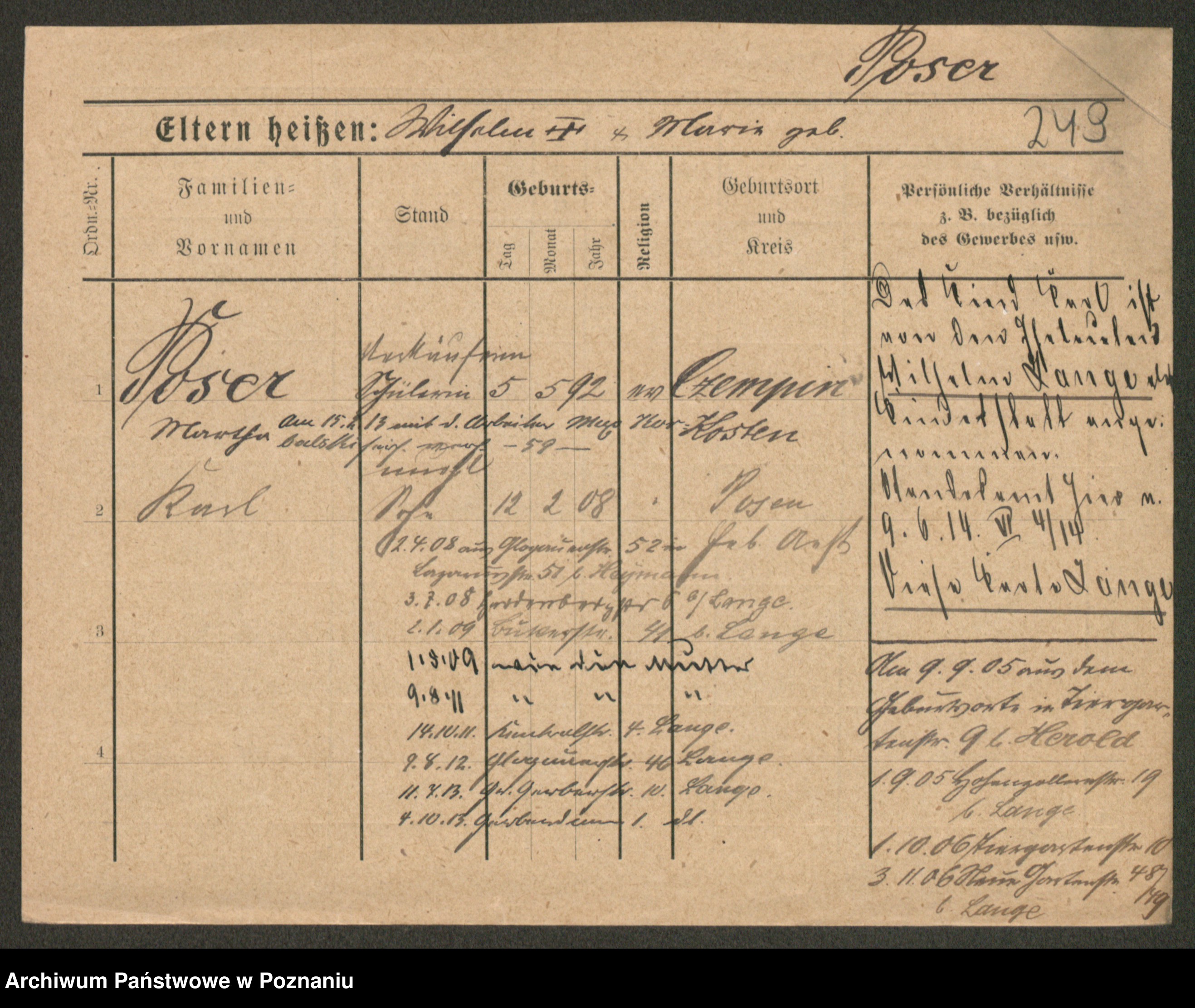 Podgląd karty osobowej dostępny jest po kliknięciu na nazwisko lub ikonkę karty. Można dokonywać powiększenia (ikony na górze) lub przechodzić między kolejnymi skanami (strzałki po bokach).