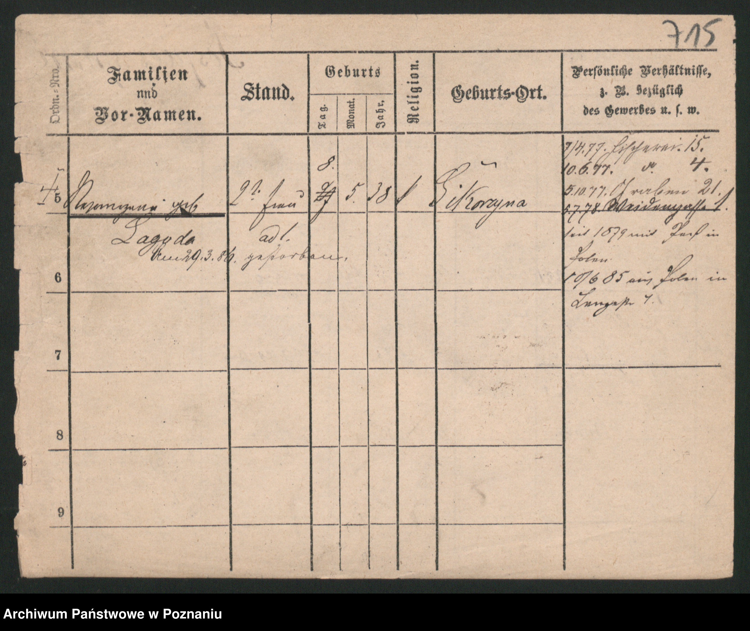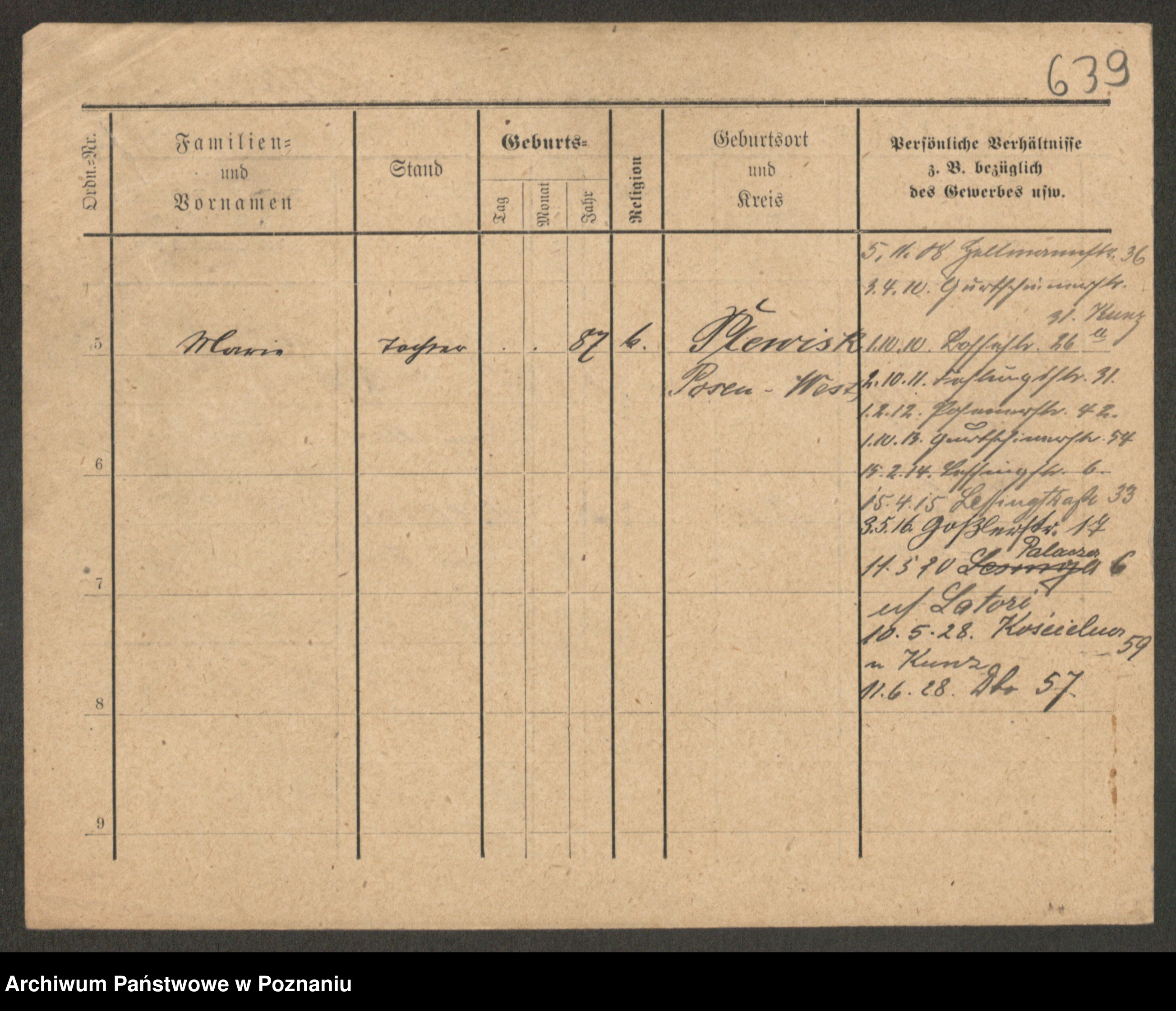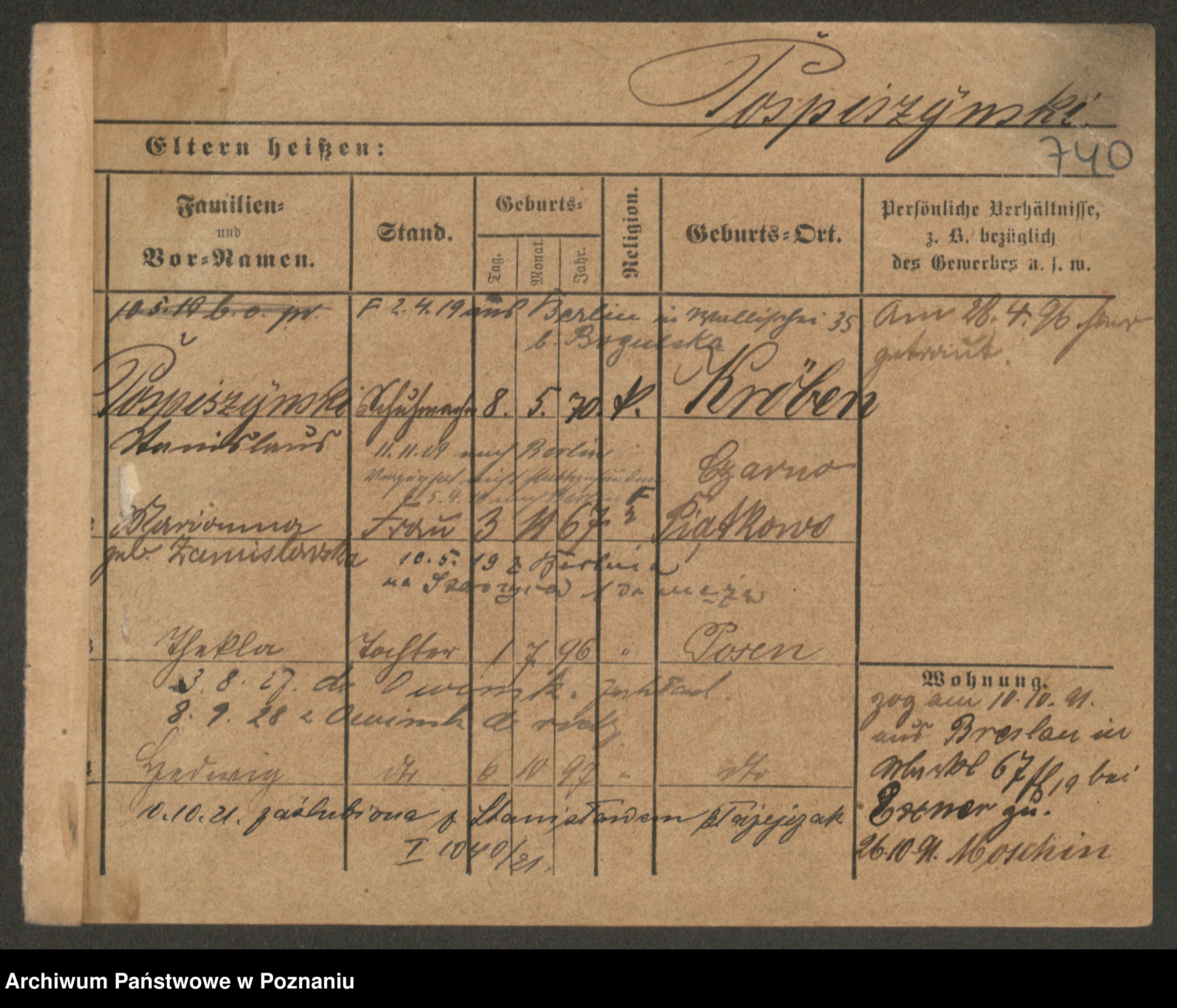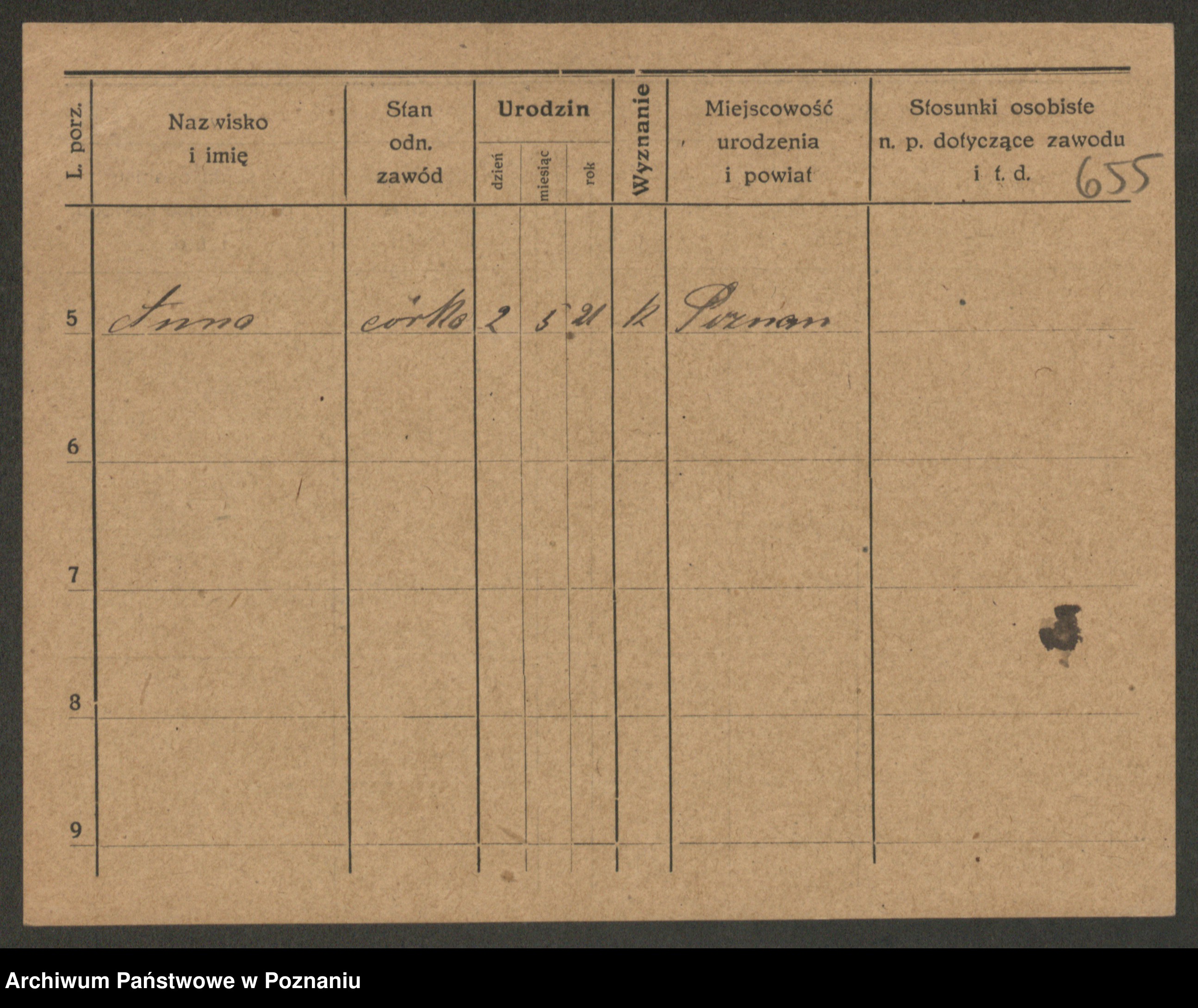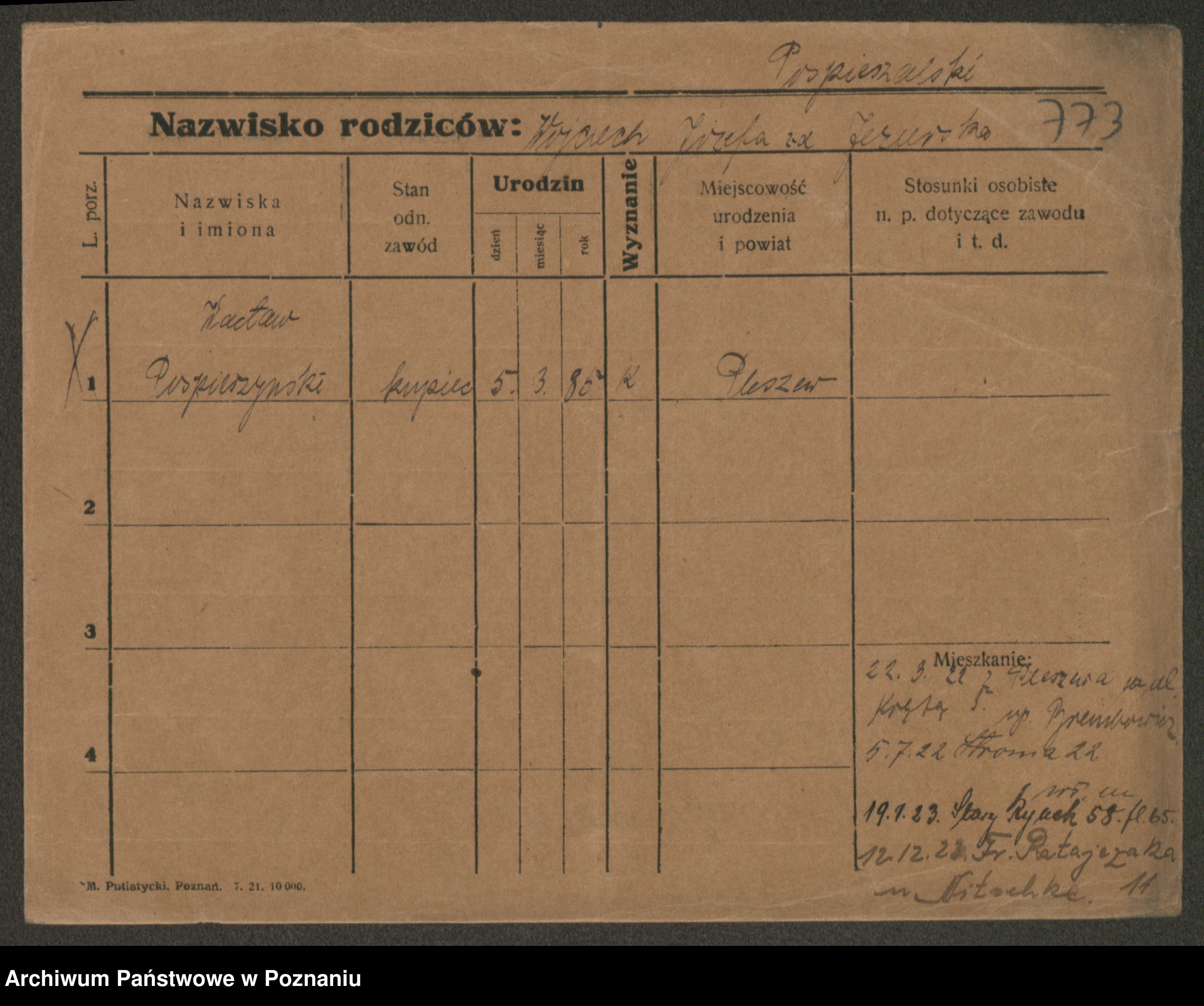Podgląd karty osobowej dostępny jest po kliknięciu na nazwisko lub ikonkę karty. Można dokonywać powiększenia (ikony na górze) lub przechodzić między kolejnymi skanami (strzałki po bokach).