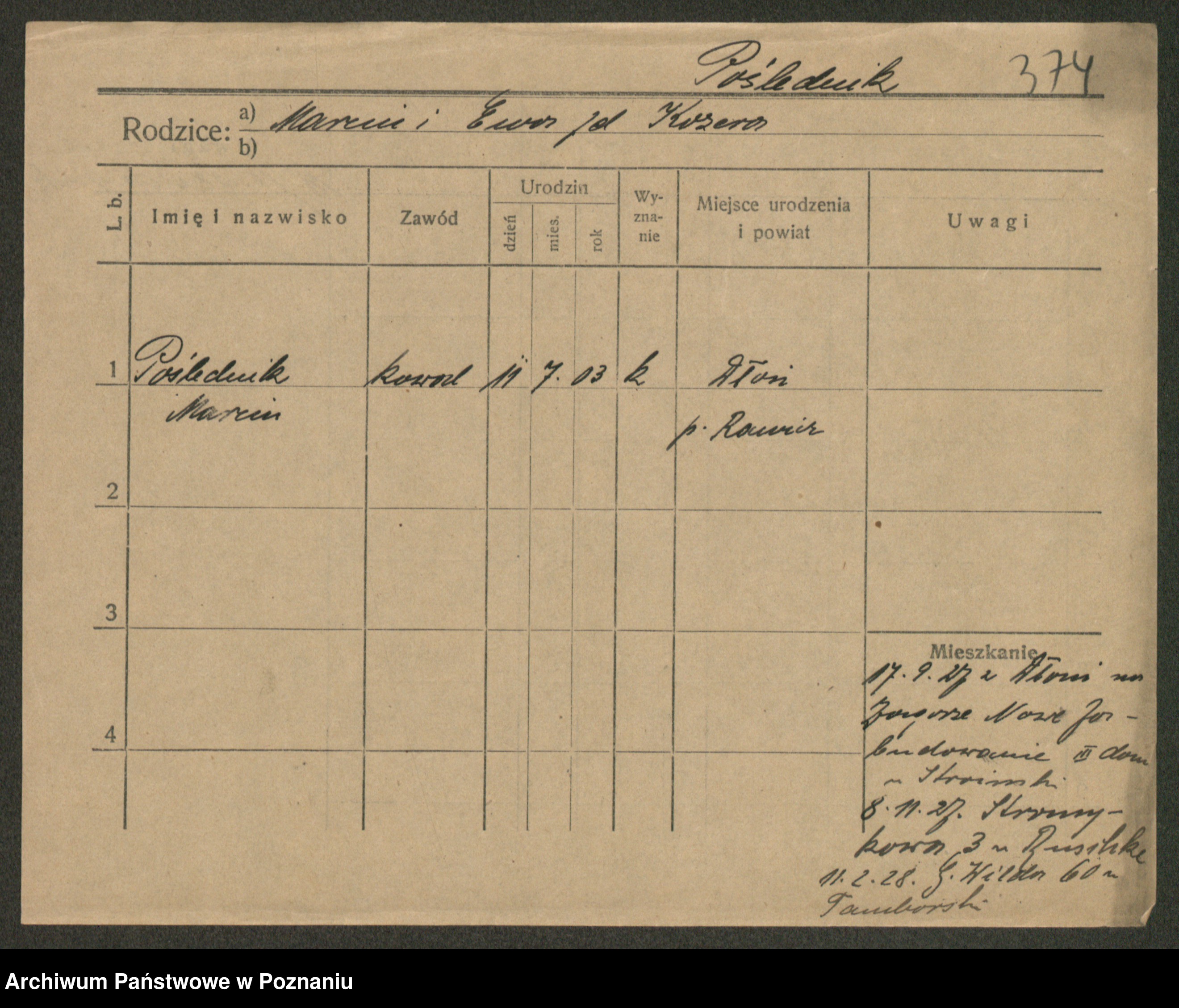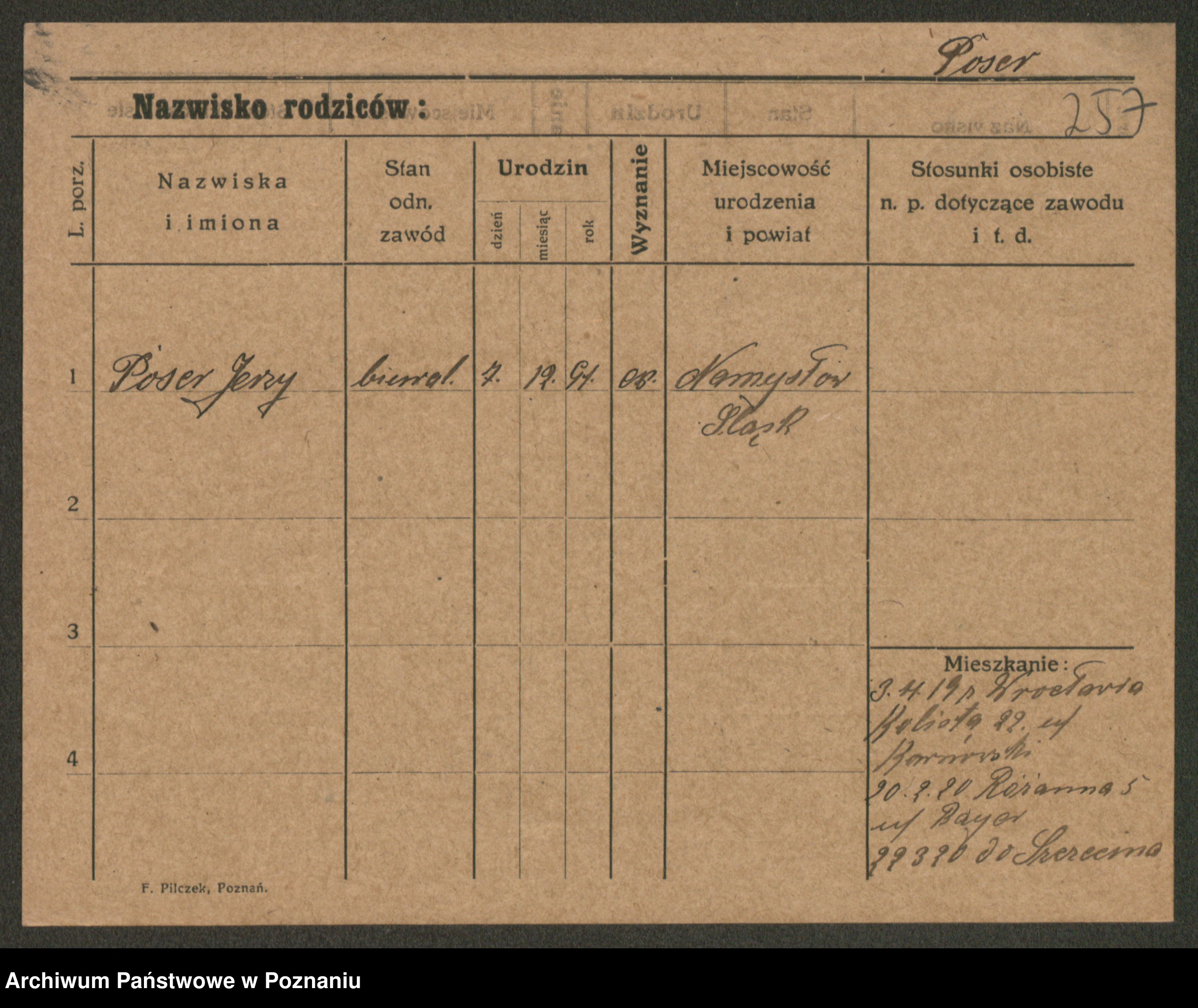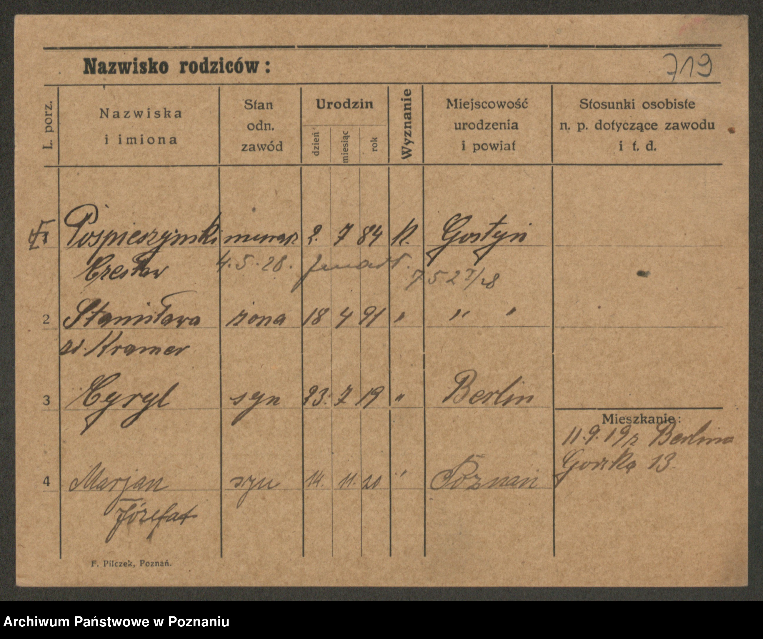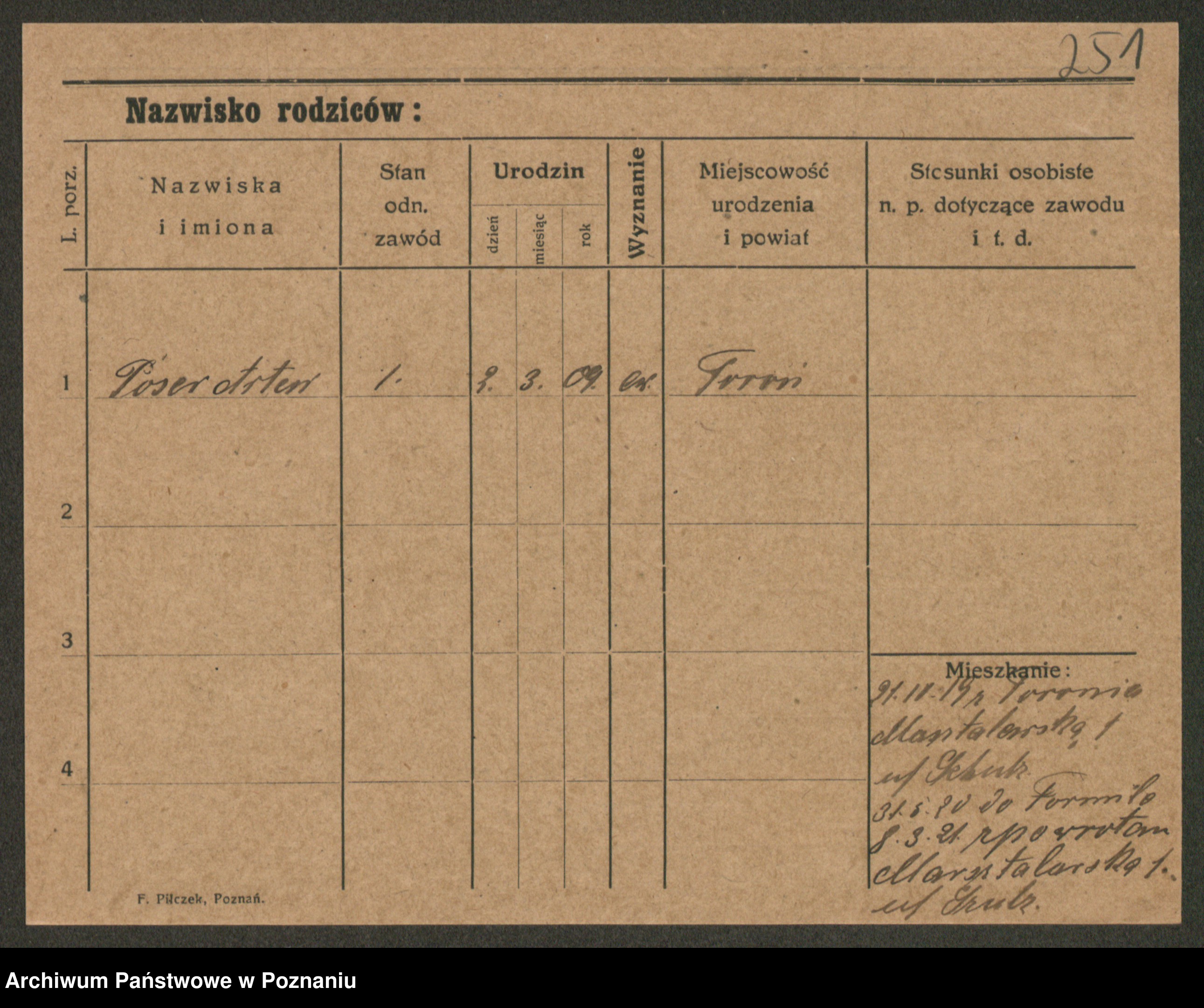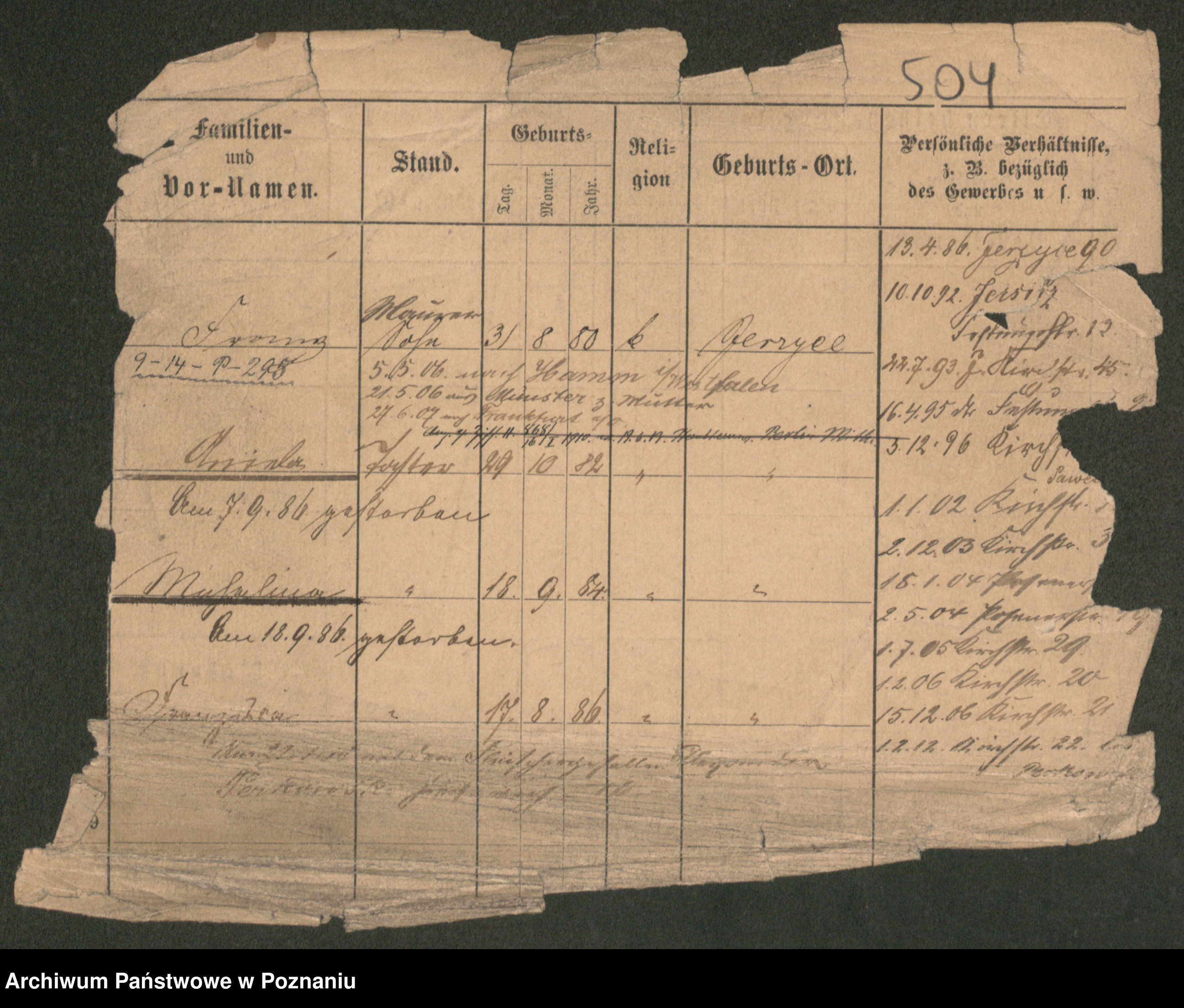 Podgląd karty osobowej dostępny jest po kliknięciu na nazwisko lub ikonkę karty. Można dokonywać powiększenia (ikony na górze) lub przechodzić między kolejnymi skanami (strzałki po bokach).