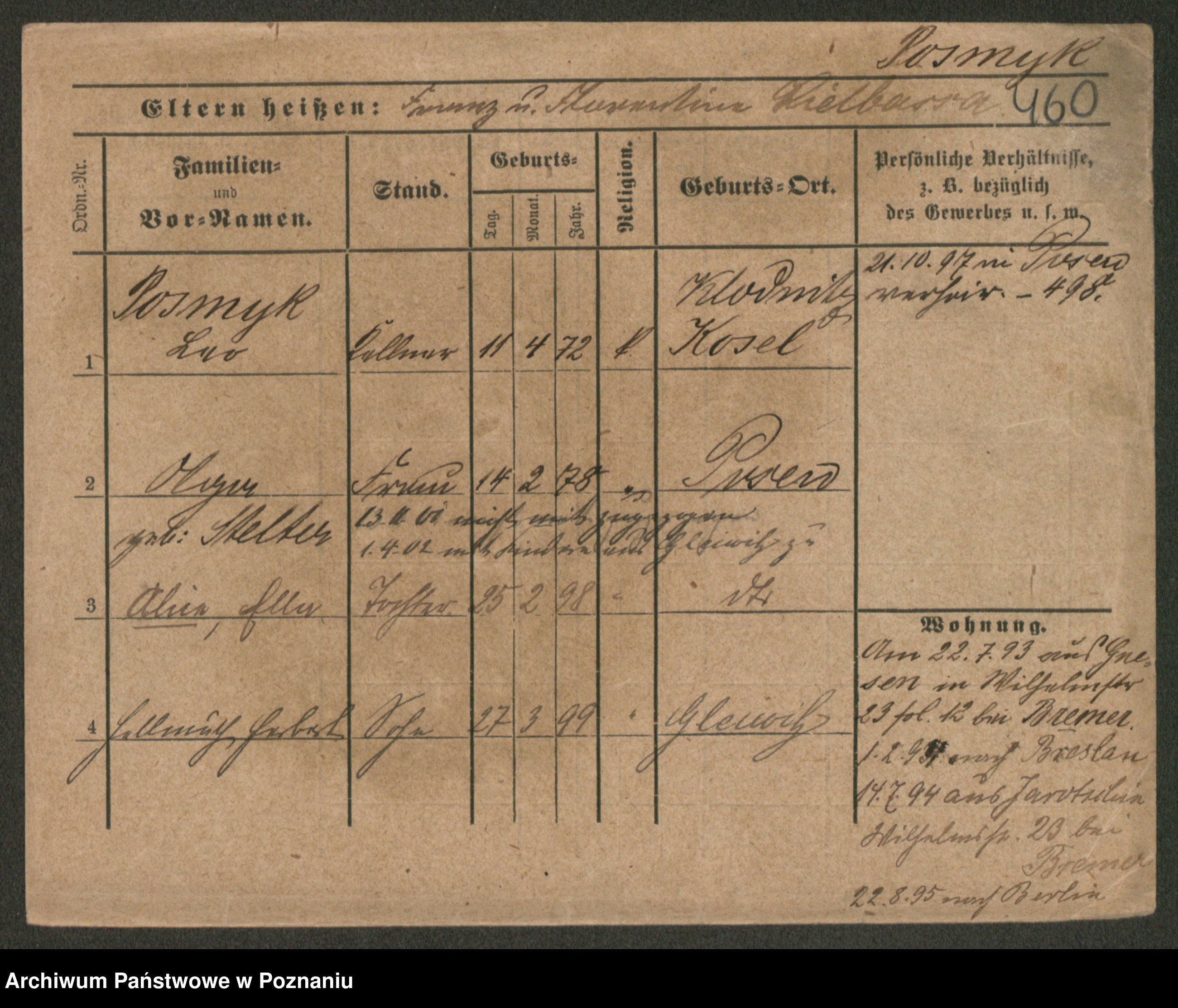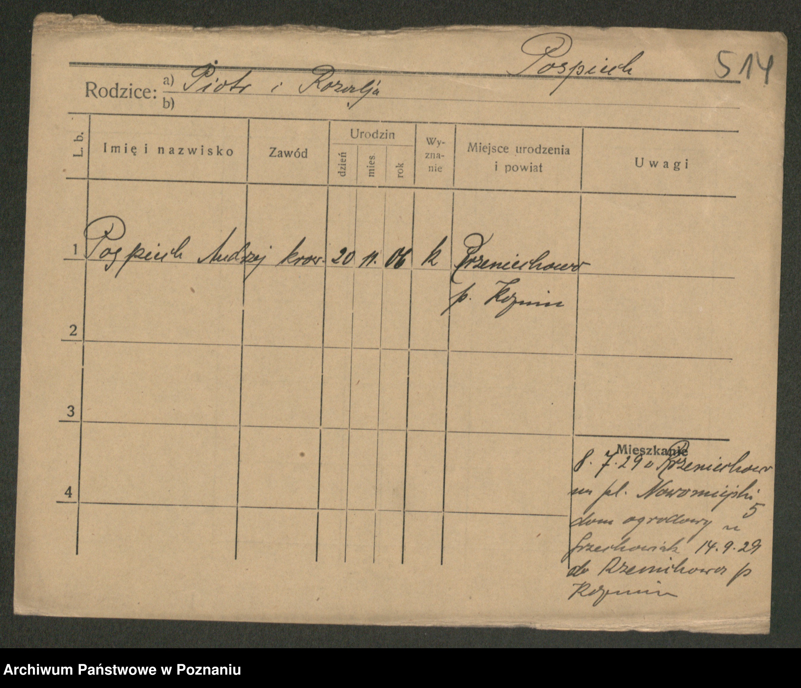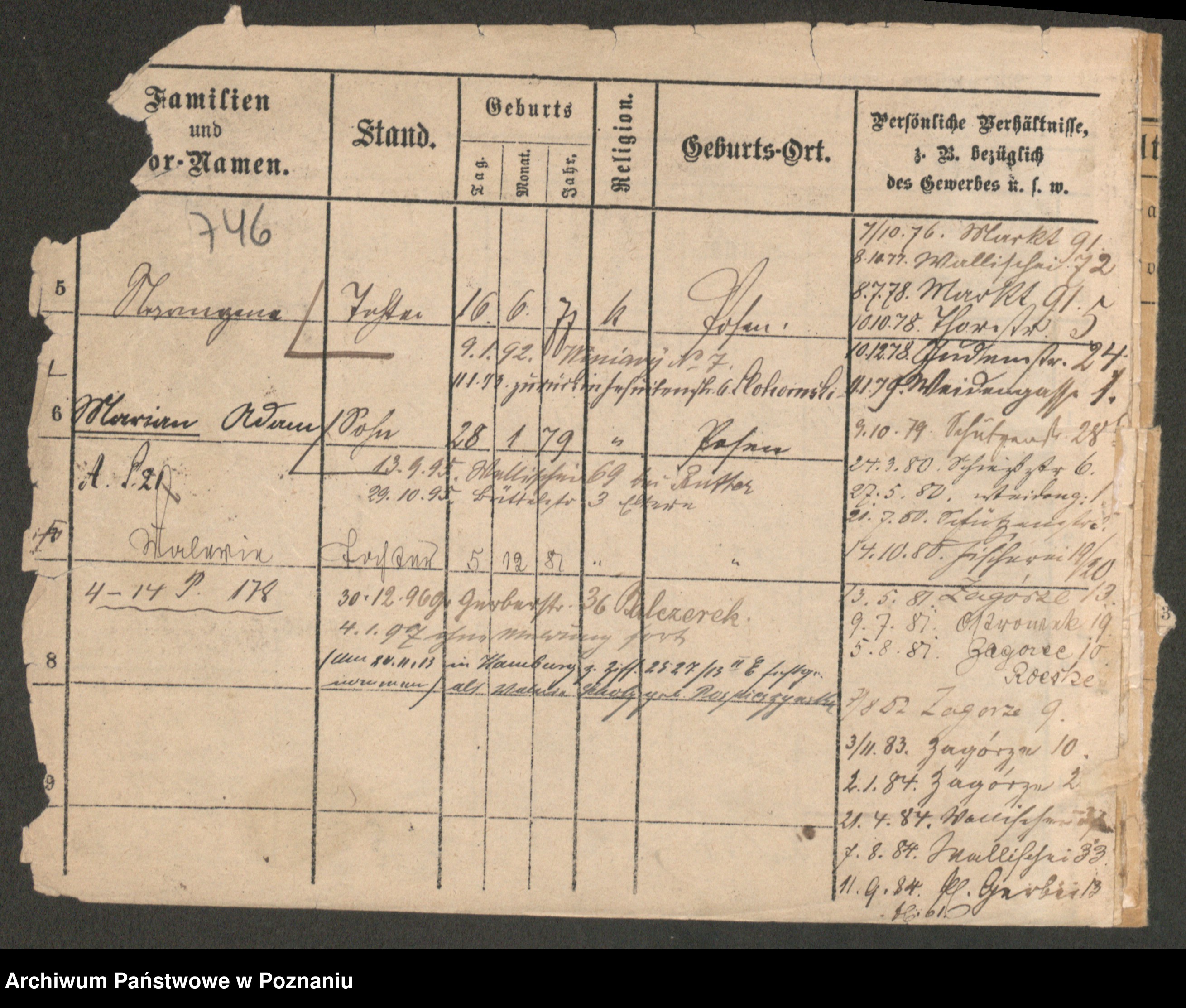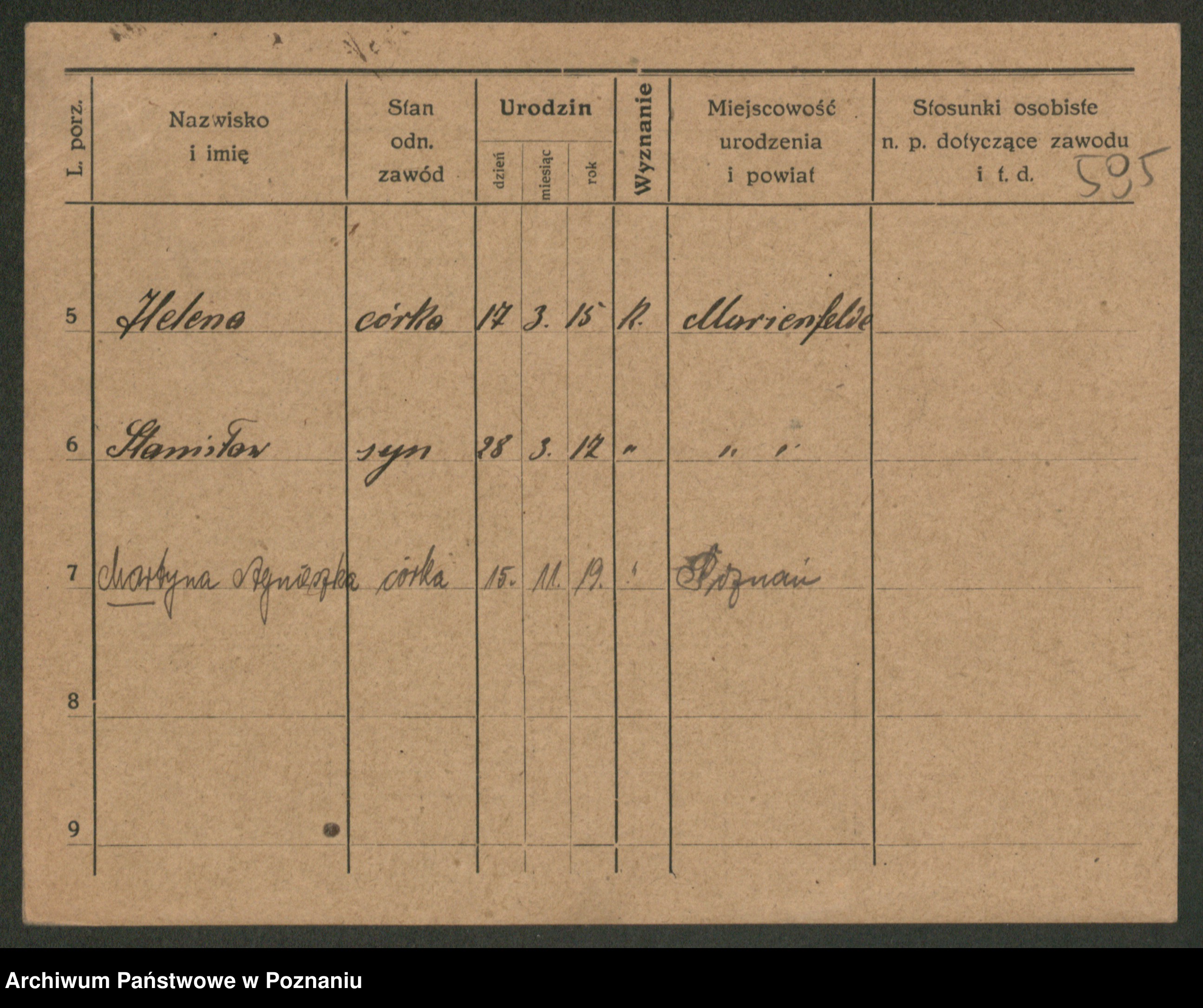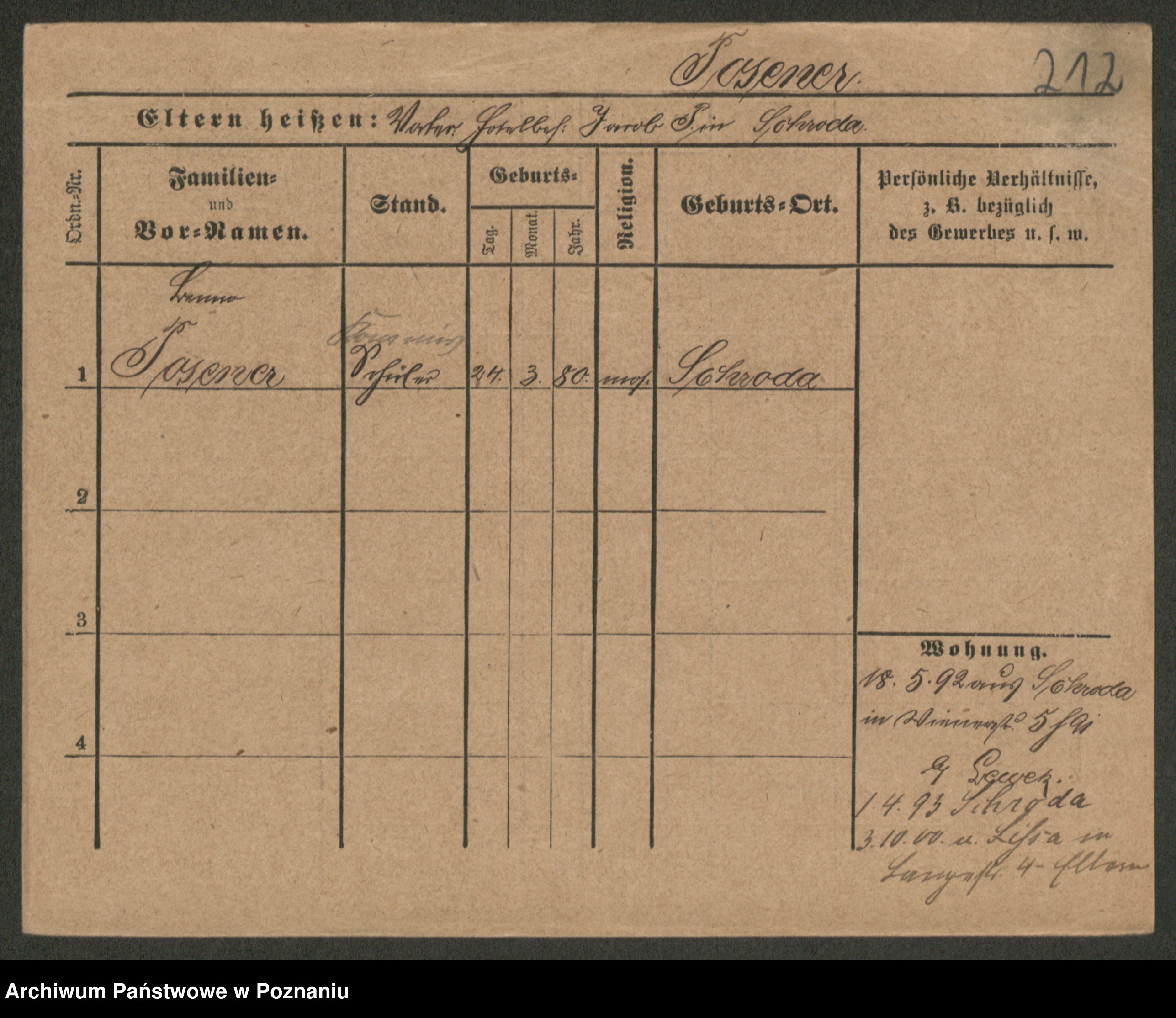 Podgląd karty osobowej dostępny jest po kliknięciu na nazwisko lub ikonkę karty. Można dokonywać powiększenia (ikony na górze) lub przechodzić między kolejnymi skanami (strzałki po bokach).