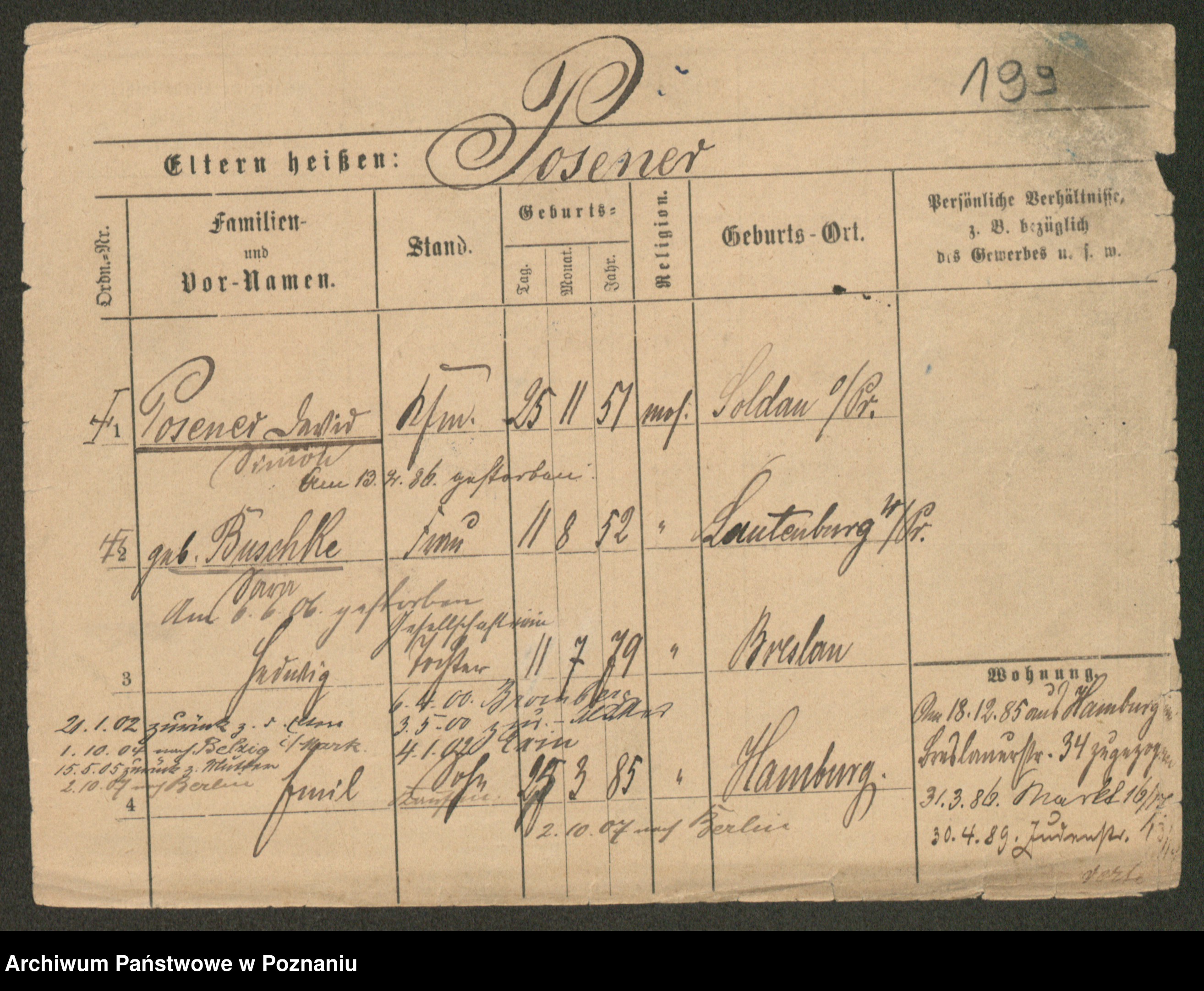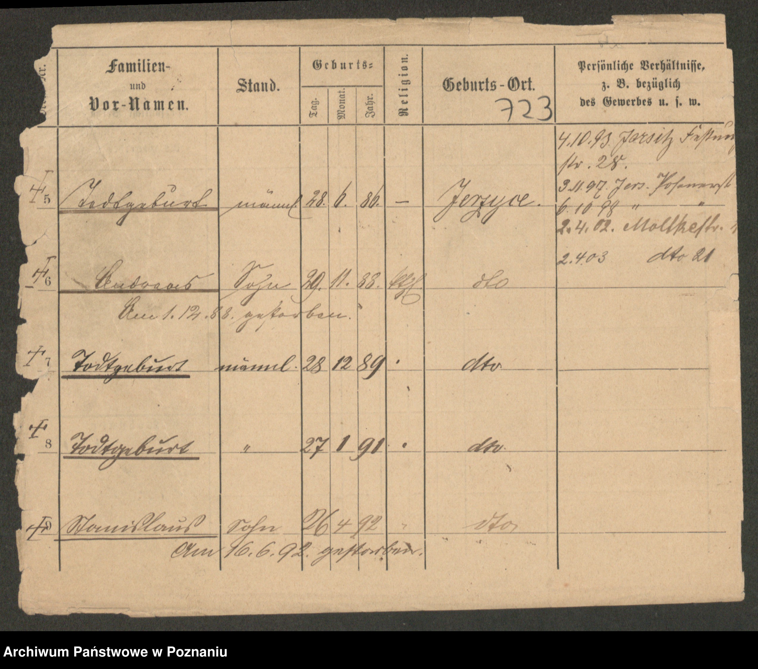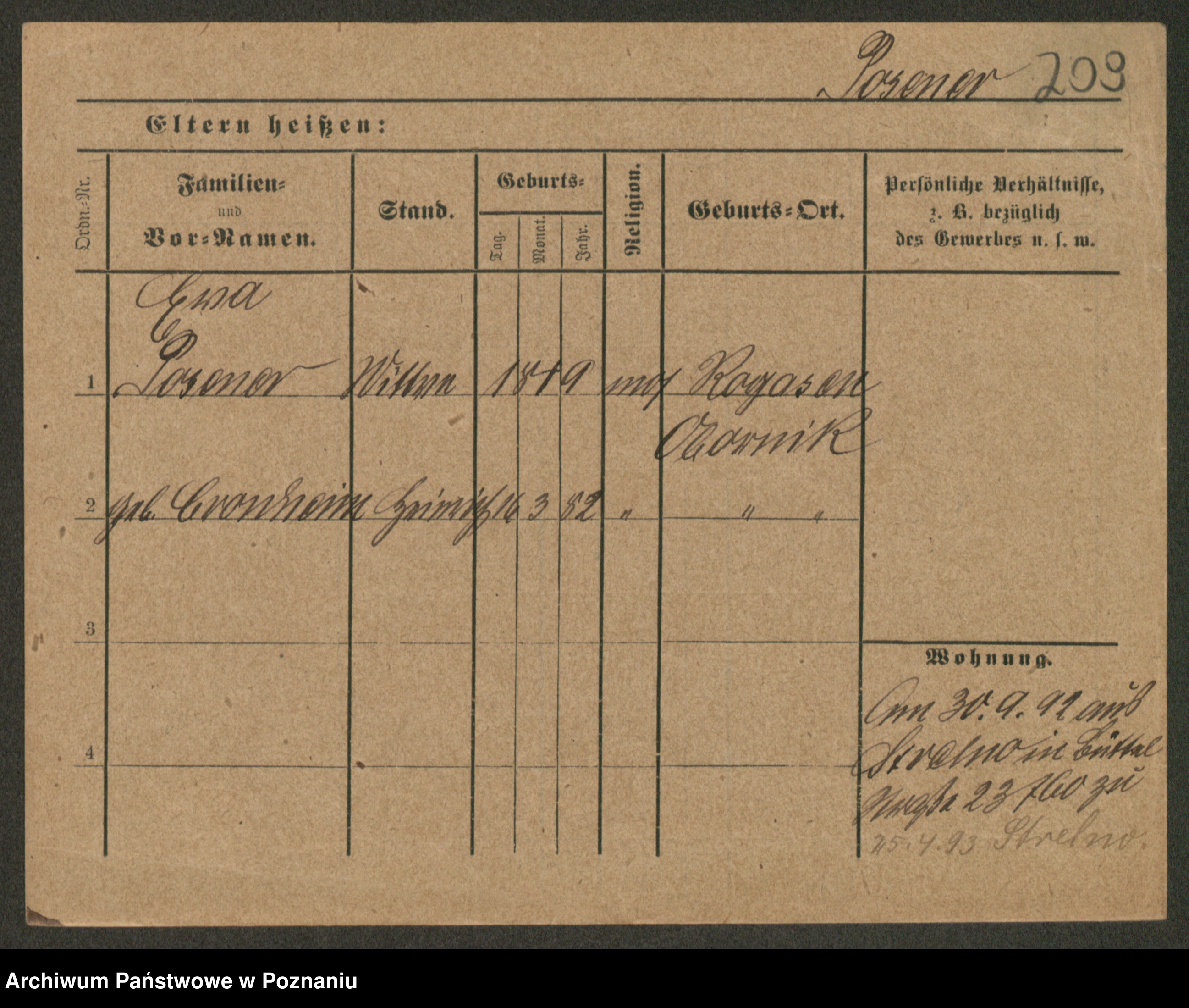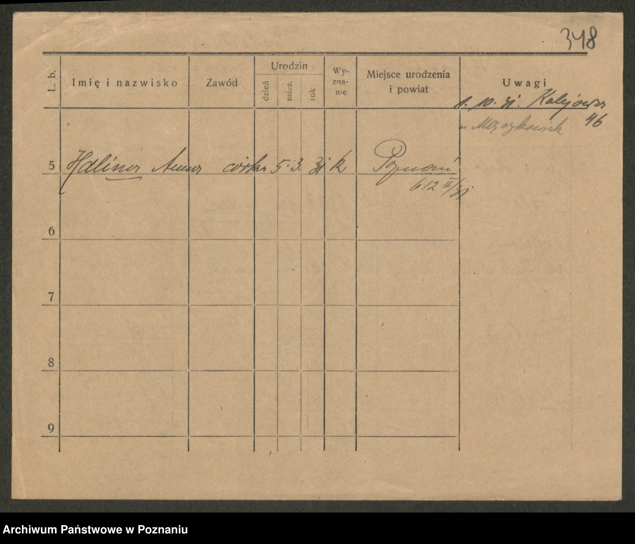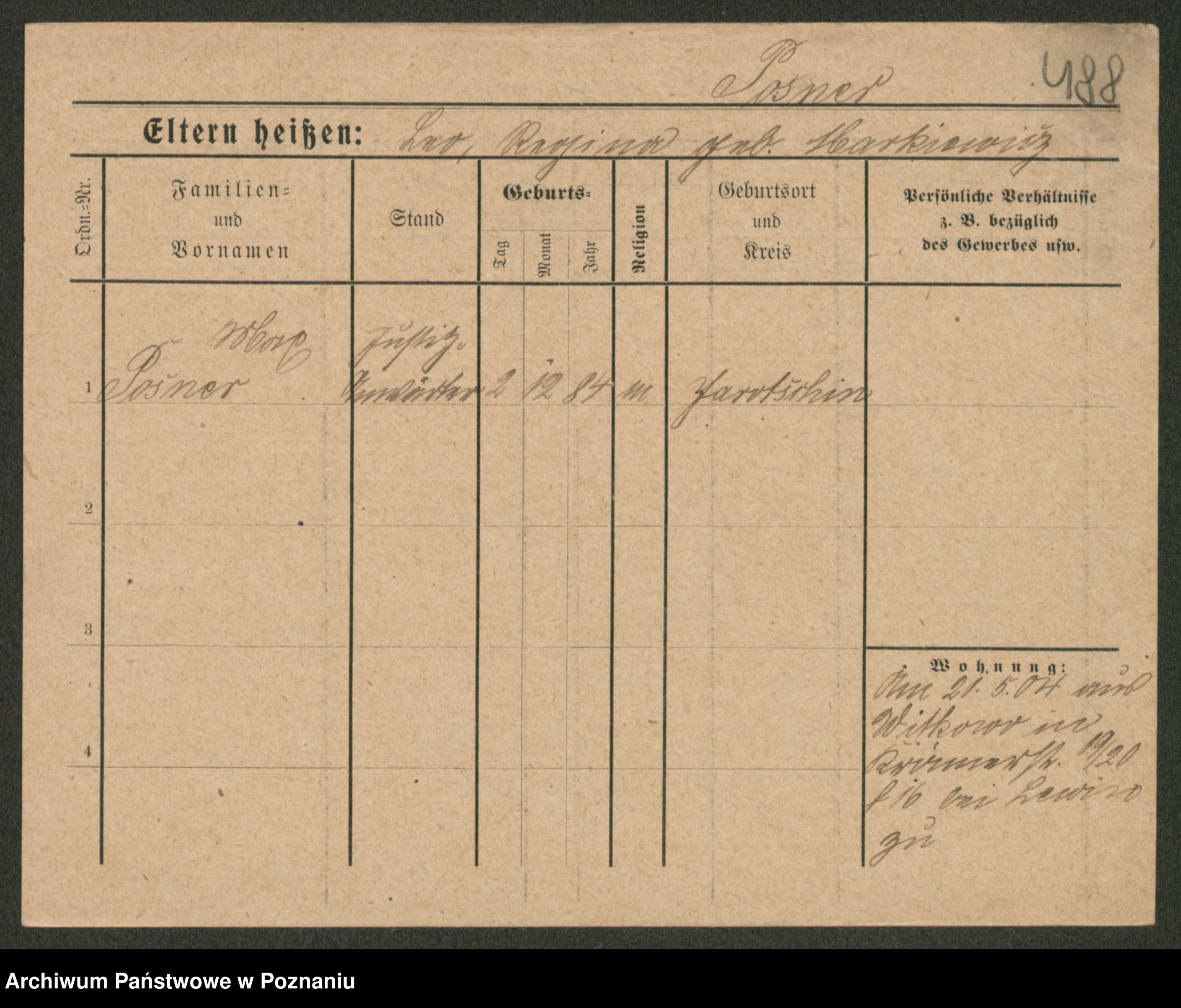 Podgląd karty osobowej dostępny jest po kliknięciu na nazwisko lub ikonkę karty. Można dokonywać powiększenia (ikony na górze) lub przechodzić między kolejnymi skanami (strzałki po bokach).