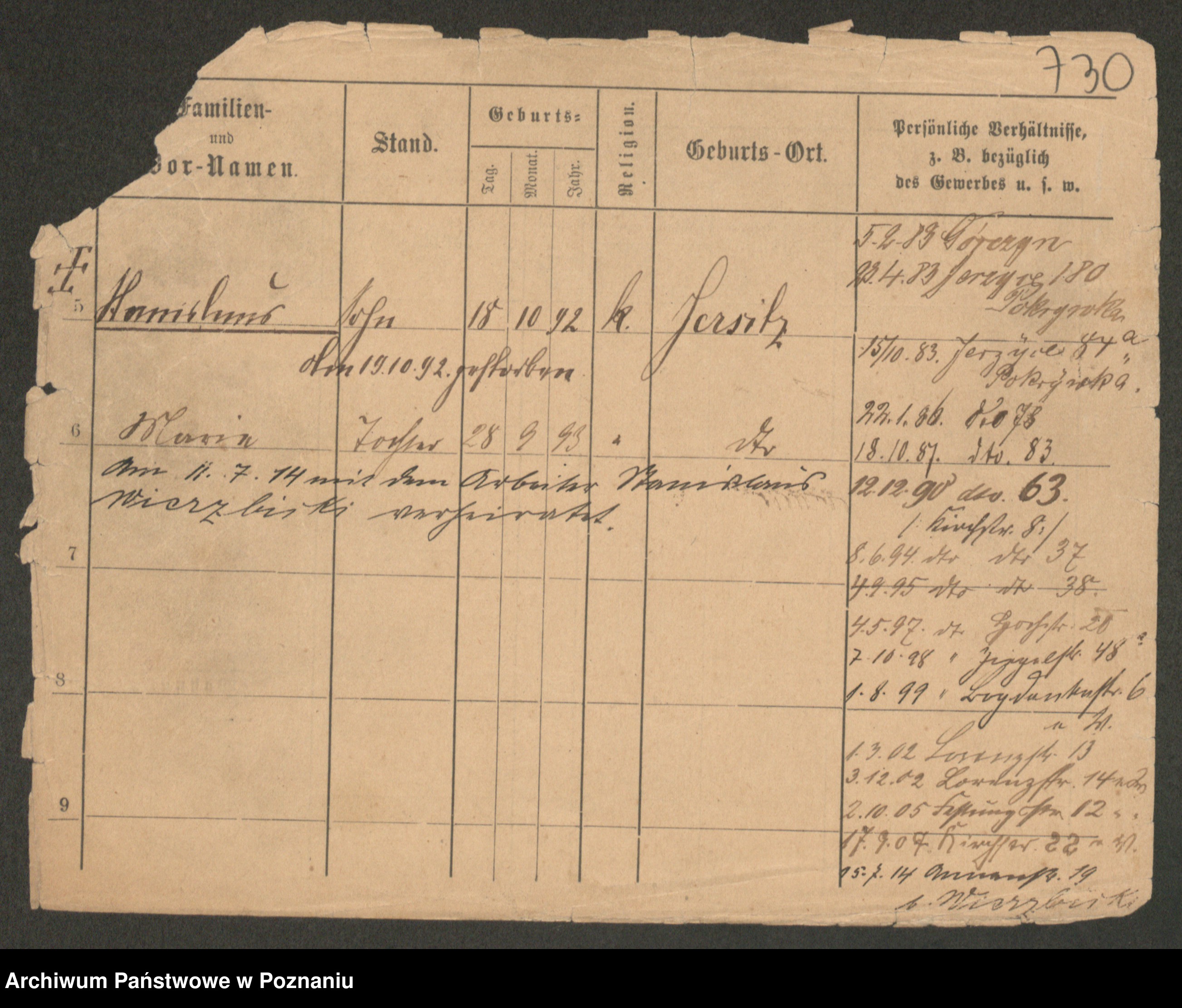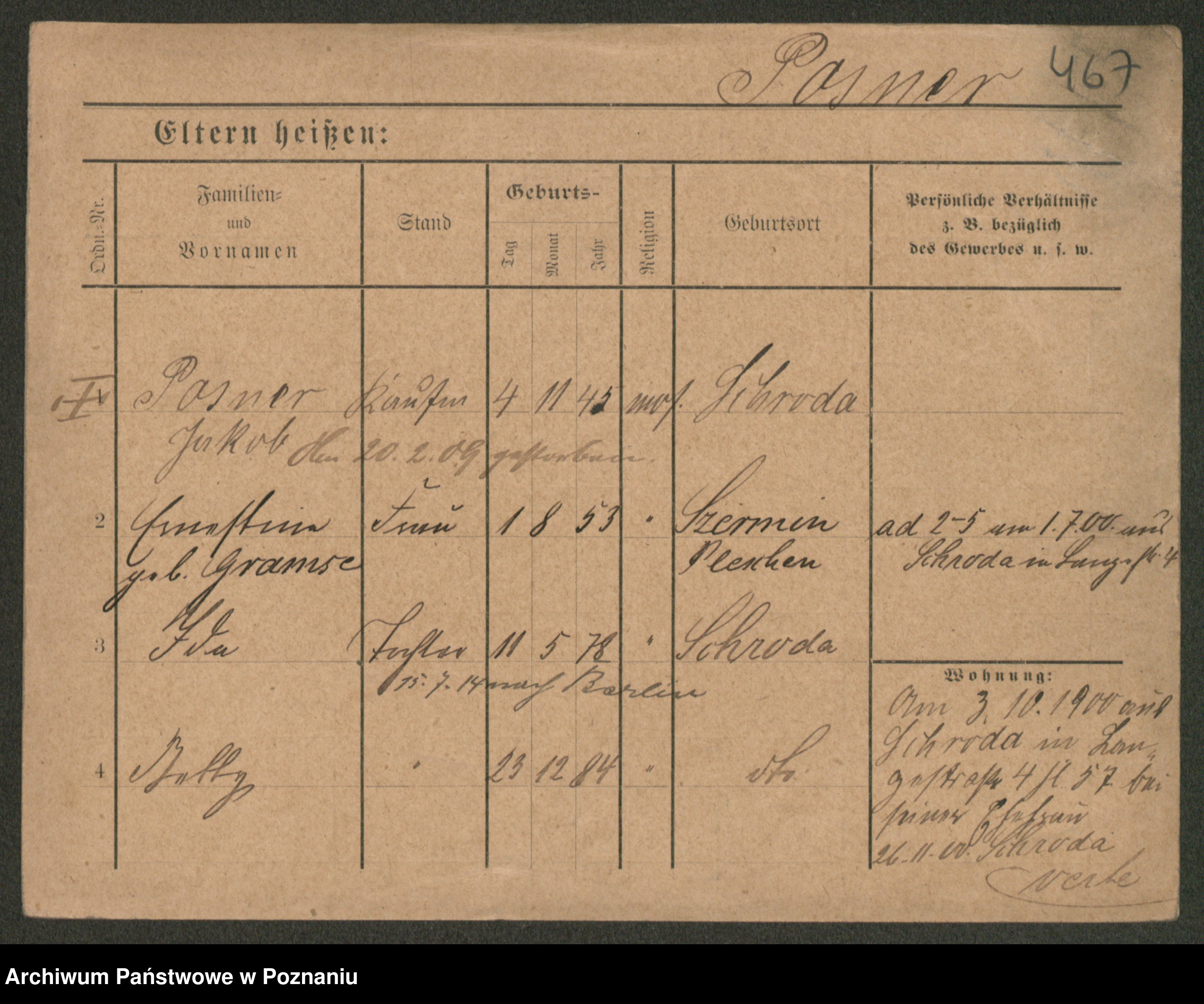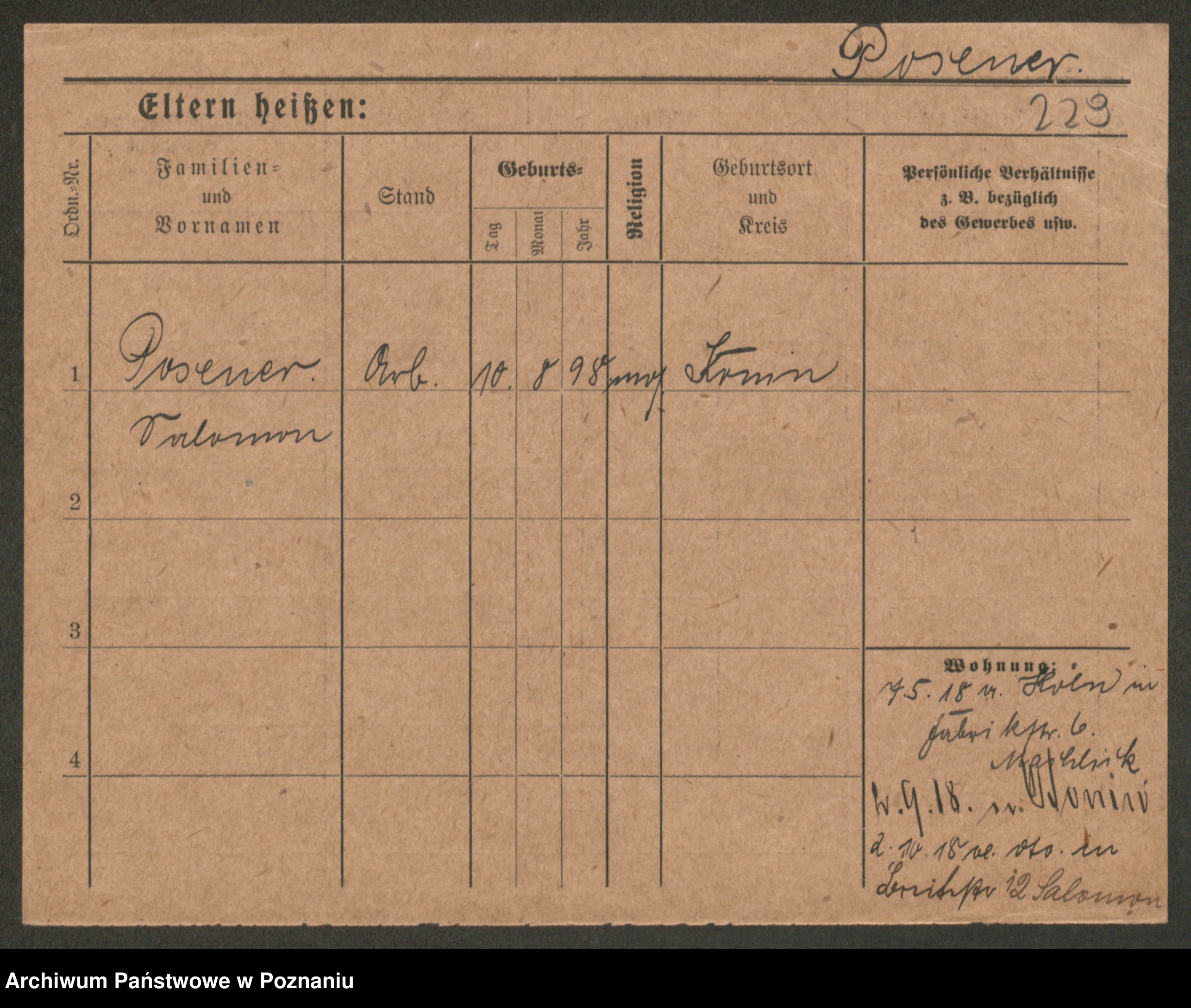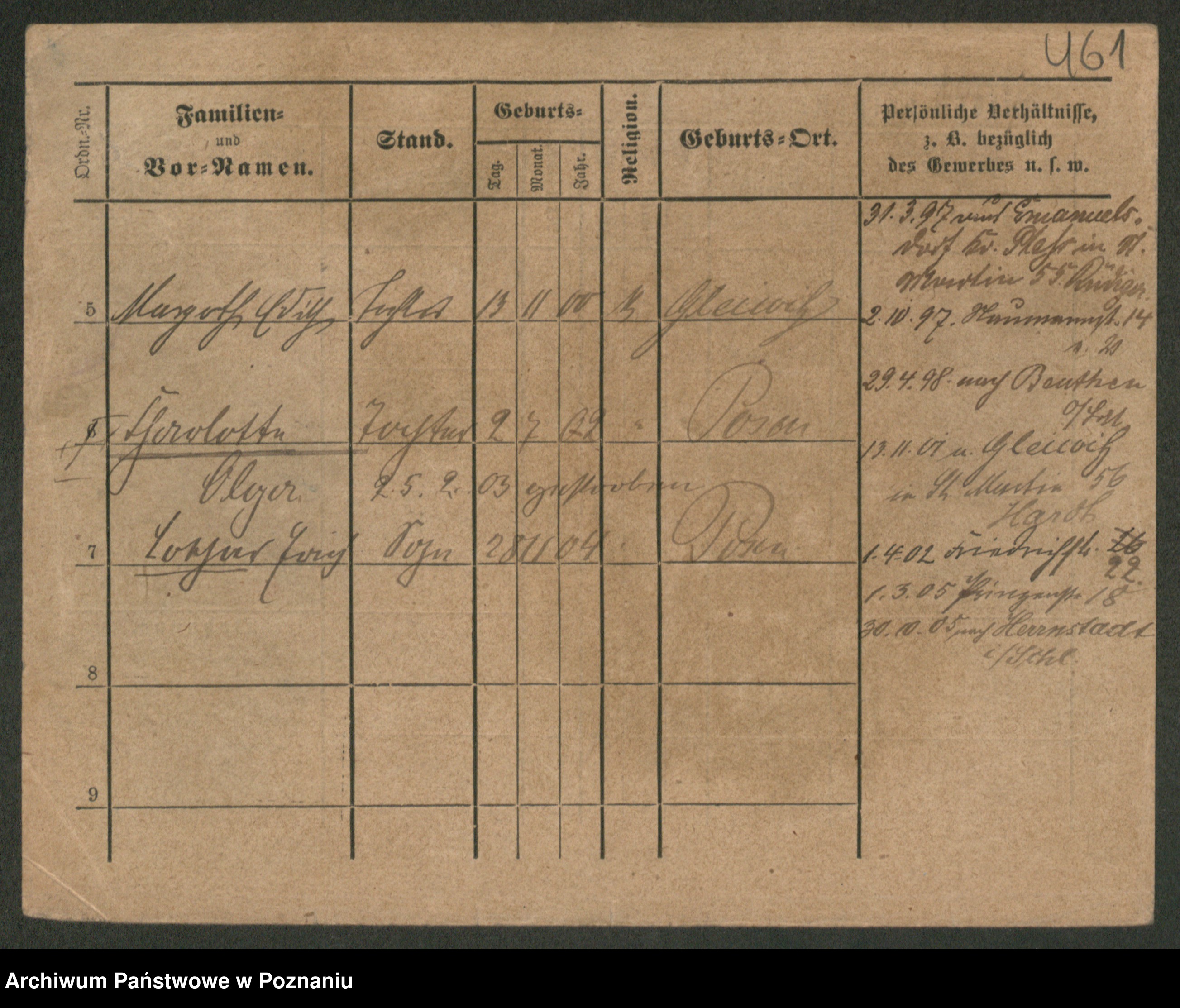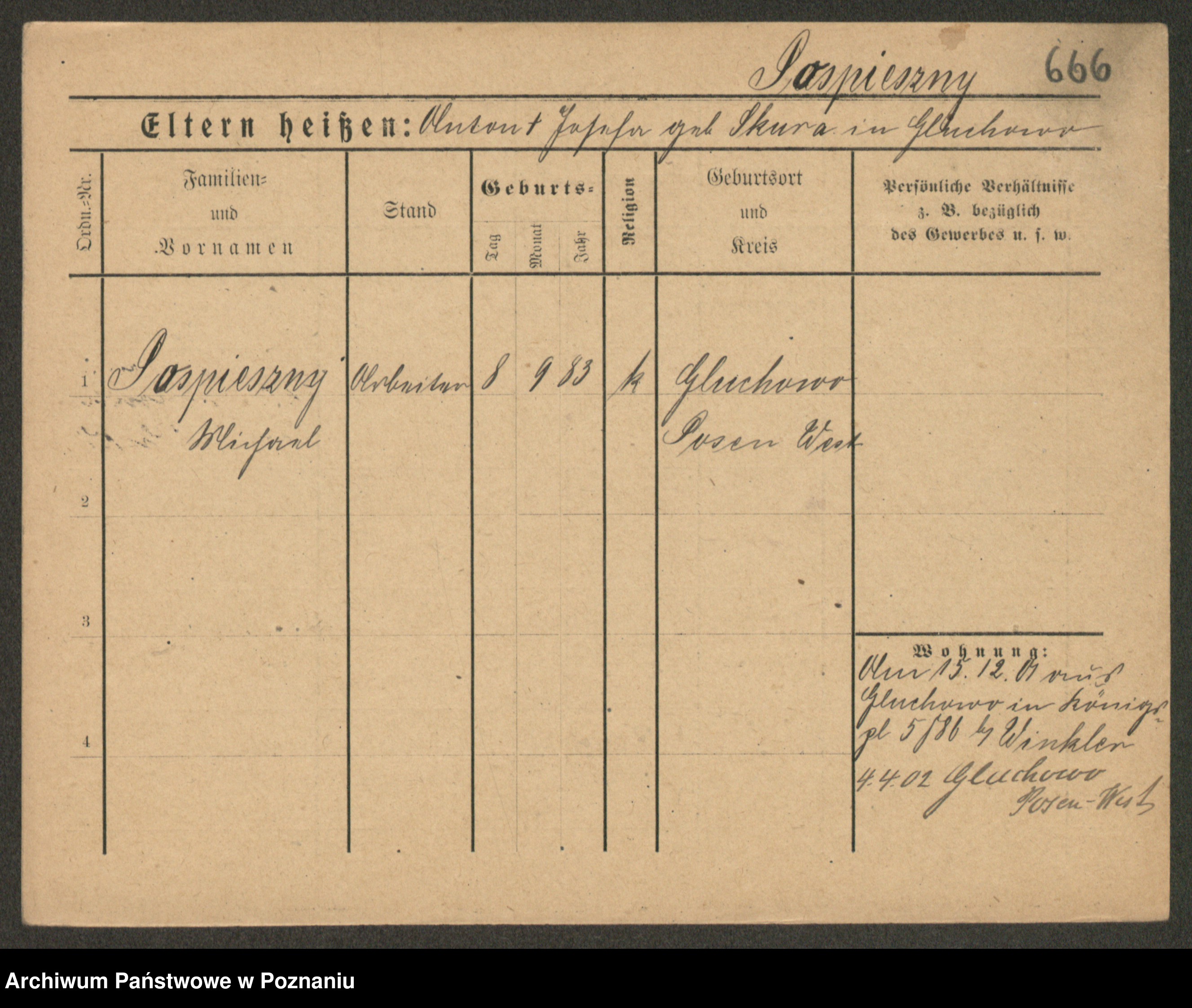 Podgląd karty osobowej dostępny jest po kliknięciu na nazwisko lub ikonkę karty. Można dokonywać powiększenia (ikony na górze) lub przechodzić między kolejnymi skanami (strzałki po bokach).