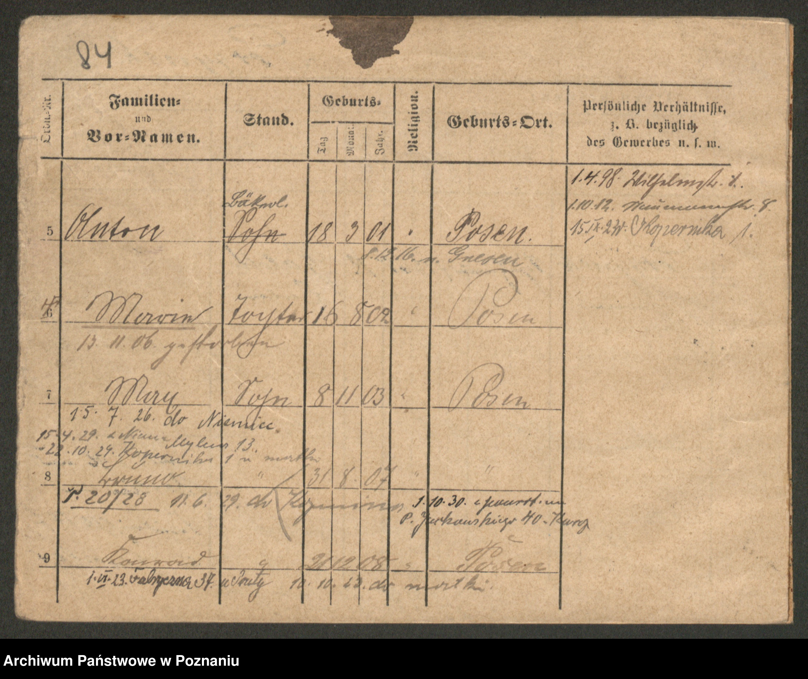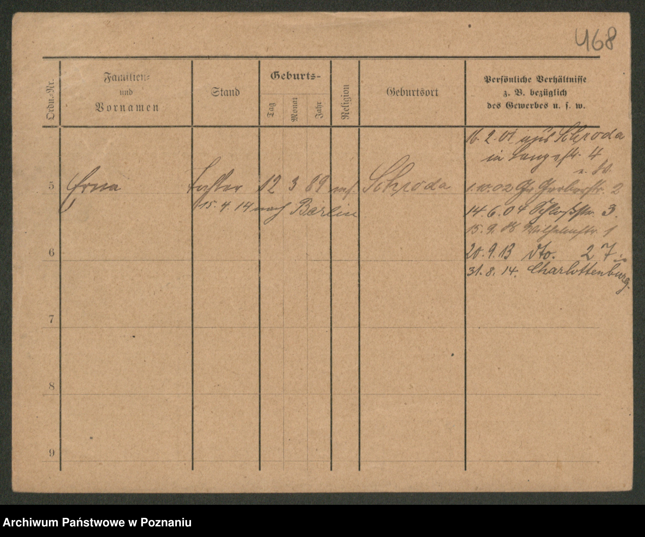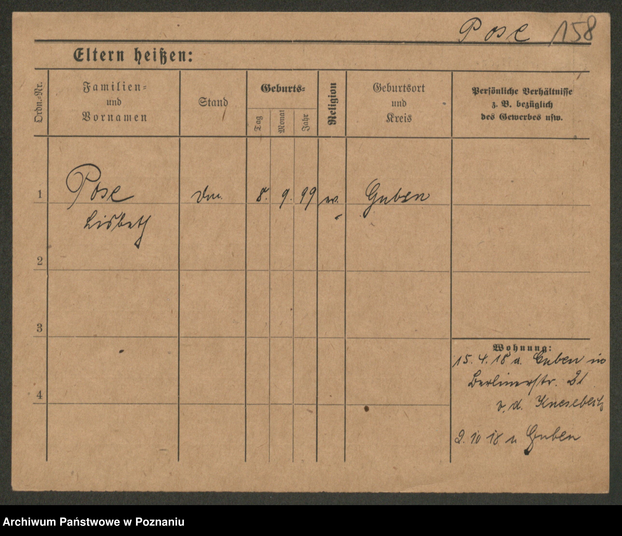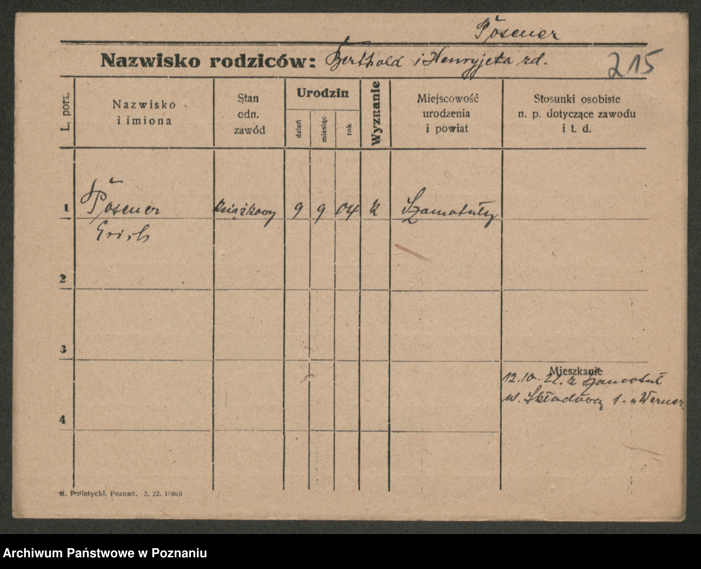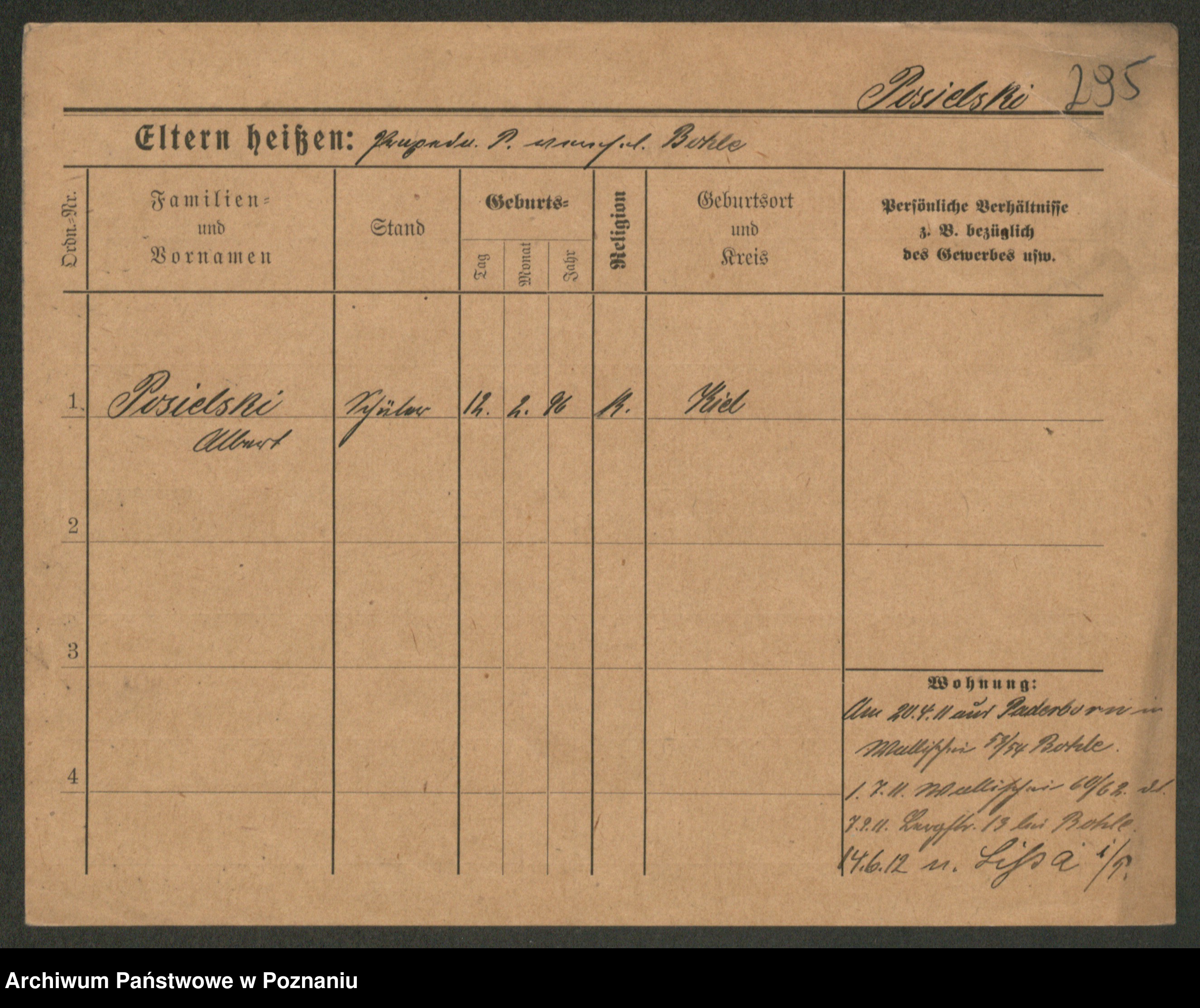 Podgląd karty osobowej dostępny jest po kliknięciu na nazwisko lub ikonkę karty. Można dokonywać powiększenia (ikony na górze) lub przechodzić między kolejnymi skanami (strzałki po bokach).