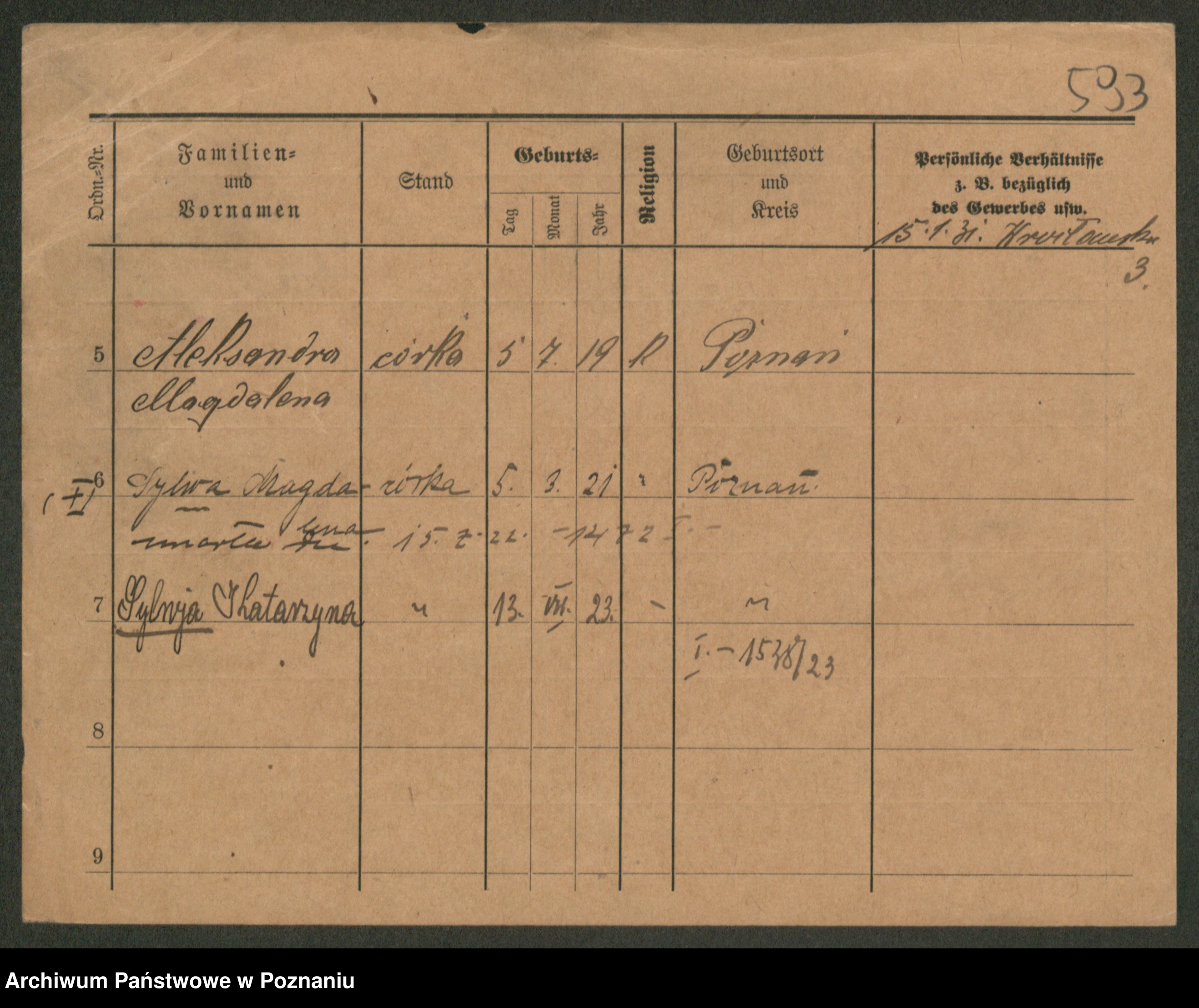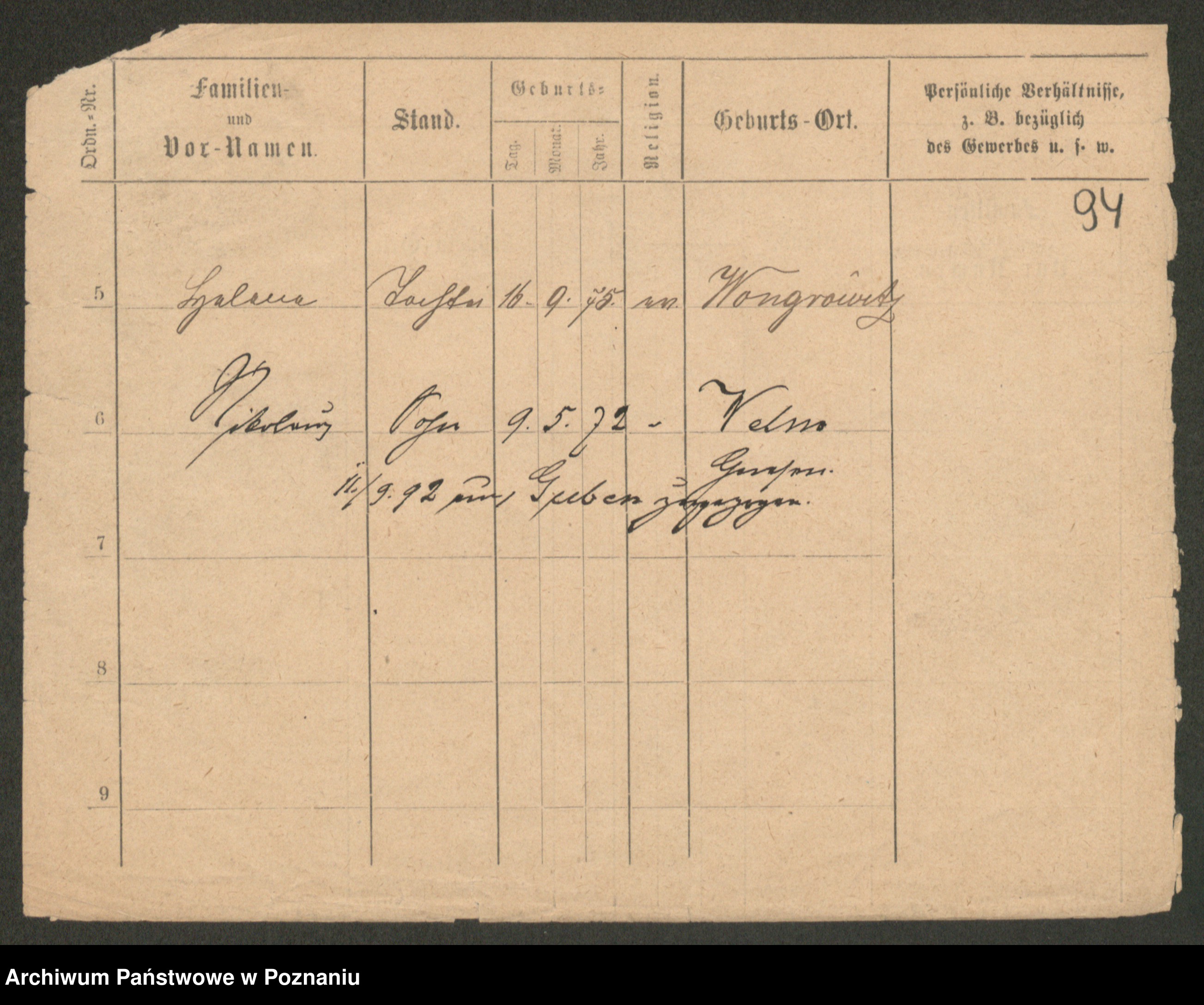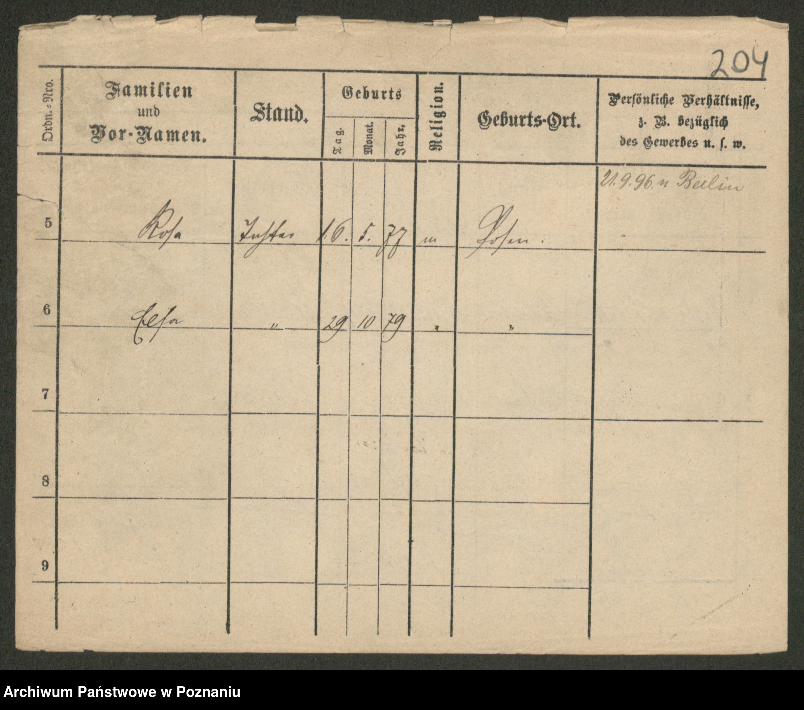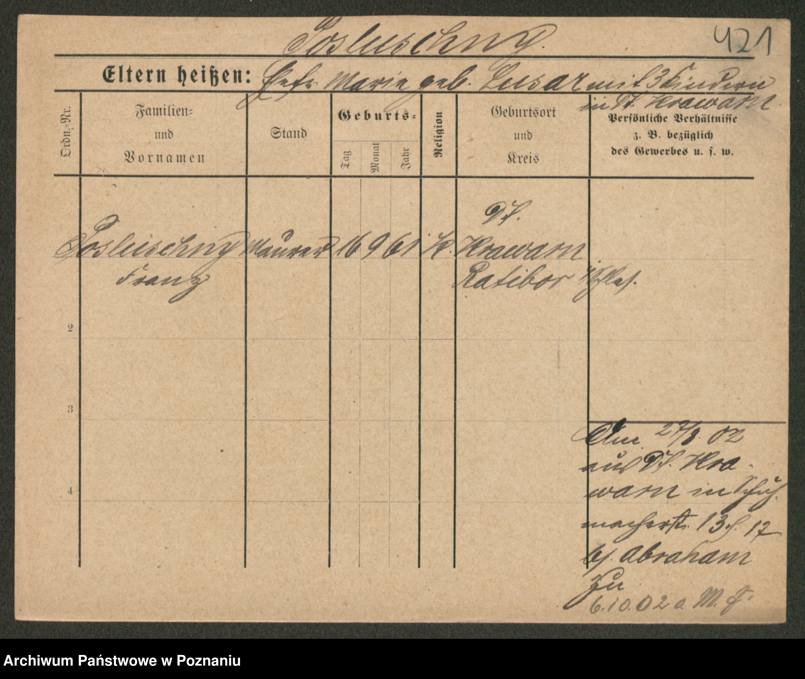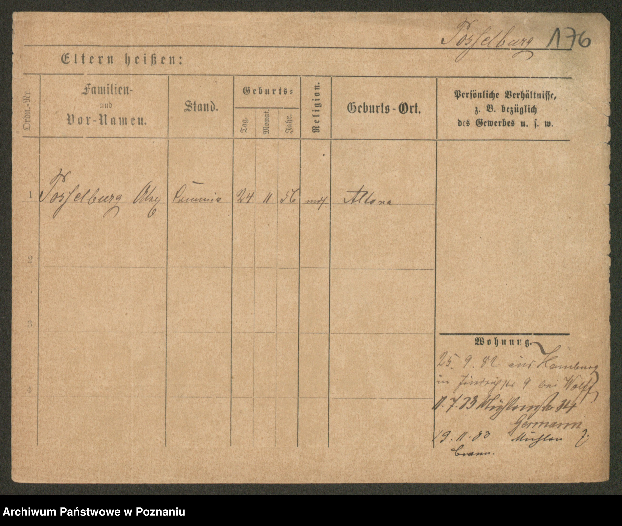 Podgląd karty osobowej dostępny jest po kliknięciu na nazwisko lub ikonkę karty. Można dokonywać powiększenia (ikony na górze) lub przechodzić między kolejnymi skanami (strzałki po bokach).
