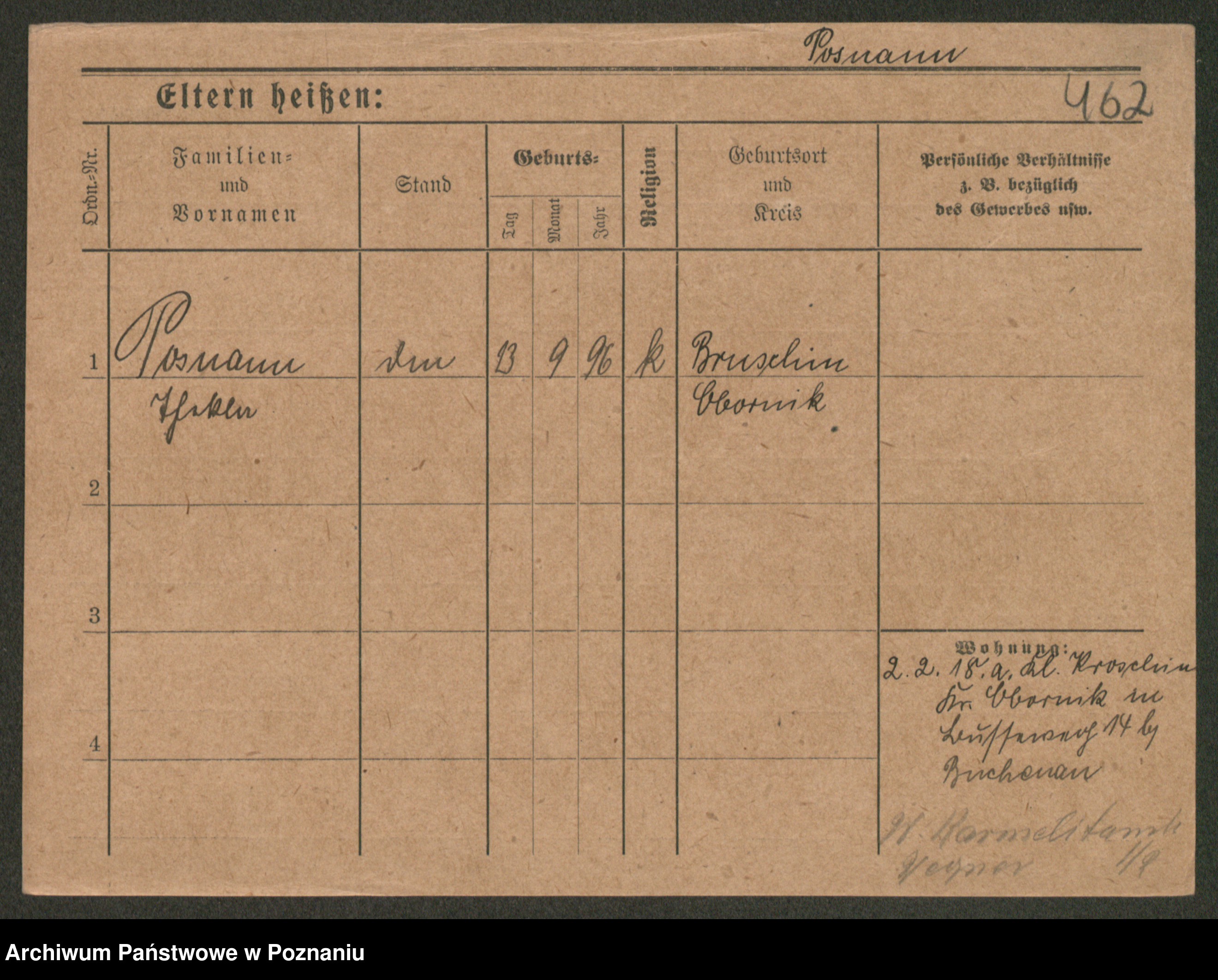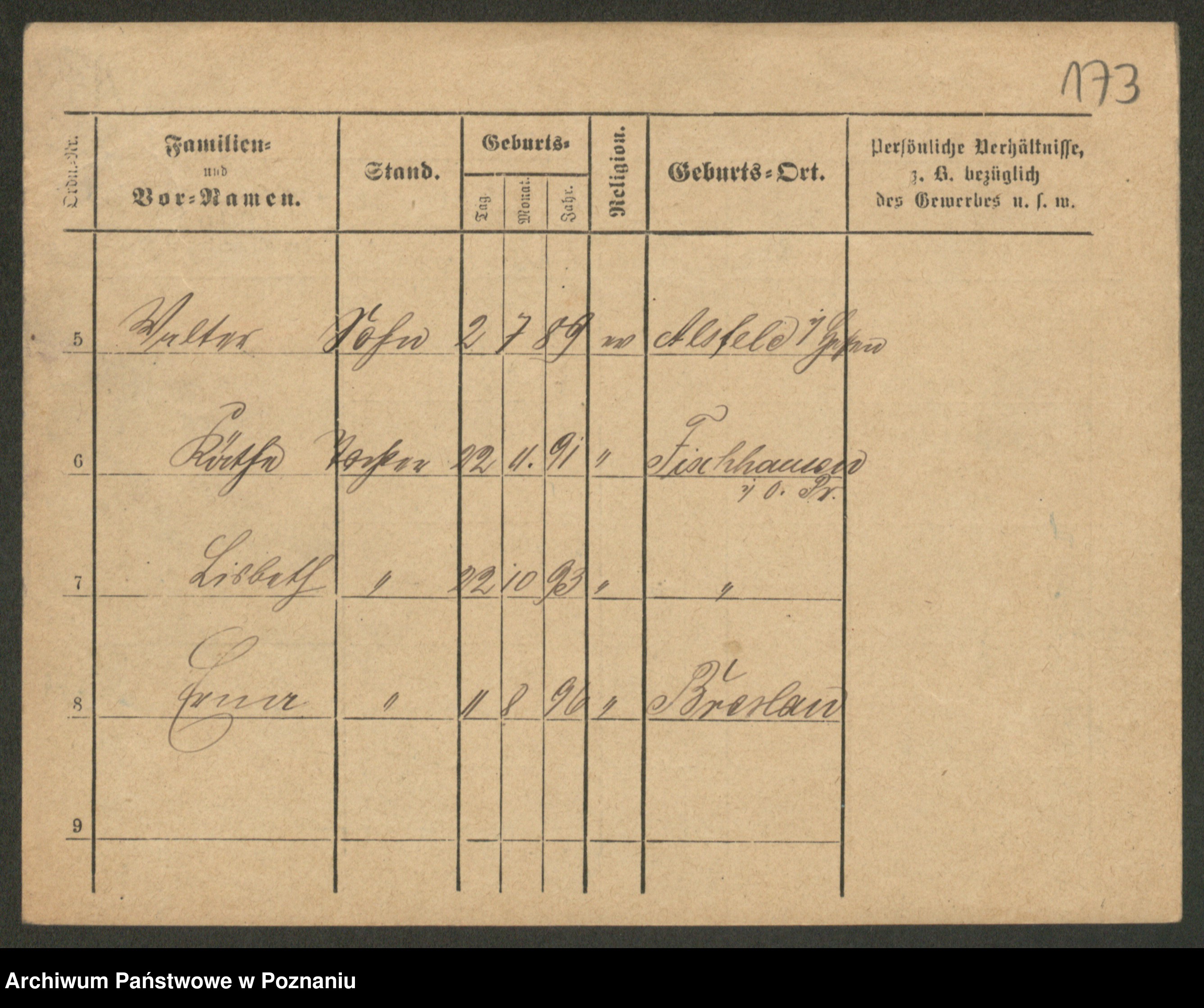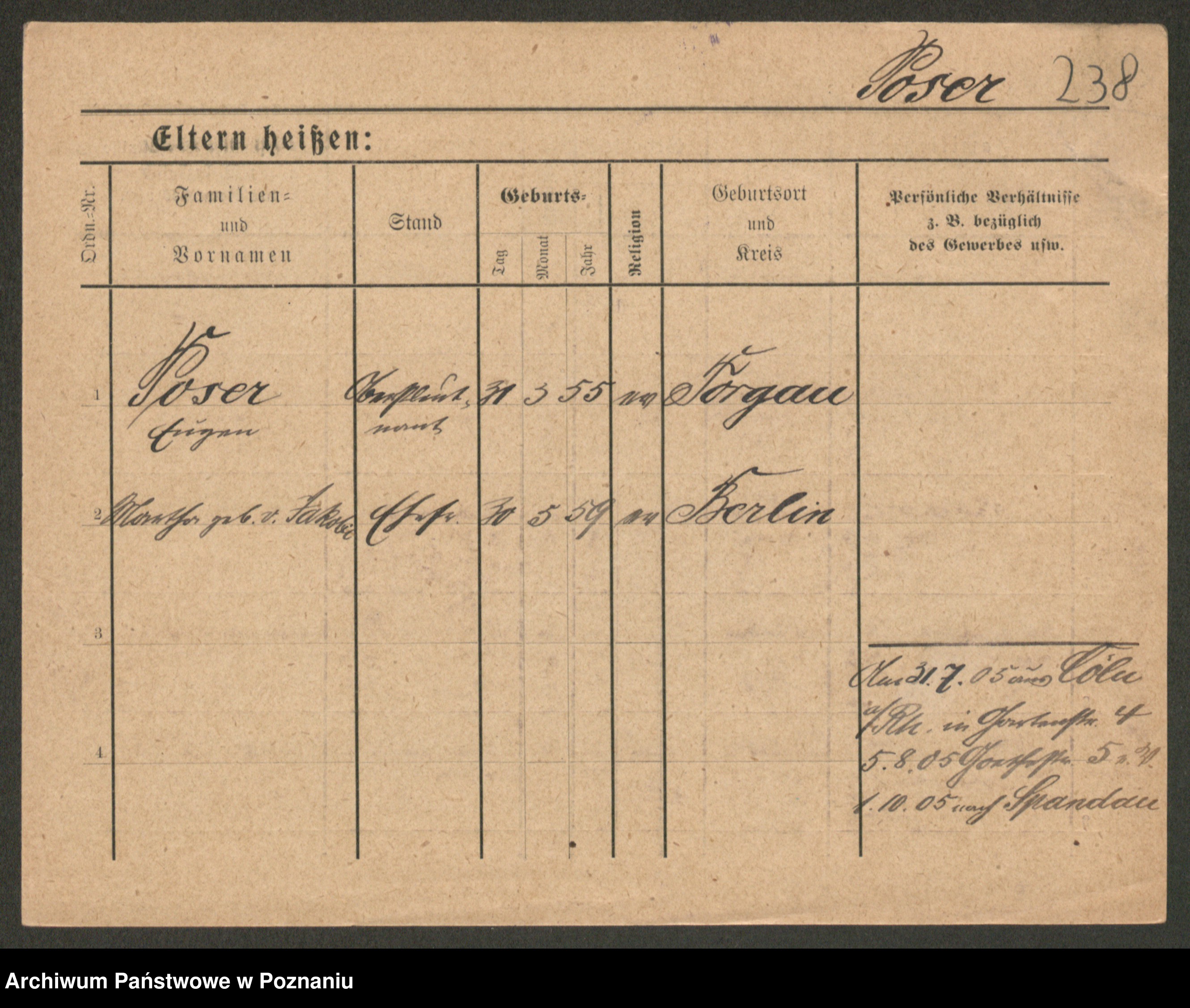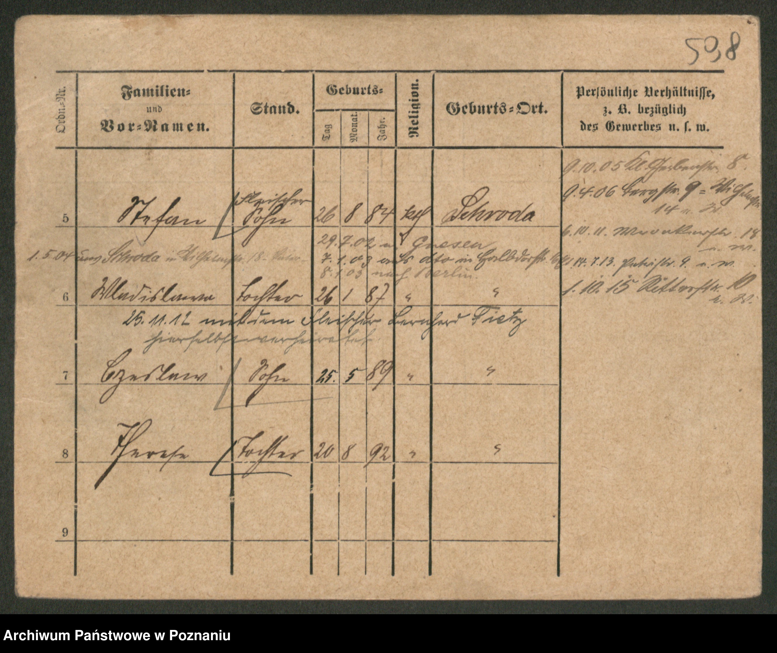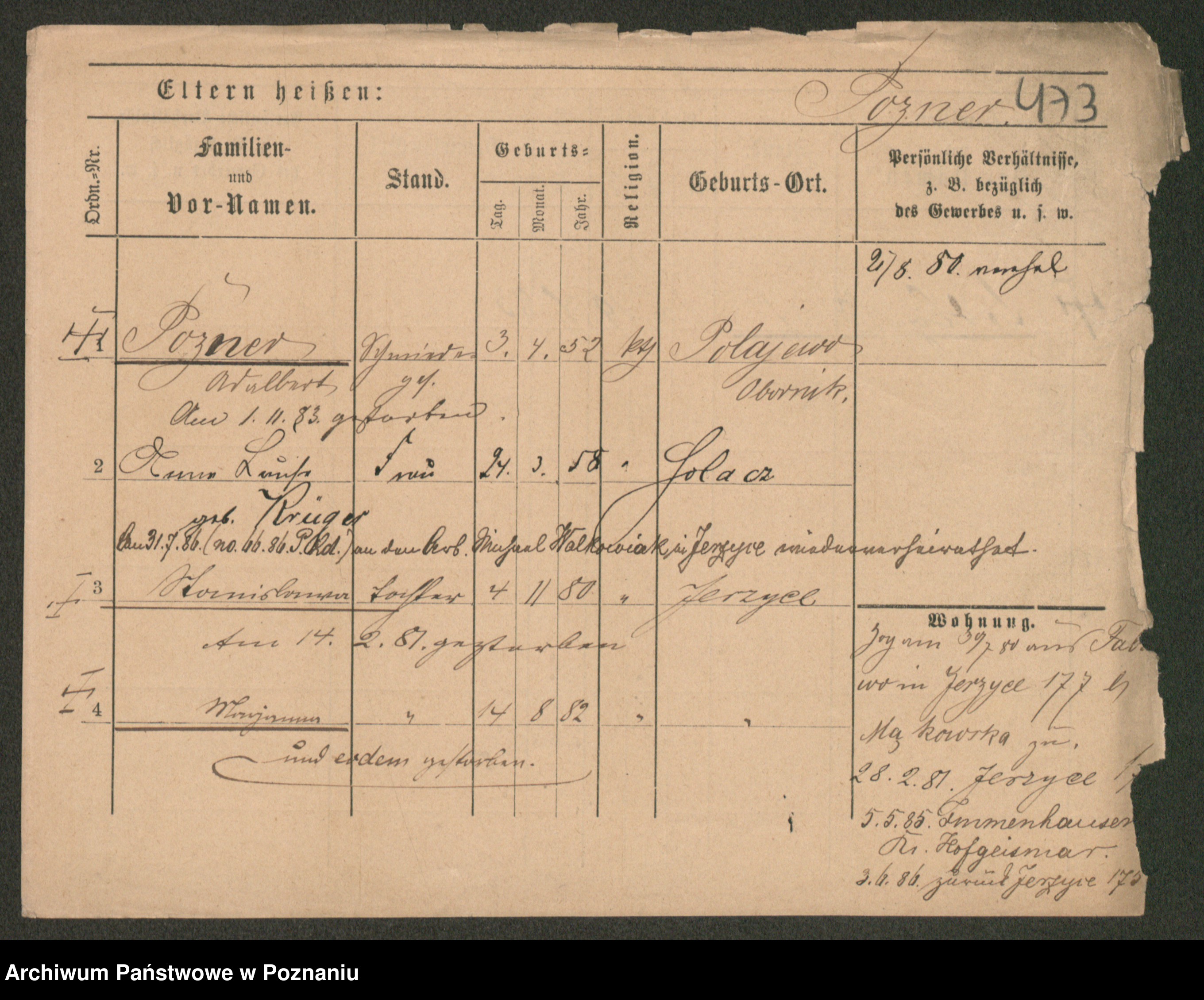 Podgląd karty osobowej dostępny jest po kliknięciu na nazwisko lub ikonkę karty. Można dokonywać powiększenia (ikony na górze) lub przechodzić między kolejnymi skanami (strzałki po bokach).