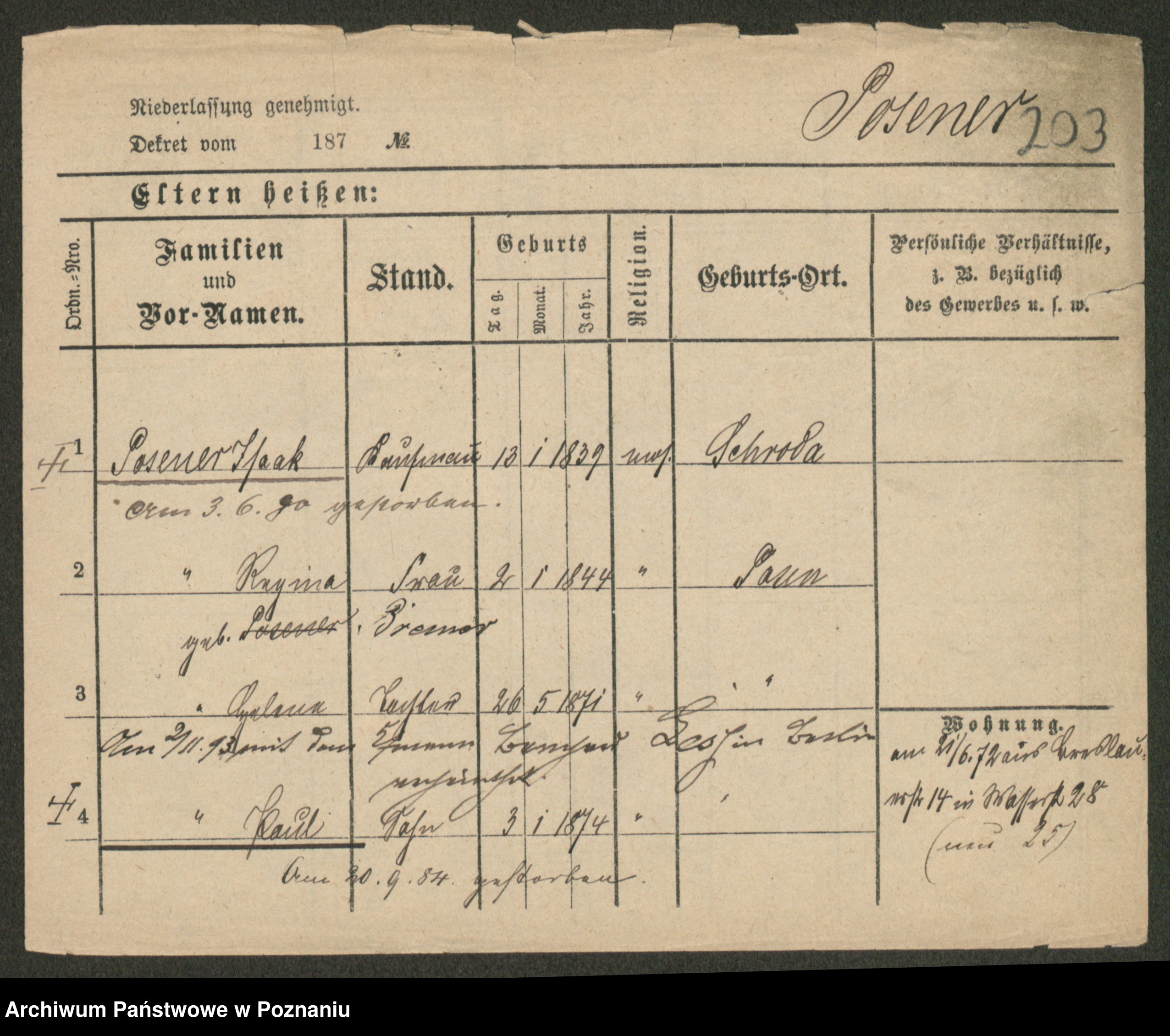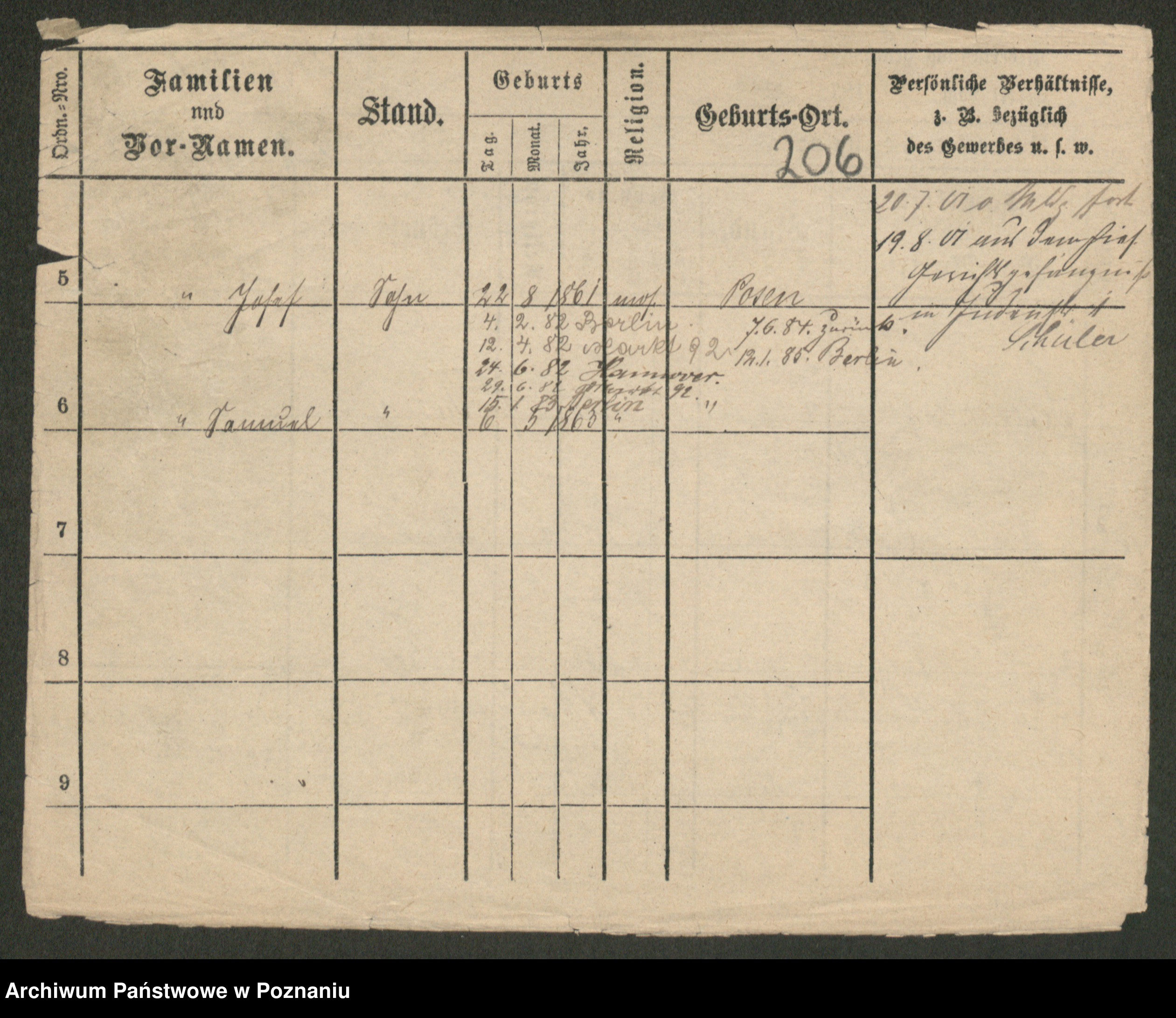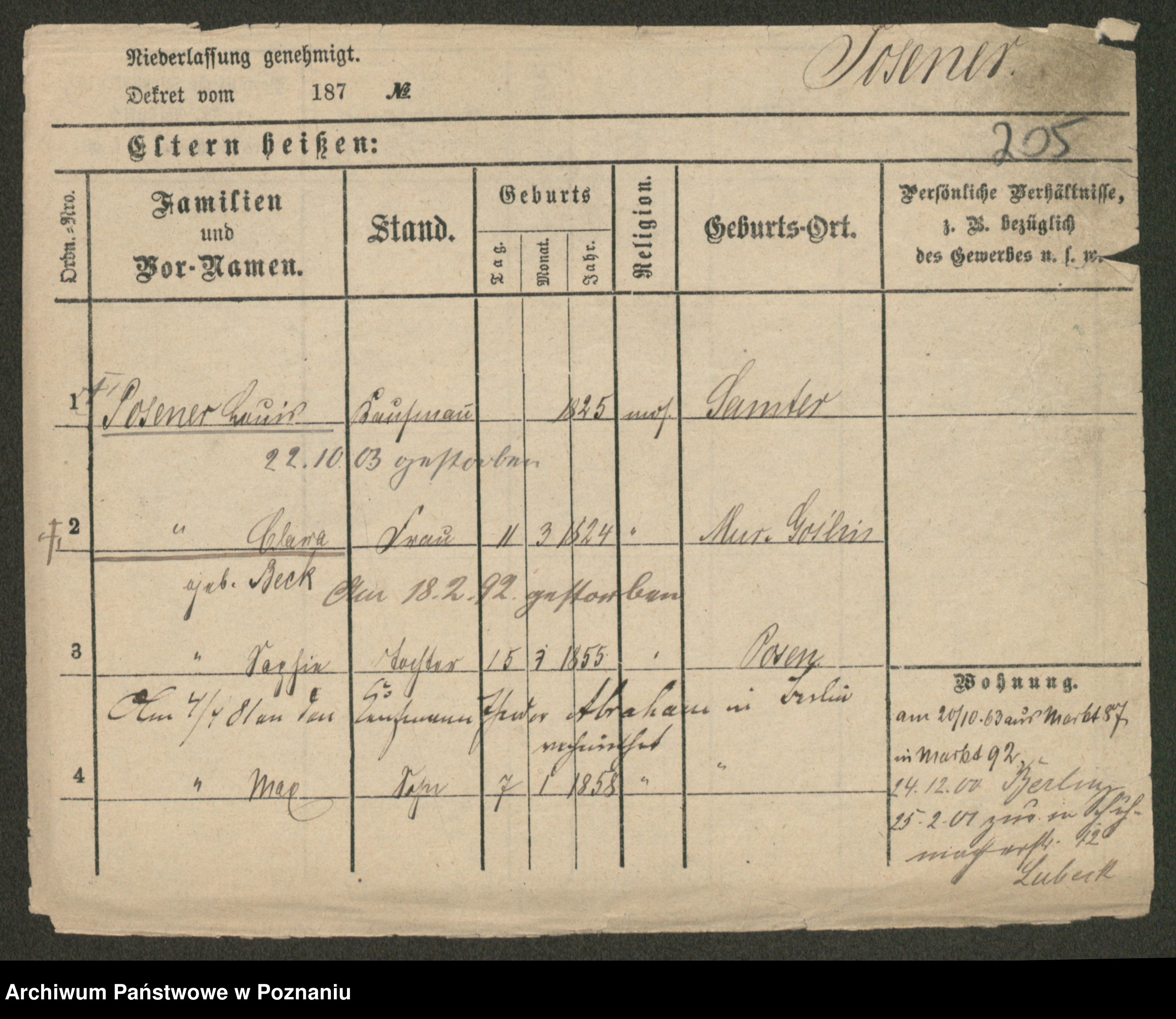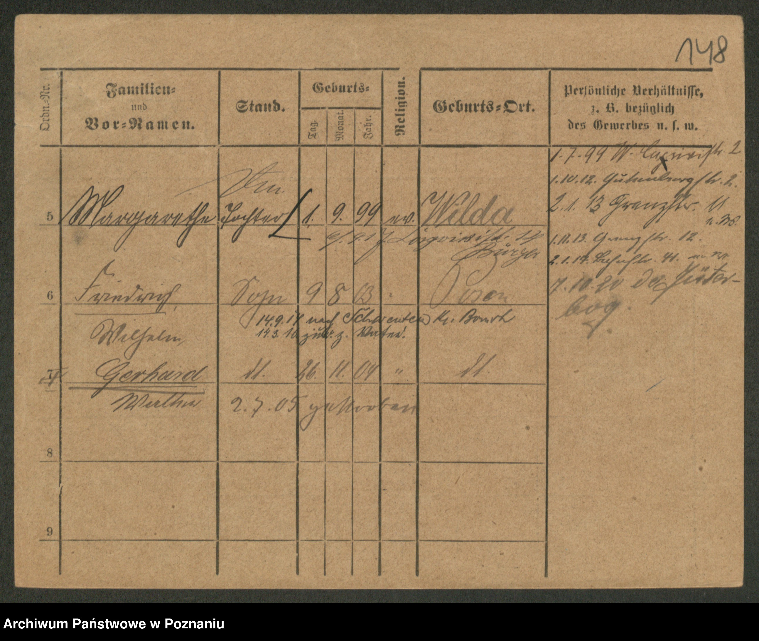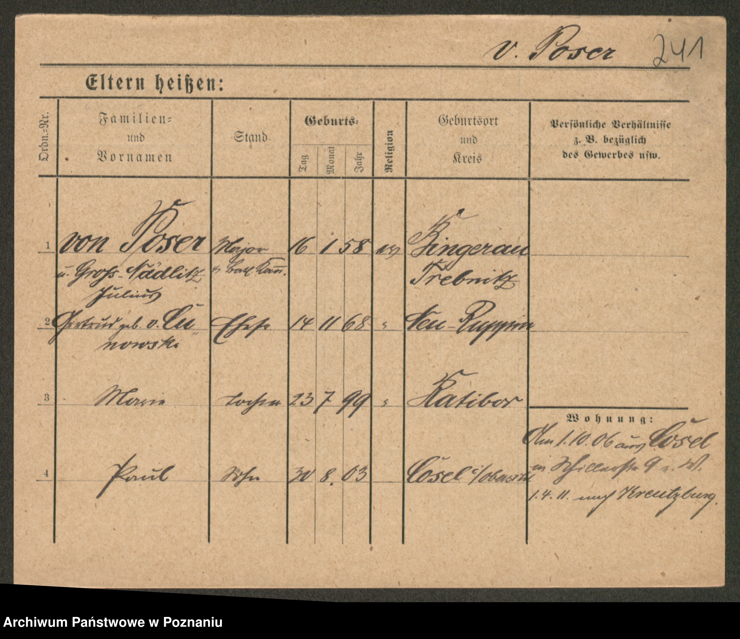 Podgląd karty osobowej dostępny jest po kliknięciu na nazwisko lub ikonkę karty. Można dokonywać powiększenia (ikony na górze) lub przechodzić między kolejnymi skanami (strzałki po bokach).
