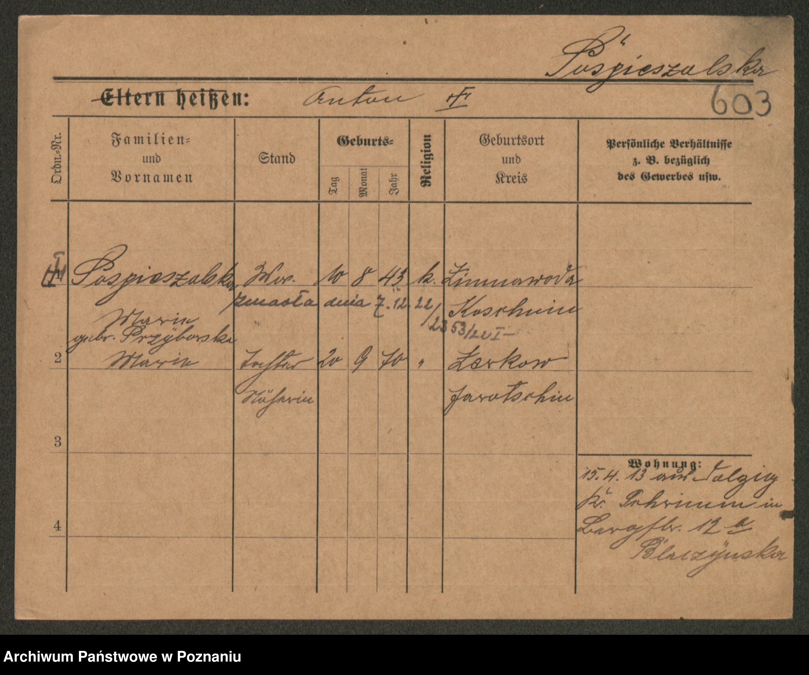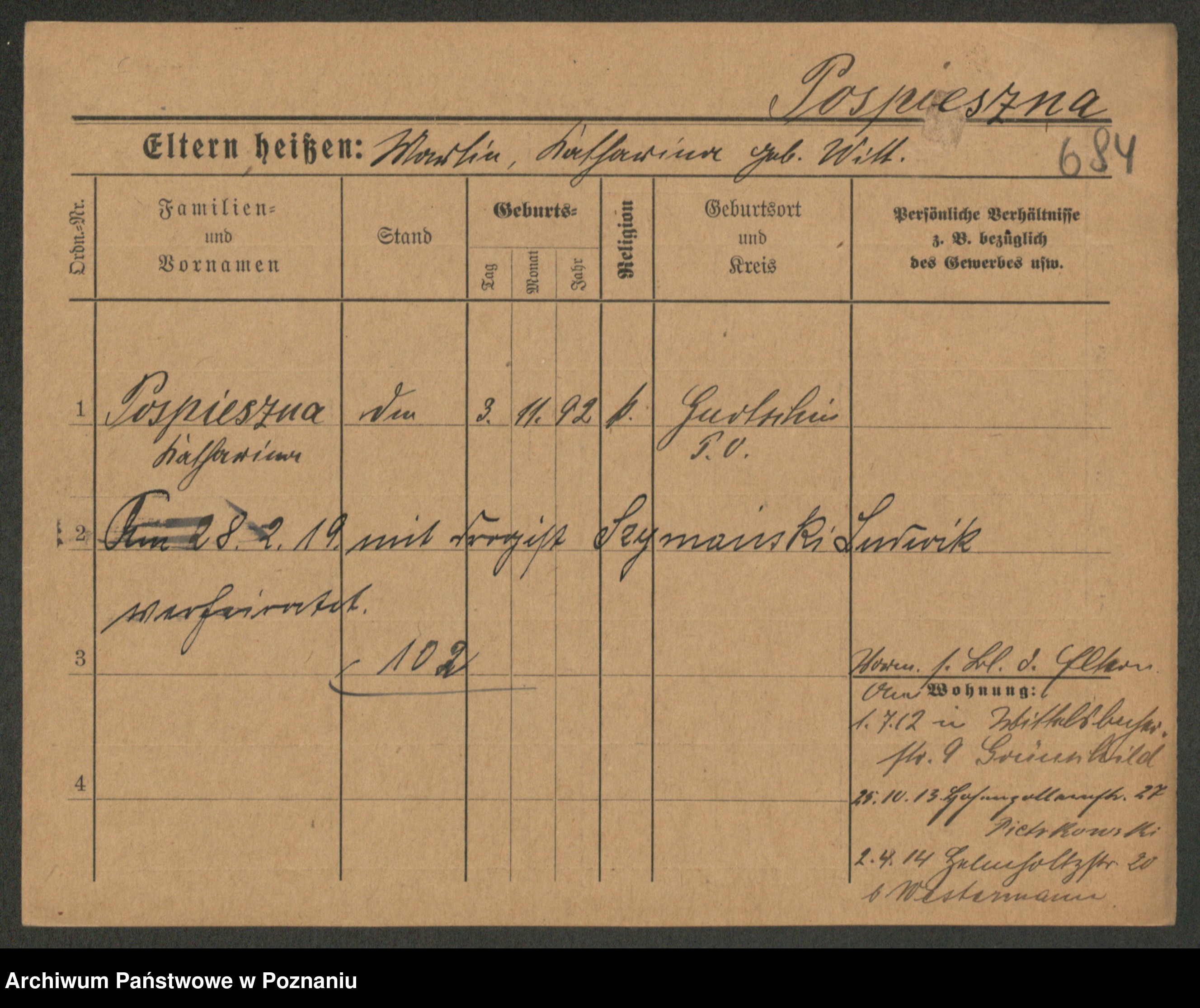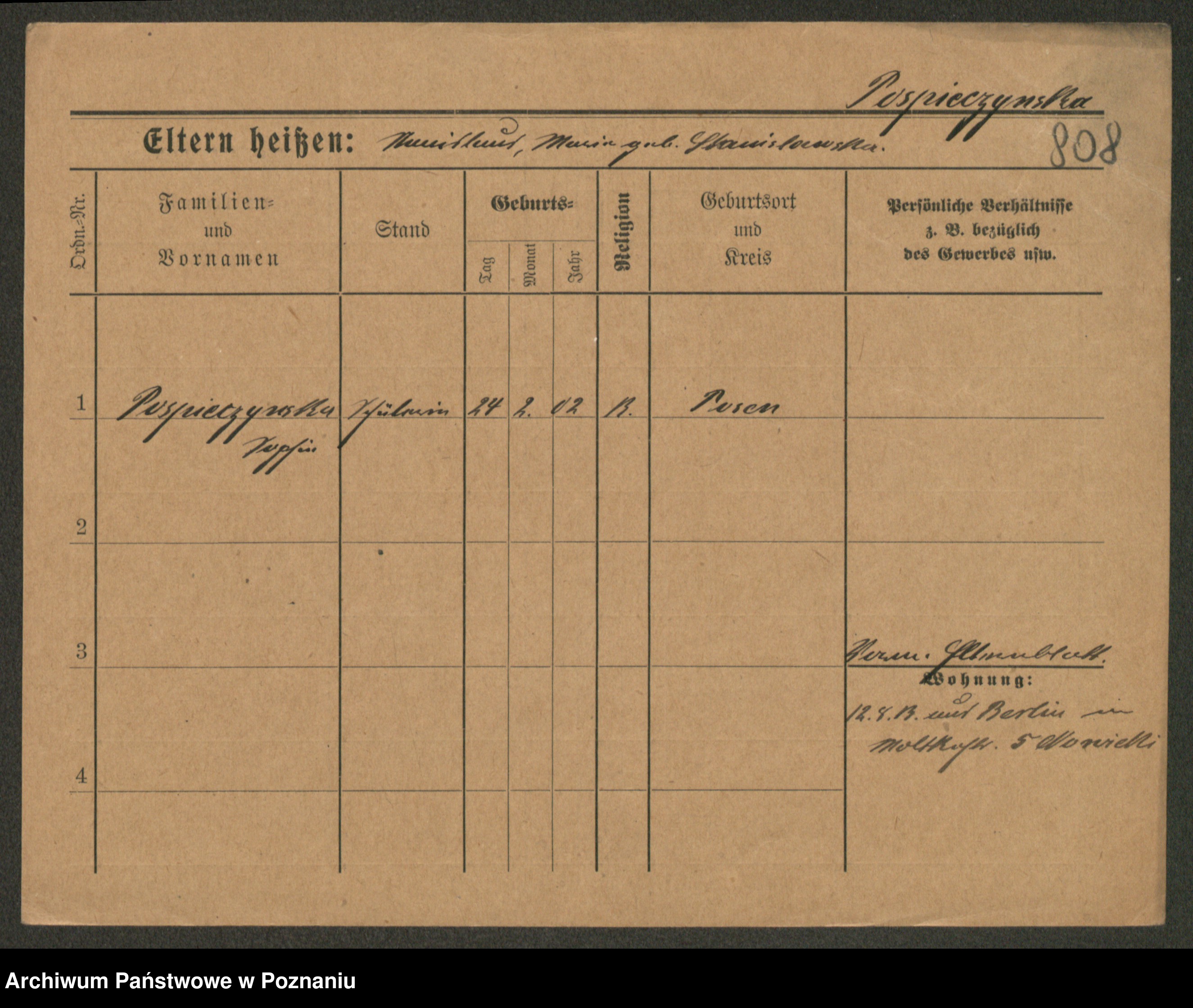 Pospischil z d. Strzełelska, Marja