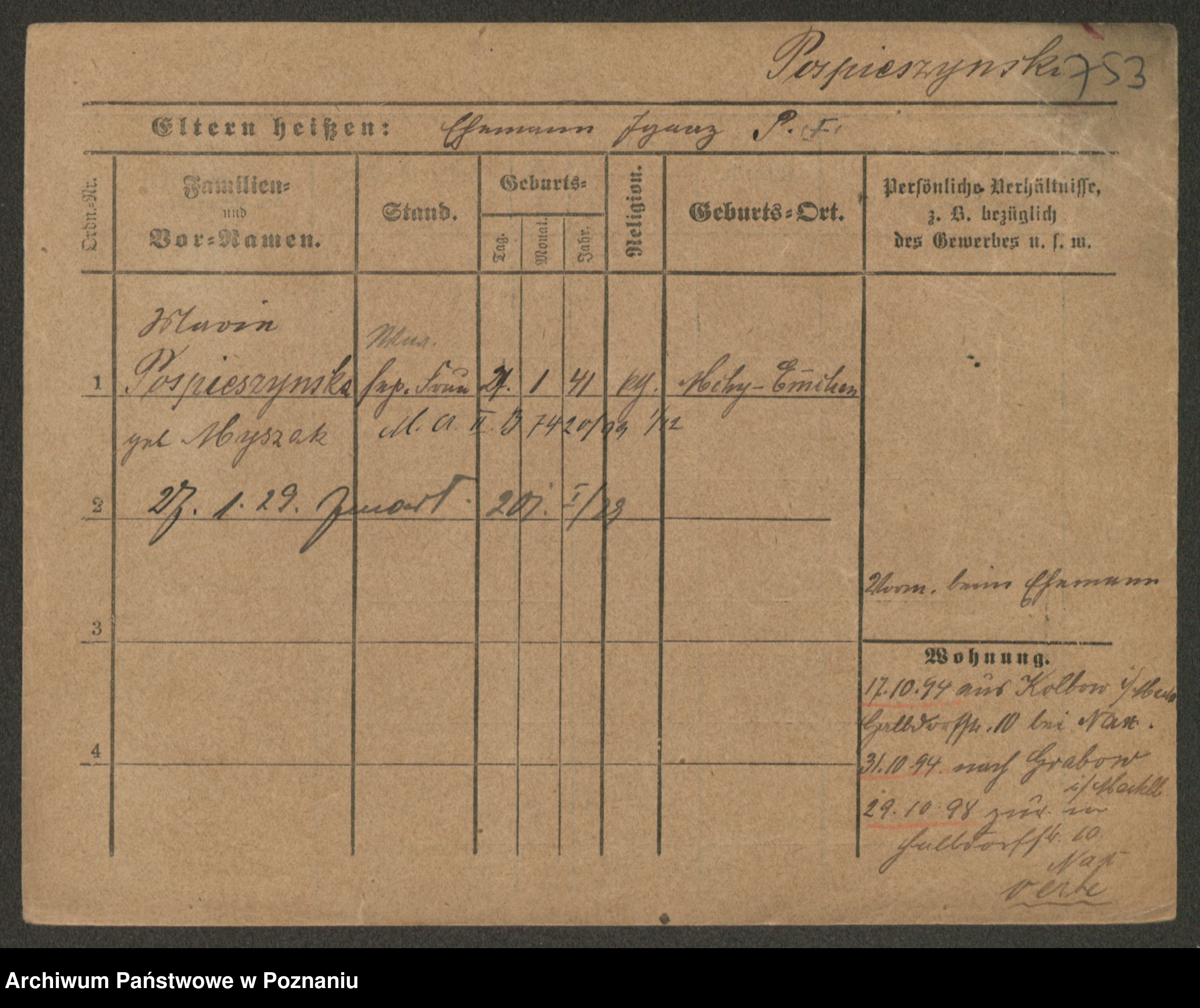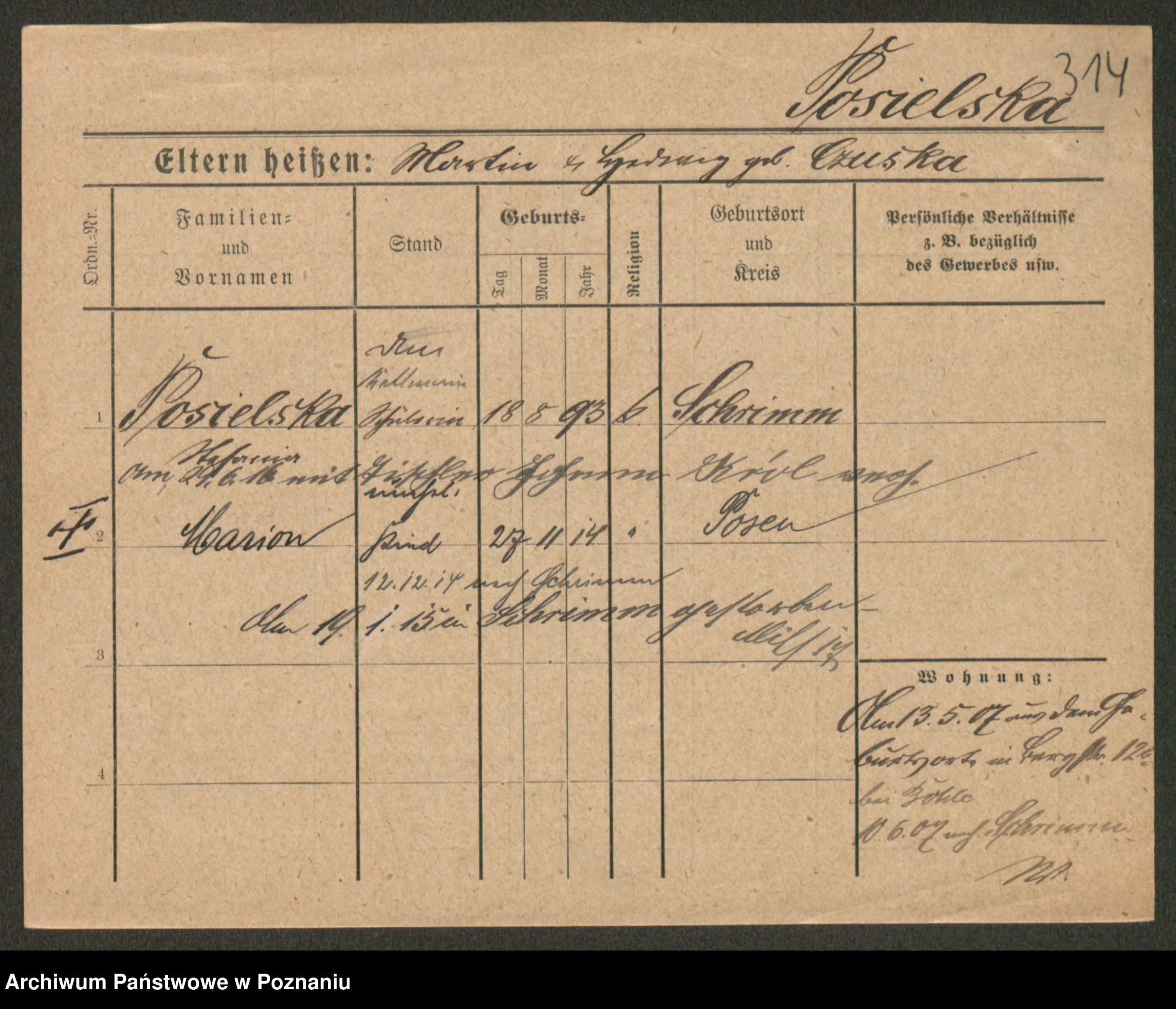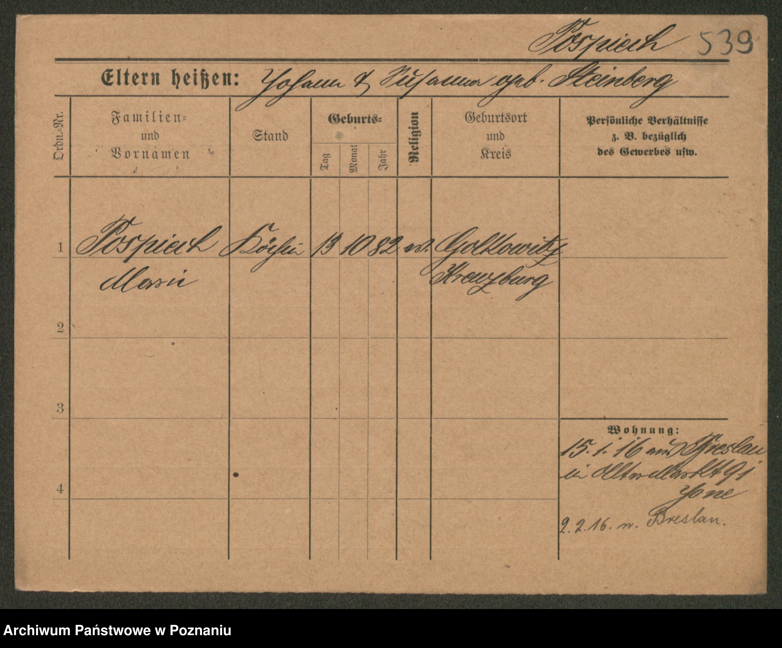 Pospischil z d. Strzełelska, Marja