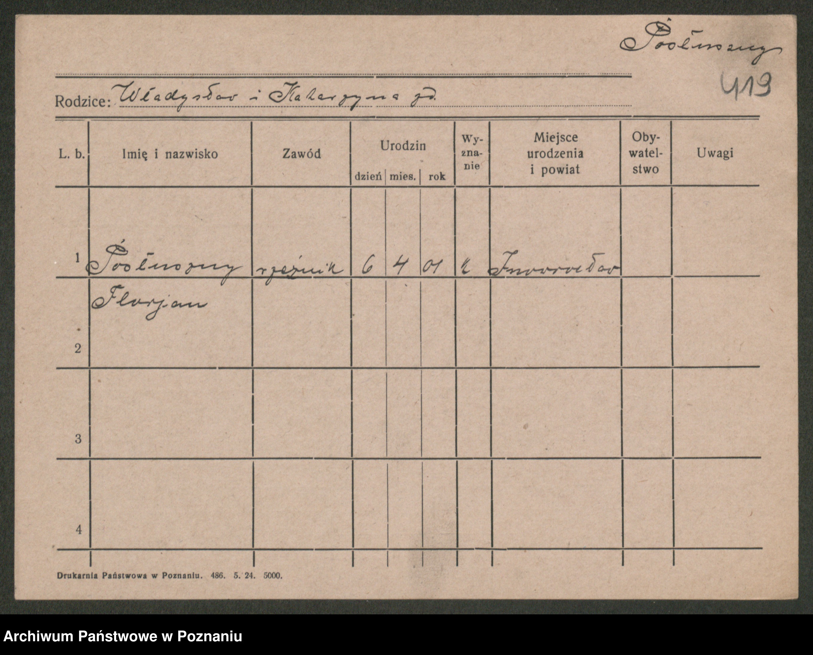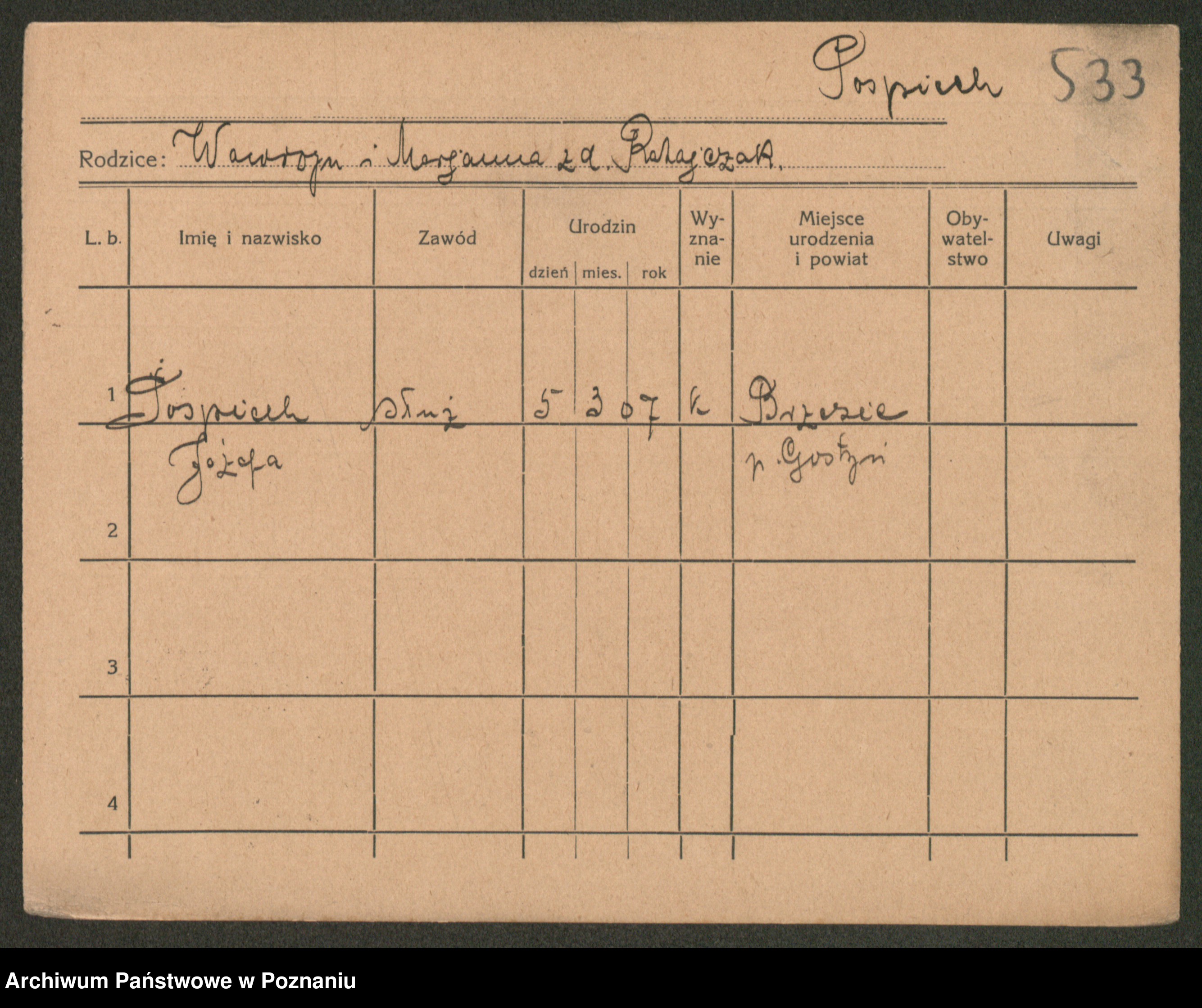 Owsinski, brak imienia