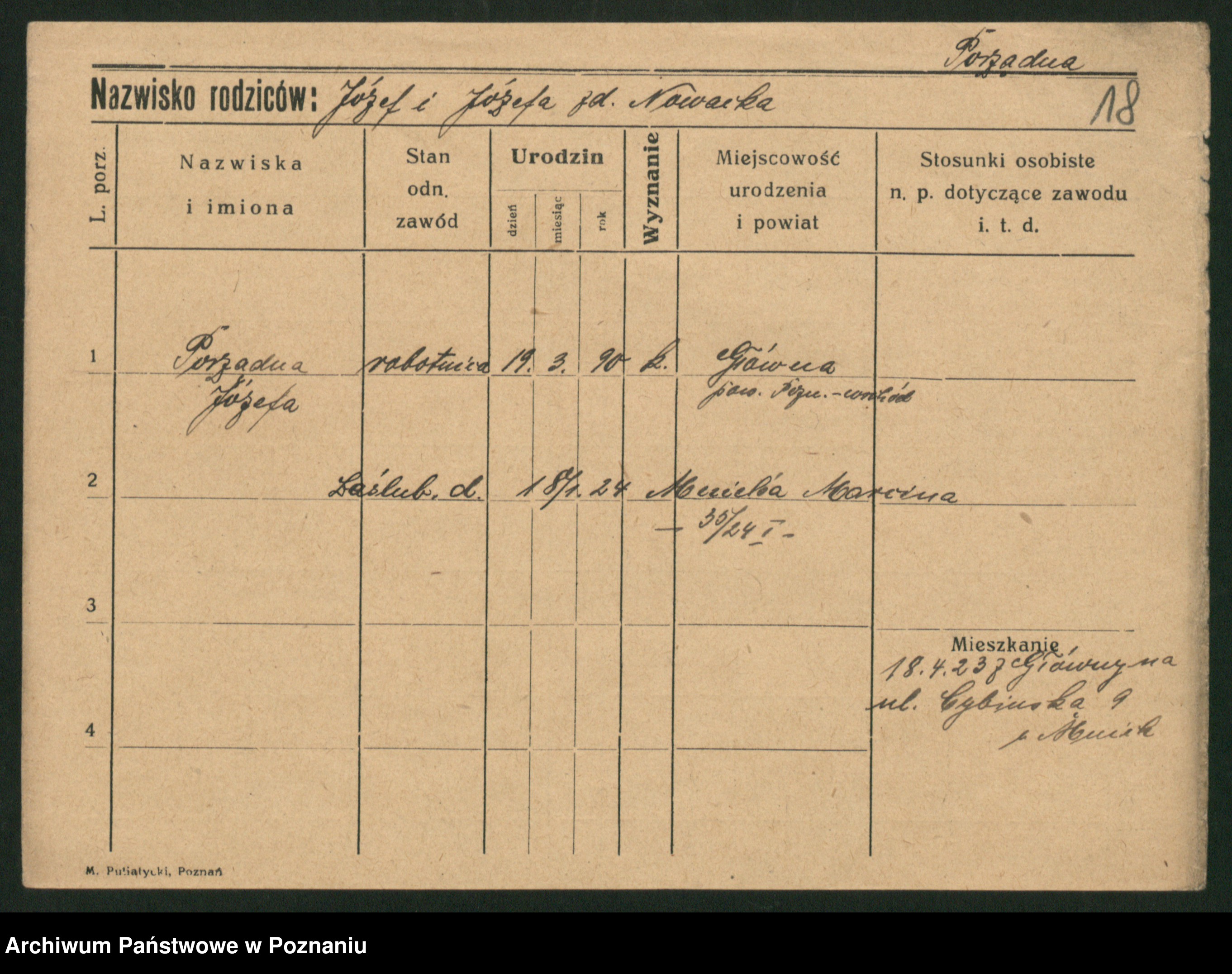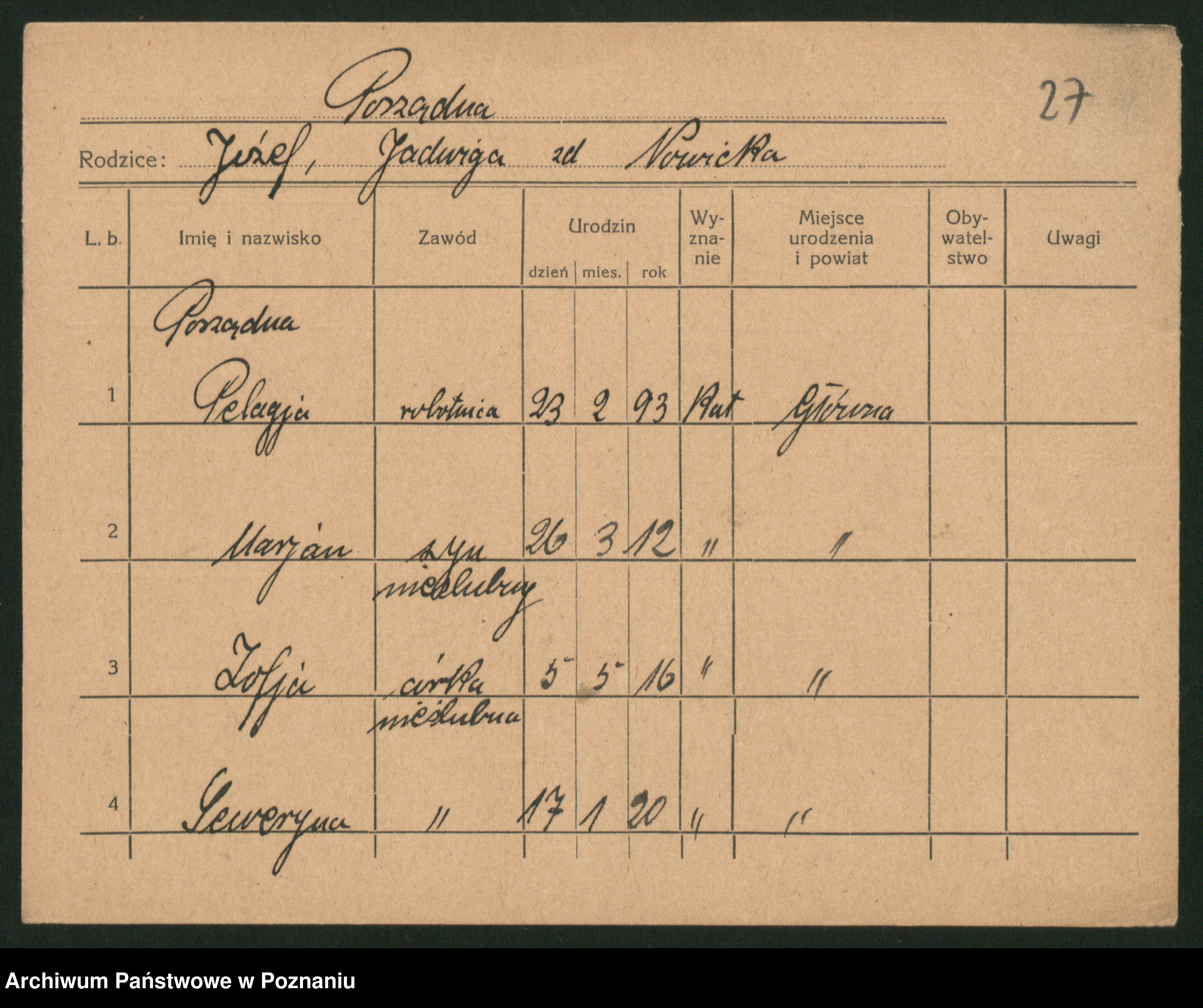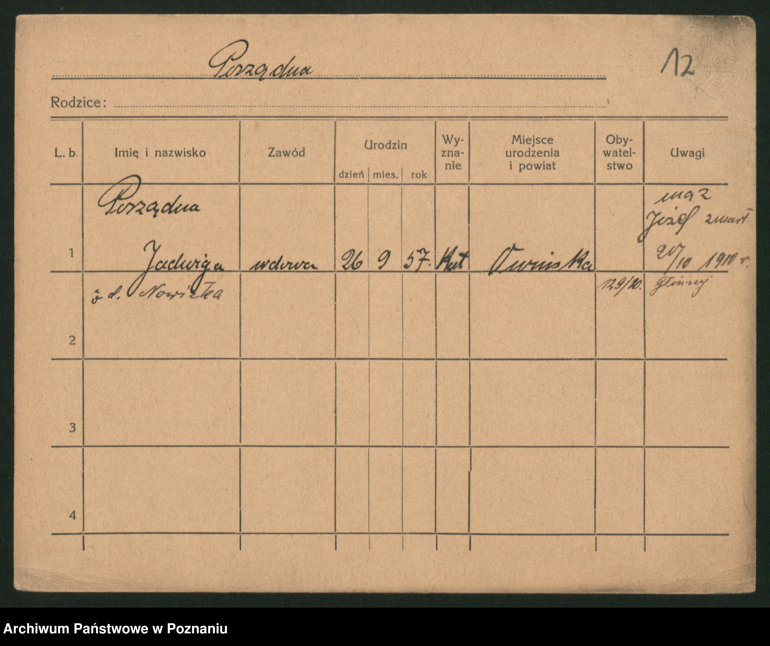 Porządna z d. Nowicka, Jadwiga