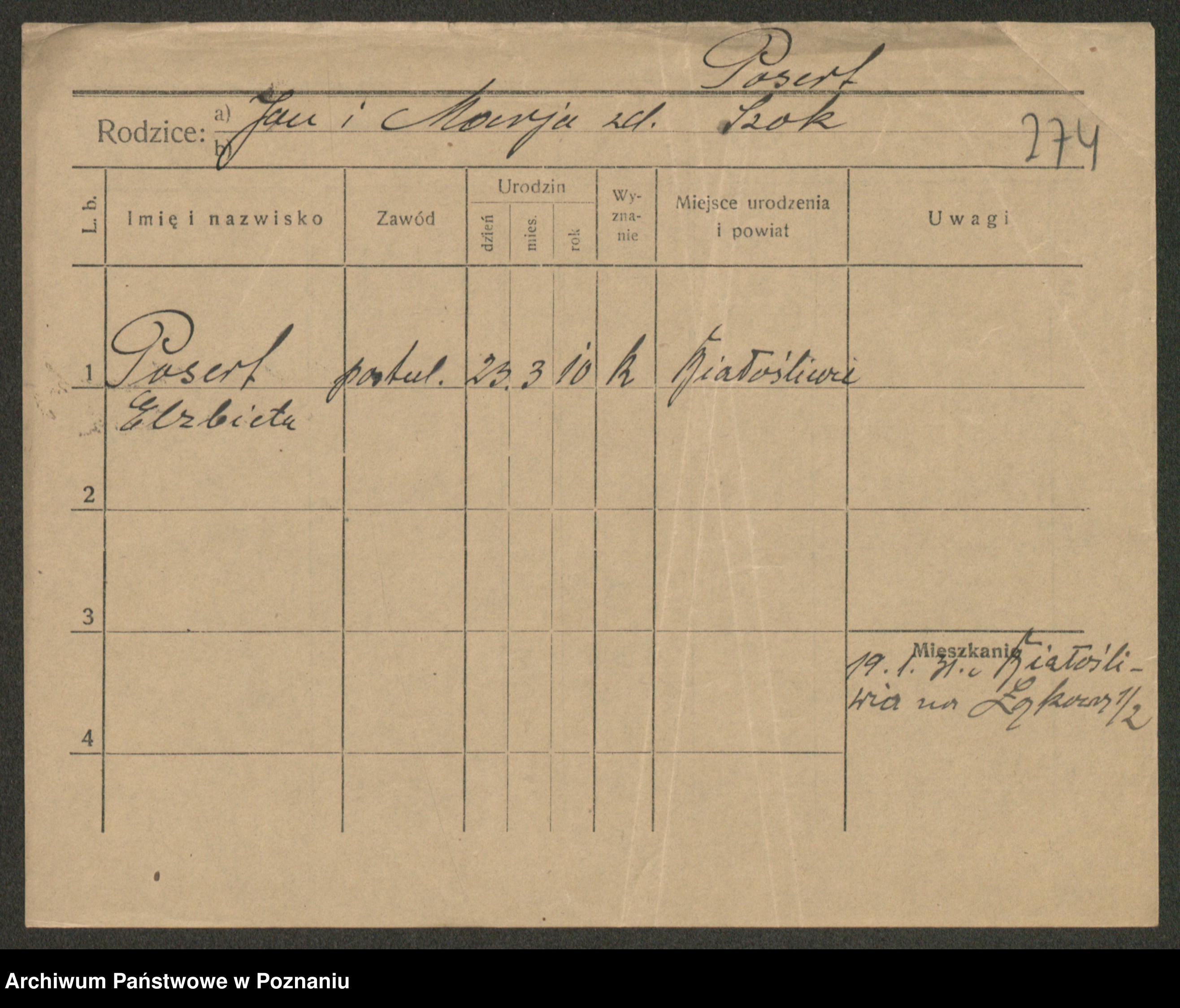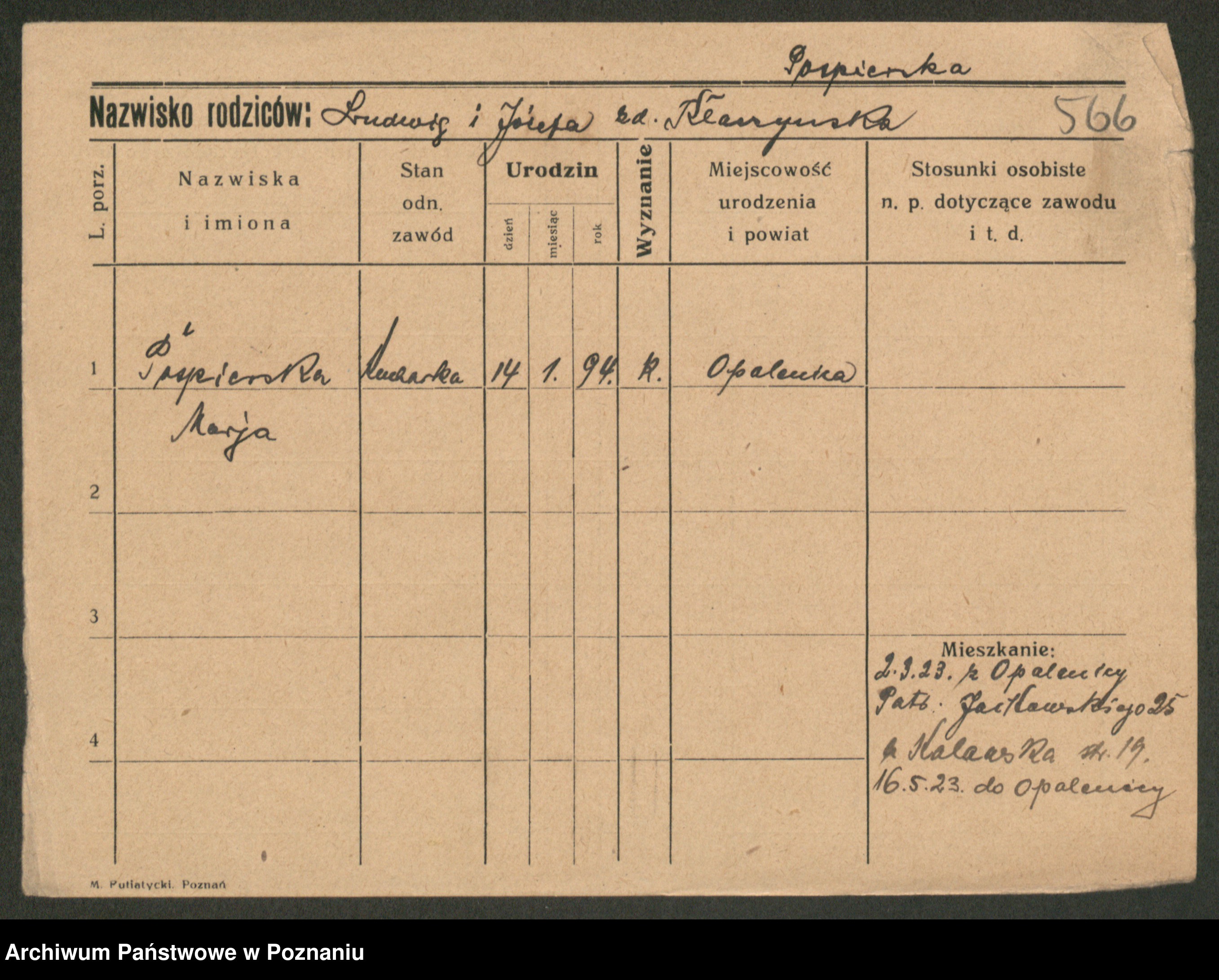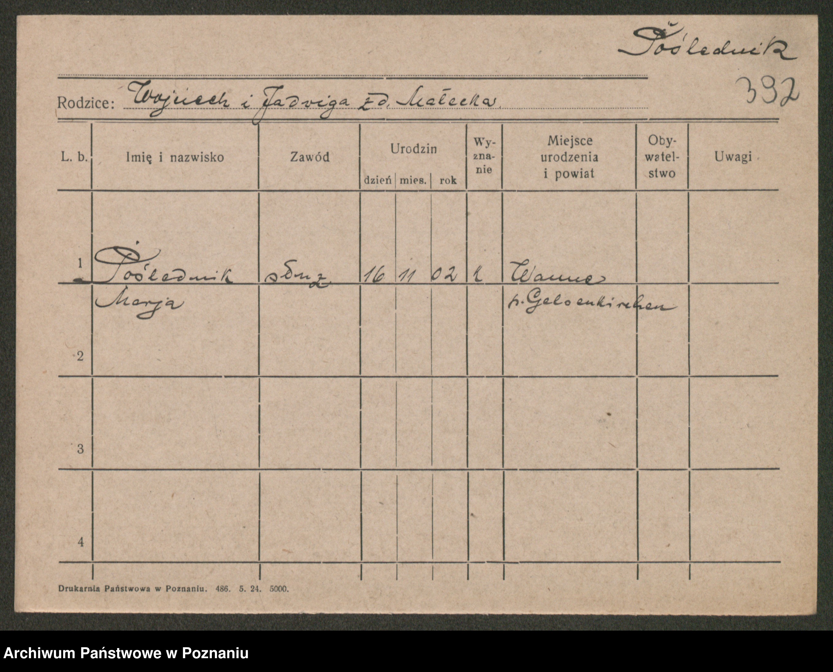 Porządna z d. Kalina, Marja