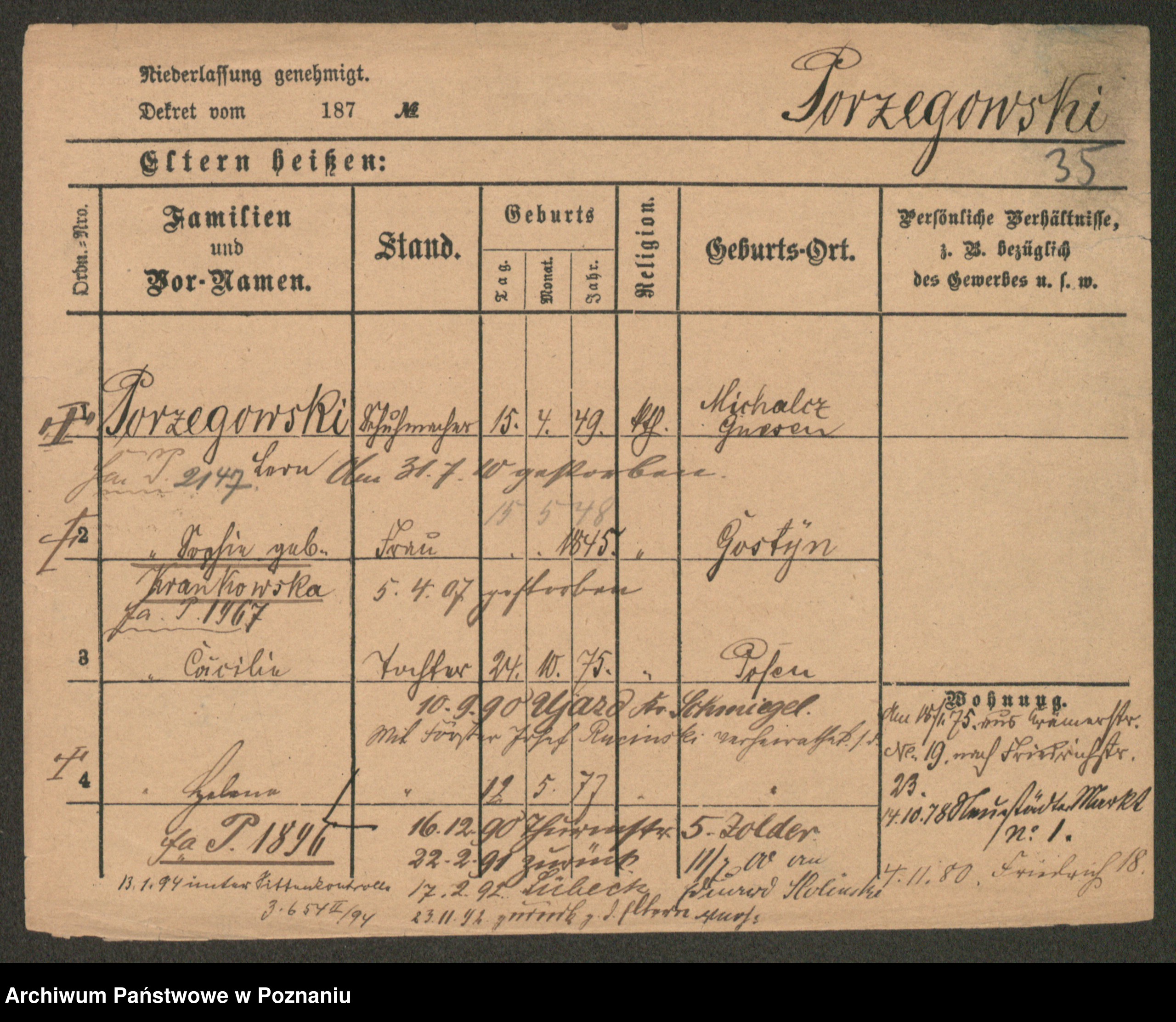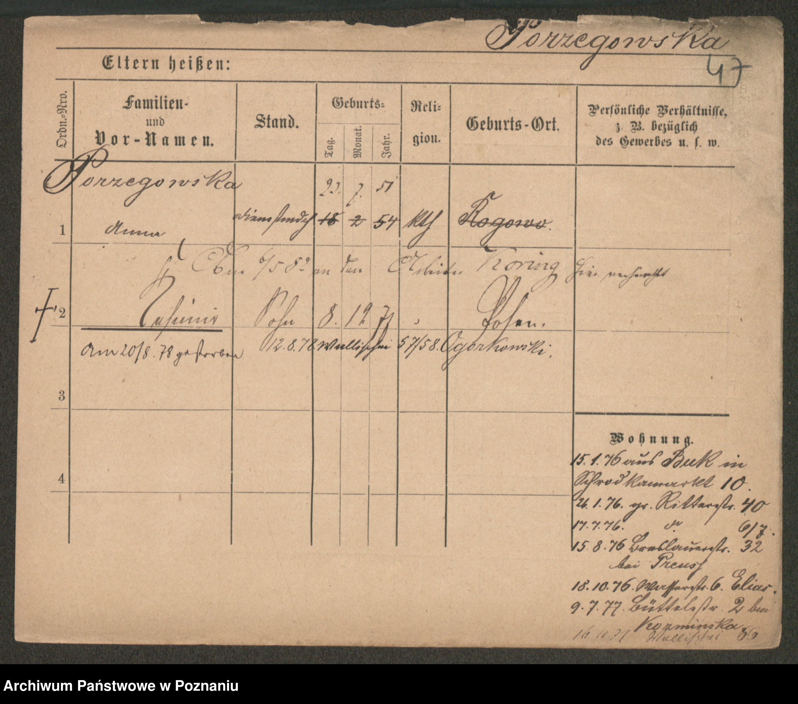 Porzegowska, Cäcilie