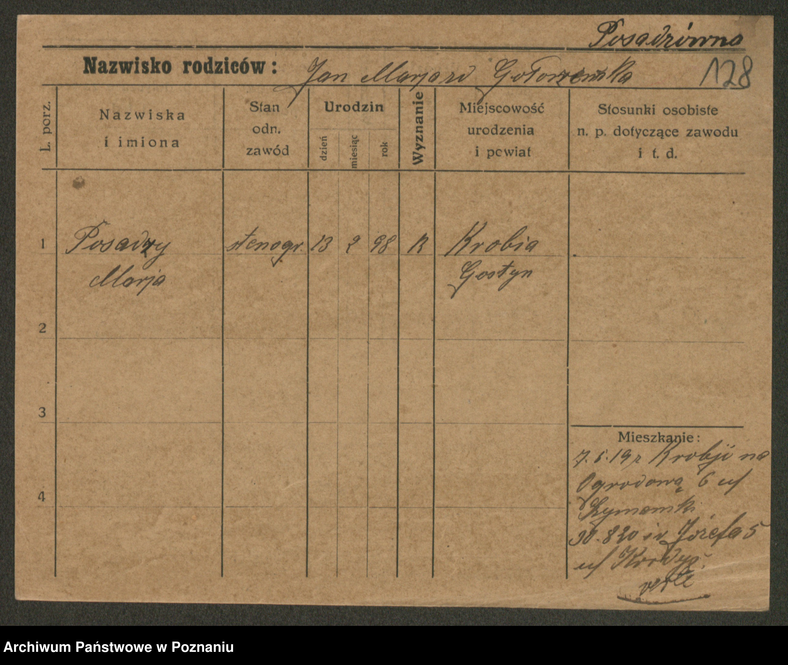 Post z d. Jarentowska, Marie