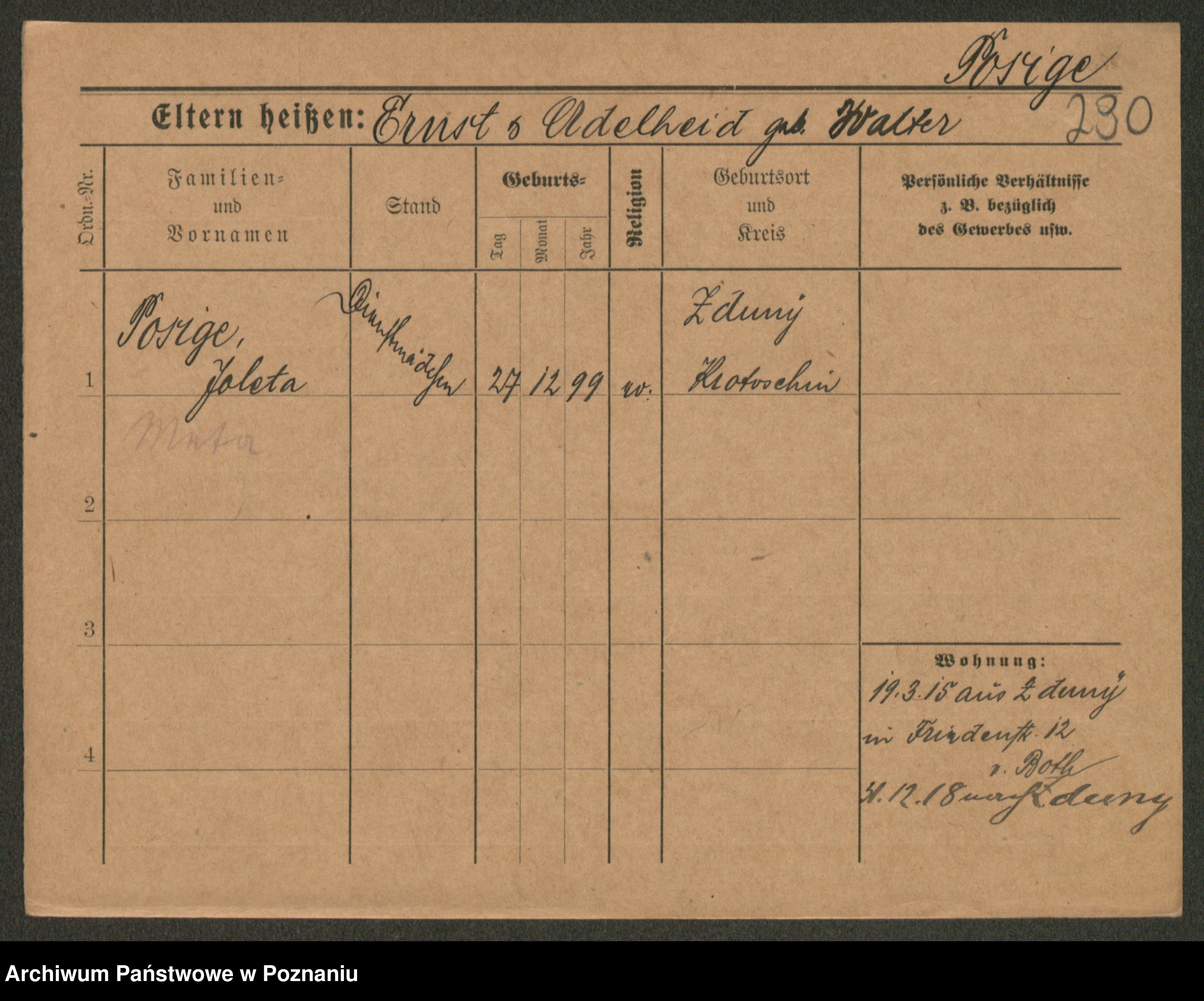 Post z d. Post, Wanda Ottilie