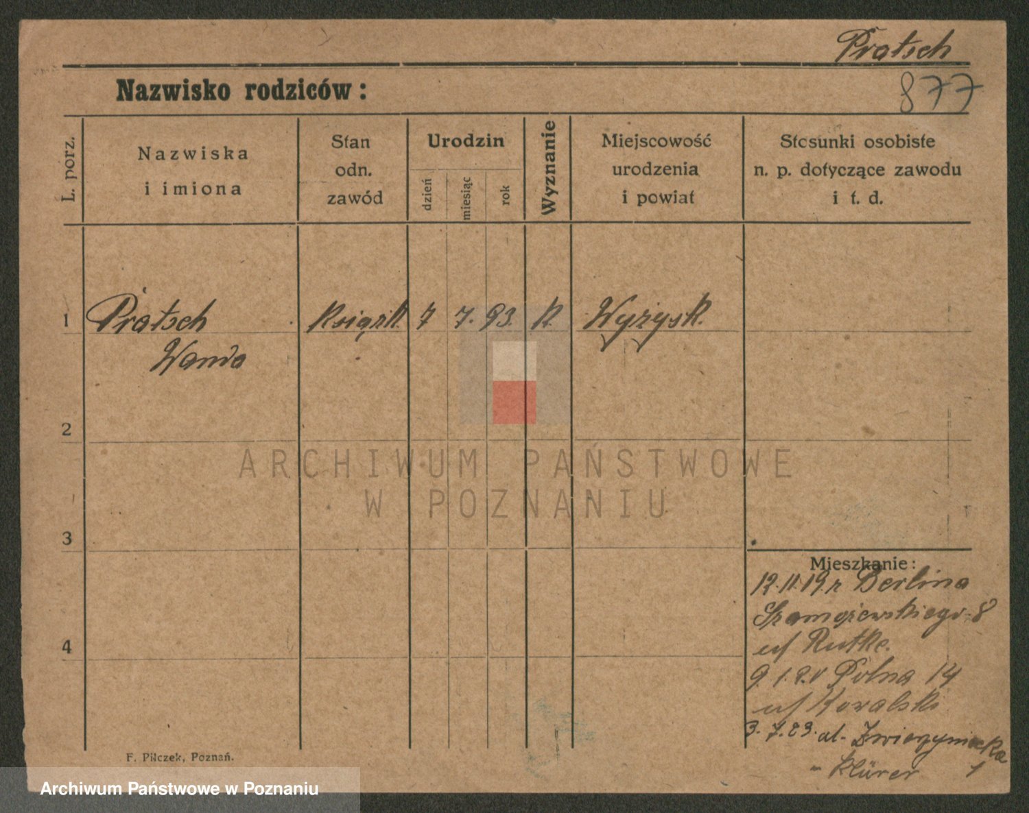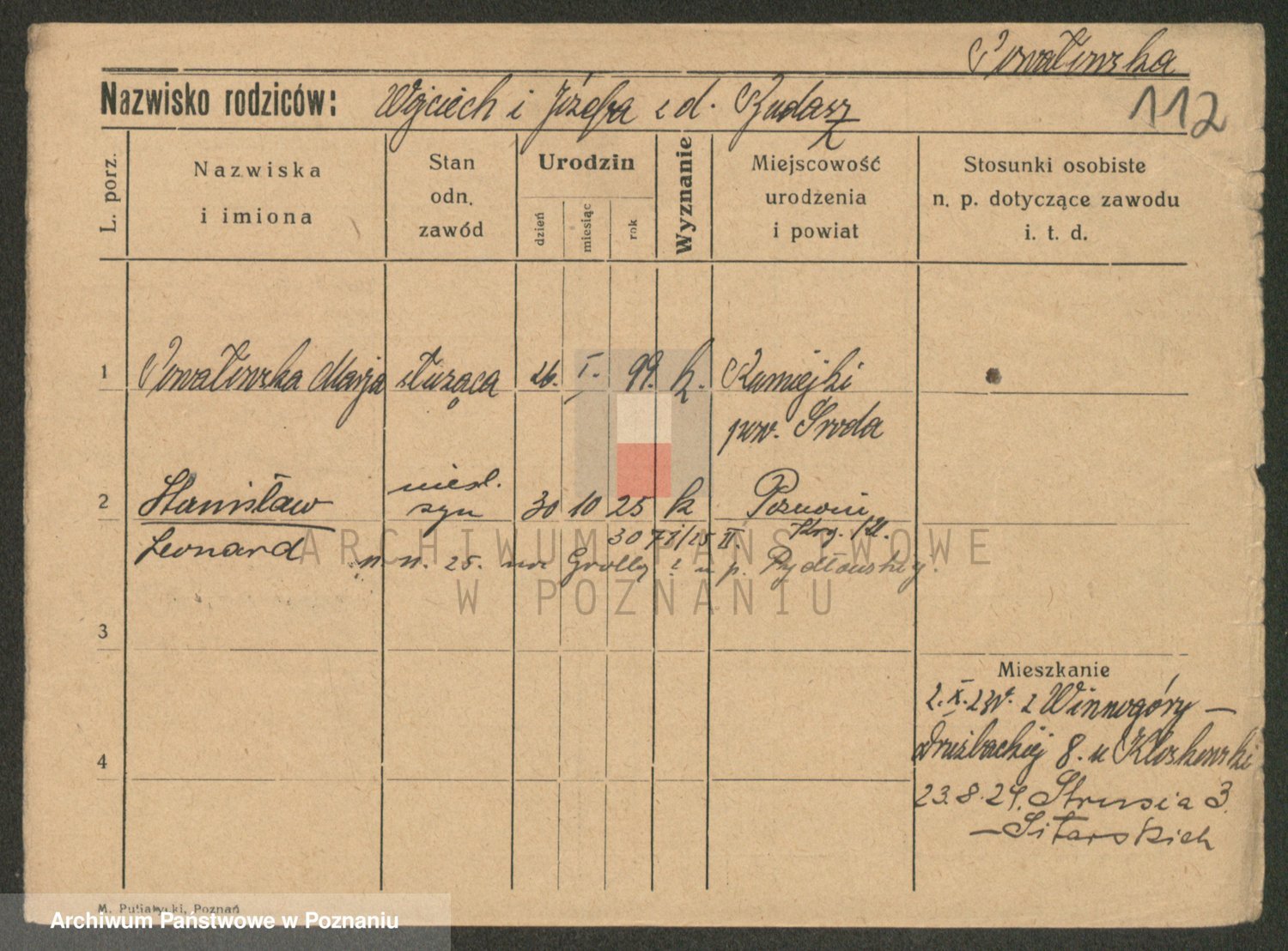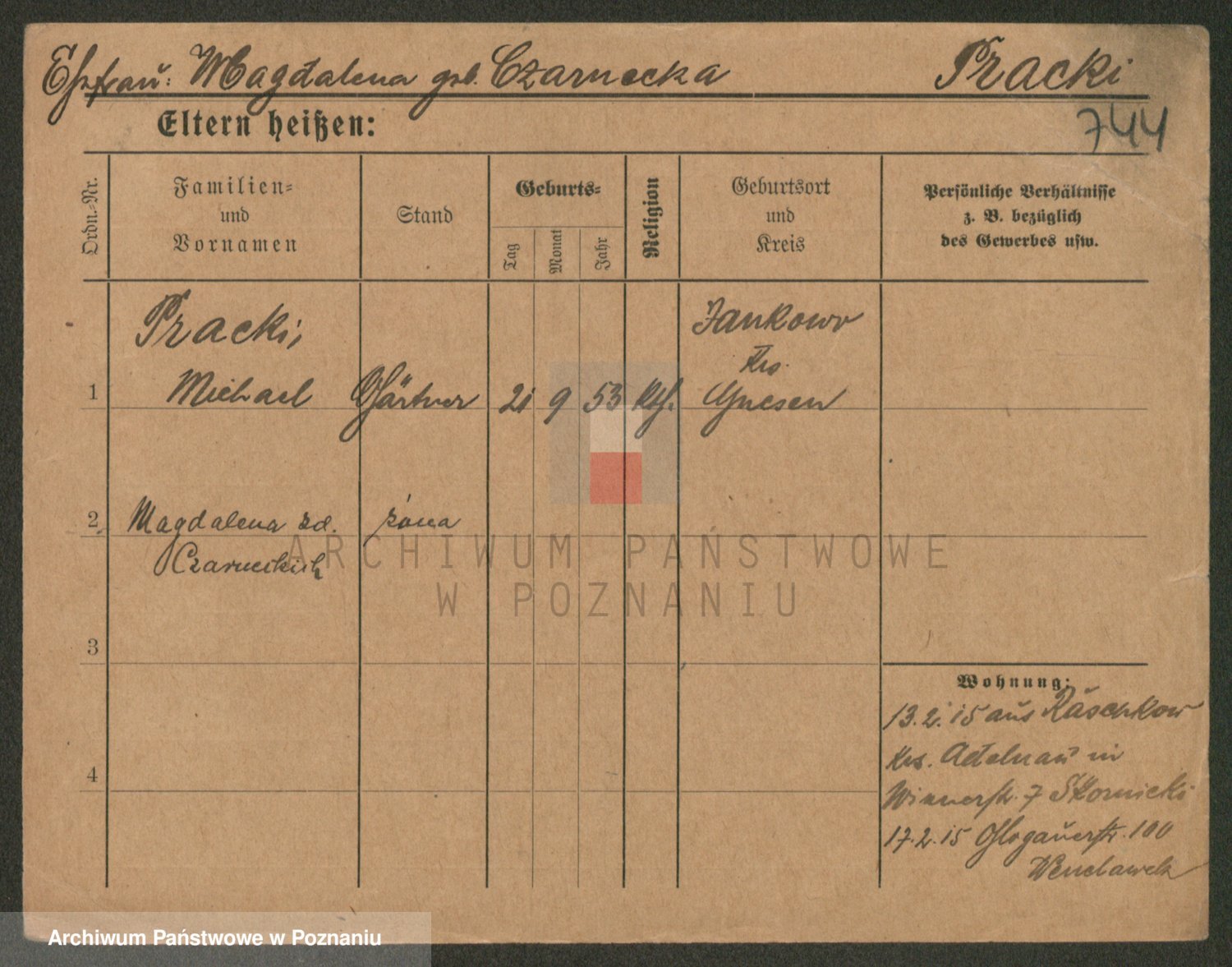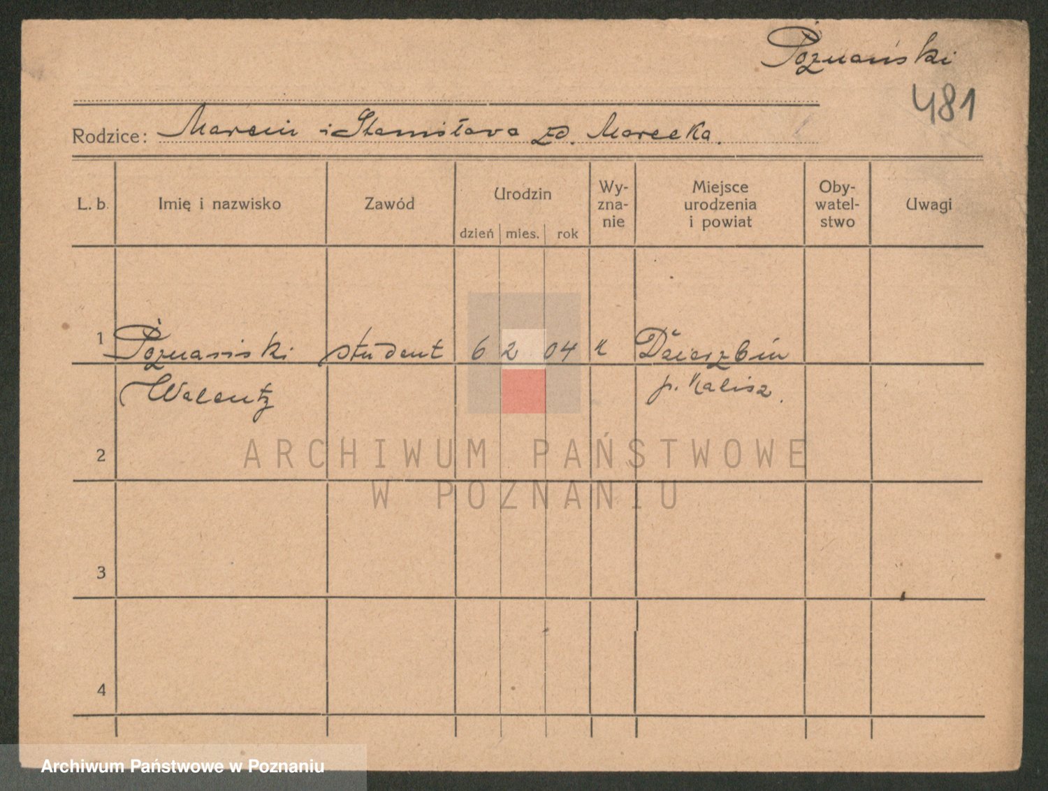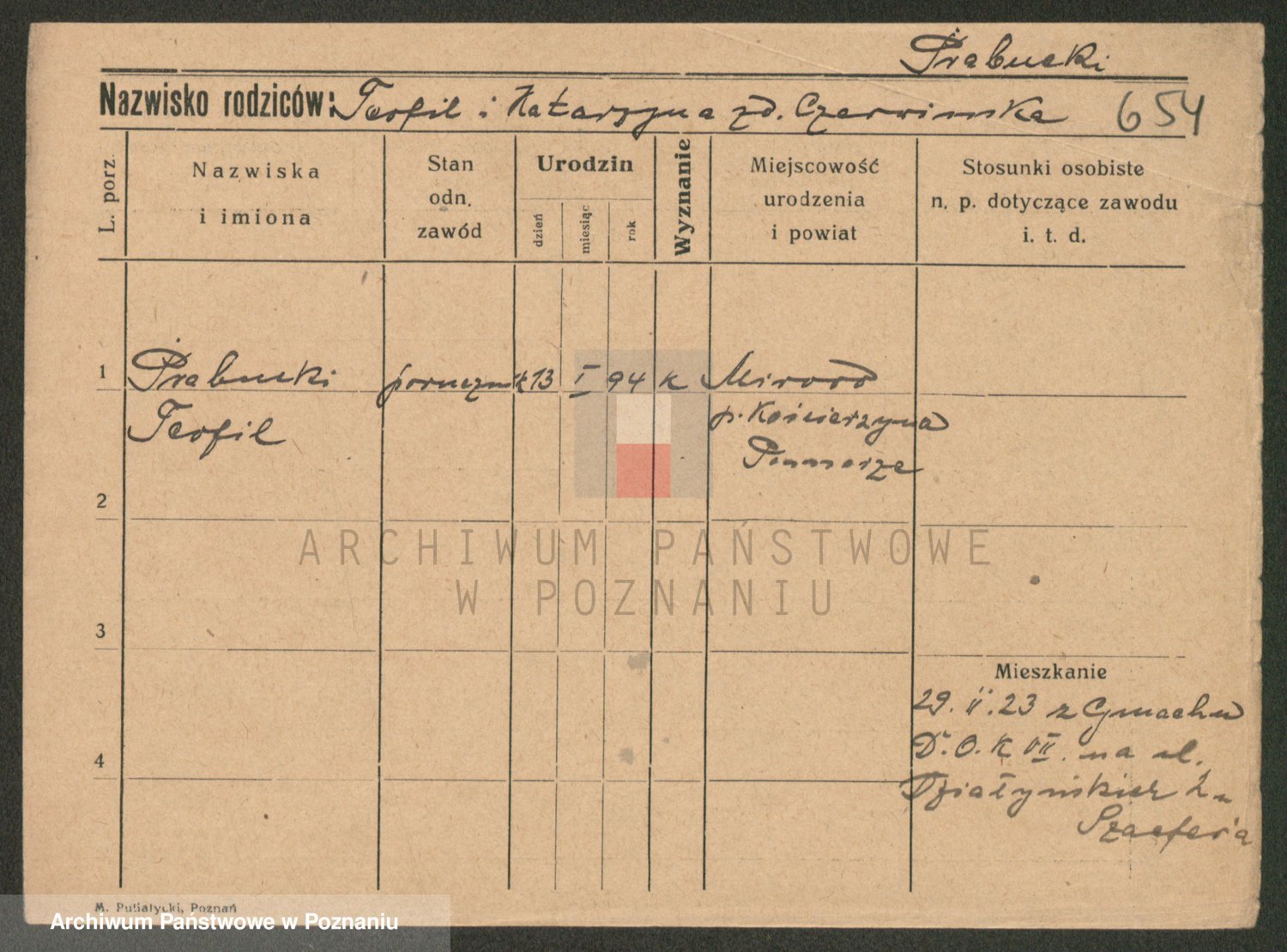 Podgląd karty osobowej dostępny jest po kliknięciu na nazwisko lub ikonkę karty. Można dokonywać powiększenia (ikony na górze) lub przechodzić między kolejnymi skanami (strzałki po bokach).