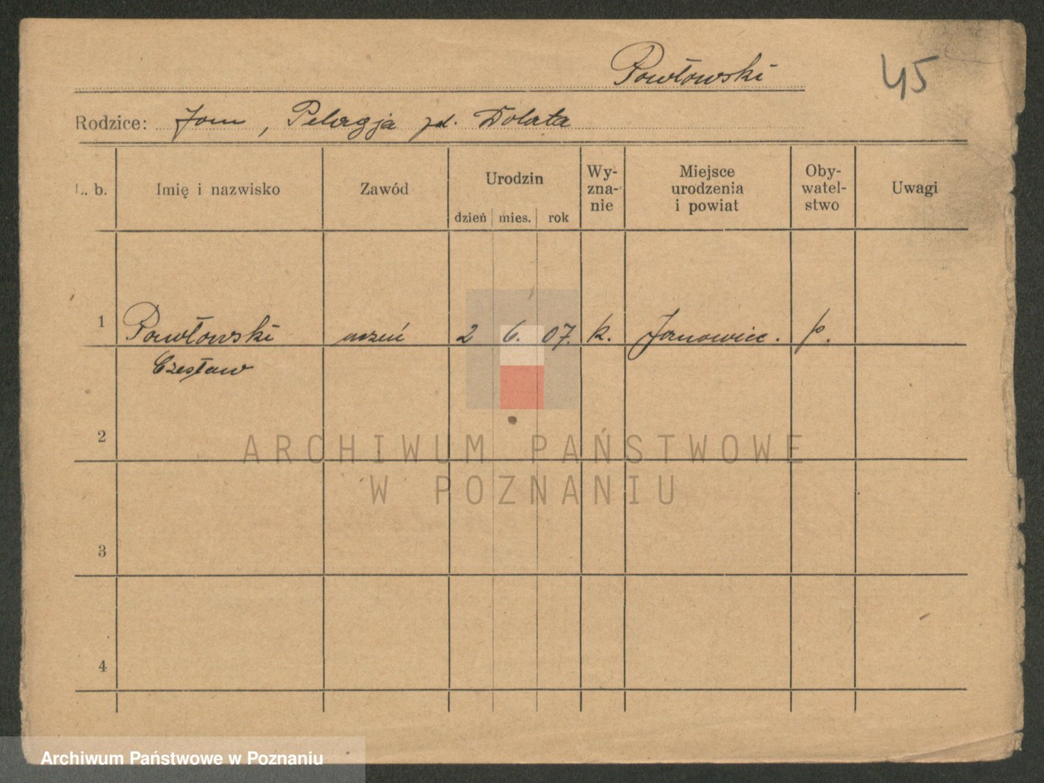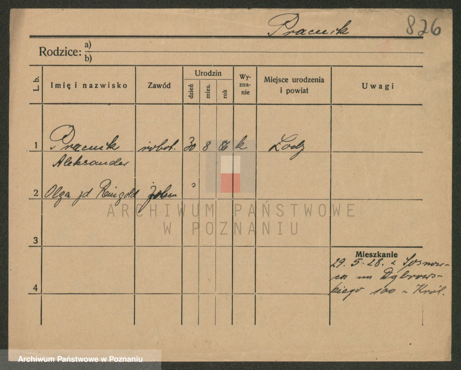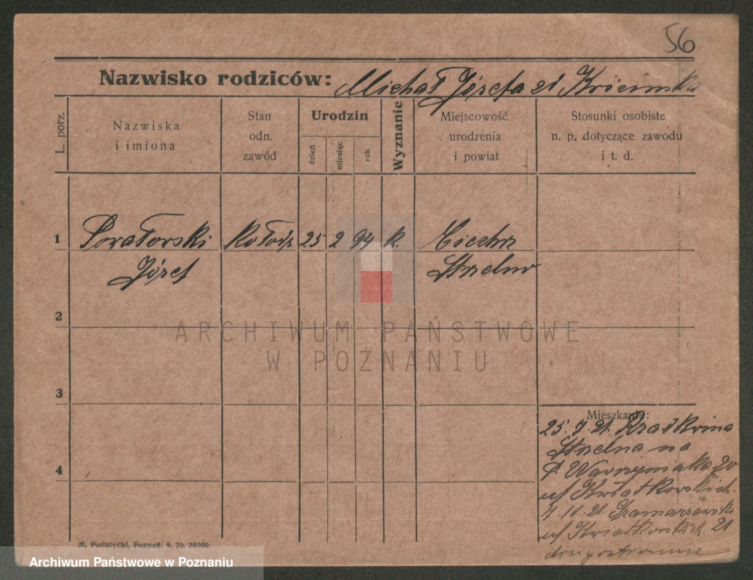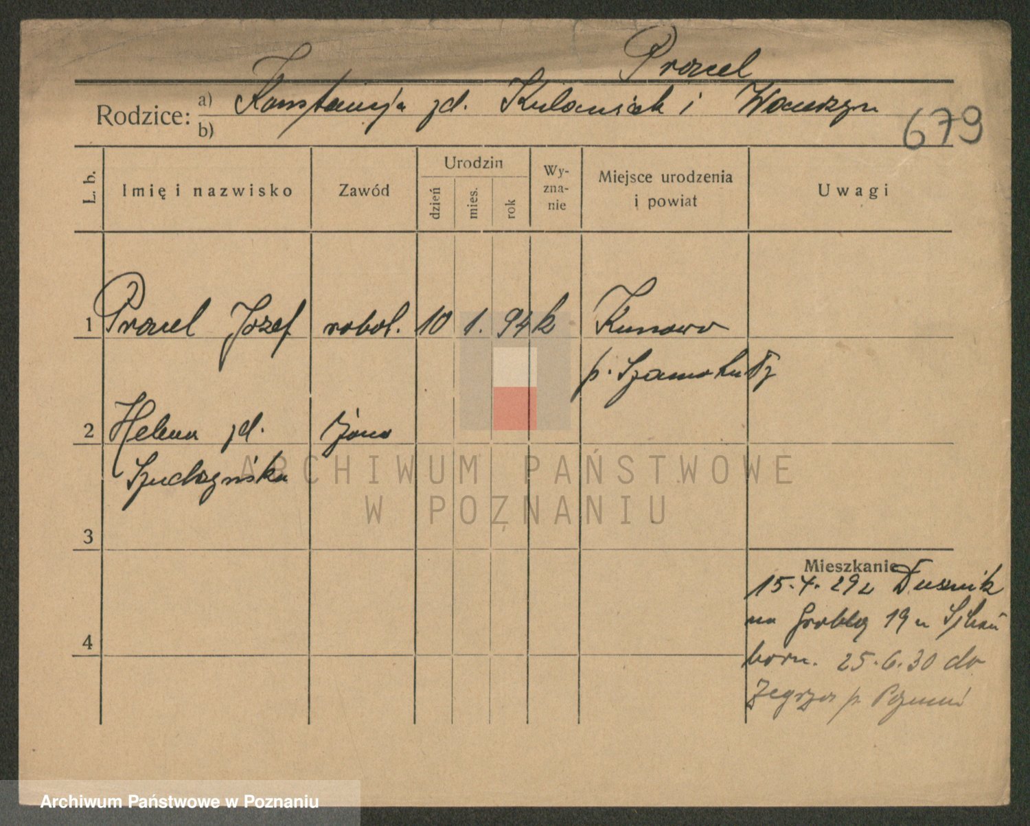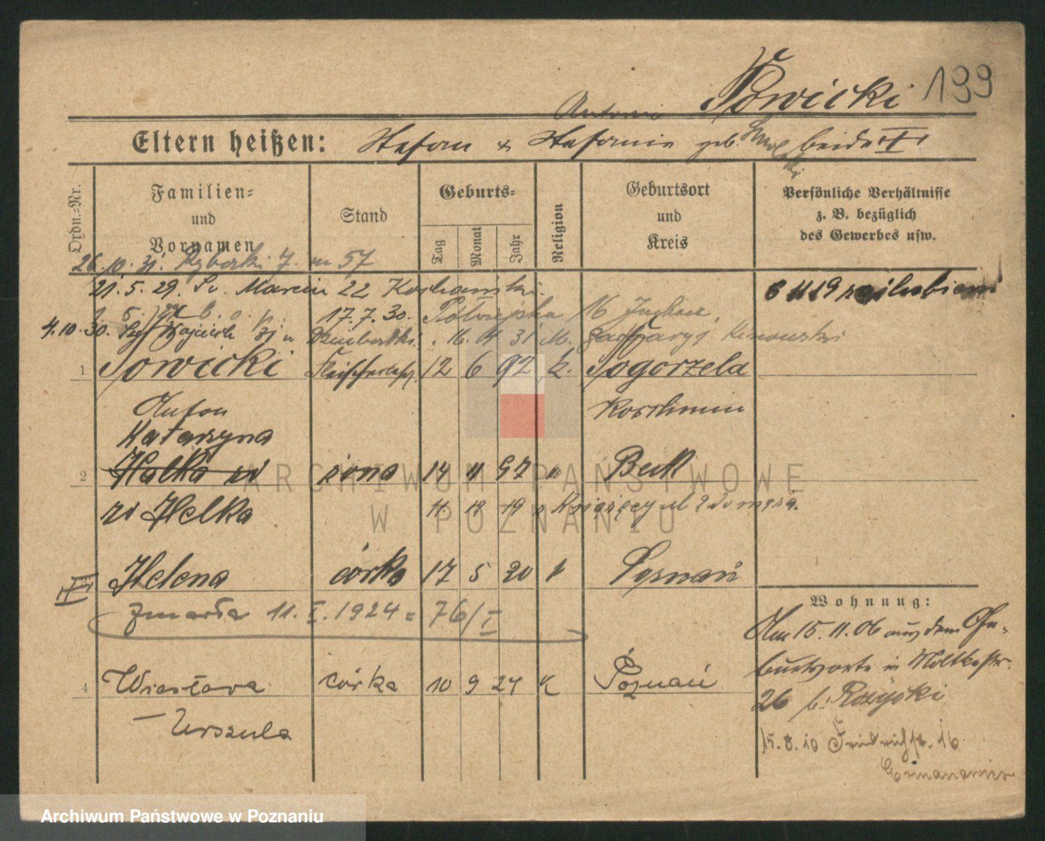 Podgląd karty osobowej dostępny jest po kliknięciu na nazwisko lub ikonkę karty. Można dokonywać powiększenia (ikony na górze) lub przechodzić między kolejnymi skanami (strzałki po bokach).