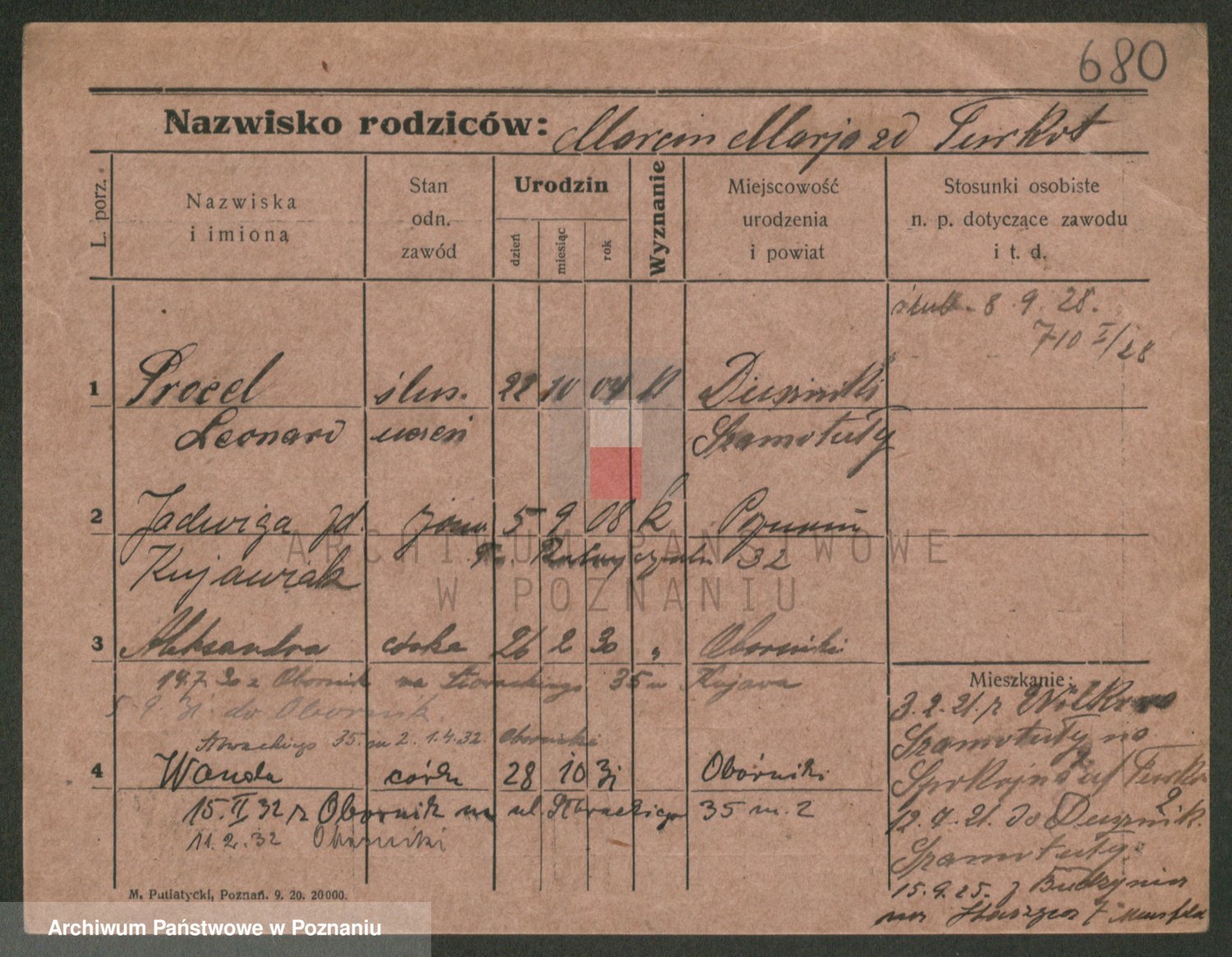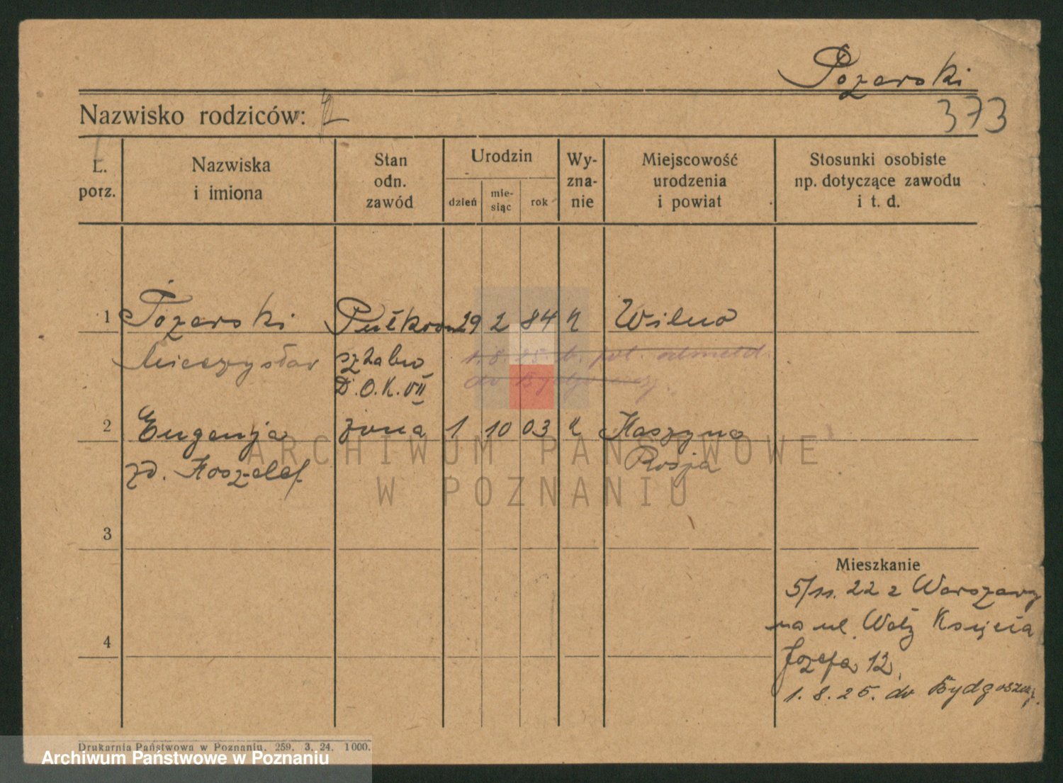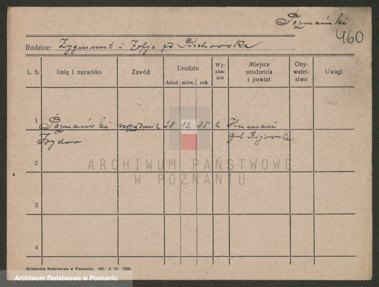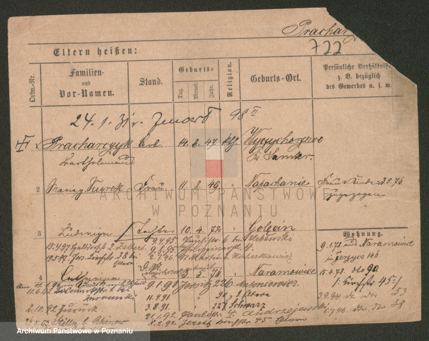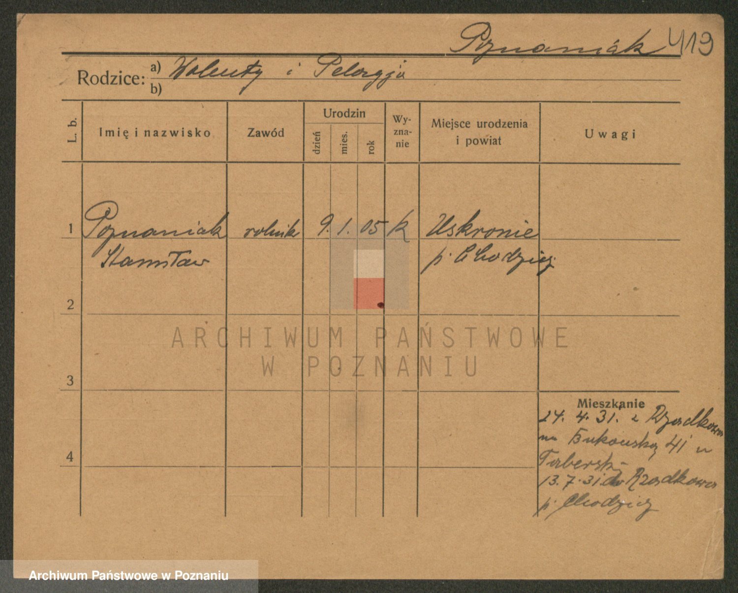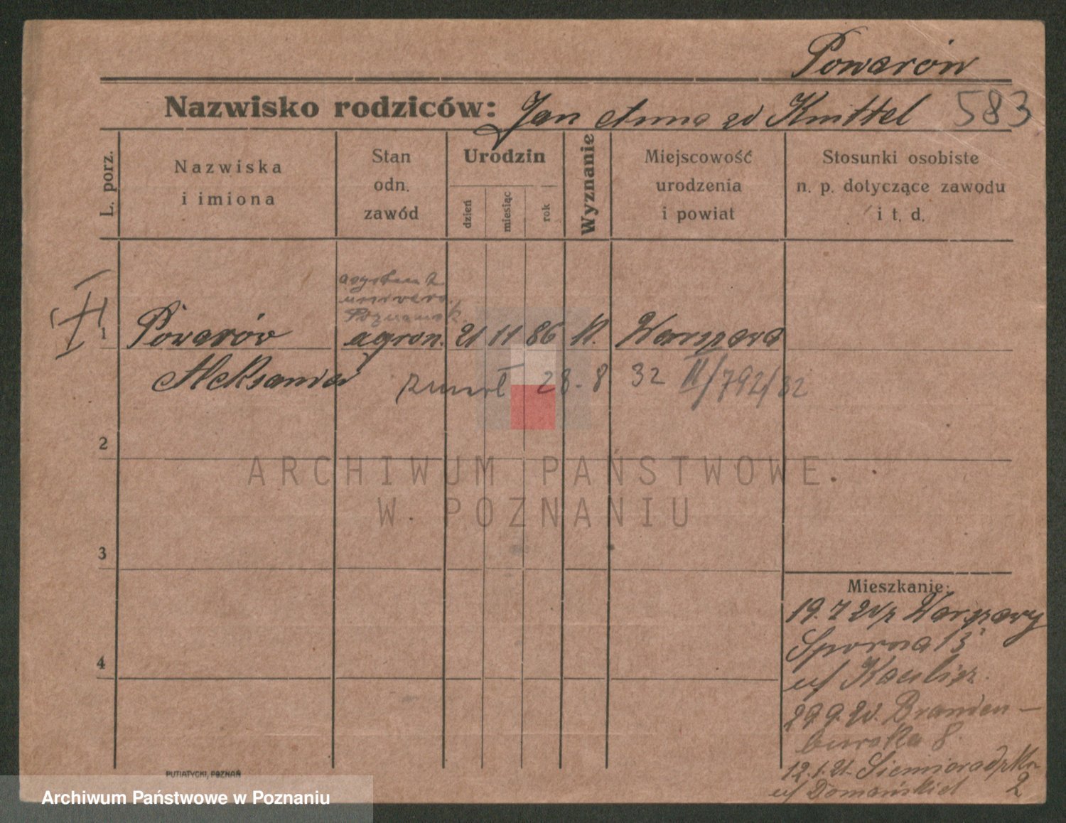 Podgląd karty osobowej dostępny jest po kliknięciu na nazwisko lub ikonkę karty. Można dokonywać powiększenia (ikony na górze) lub przechodzić między kolejnymi skanami (strzałki po bokach).