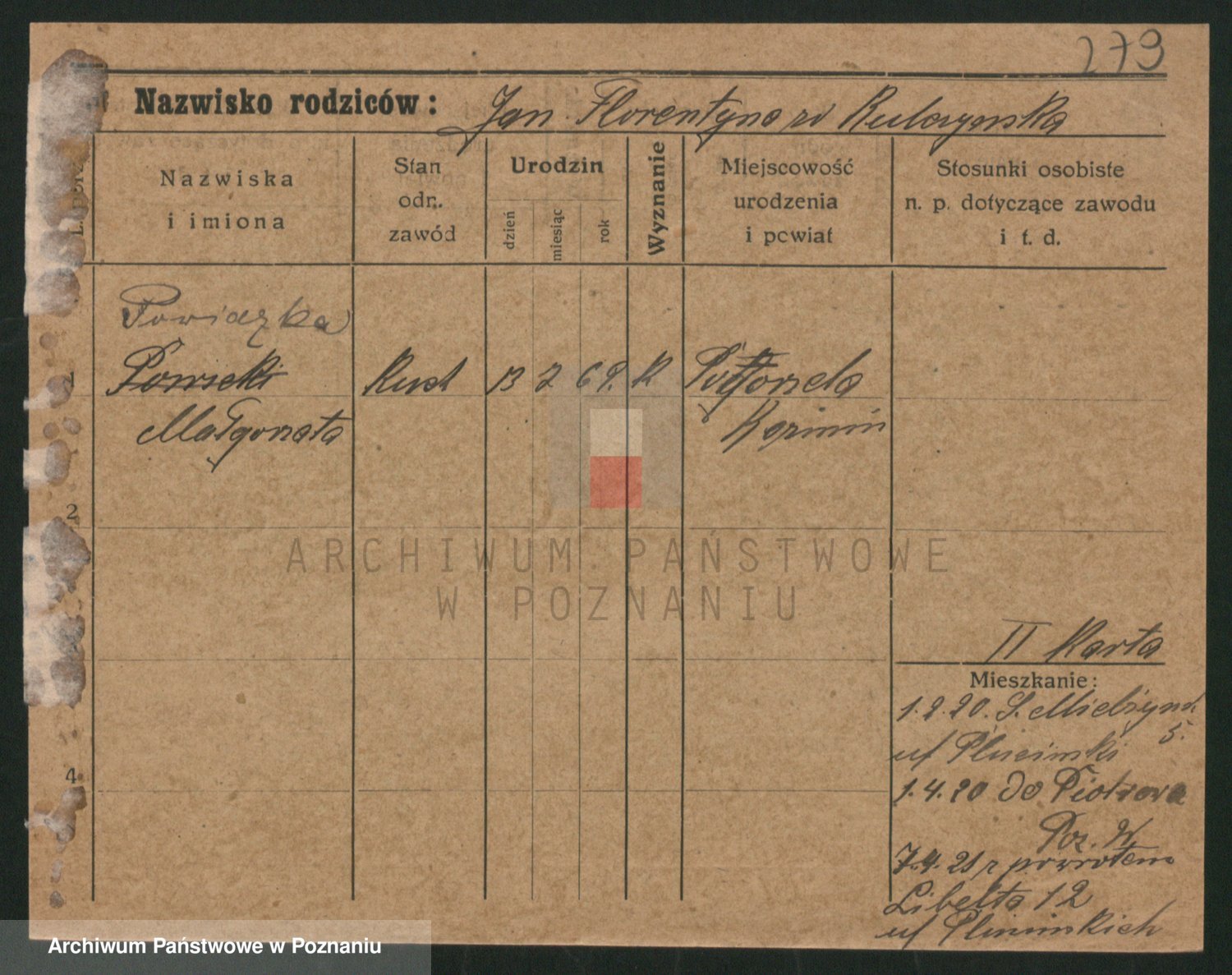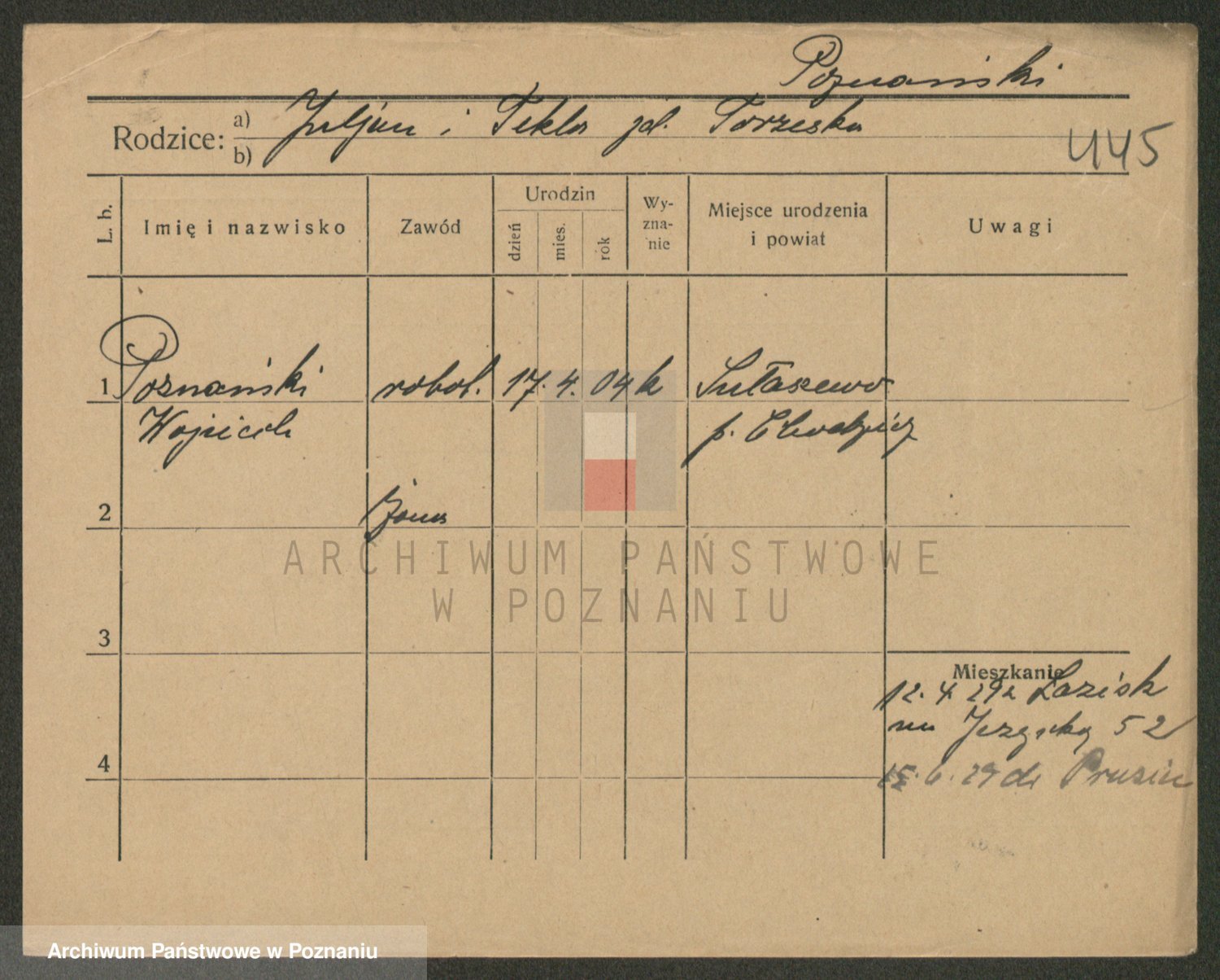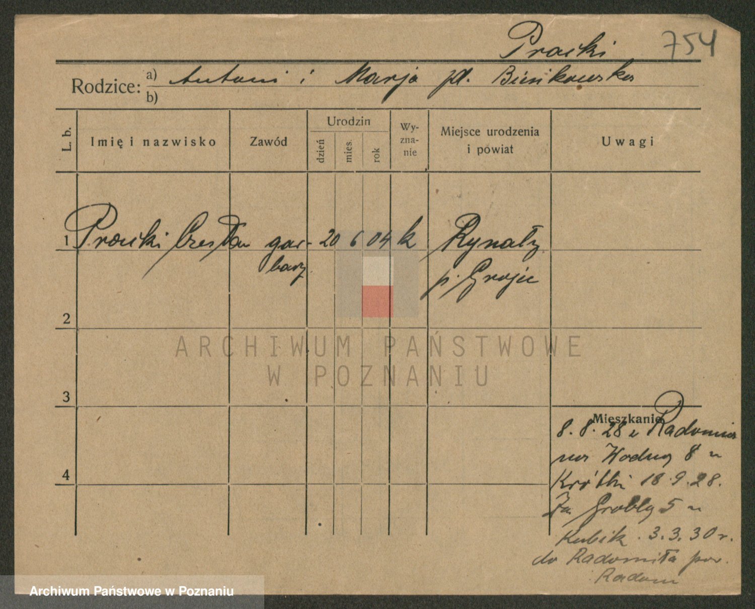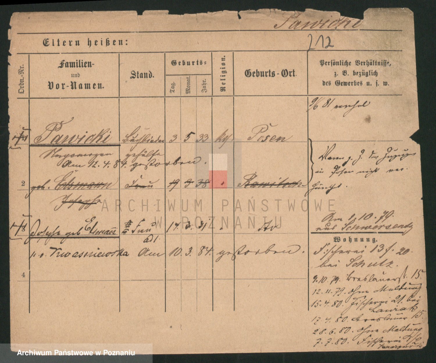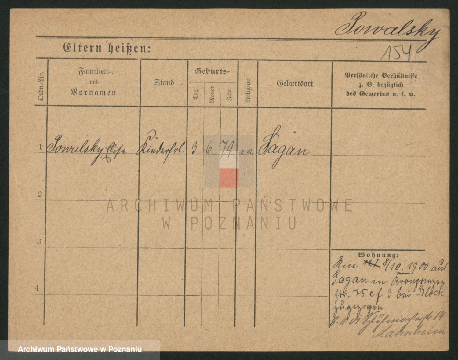 Podgląd karty osobowej dostępny jest po kliknięciu na nazwisko lub ikonkę karty. Można dokonywać powiększenia (ikony na górze) lub przechodzić między kolejnymi skanami (strzałki po bokach).