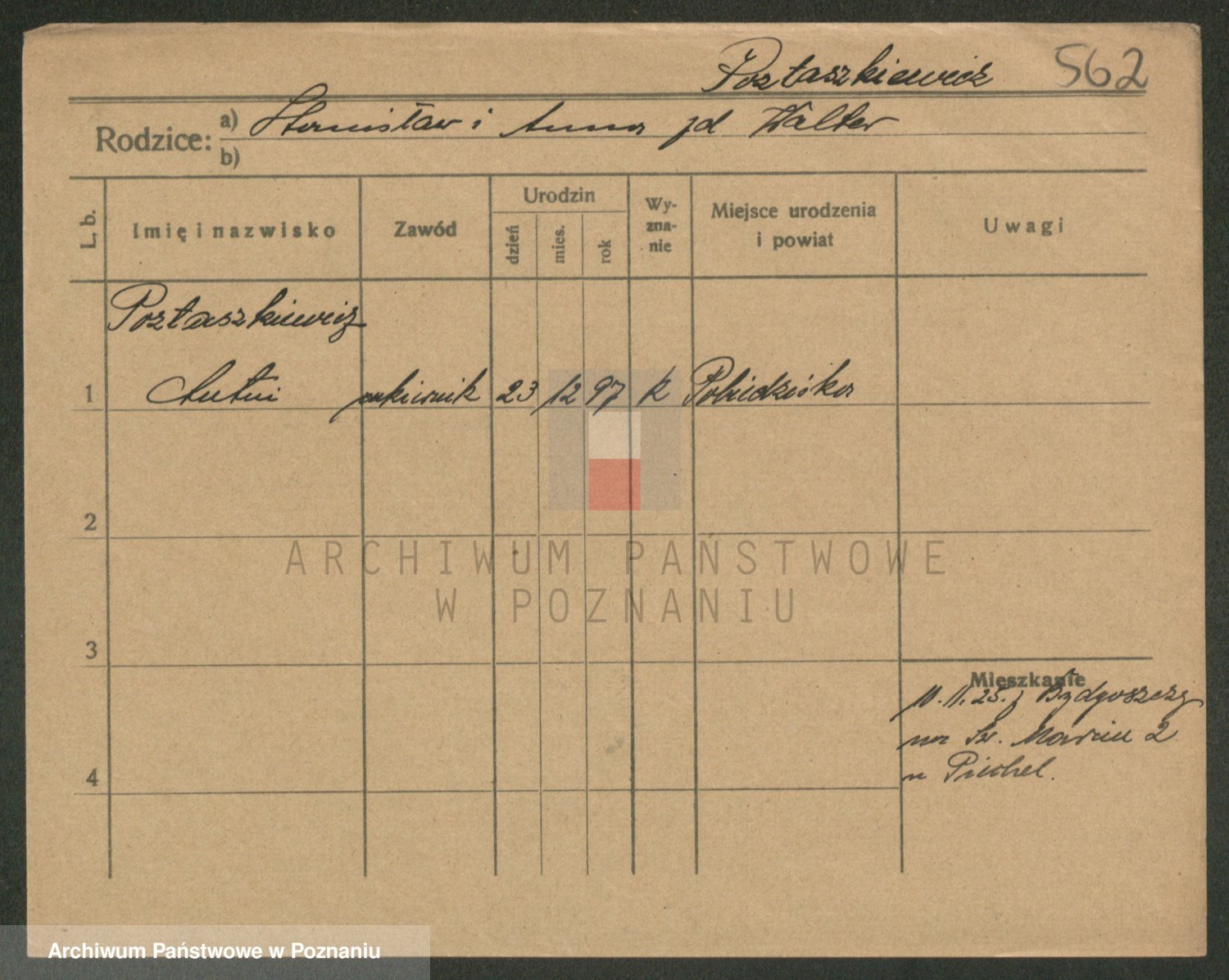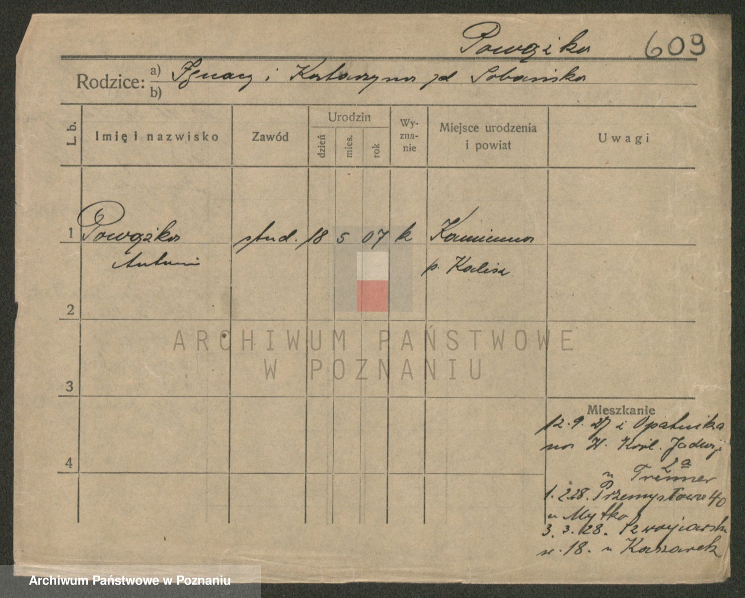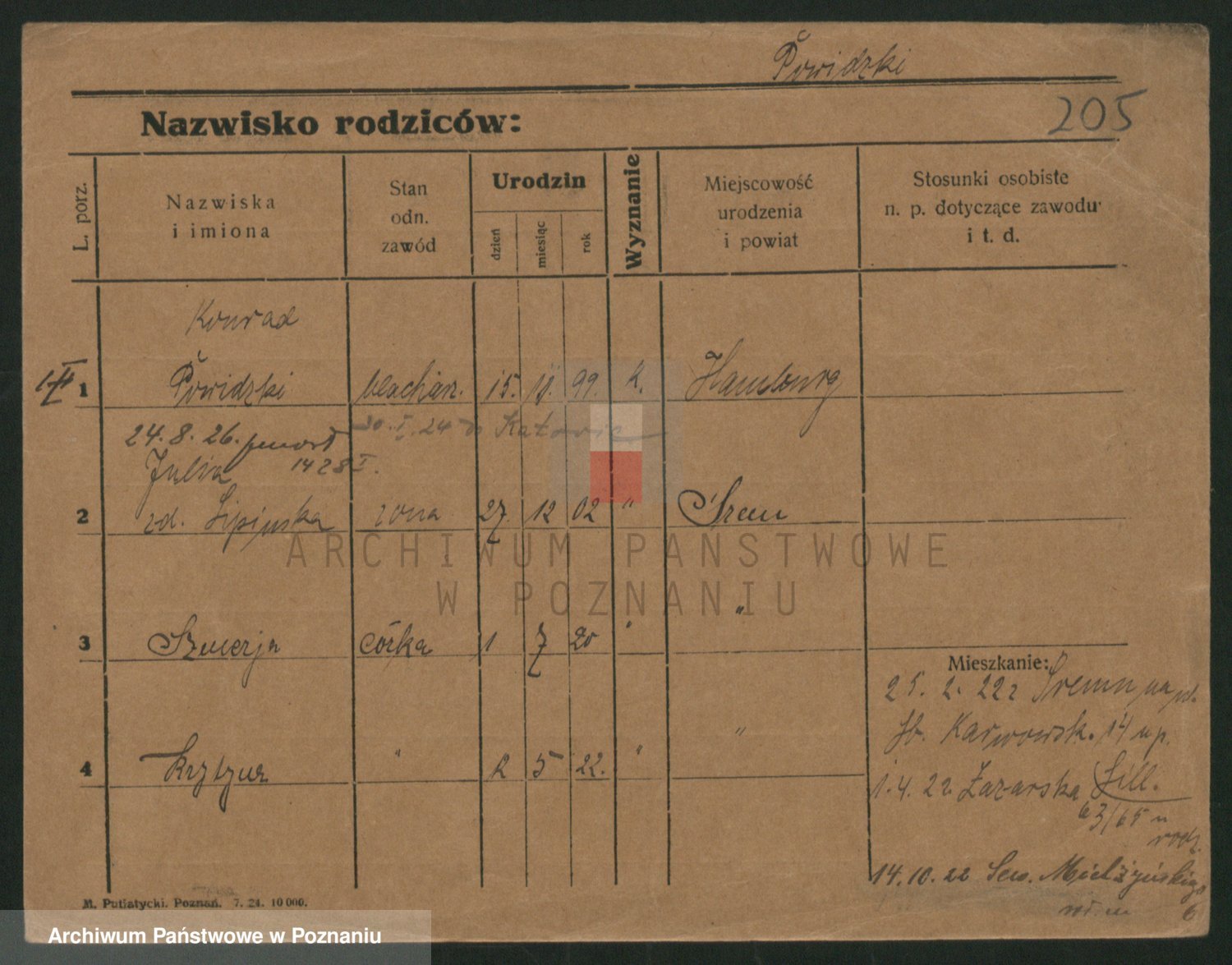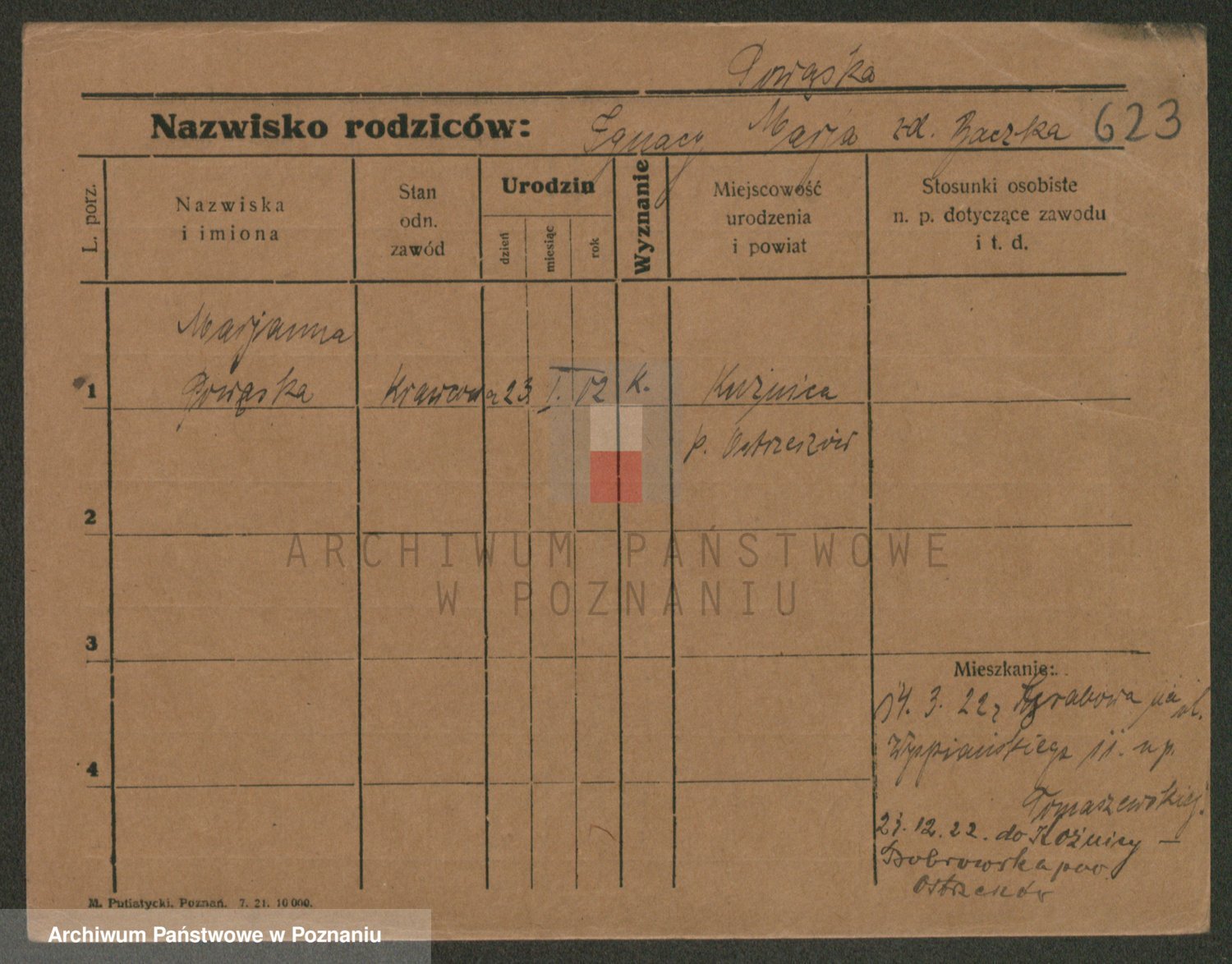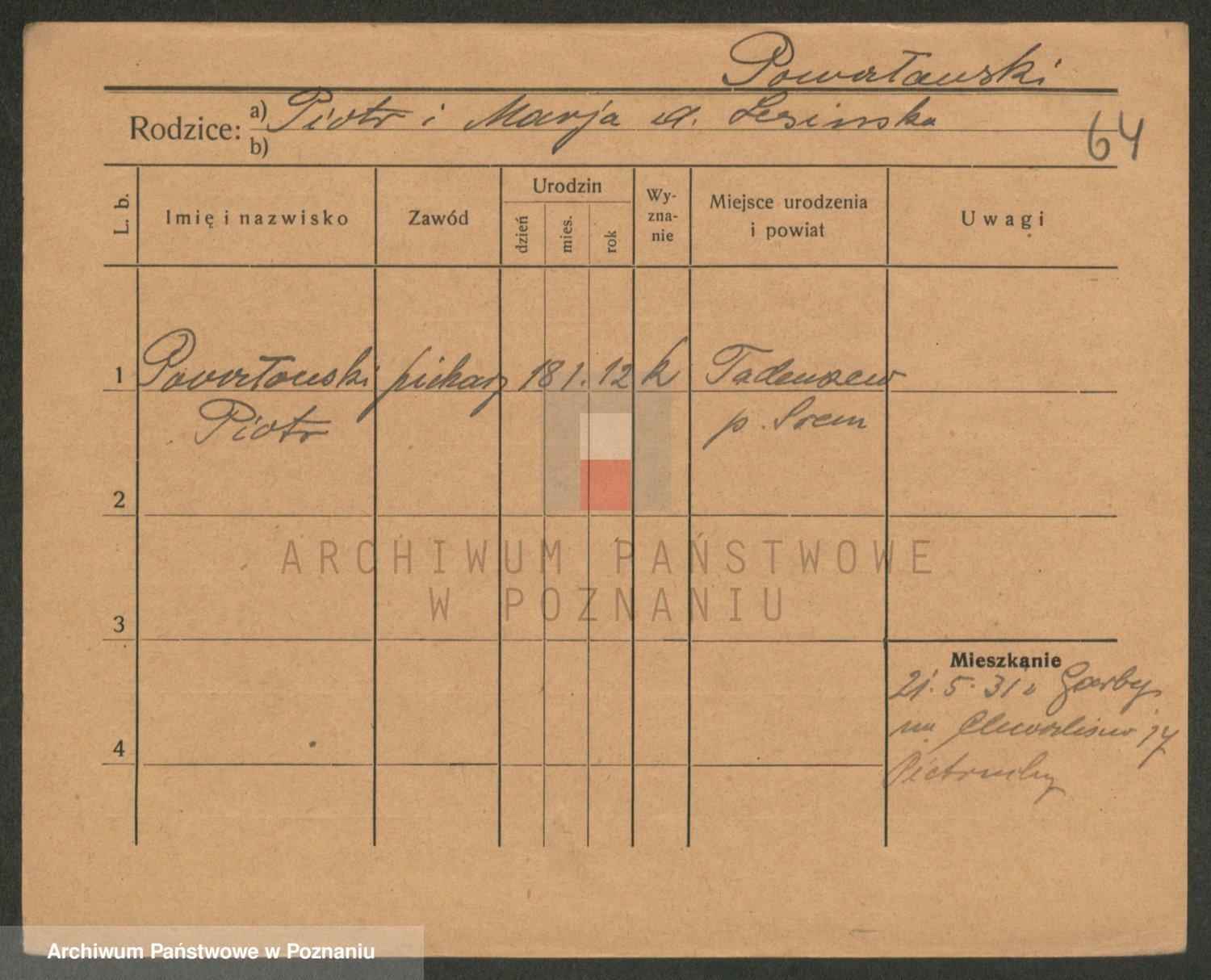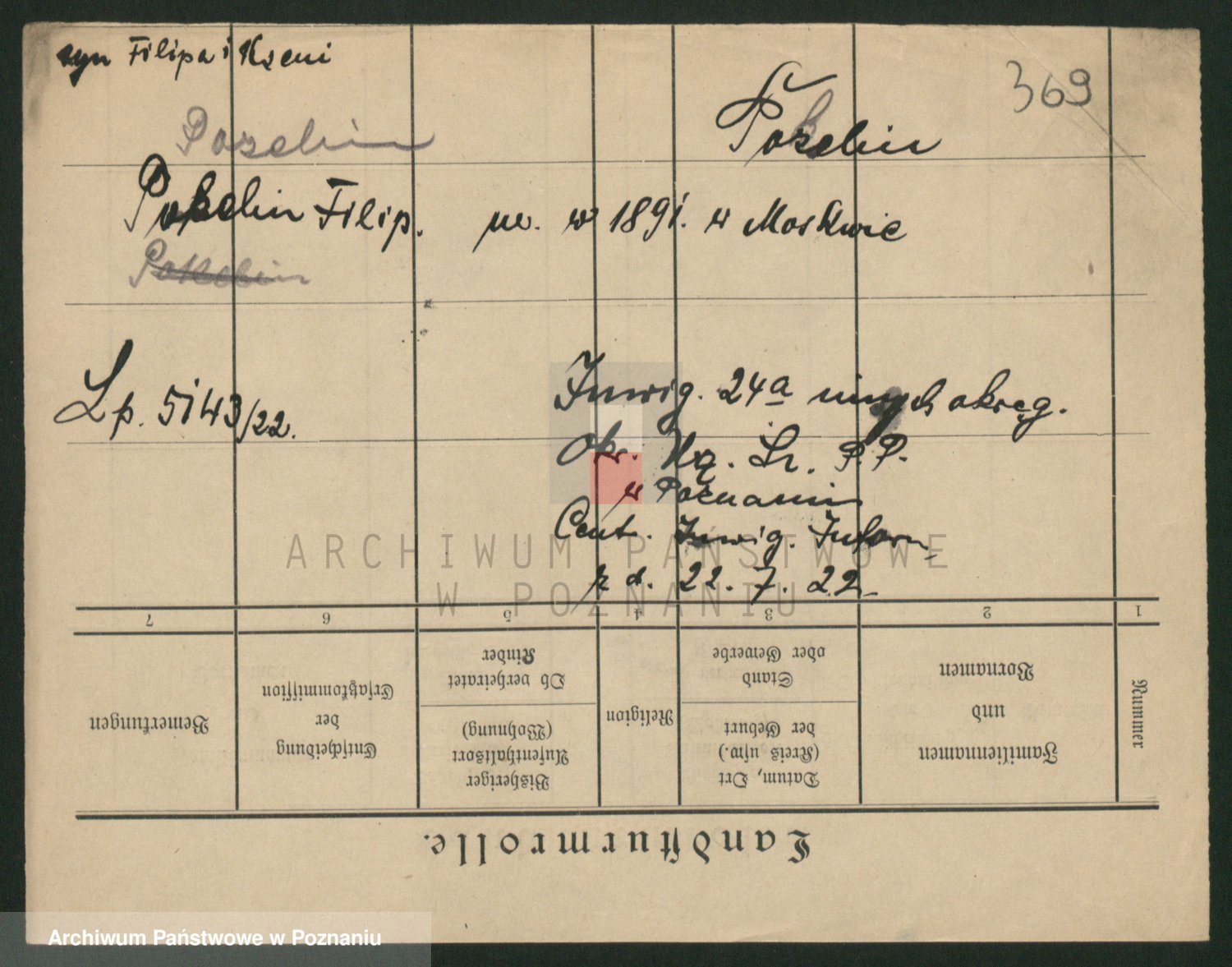Podgląd karty osobowej dostępny jest po kliknięciu na nazwisko lub ikonkę karty. Można dokonywać powiększenia (ikony na górze) lub przechodzić między kolejnymi skanami (strzałki po bokach).