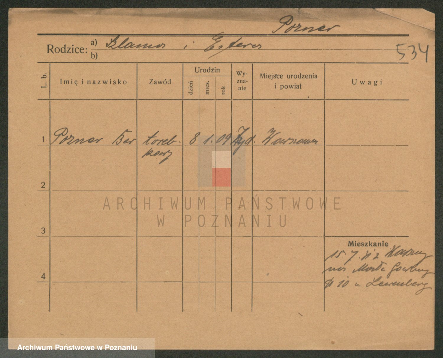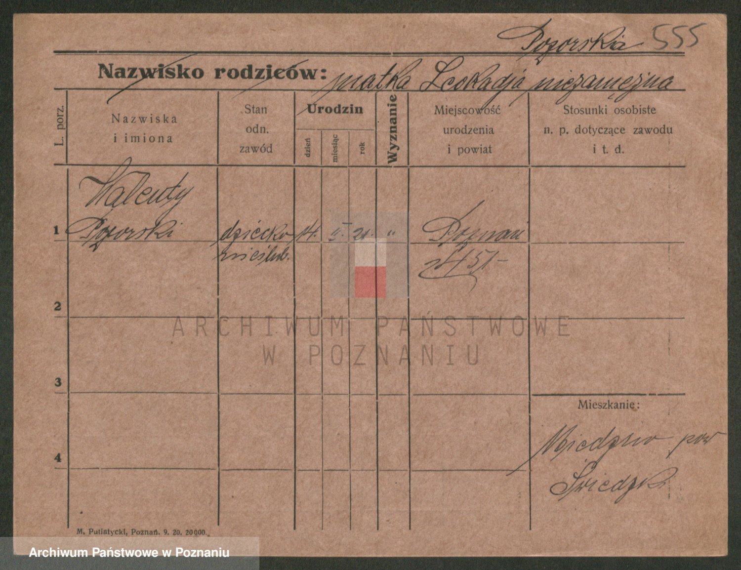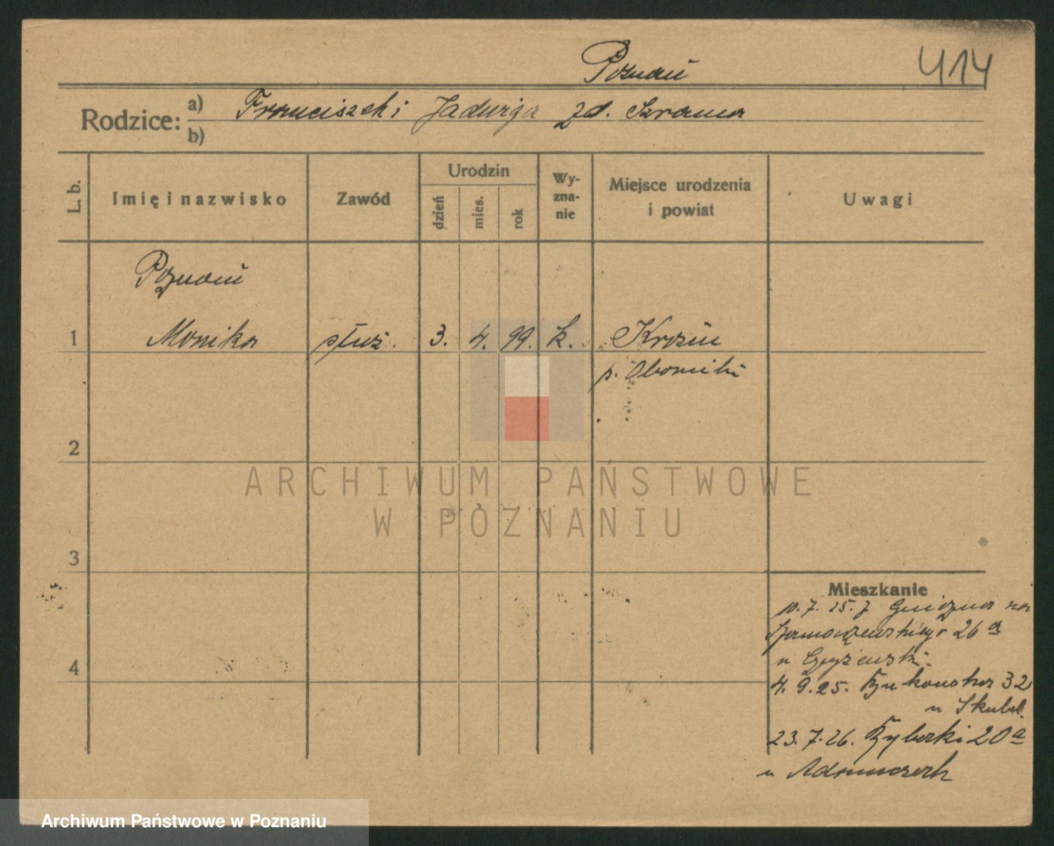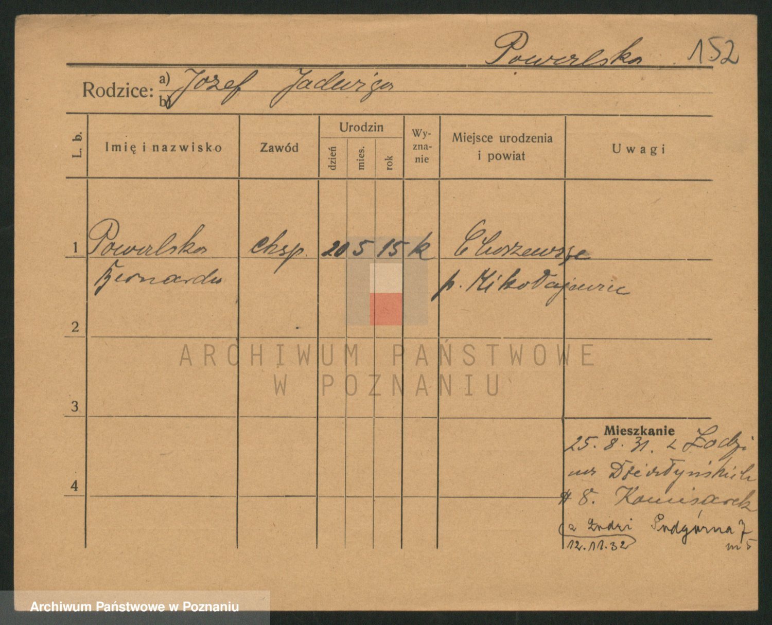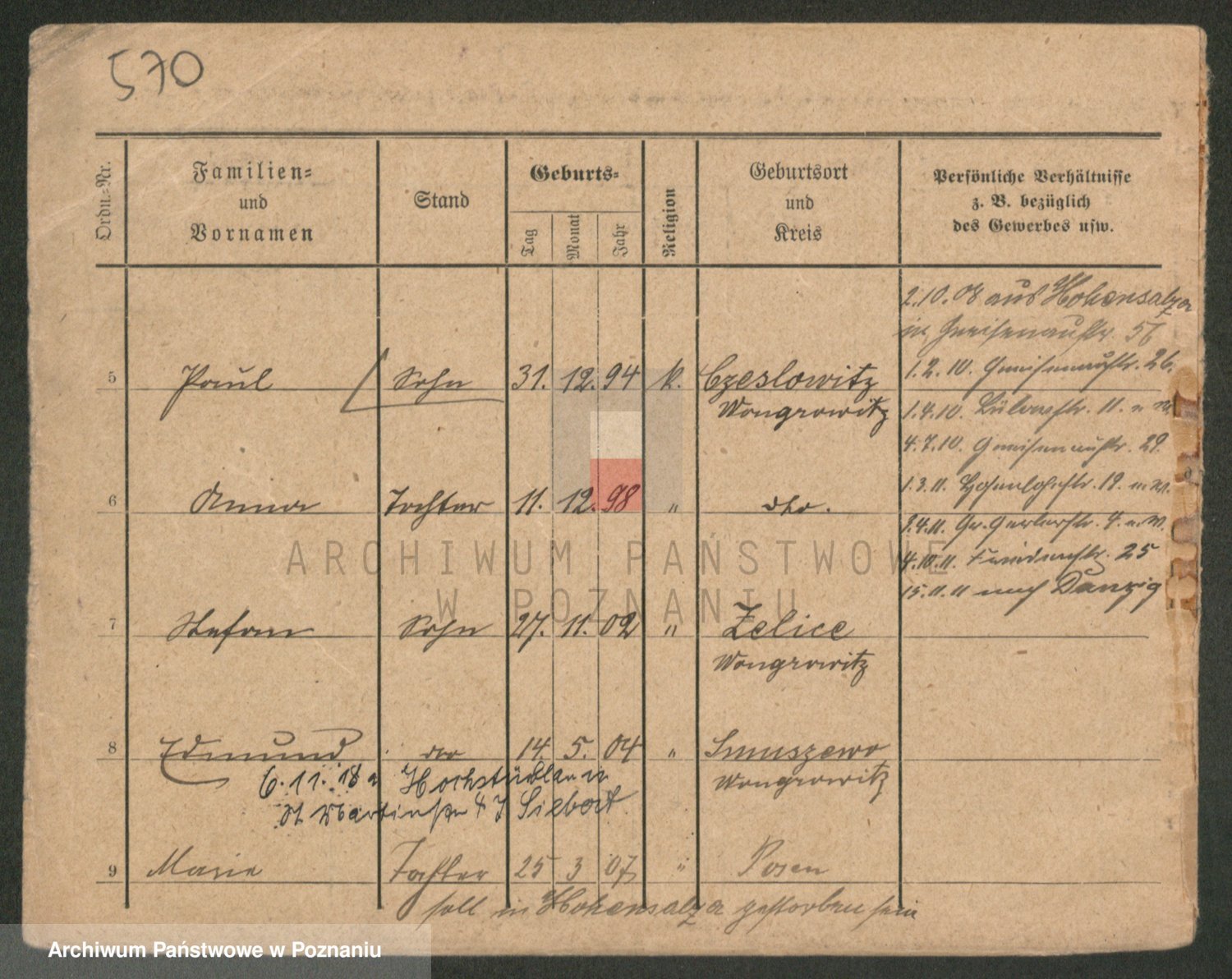 Podgląd karty osobowej dostępny jest po kliknięciu na nazwisko lub ikonkę karty. Można dokonywać powiększenia (ikony na górze) lub przechodzić między kolejnymi skanami (strzałki po bokach).