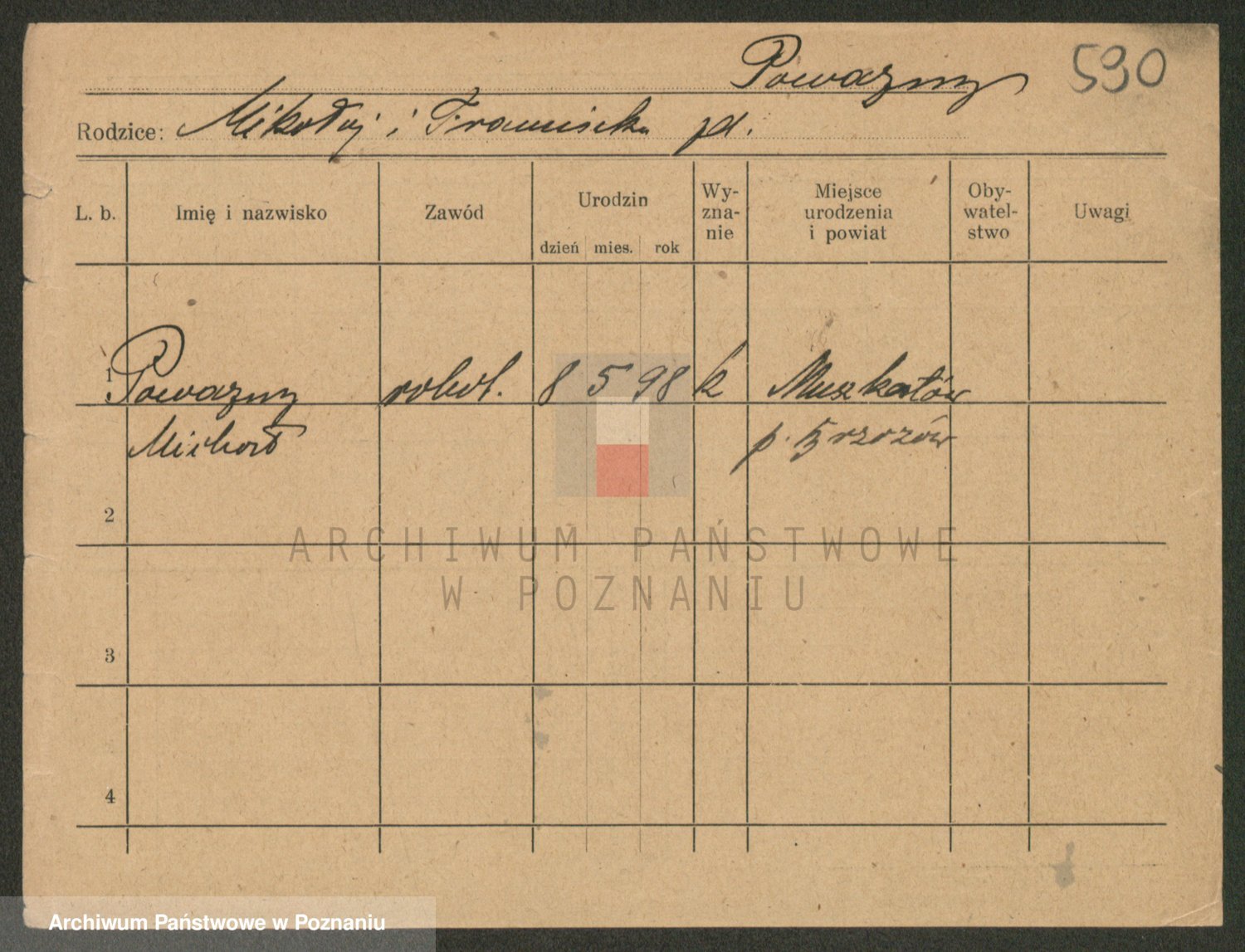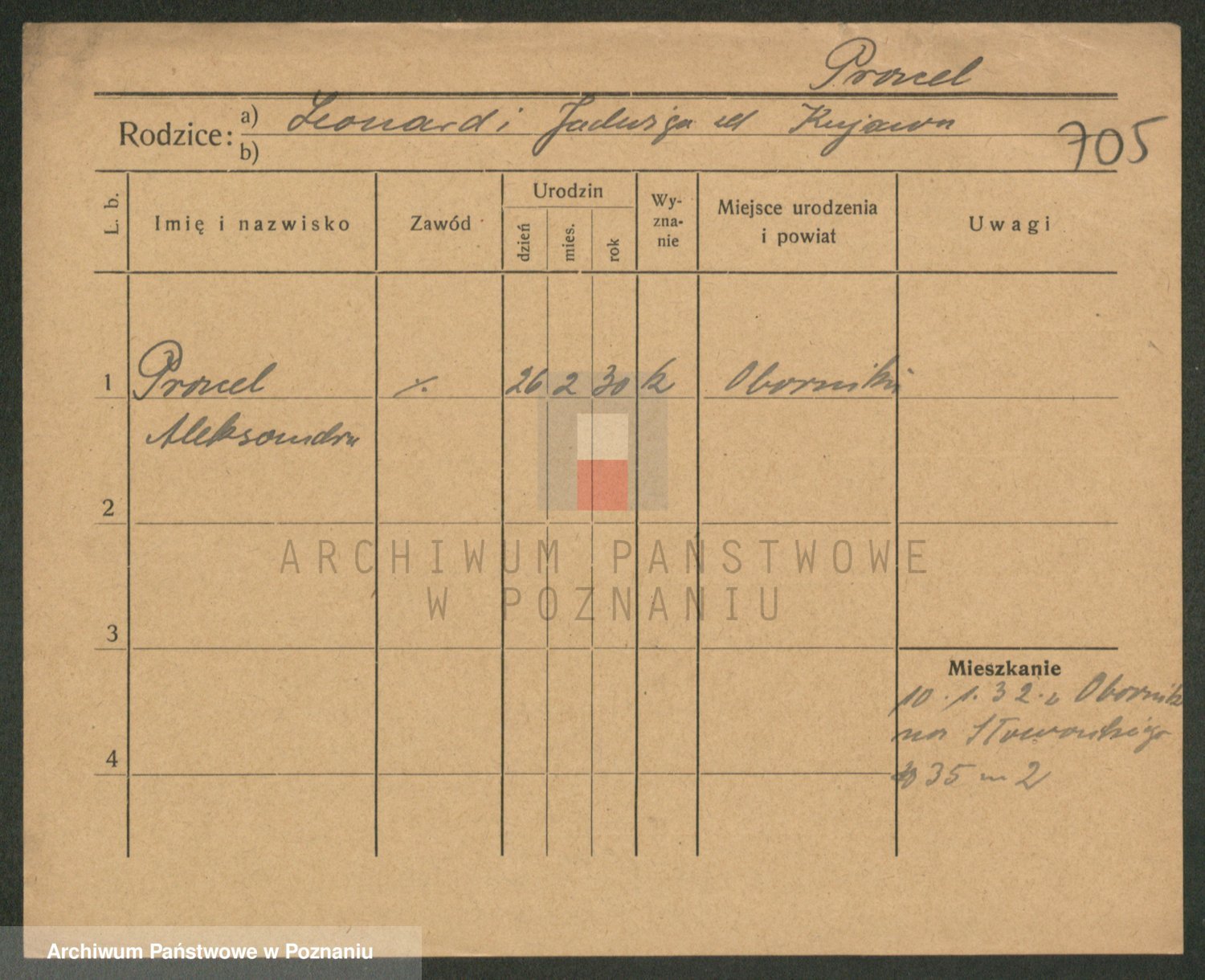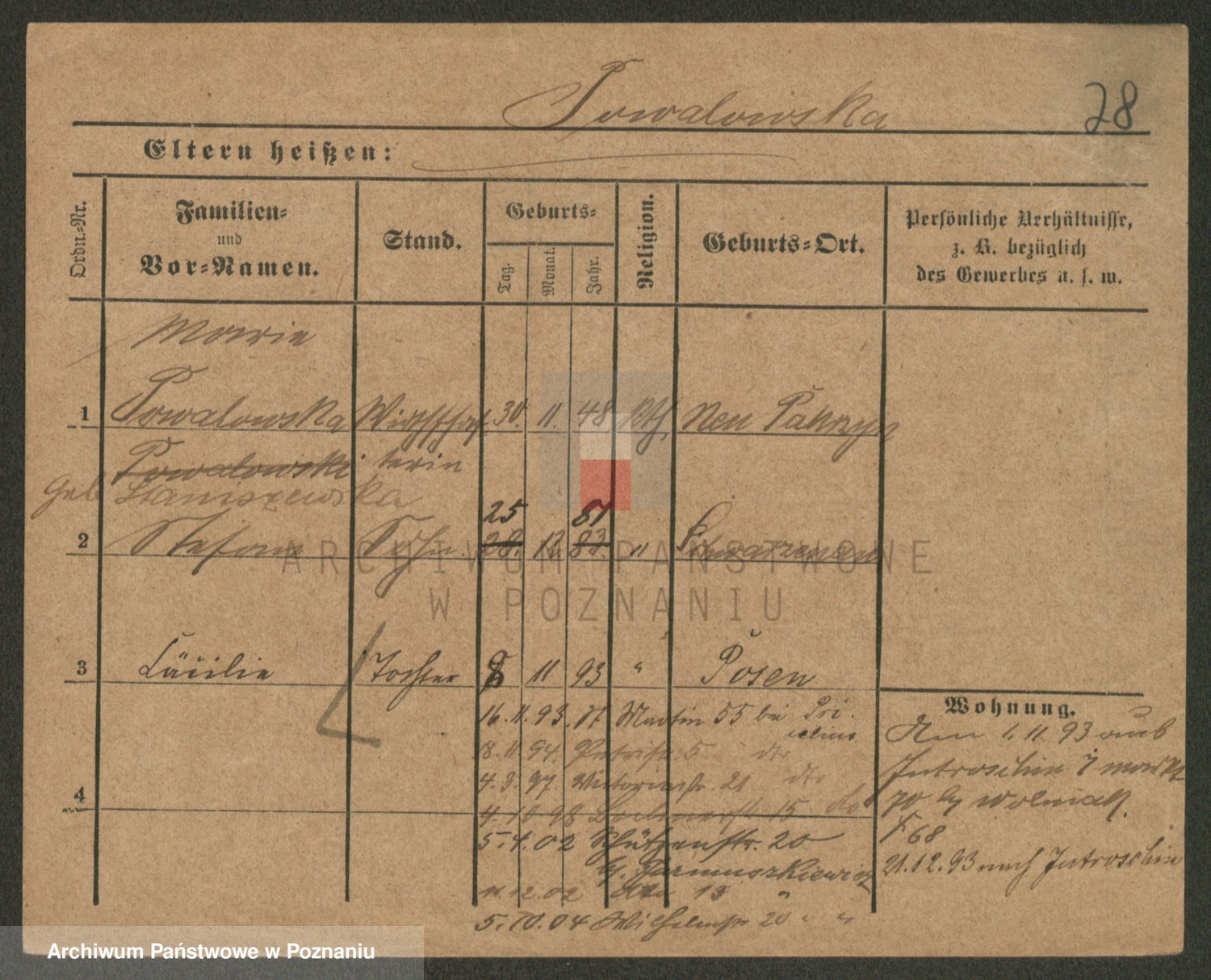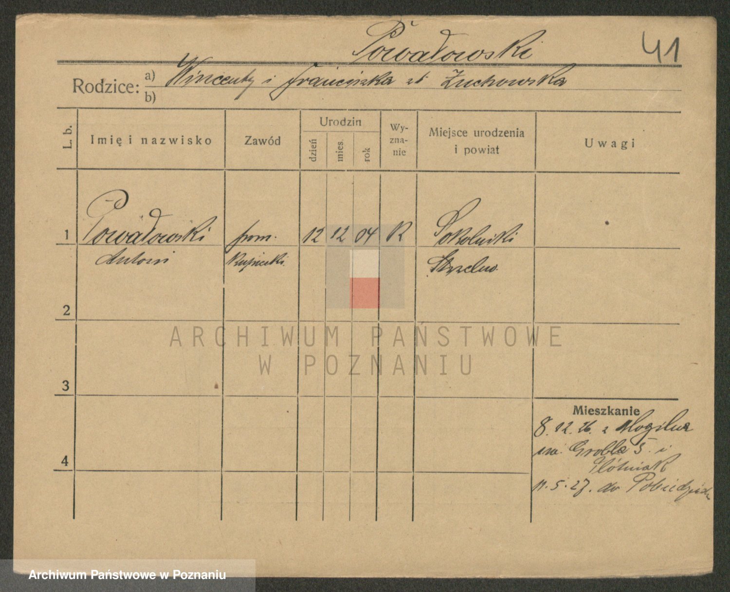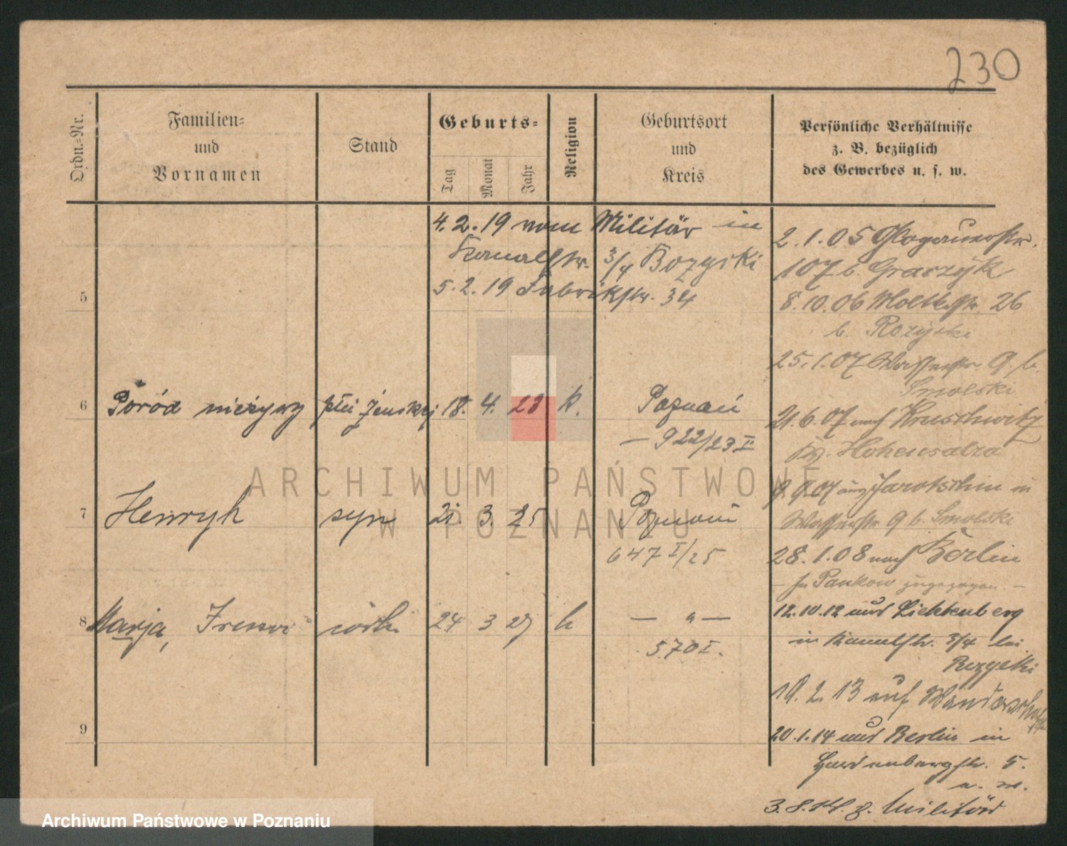 Podgląd karty osobowej dostępny jest po kliknięciu na nazwisko lub ikonkę karty. Można dokonywać powiększenia (ikony na górze) lub przechodzić między kolejnymi skanami (strzałki po bokach).