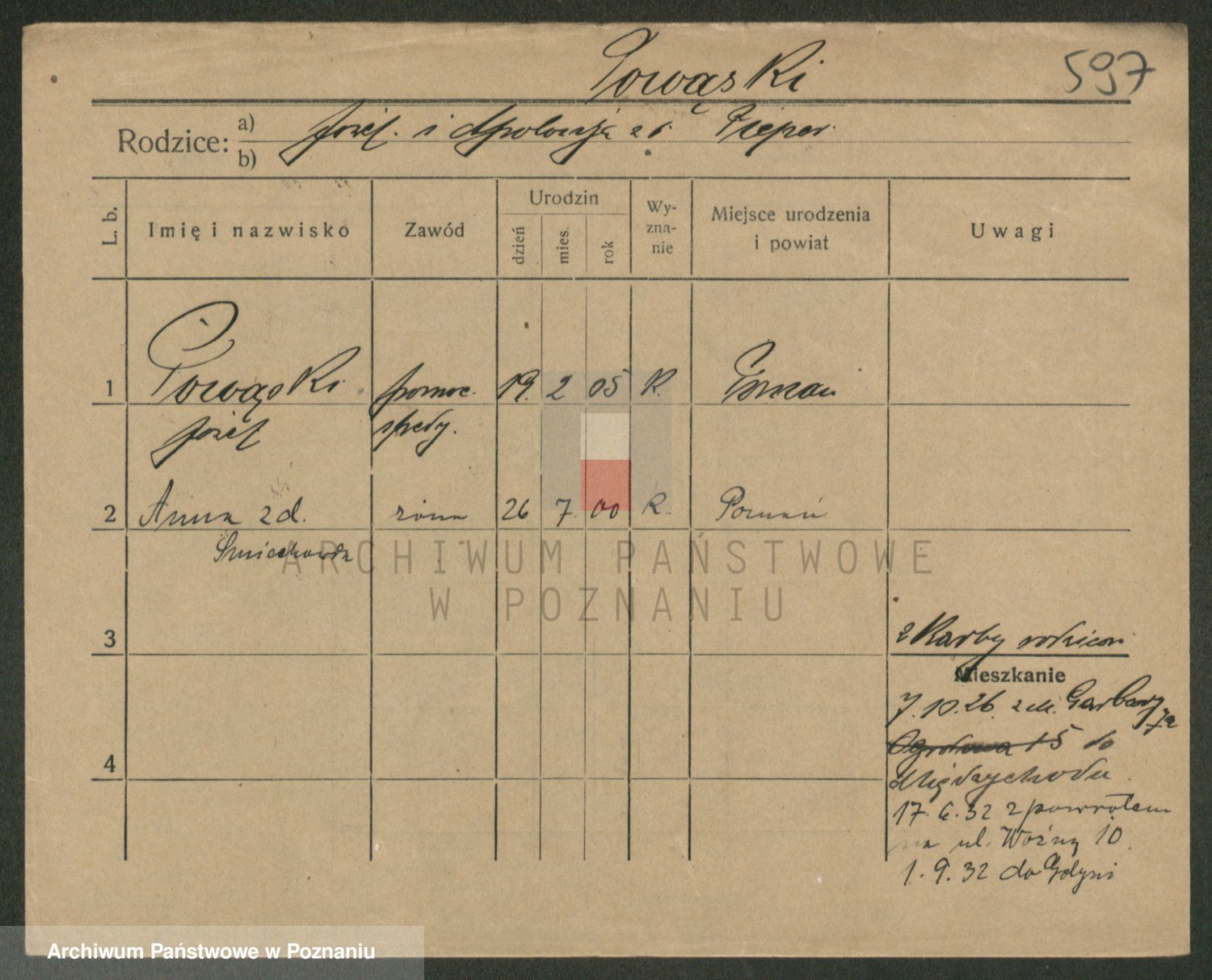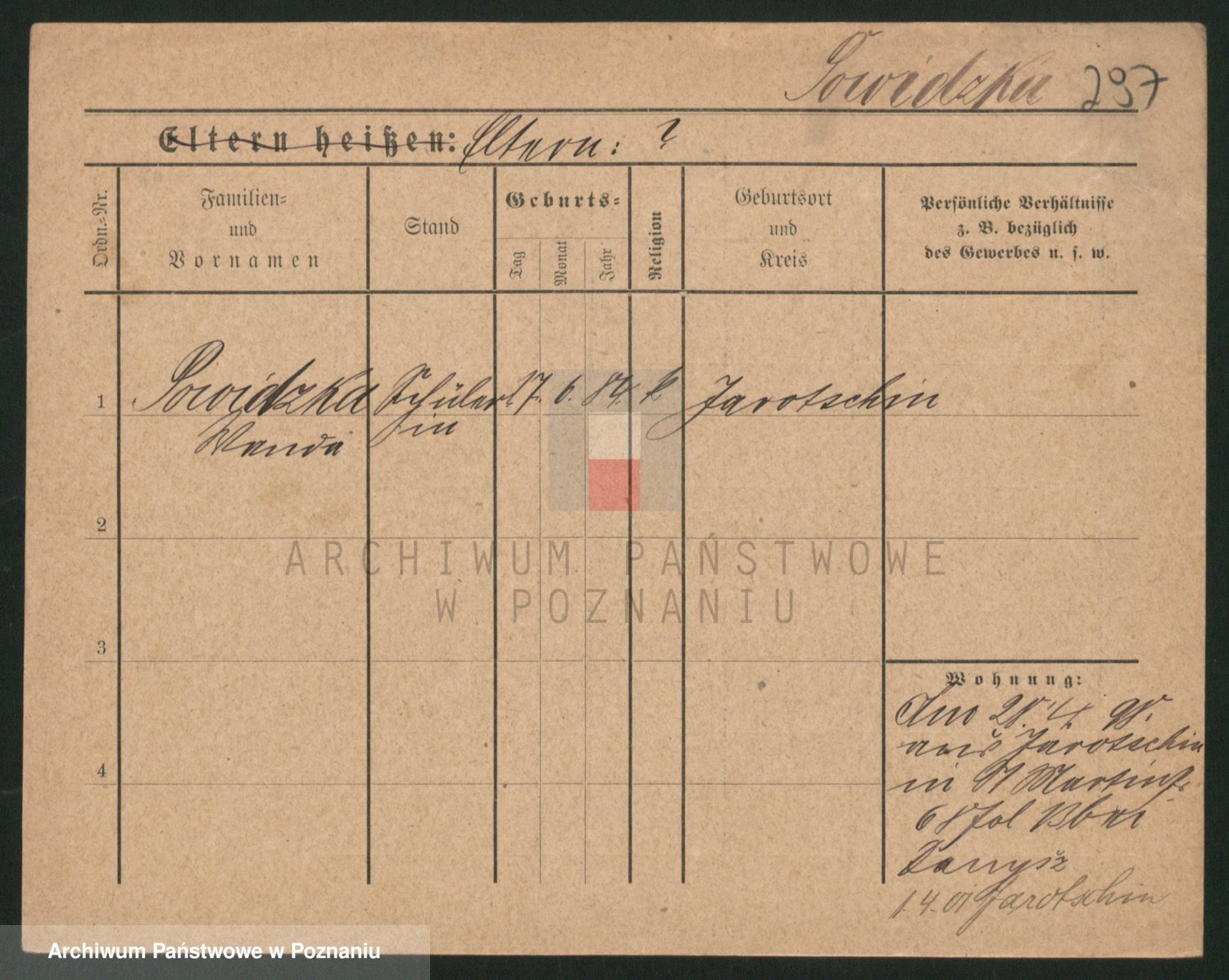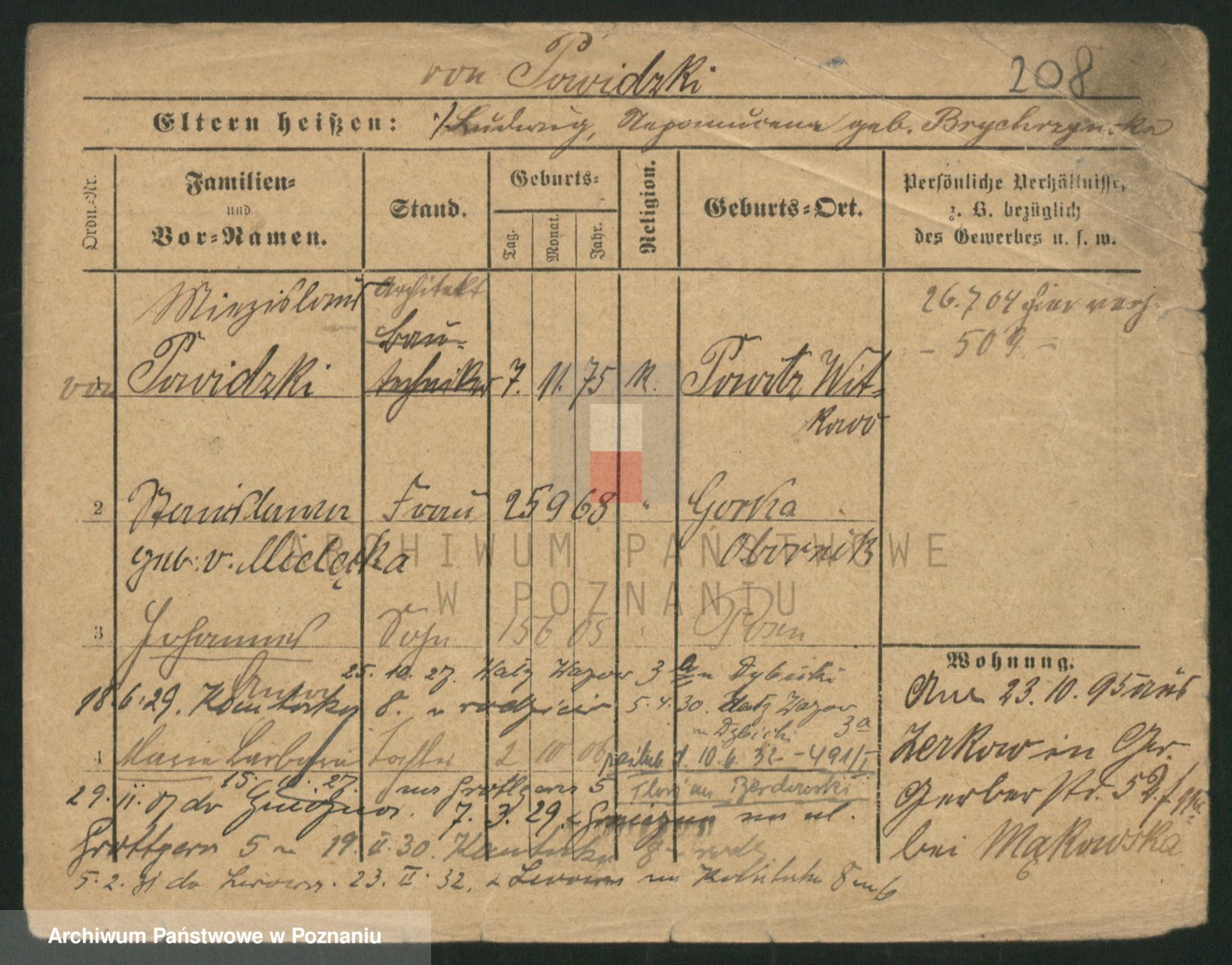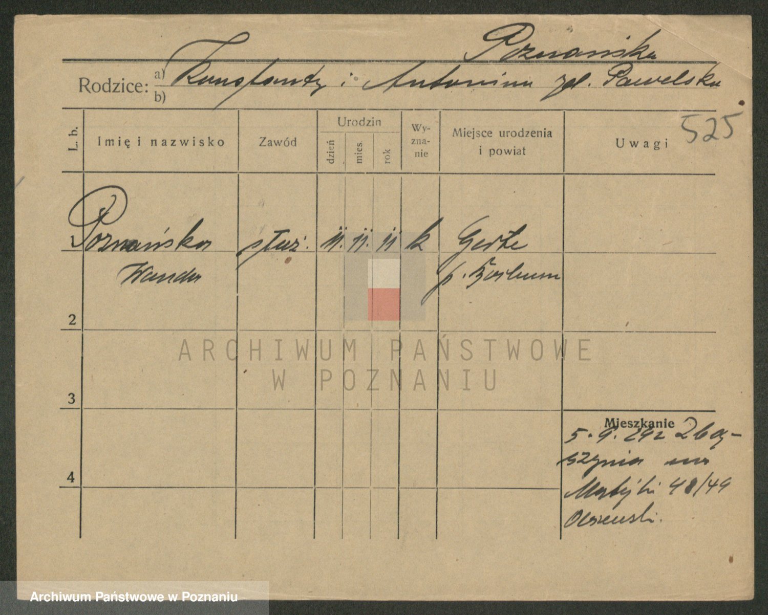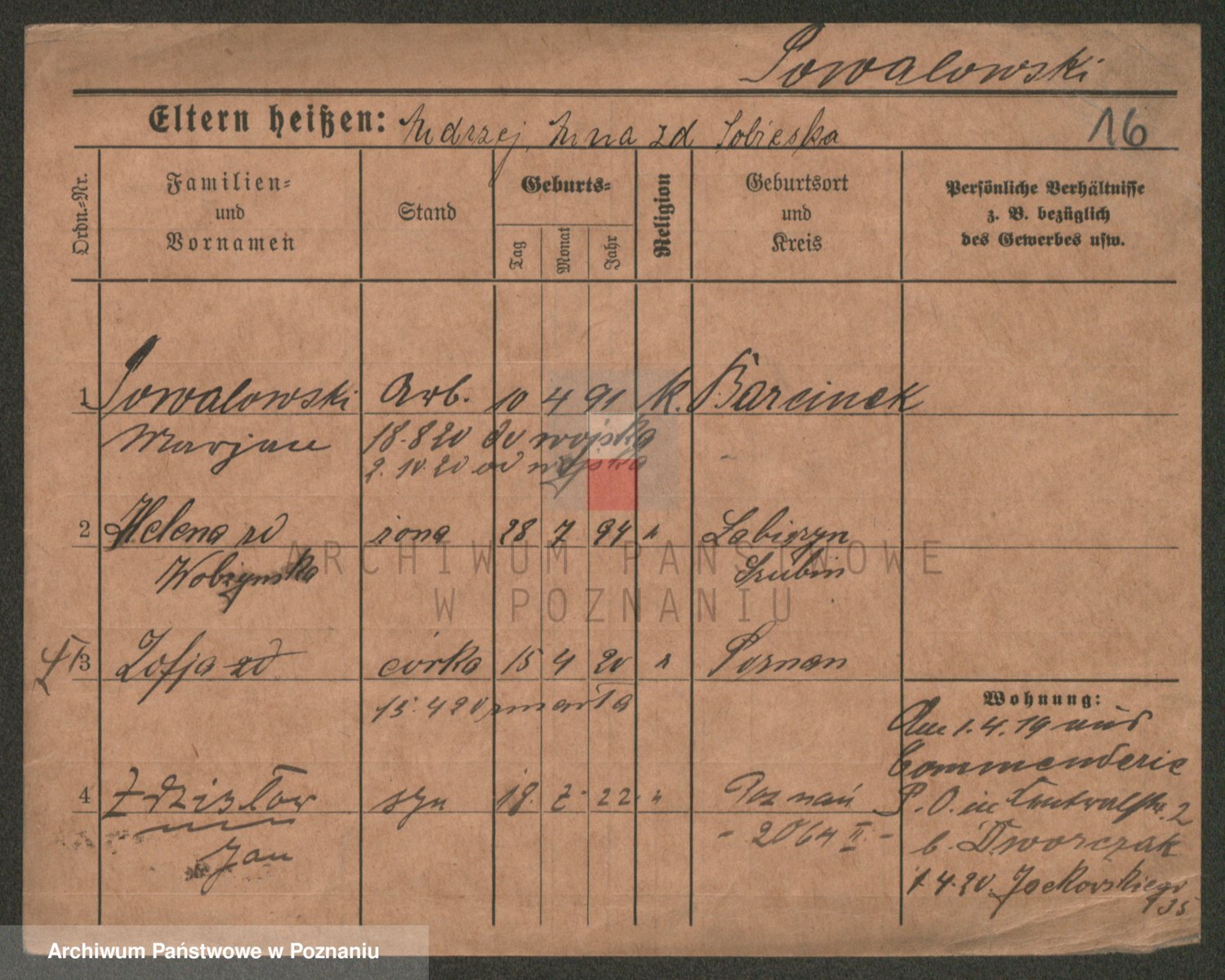 Podgląd karty osobowej dostępny jest po kliknięciu na nazwisko lub ikonkę karty. Można dokonywać powiększenia (ikony na górze) lub przechodzić między kolejnymi skanami (strzałki po bokach).