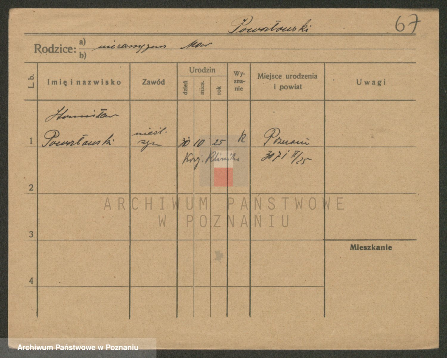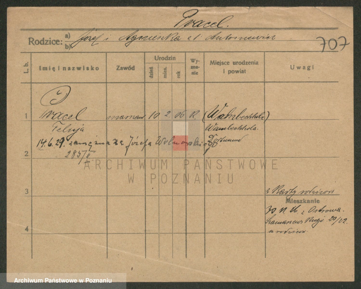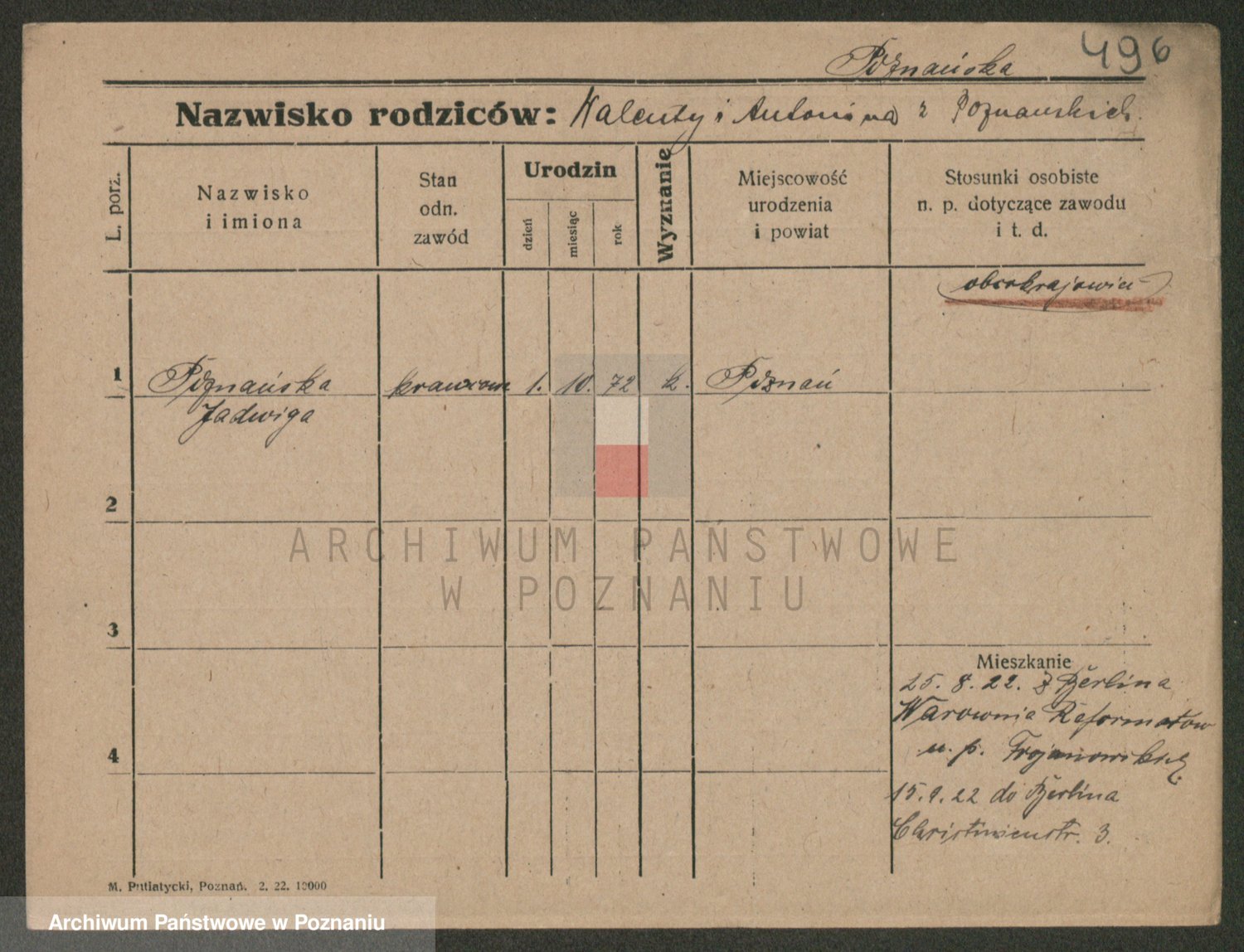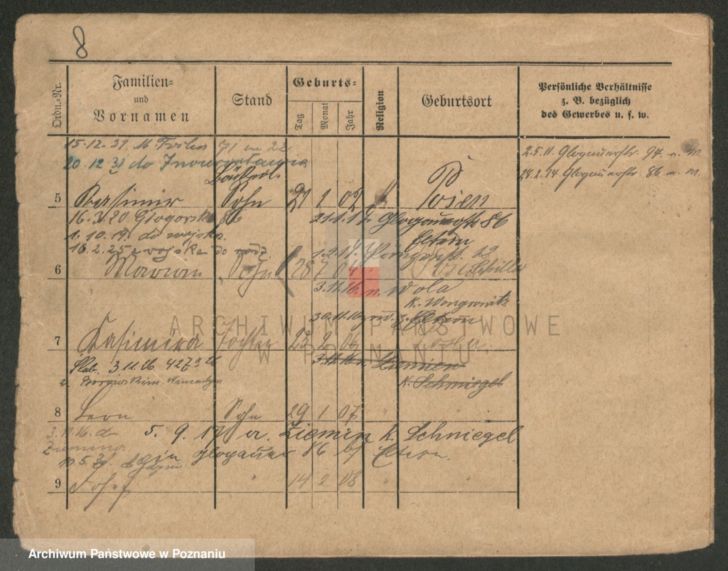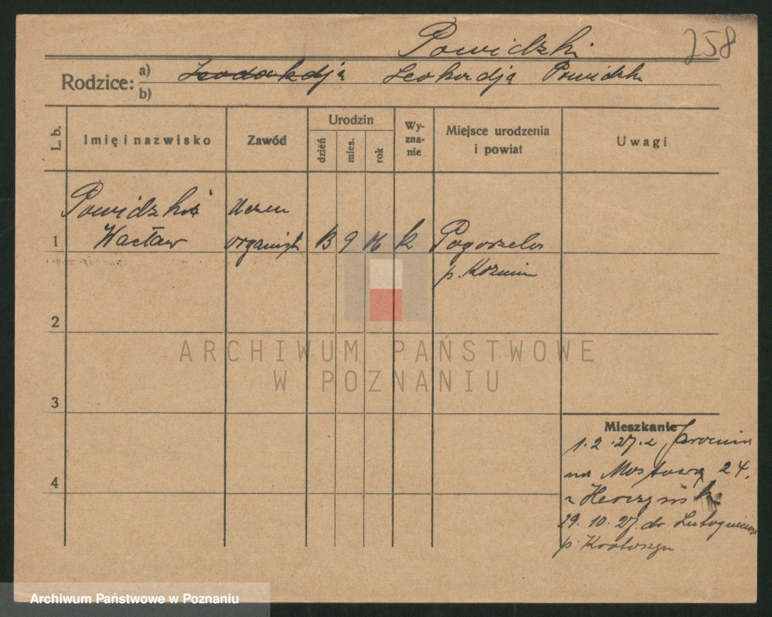 Podgląd karty osobowej dostępny jest po kliknięciu na nazwisko lub ikonkę karty. Można dokonywać powiększenia (ikony na górze) lub przechodzić między kolejnymi skanami (strzałki po bokach).