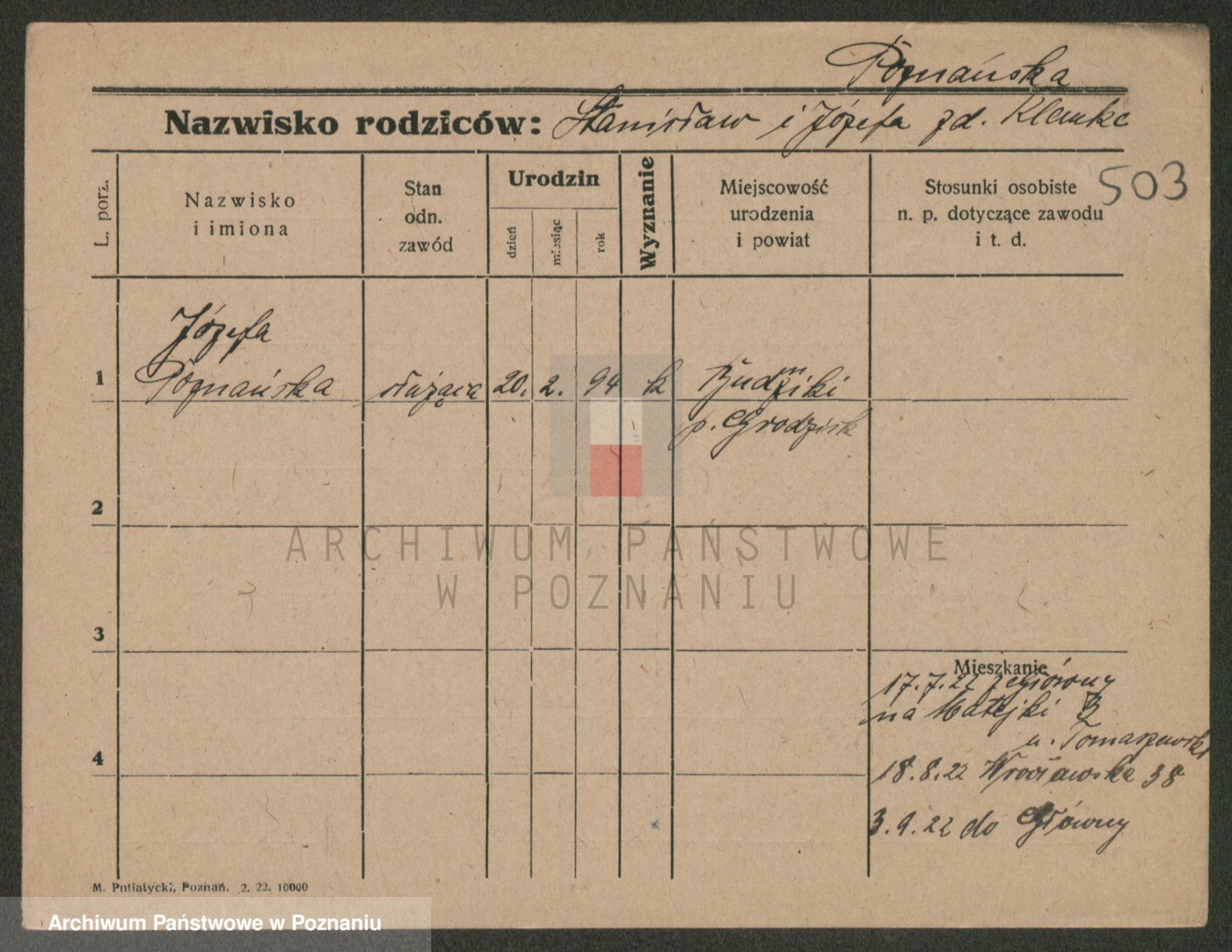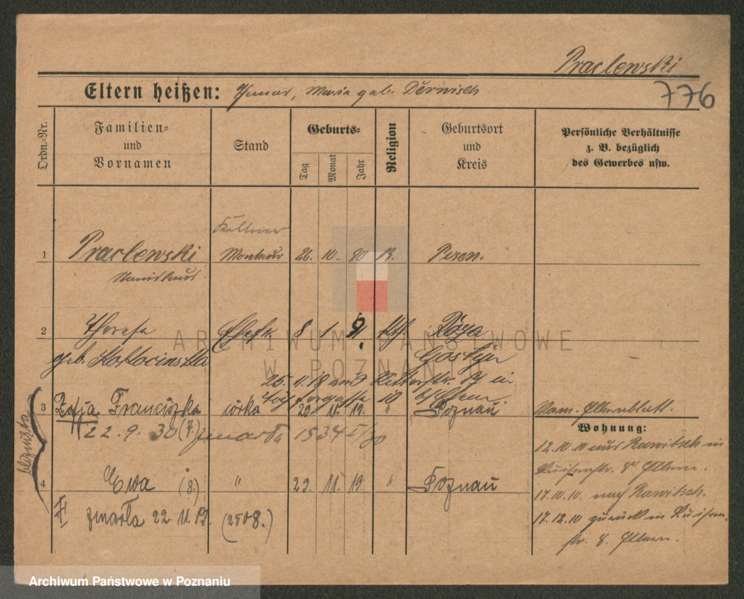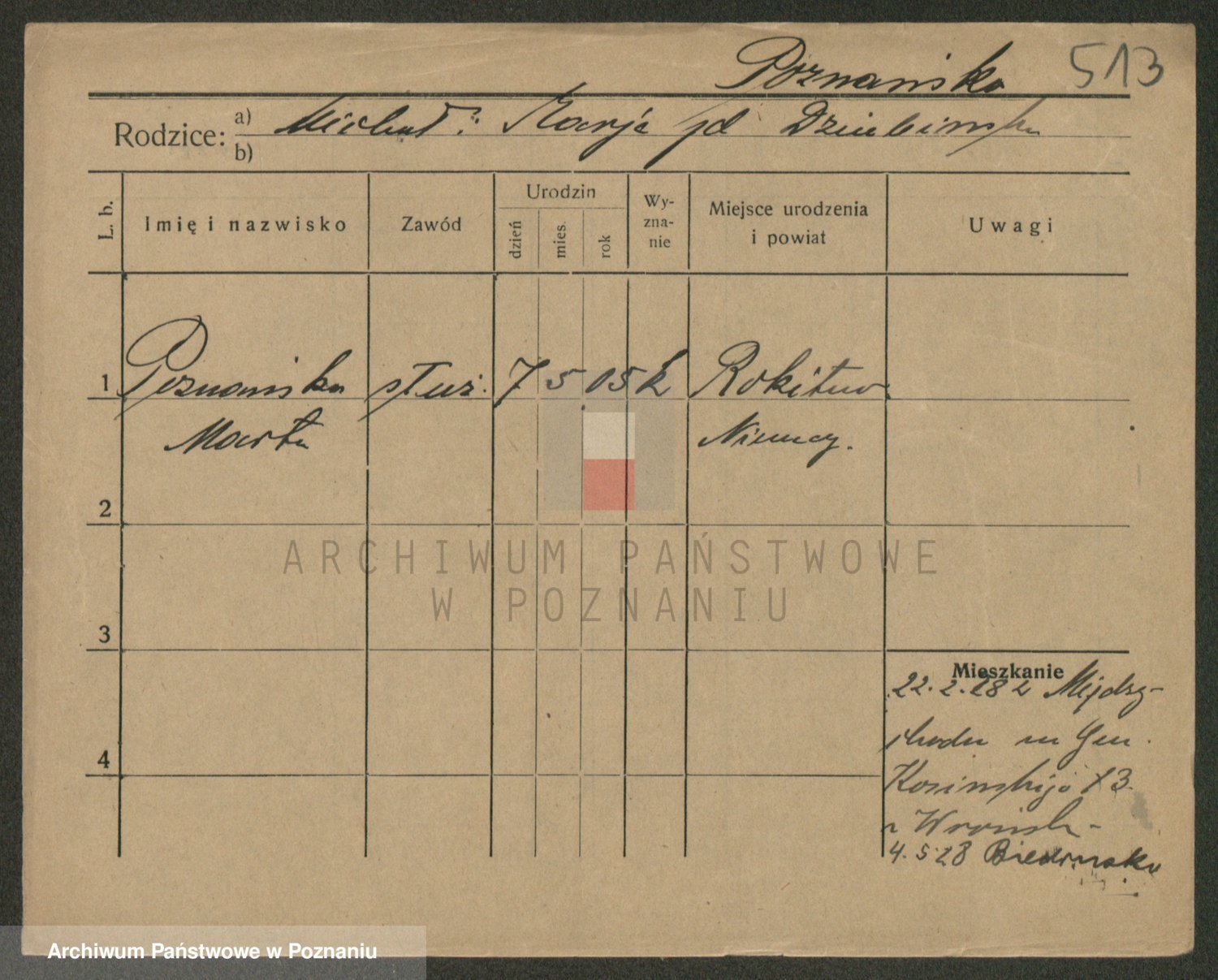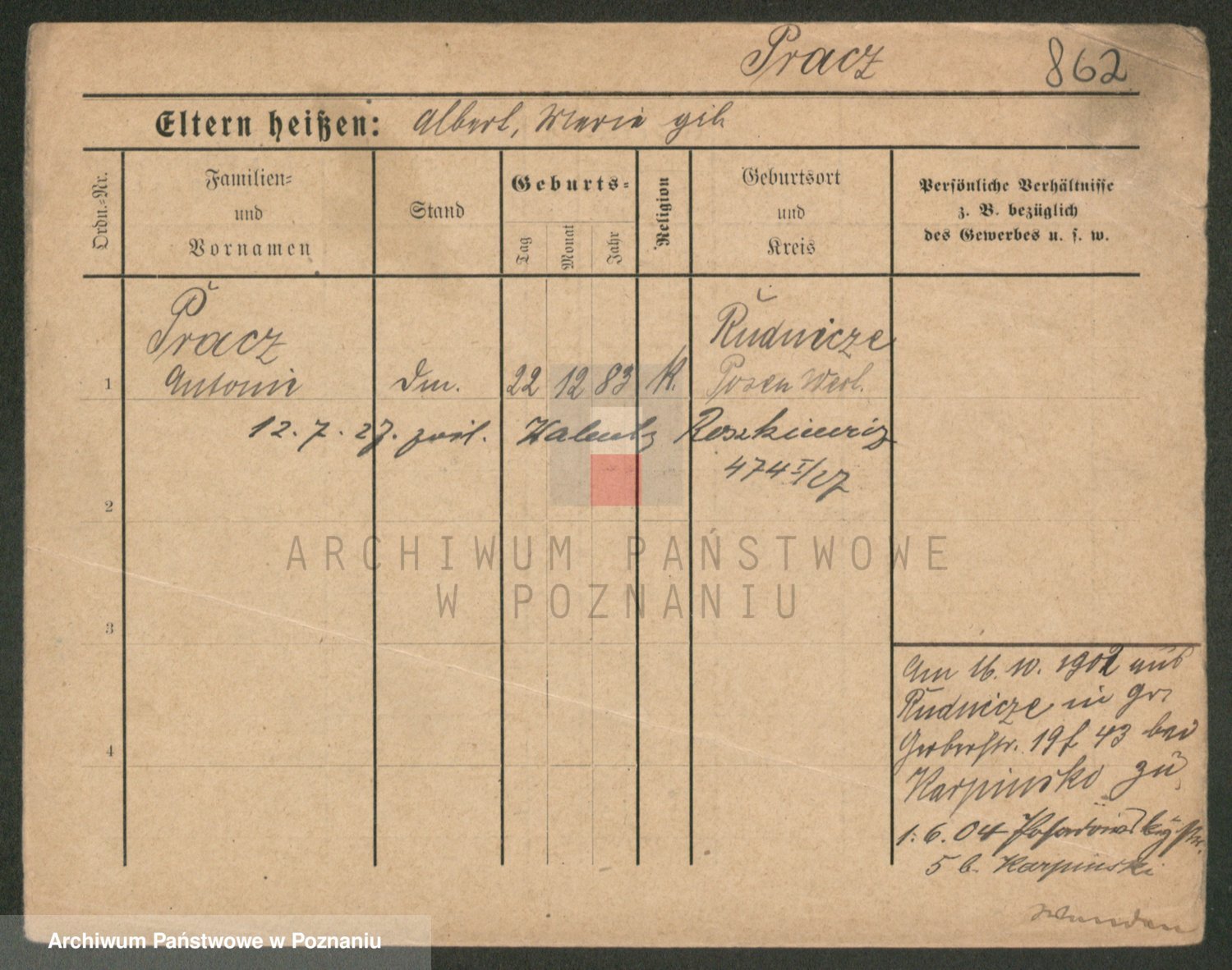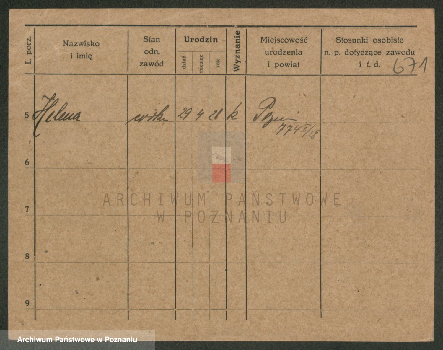 Podgląd karty osobowej dostępny jest po kliknięciu na nazwisko lub ikonkę karty. Można dokonywać powiększenia (ikony na górze) lub przechodzić między kolejnymi skanami (strzałki po bokach).