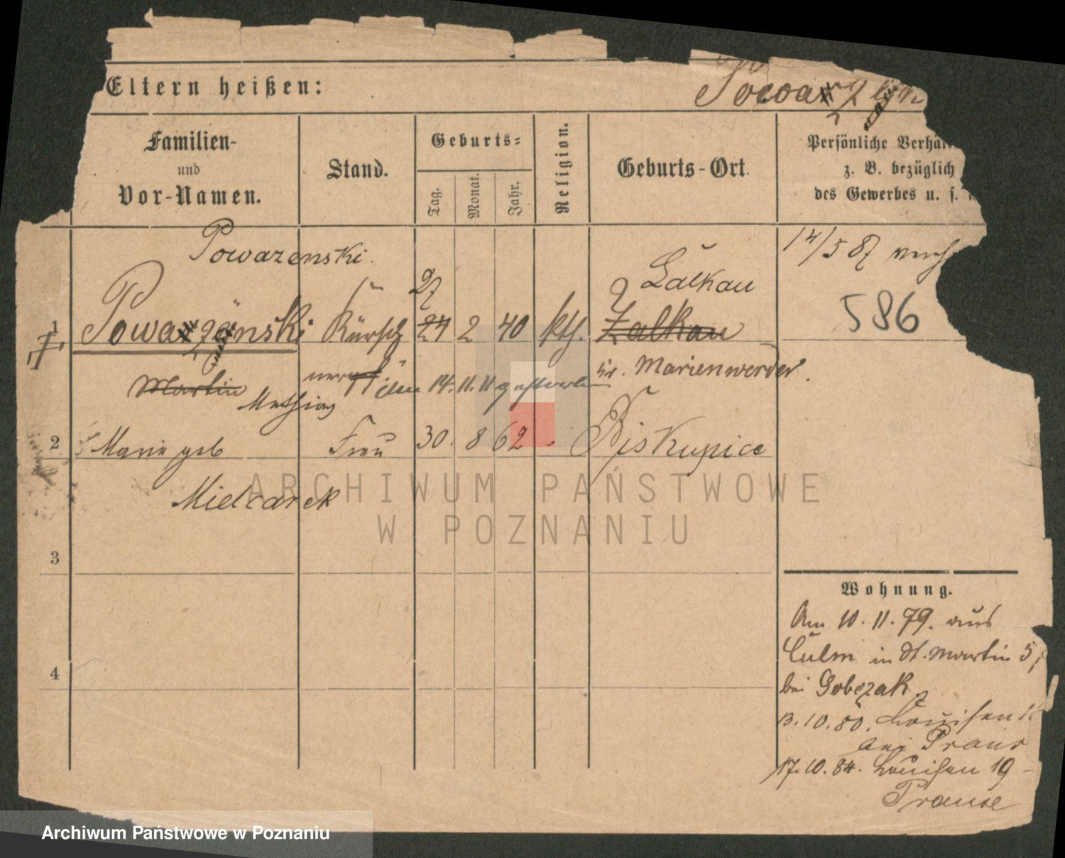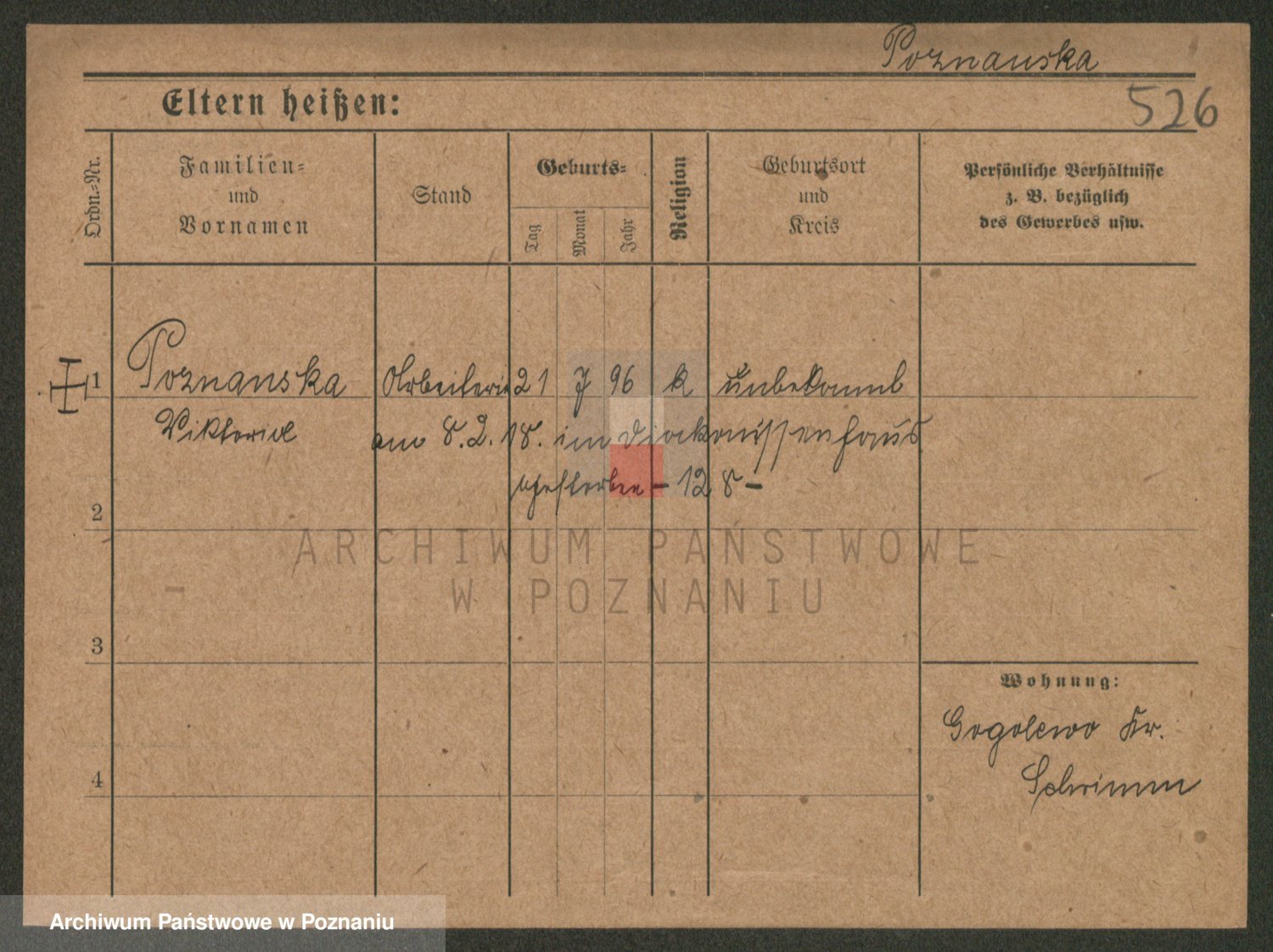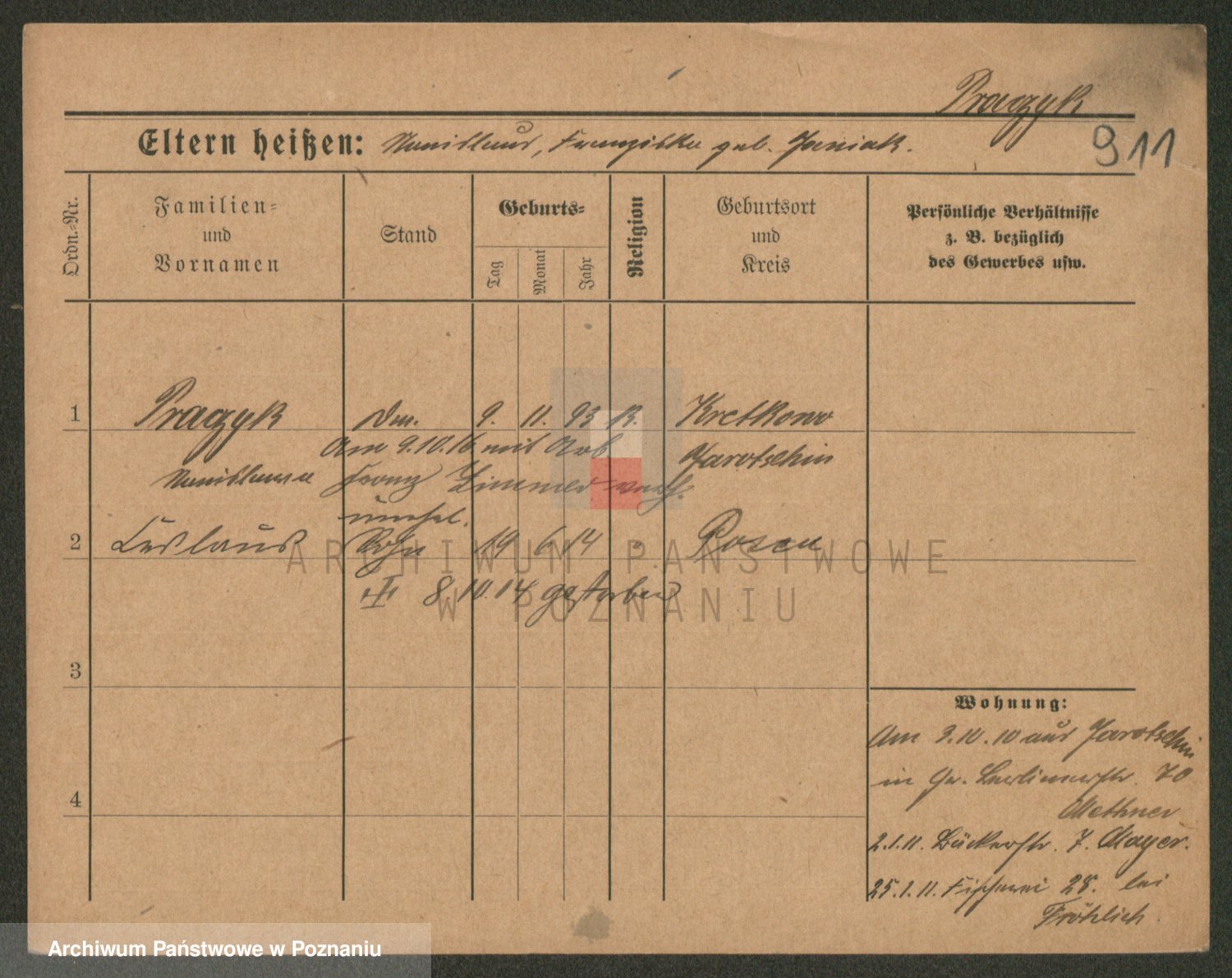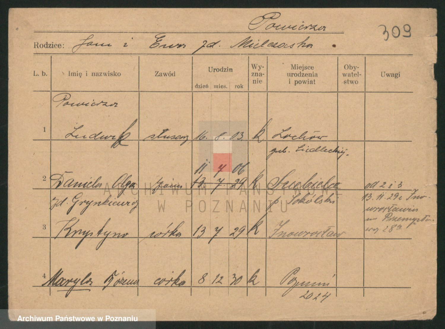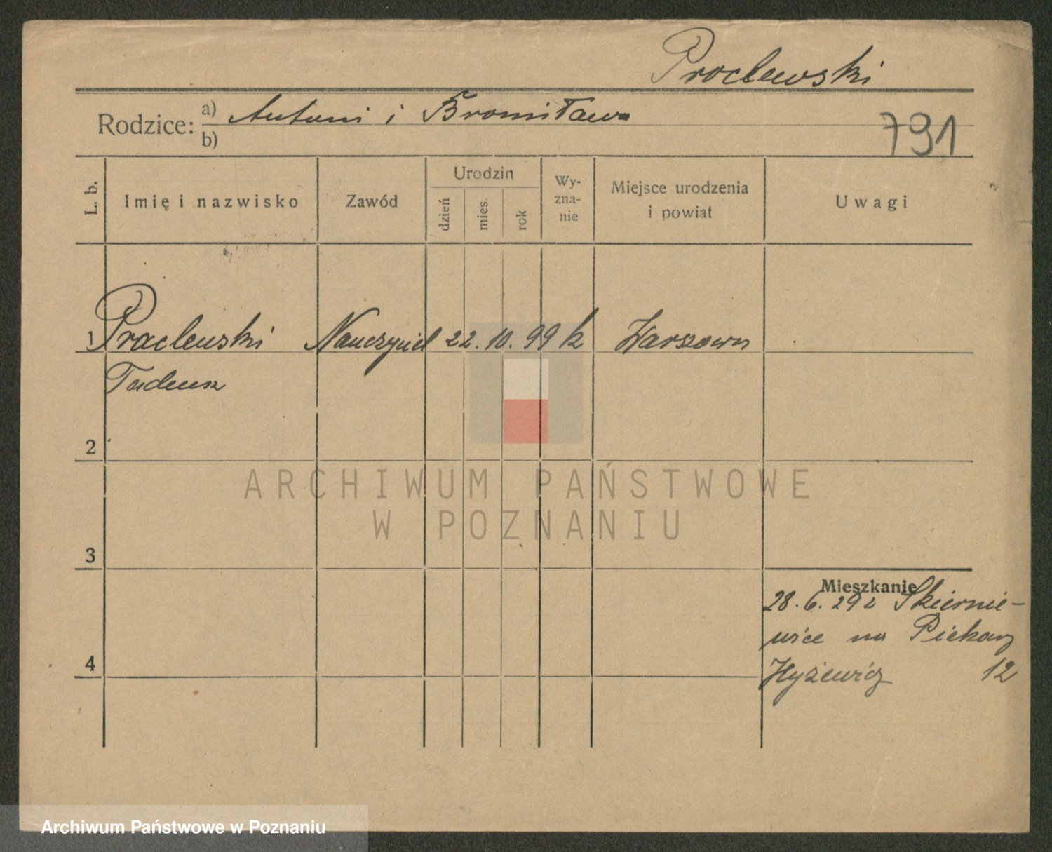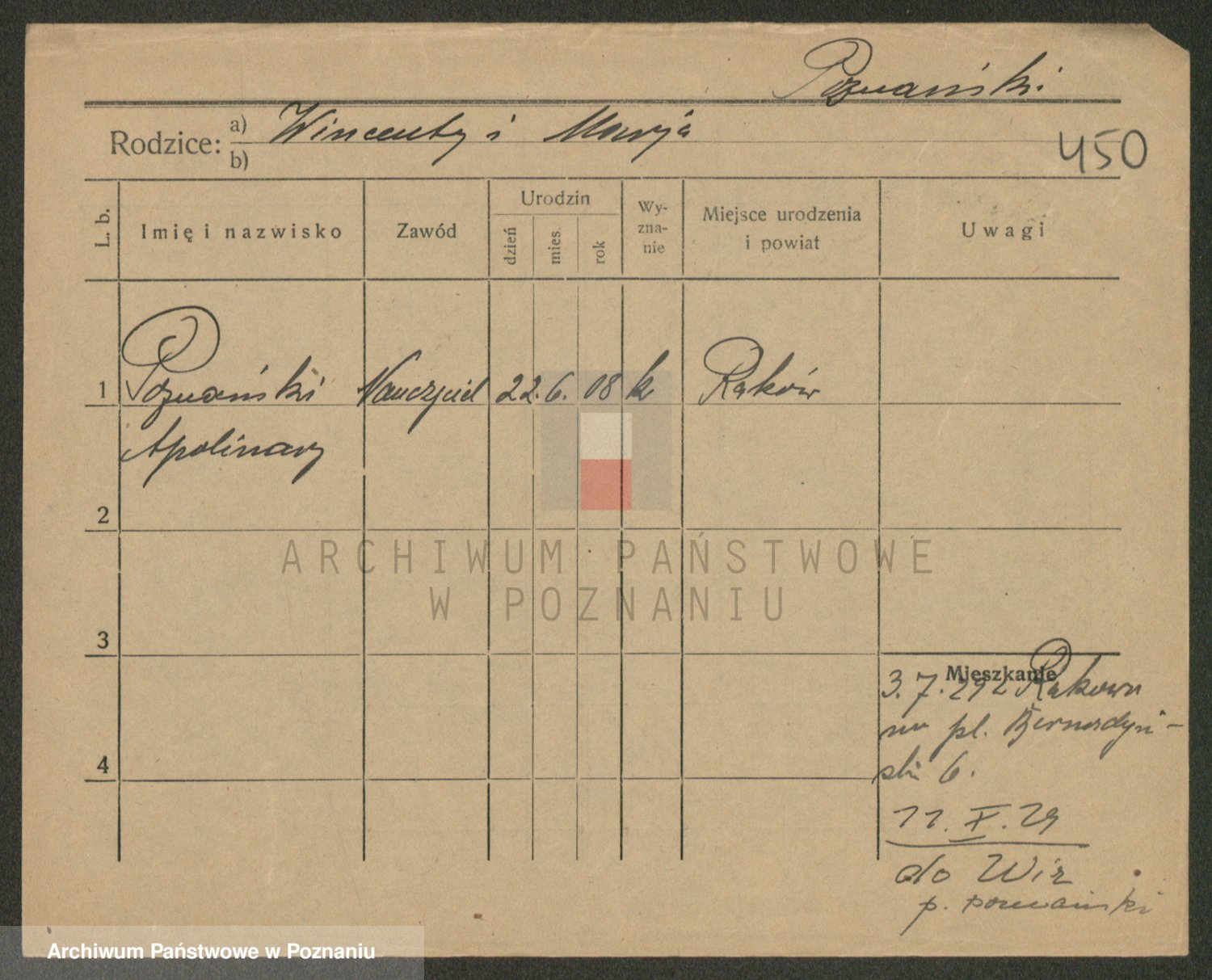 Podgląd karty osobowej dostępny jest po kliknięciu na nazwisko lub ikonkę karty. Można dokonywać powiększenia (ikony na górze) lub przechodzić między kolejnymi skanami (strzałki po bokach).