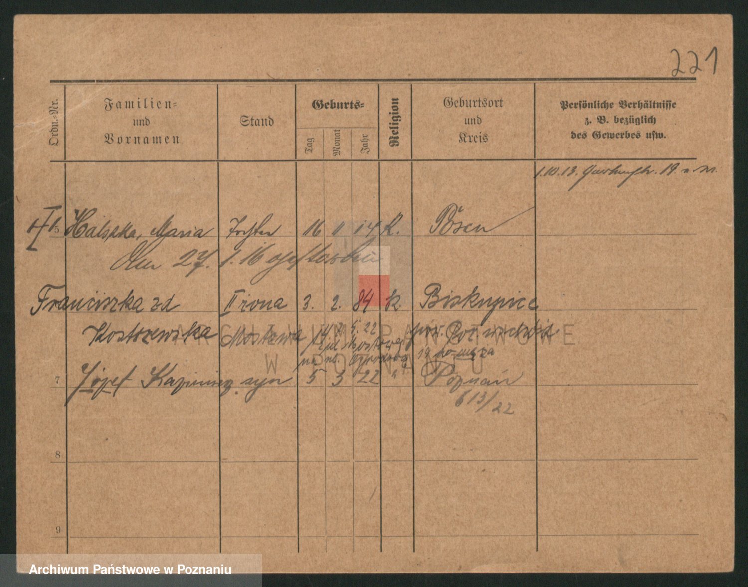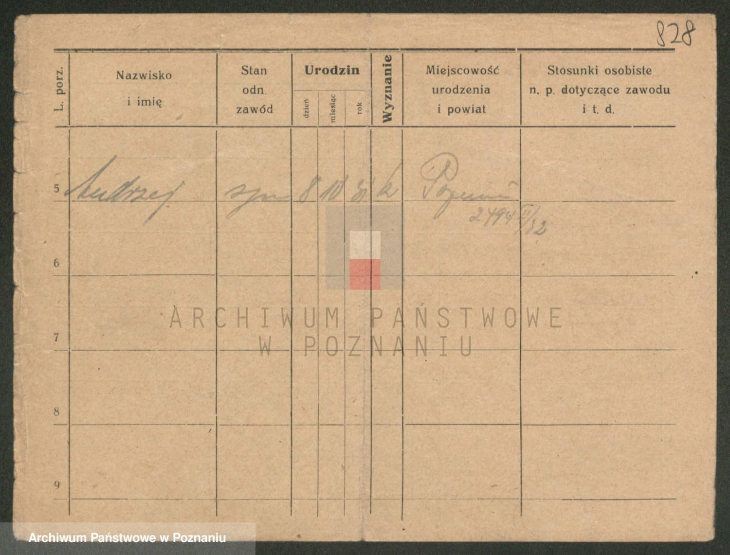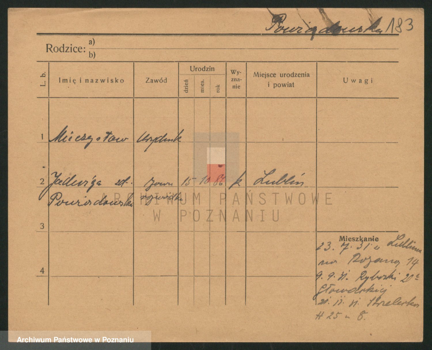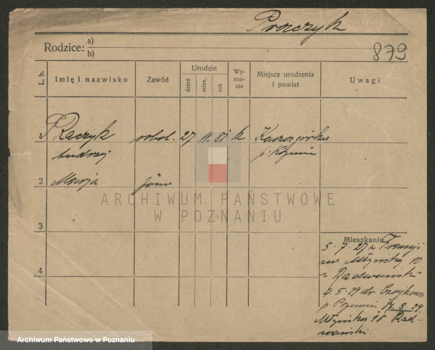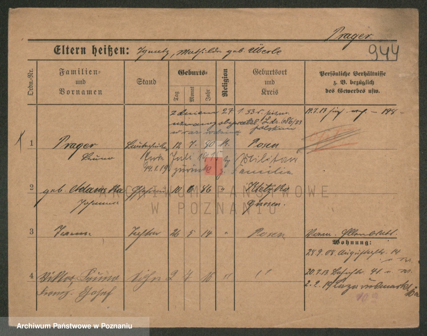 Podgląd karty osobowej dostępny jest po kliknięciu na nazwisko lub ikonkę karty. Można dokonywać powiększenia (ikony na górze) lub przechodzić między kolejnymi skanami (strzałki po bokach).