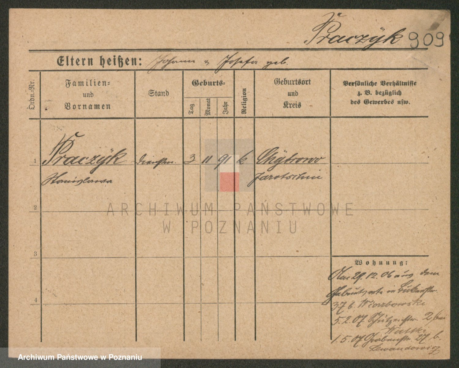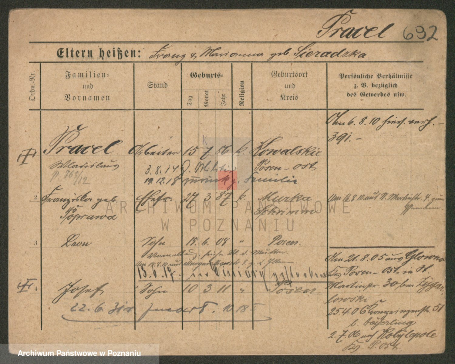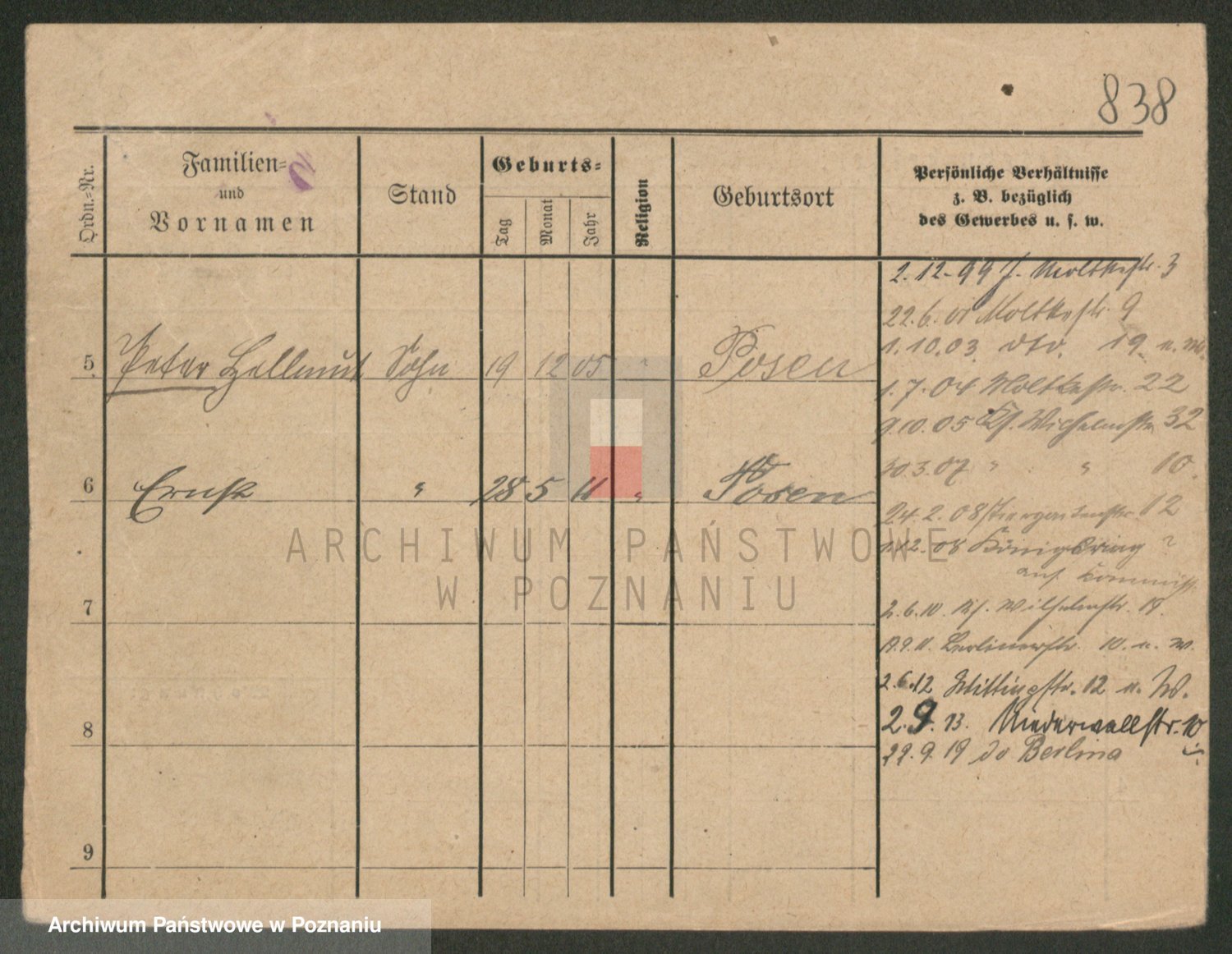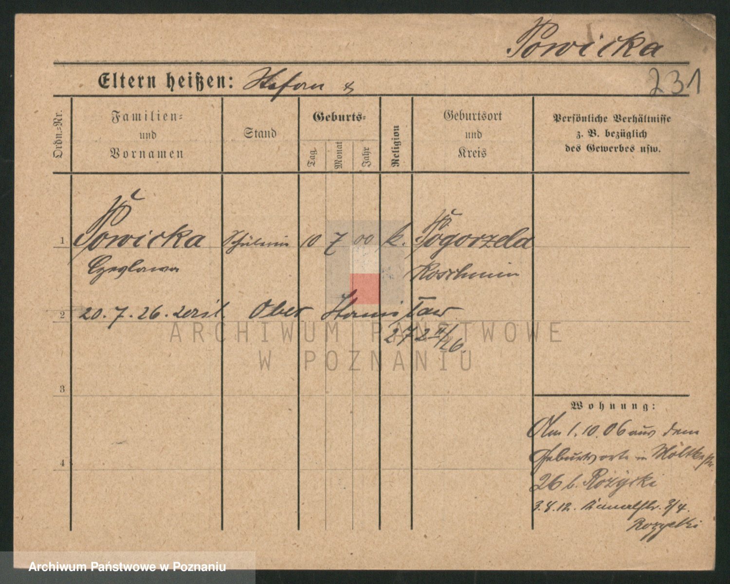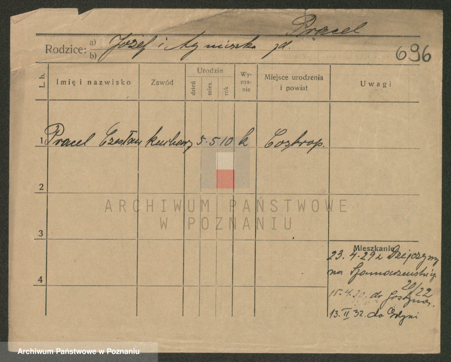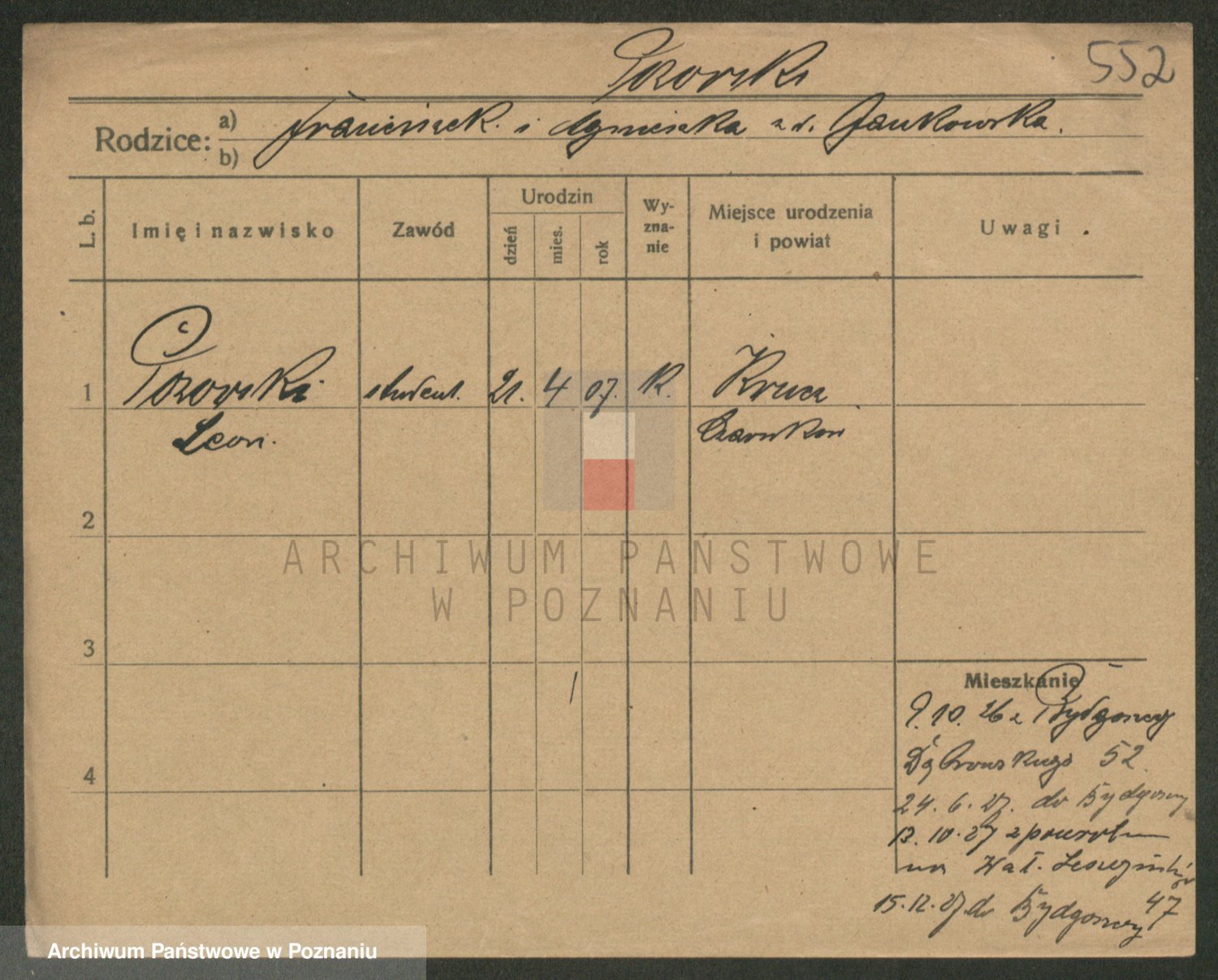 Podgląd karty osobowej dostępny jest po kliknięciu na nazwisko lub ikonkę karty. Można dokonywać powiększenia (ikony na górze) lub przechodzić między kolejnymi skanami (strzałki po bokach).