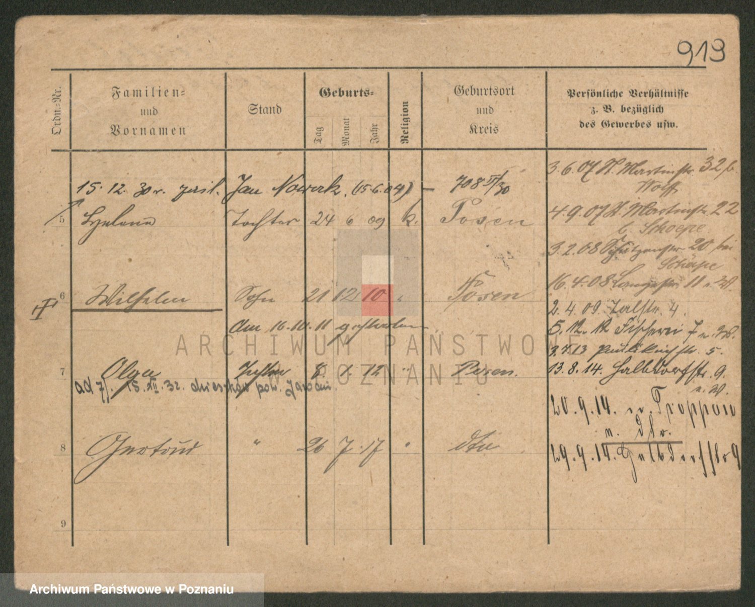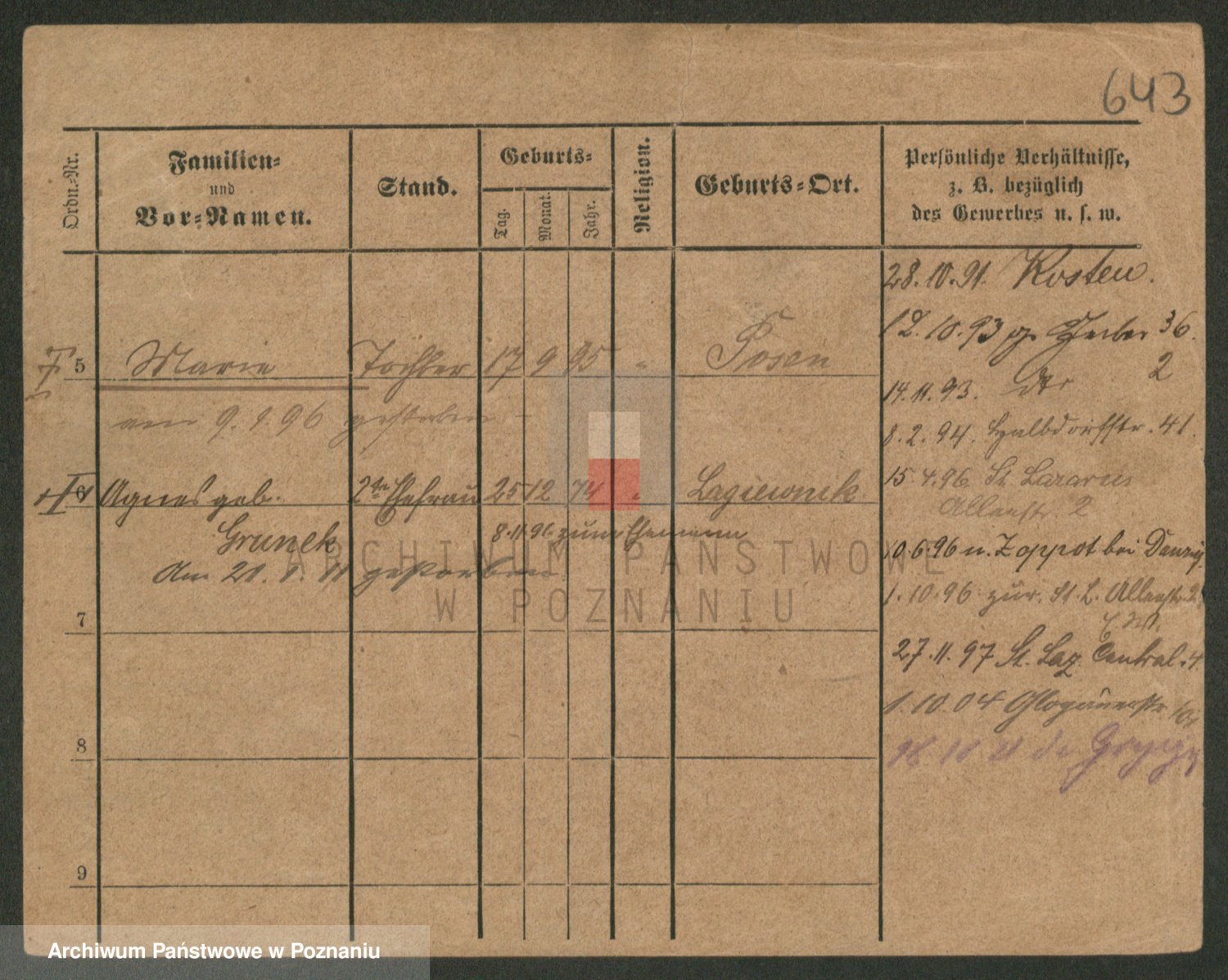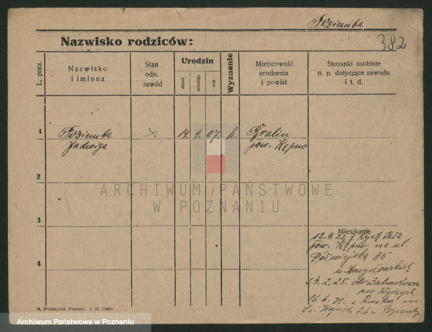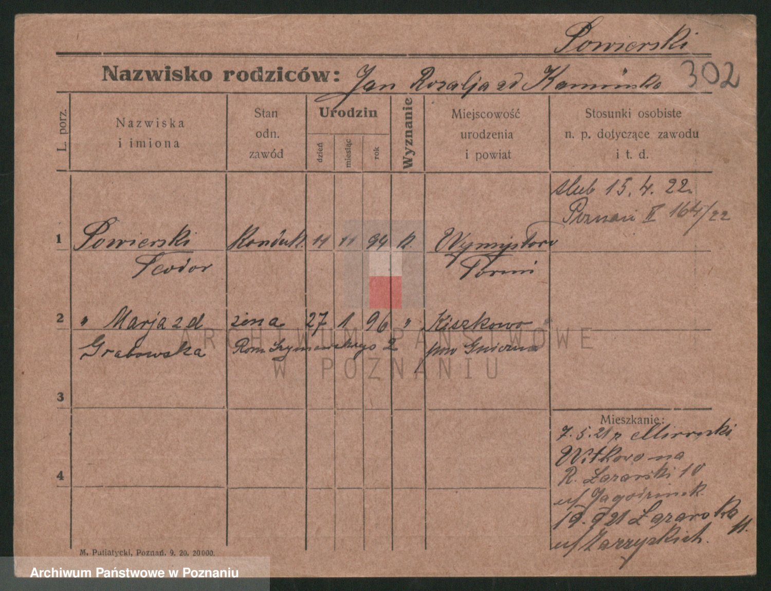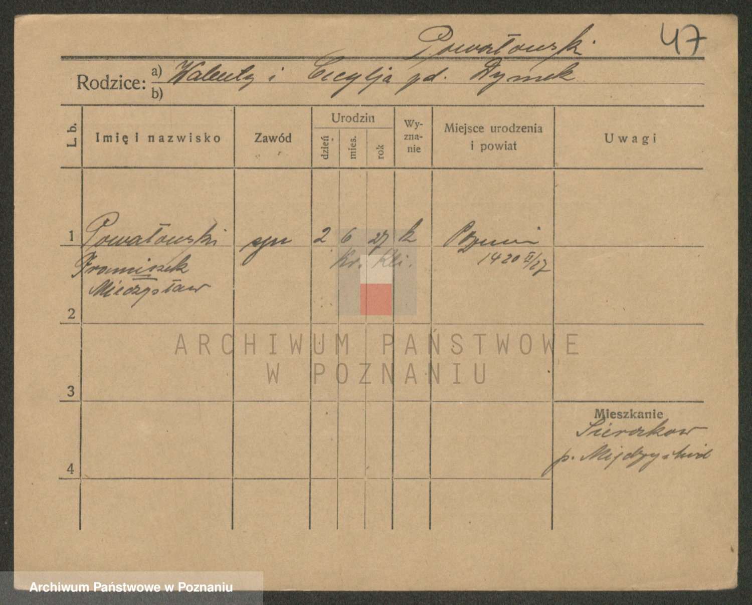 Podgląd karty osobowej dostępny jest po kliknięciu na nazwisko lub ikonkę karty. Można dokonywać powiększenia (ikony na górze) lub przechodzić między kolejnymi skanami (strzałki po bokach).