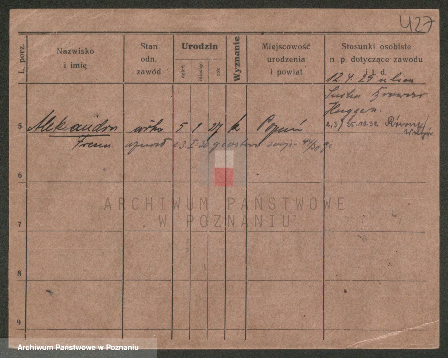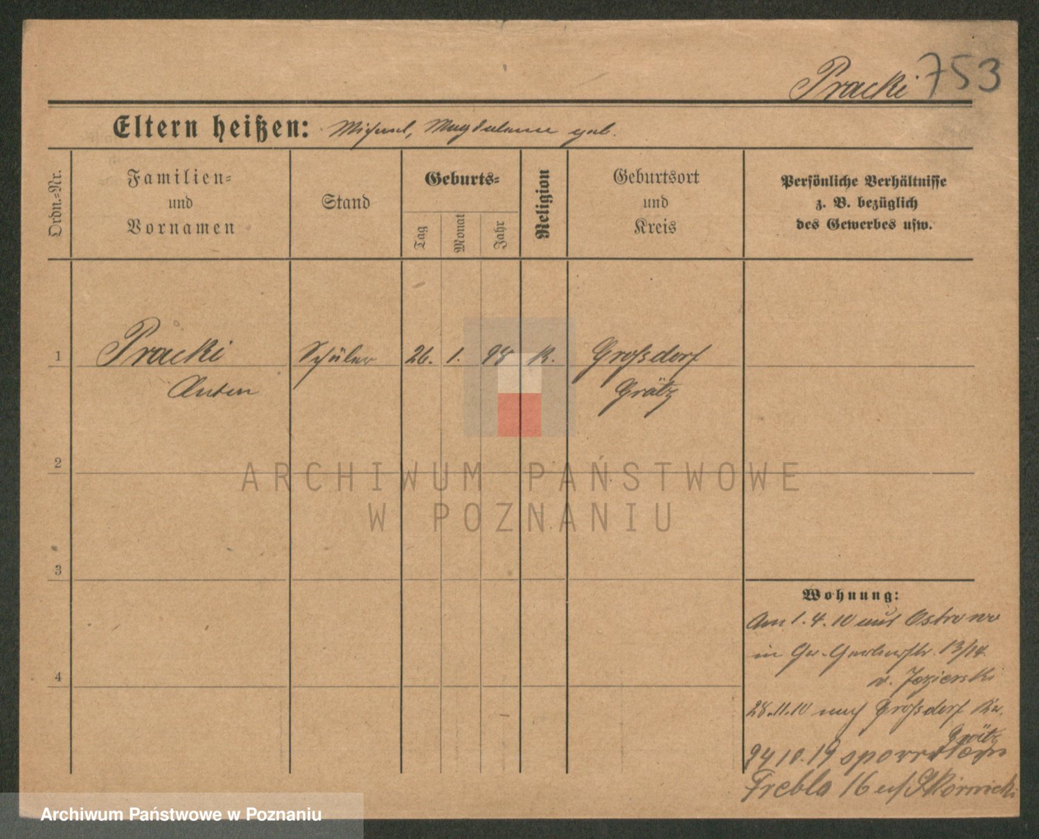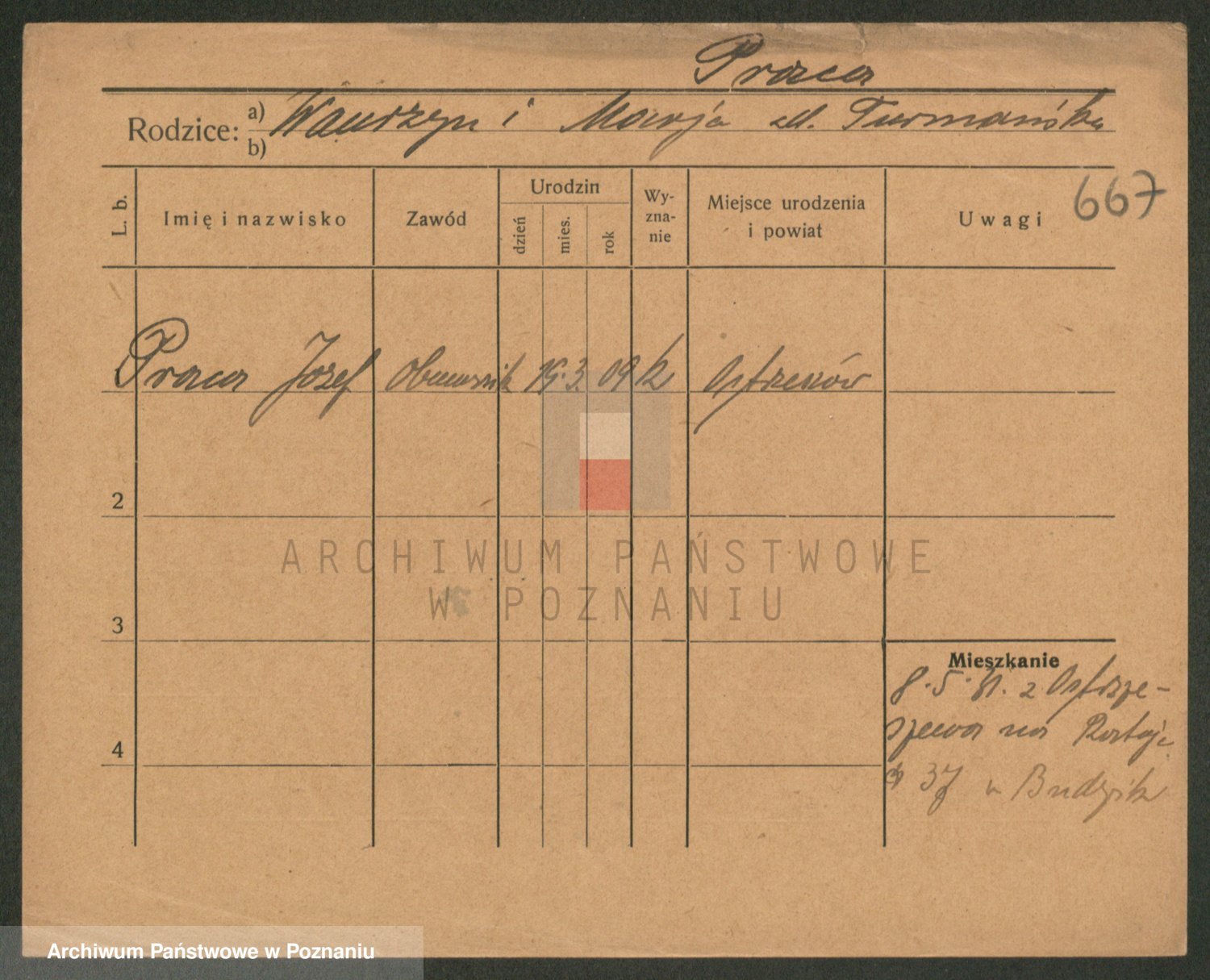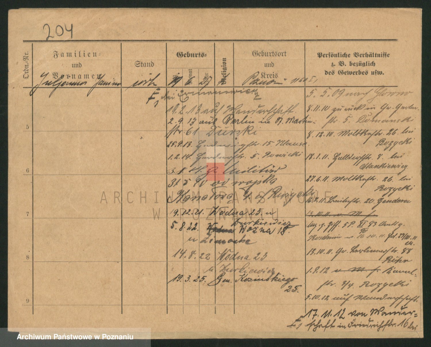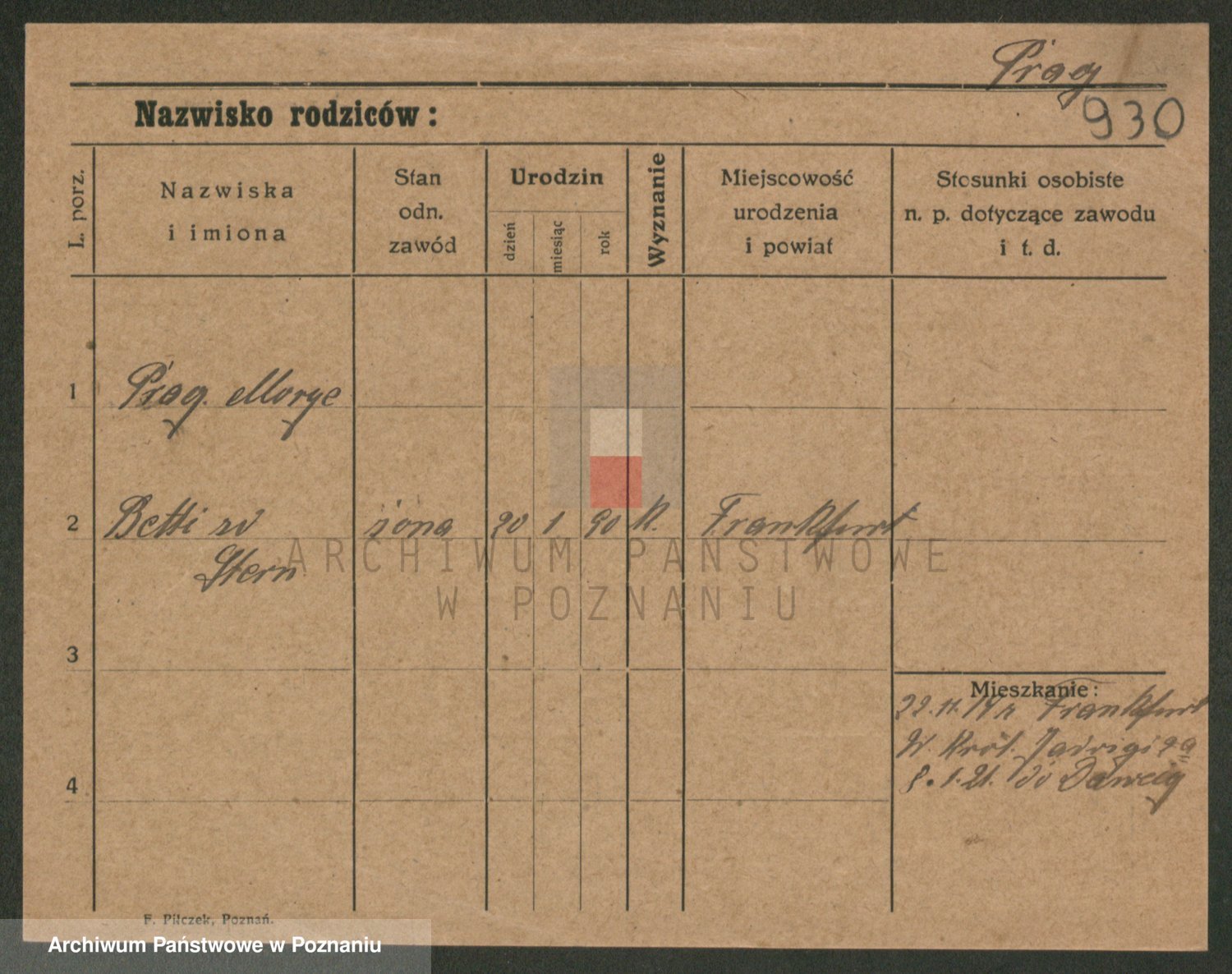 Podgląd karty osobowej dostępny jest po kliknięciu na nazwisko lub ikonkę karty. Można dokonywać powiększenia (ikony na górze) lub przechodzić między kolejnymi skanami (strzałki po bokach).
