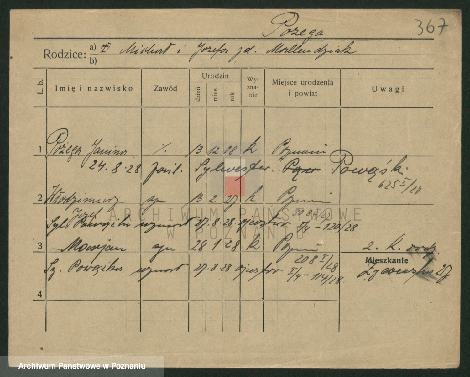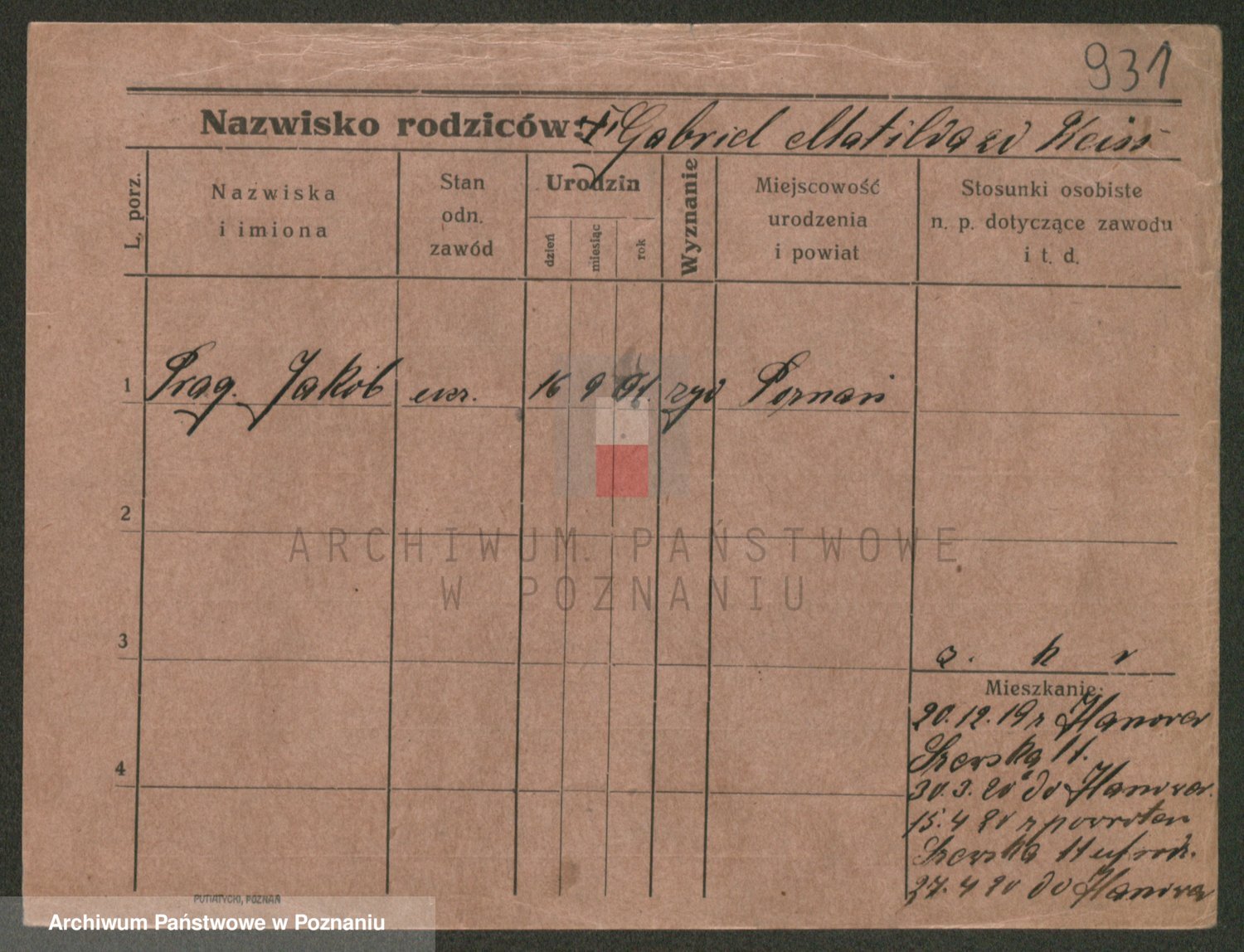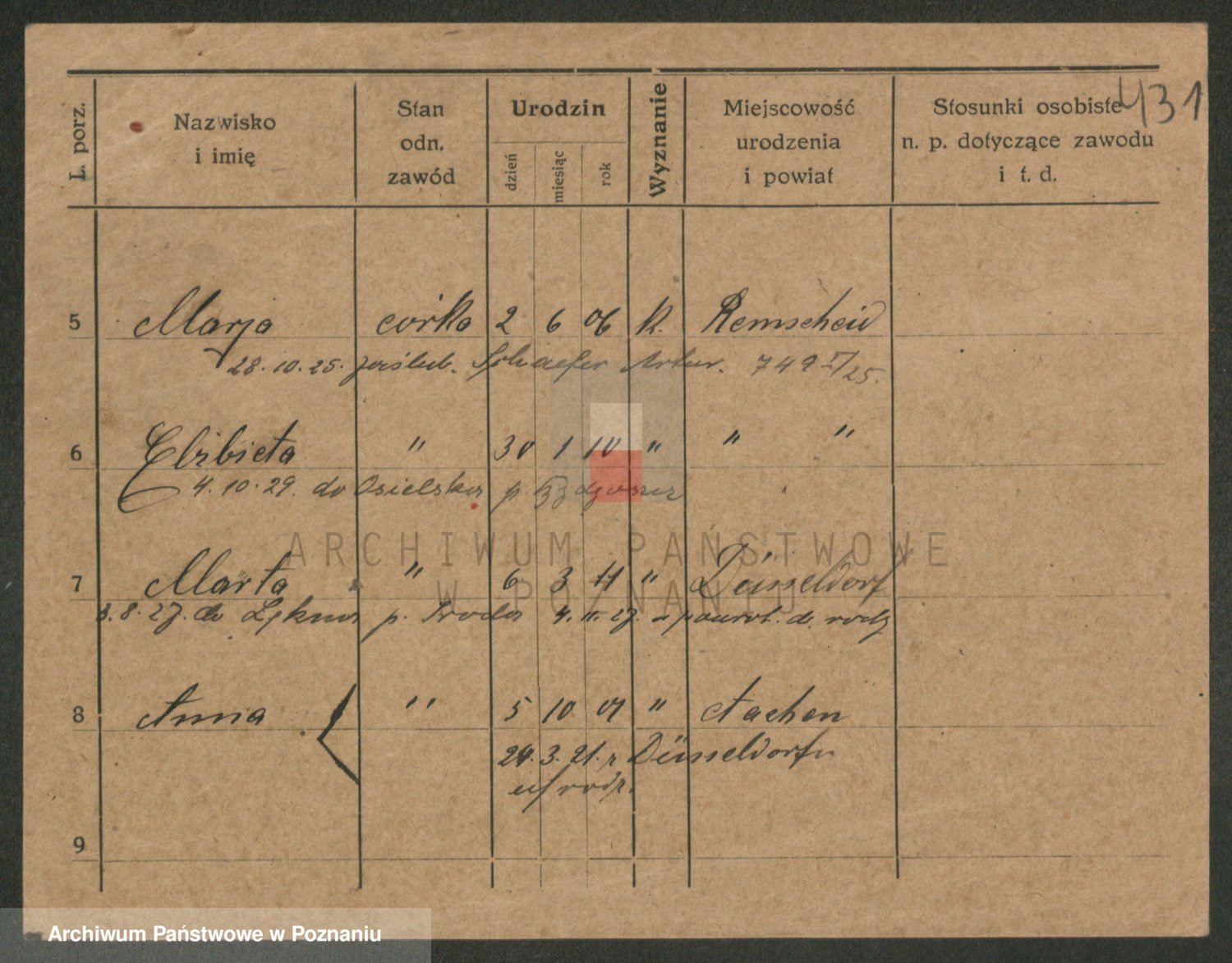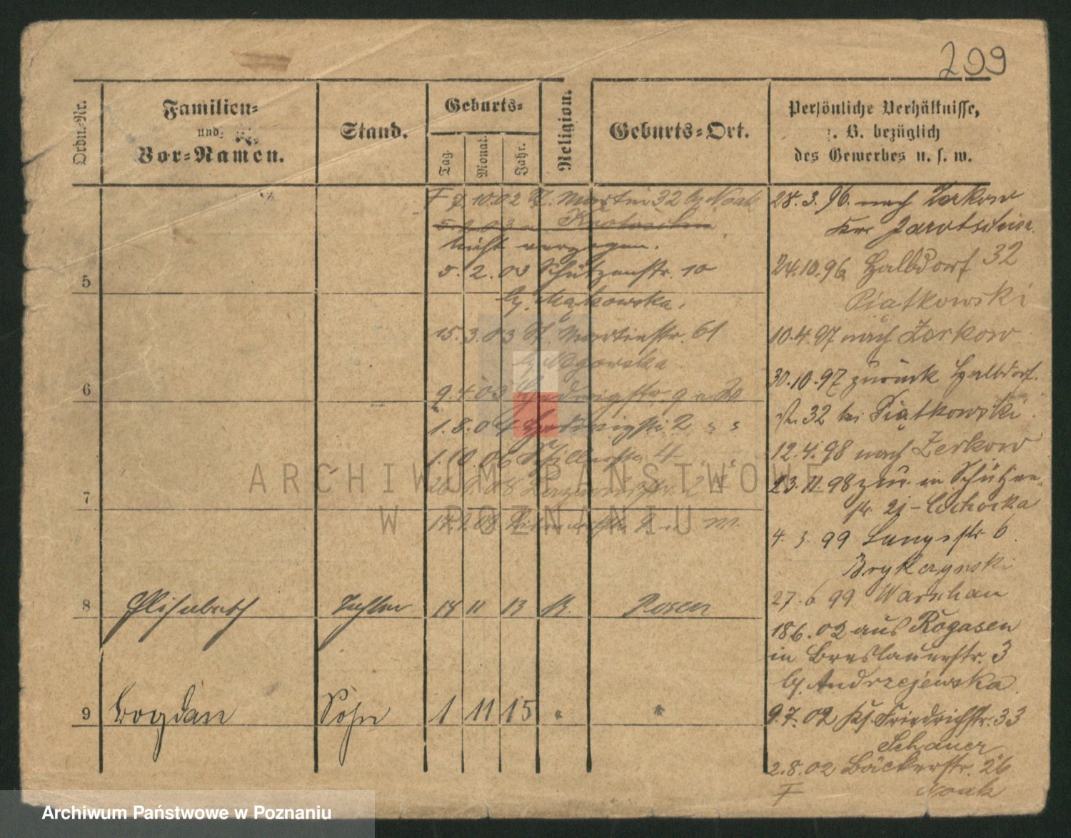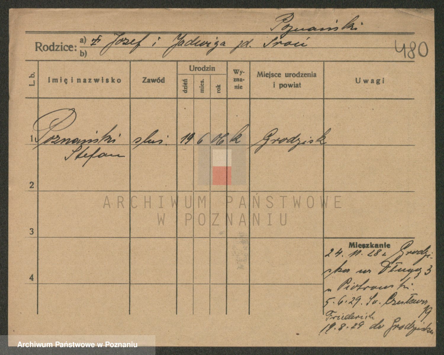 Podgląd karty osobowej dostępny jest po kliknięciu na nazwisko lub ikonkę karty. Można dokonywać powiększenia (ikony na górze) lub przechodzić między kolejnymi skanami (strzałki po bokach).