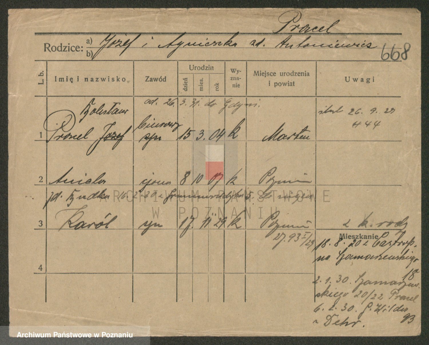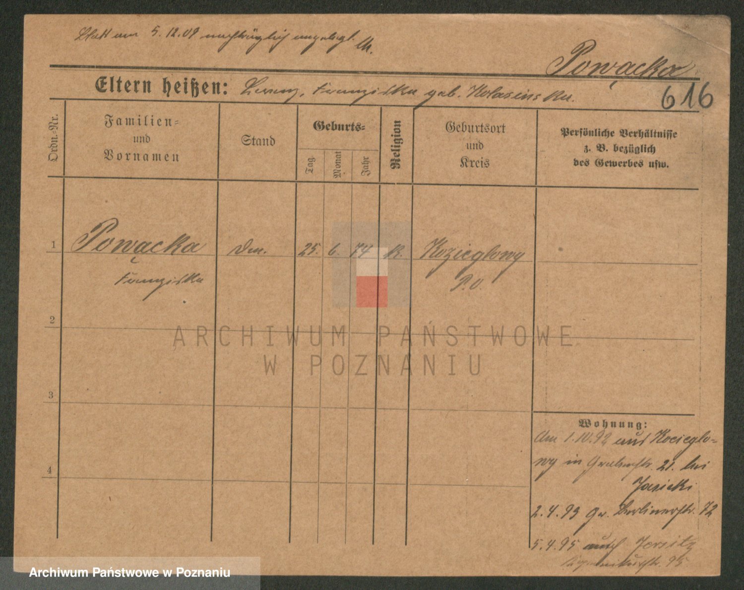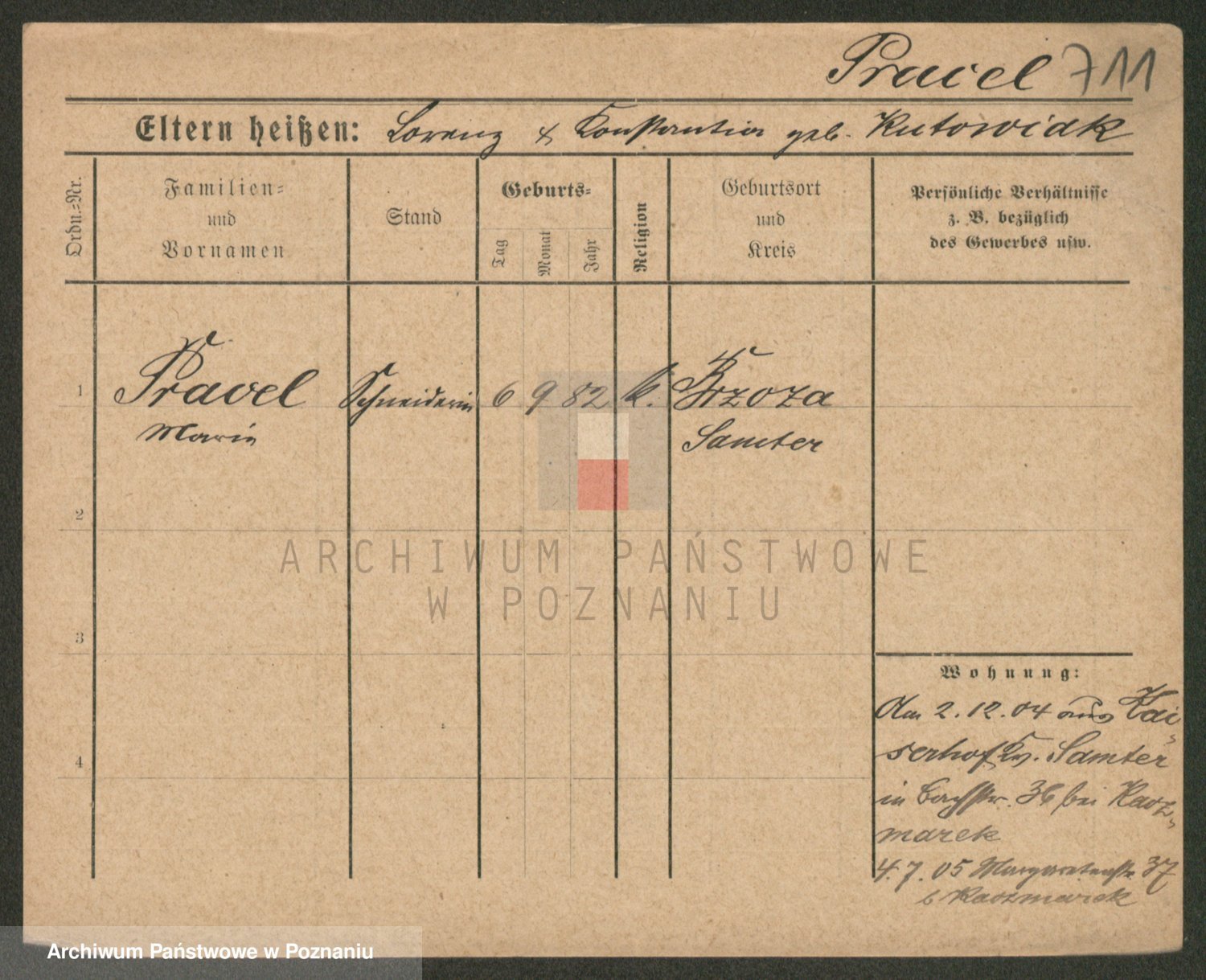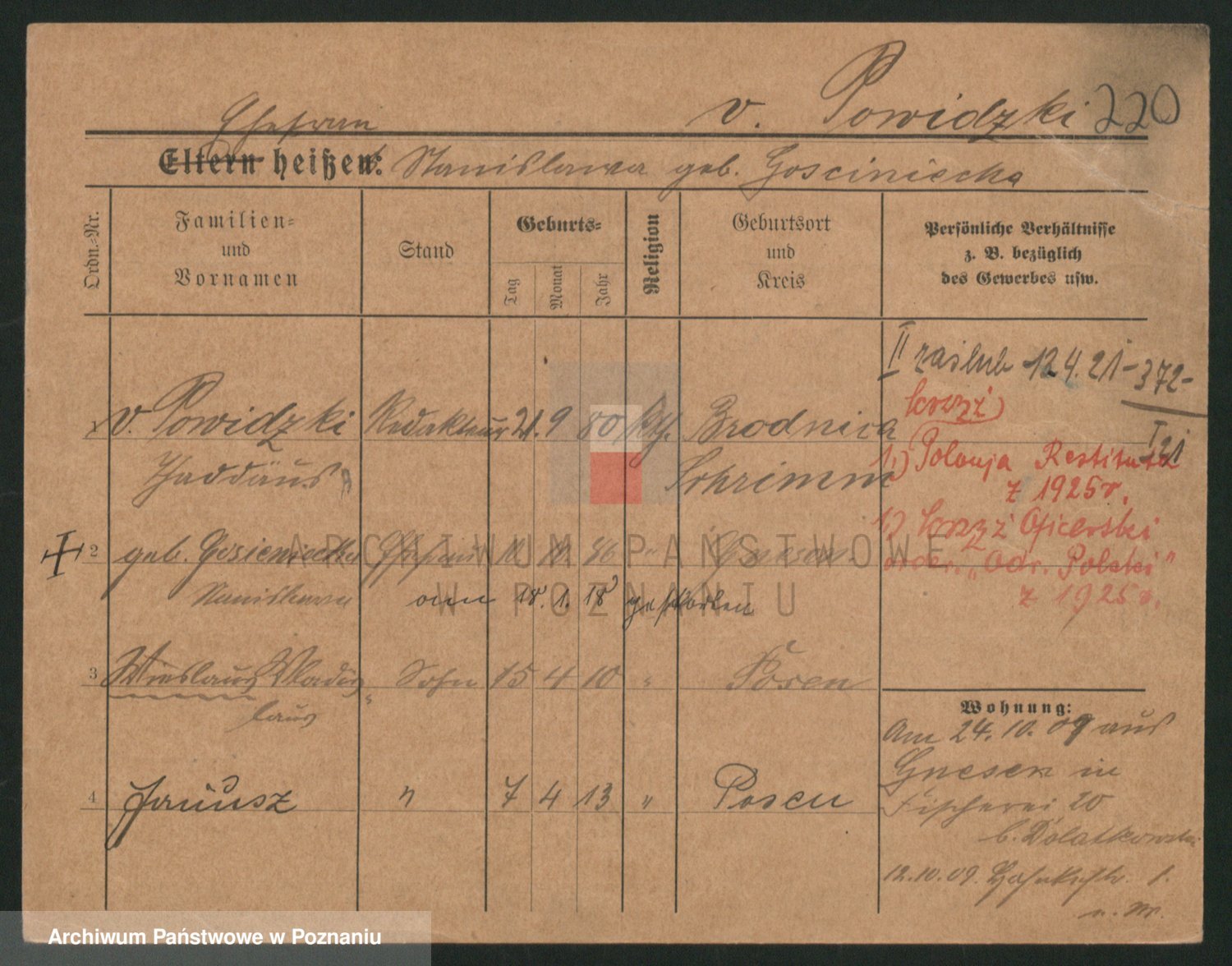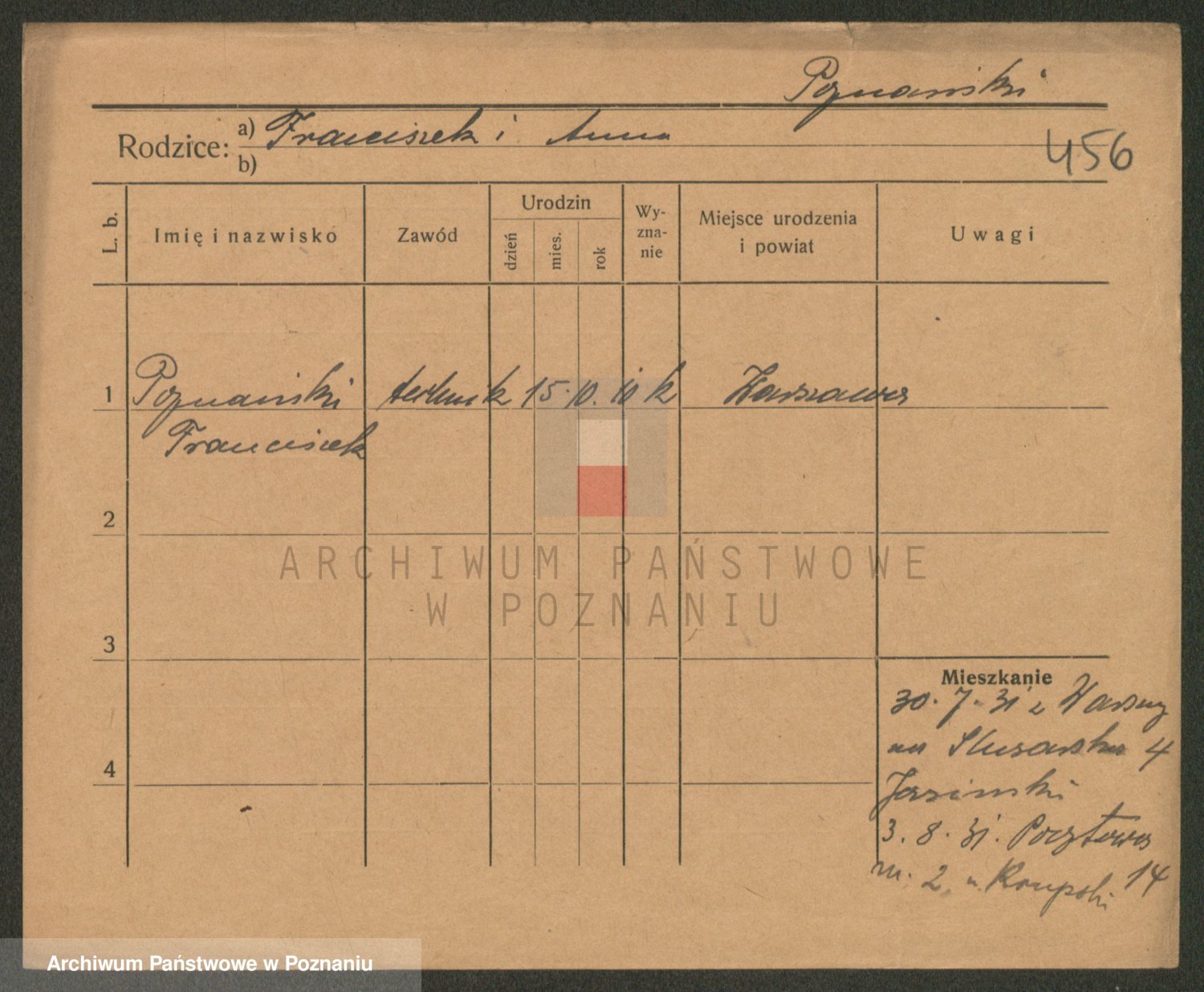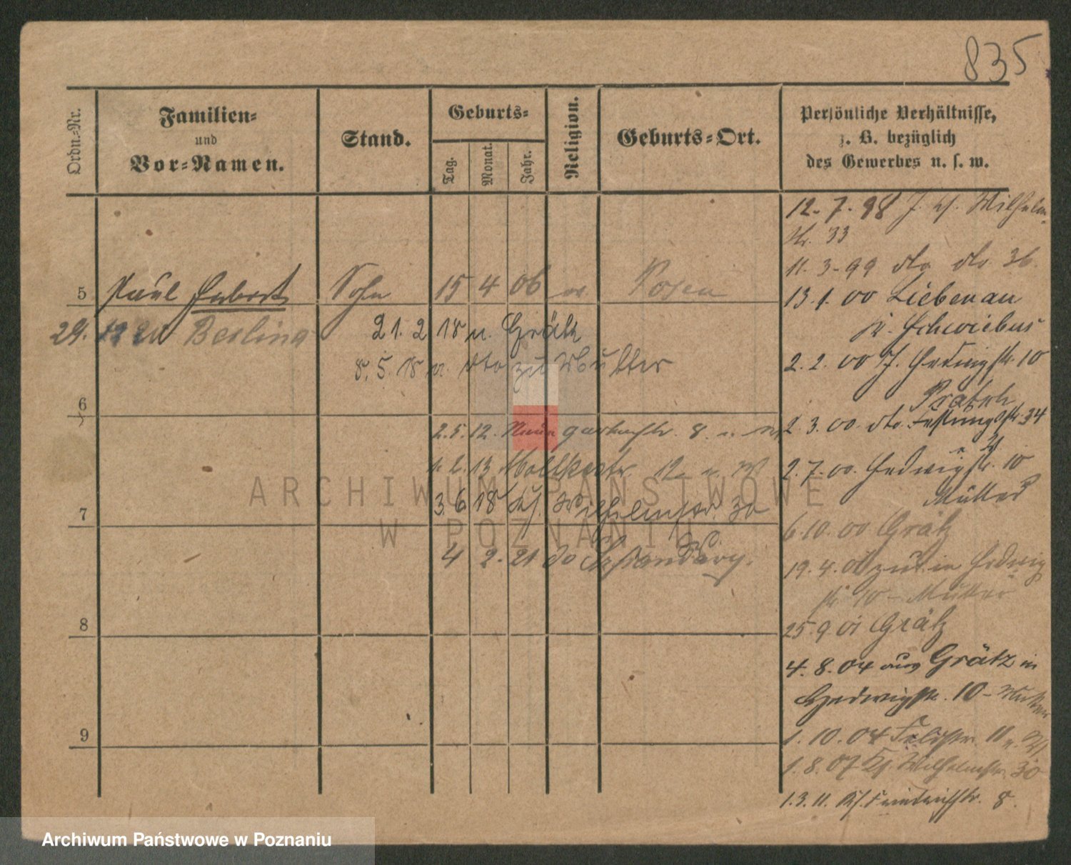 Podgląd karty osobowej dostępny jest po kliknięciu na nazwisko lub ikonkę karty. Można dokonywać powiększenia (ikony na górze) lub przechodzić między kolejnymi skanami (strzałki po bokach).