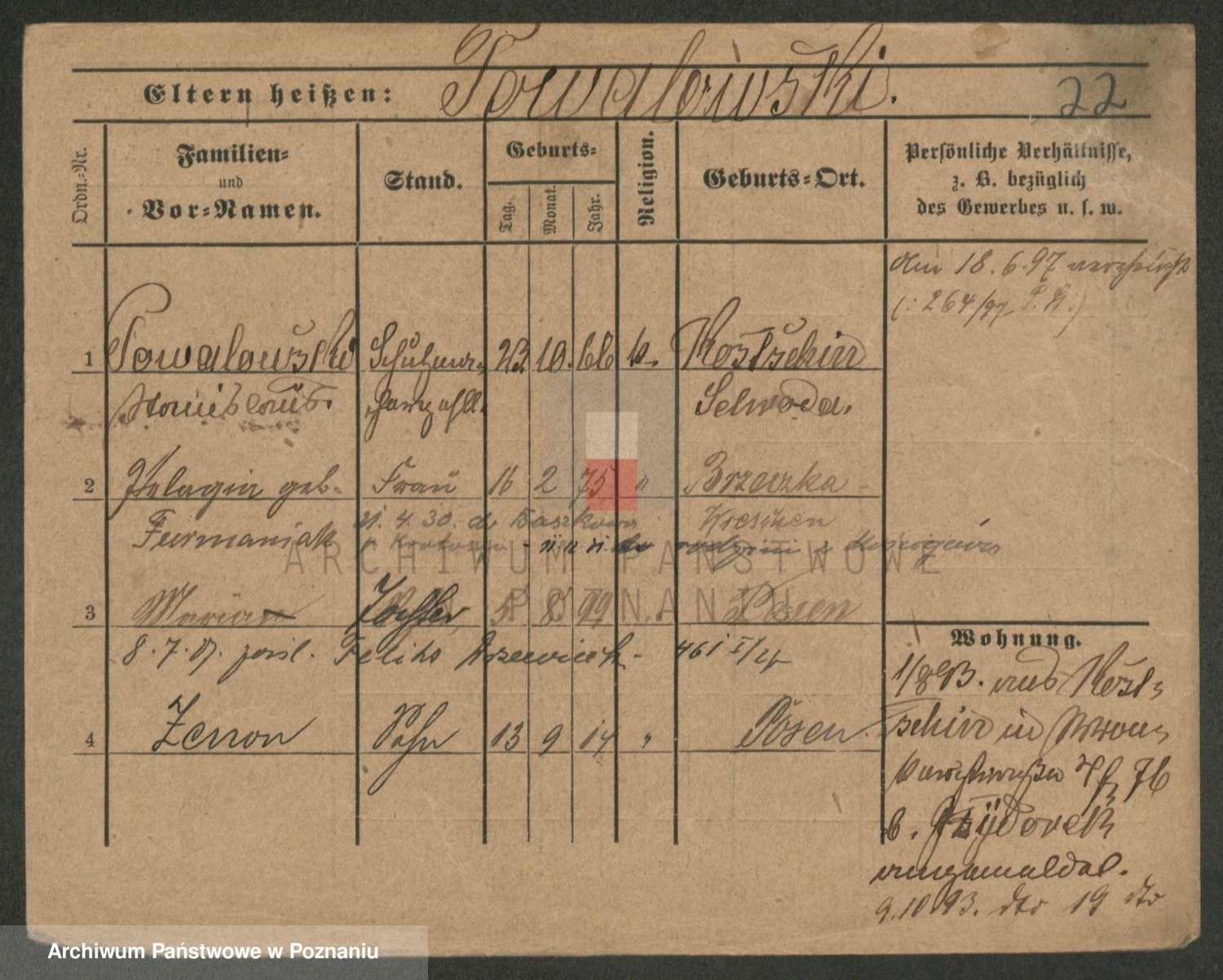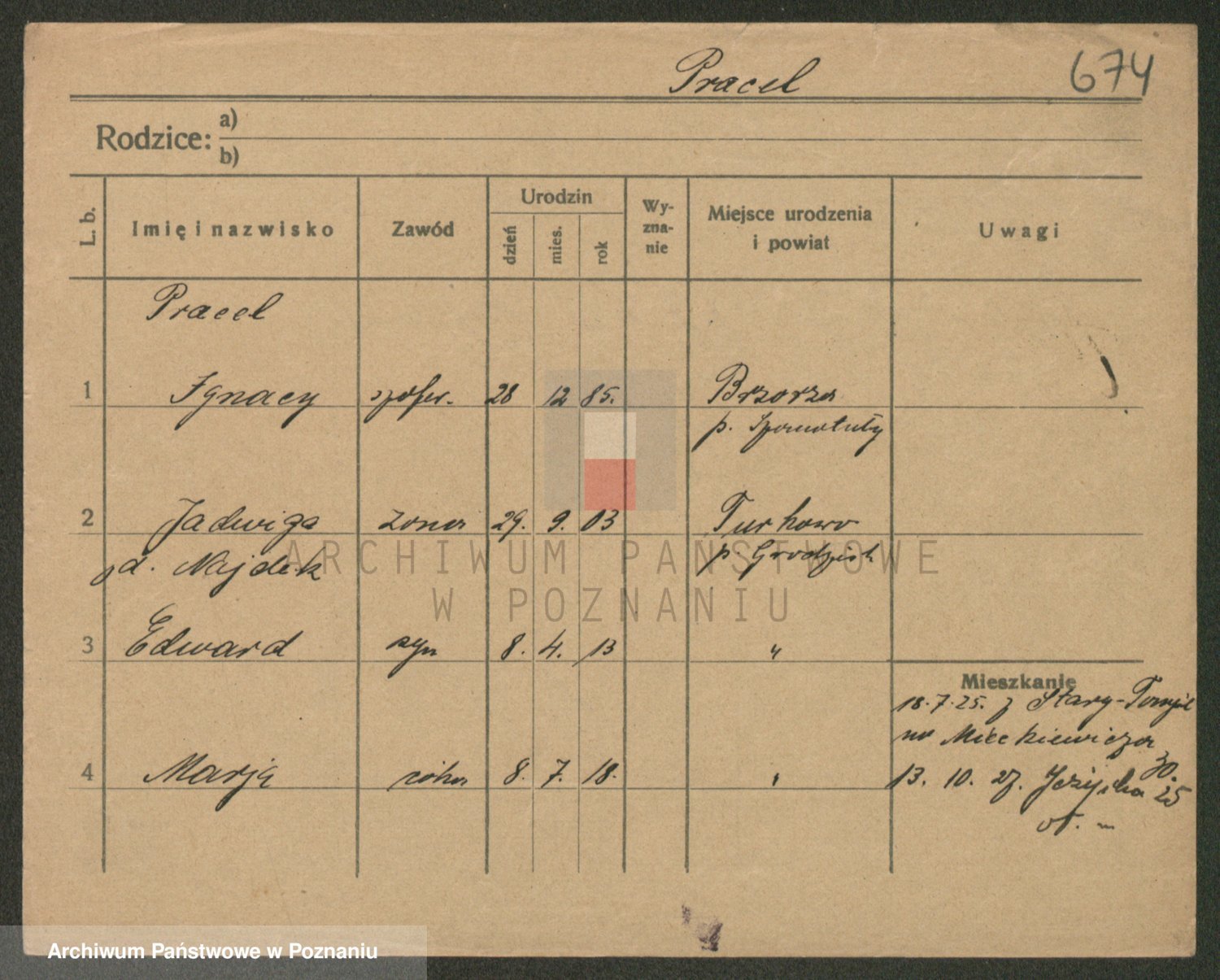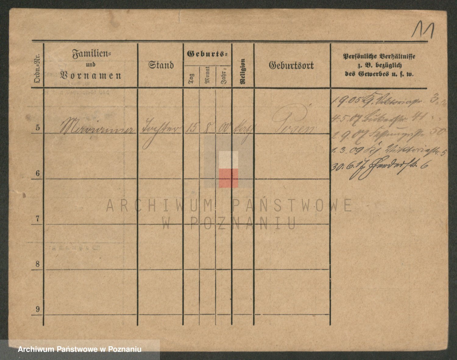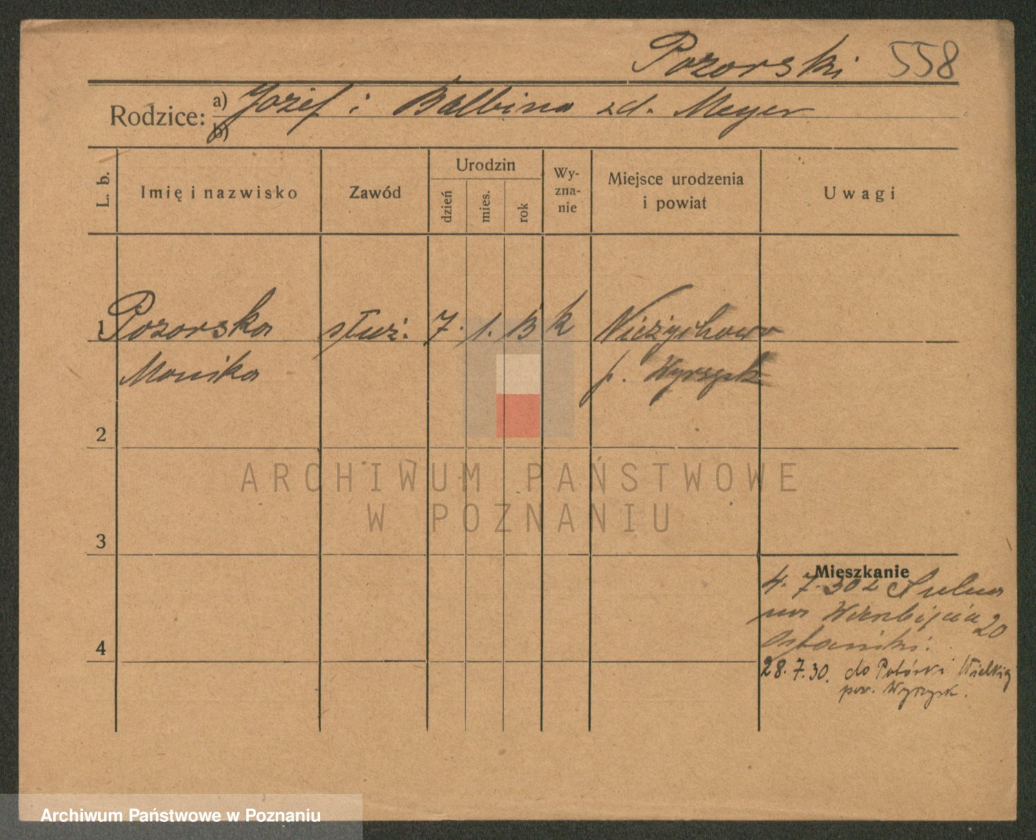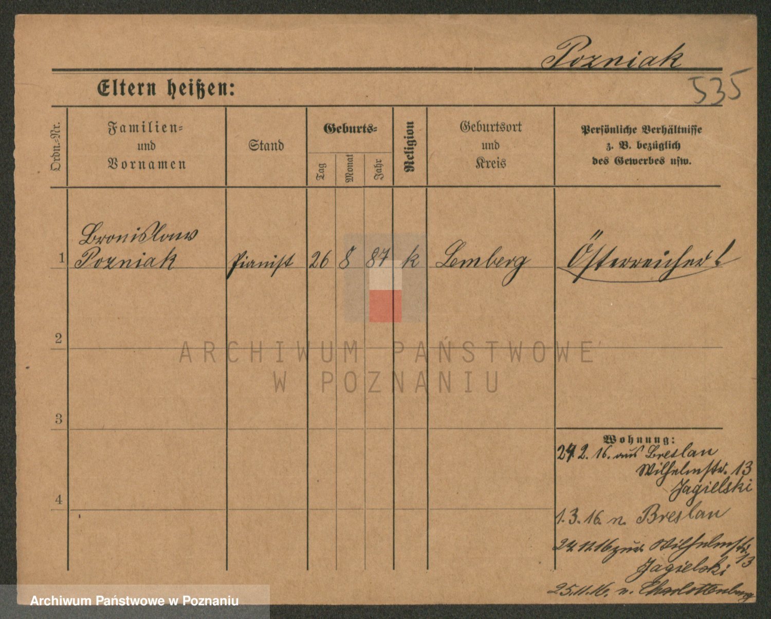 Podgląd karty osobowej dostępny jest po kliknięciu na nazwisko lub ikonkę karty. Można dokonywać powiększenia (ikony na górze) lub przechodzić między kolejnymi skanami (strzałki po bokach).
