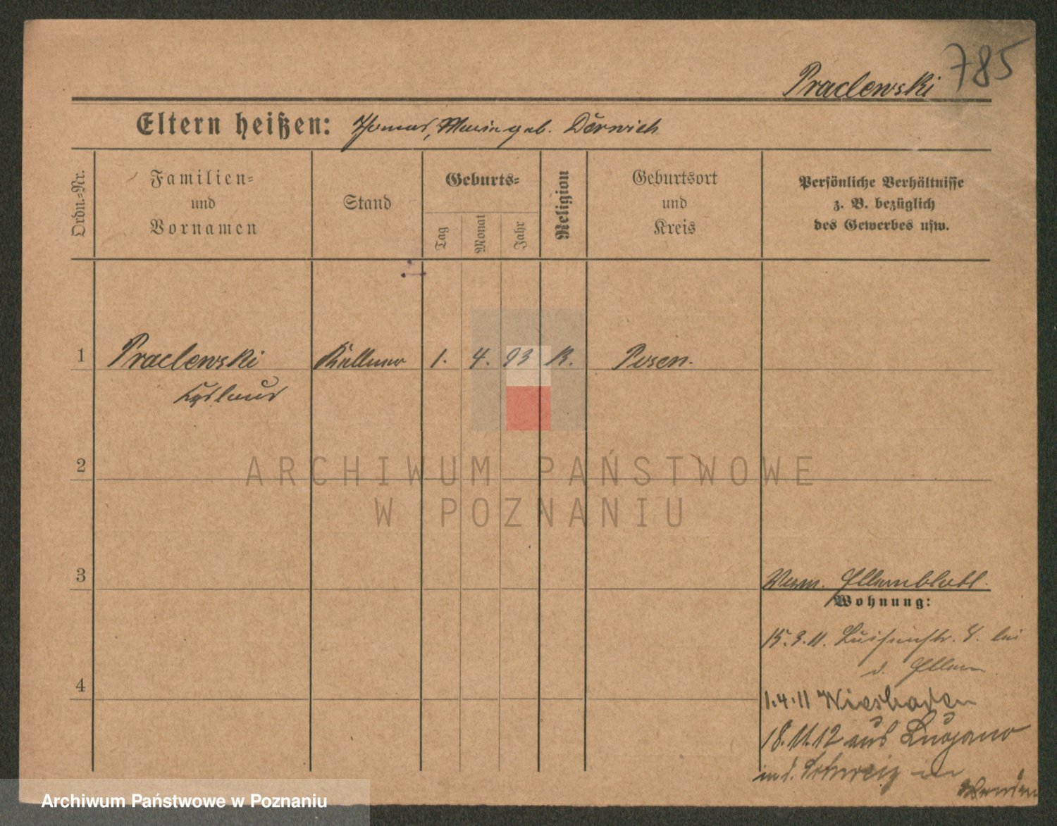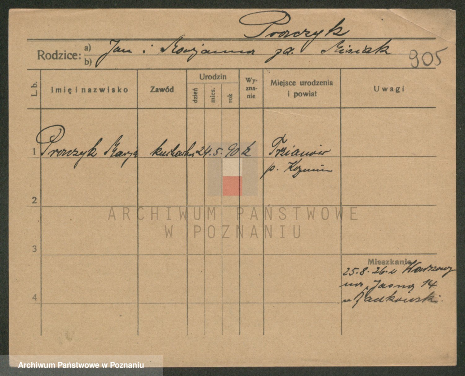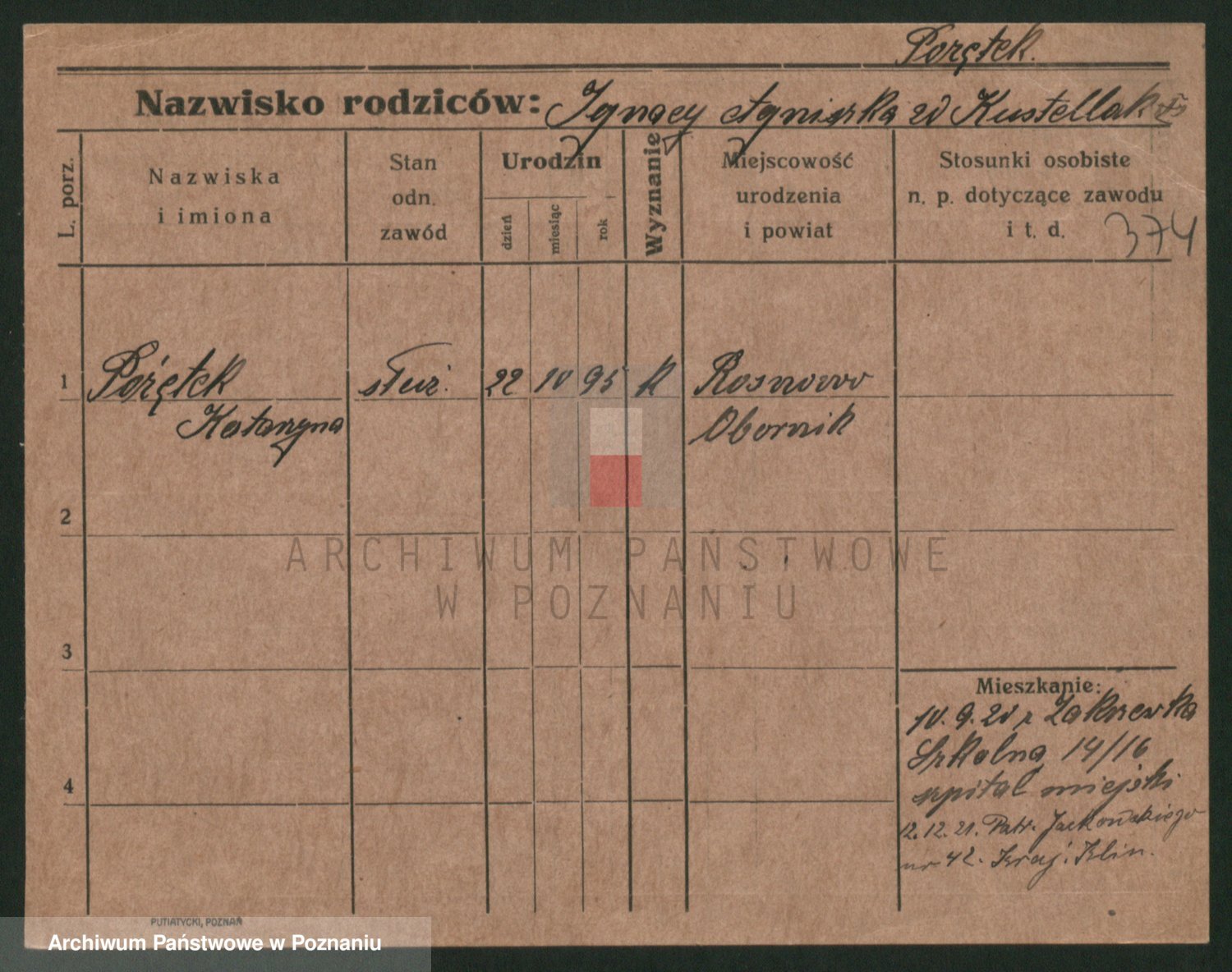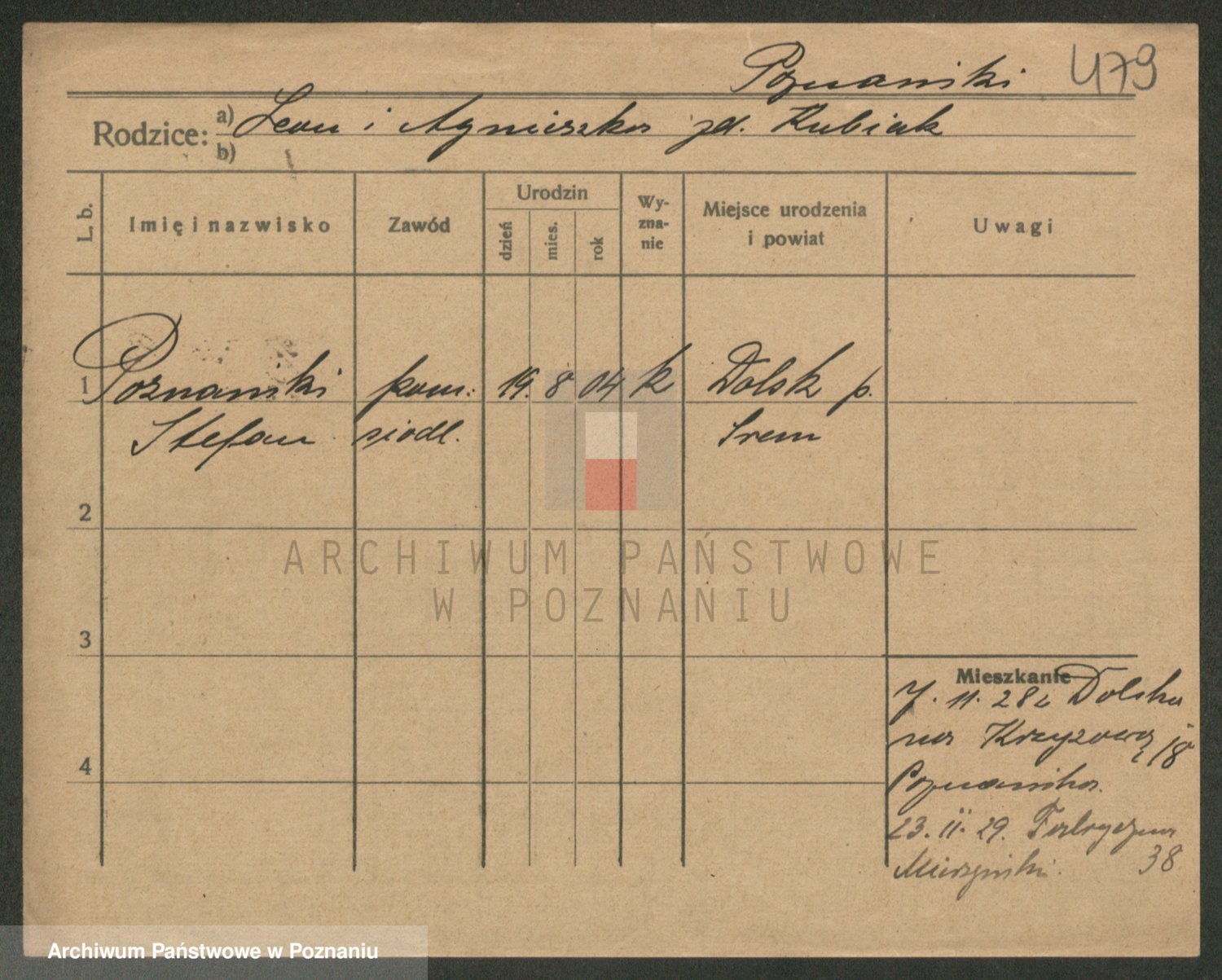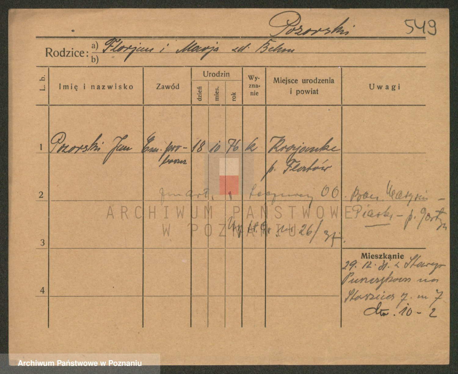 Podgląd karty osobowej dostępny jest po kliknięciu na nazwisko lub ikonkę karty. Można dokonywać powiększenia (ikony na górze) lub przechodzić między kolejnymi skanami (strzałki po bokach).