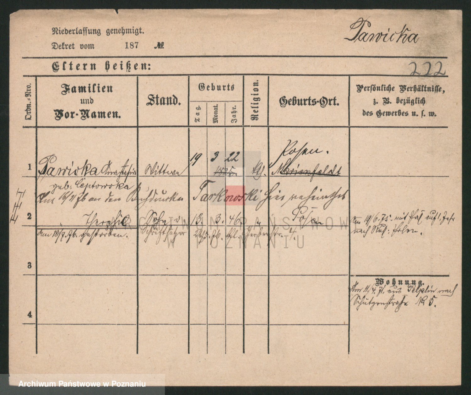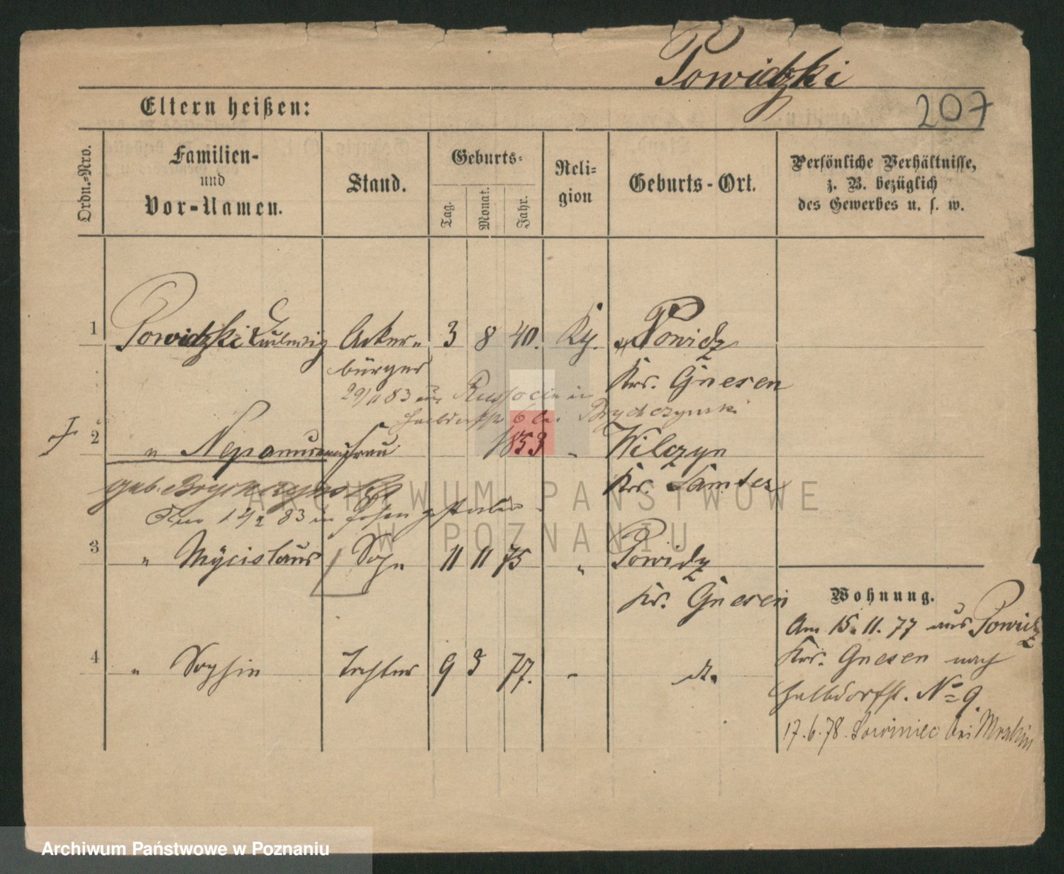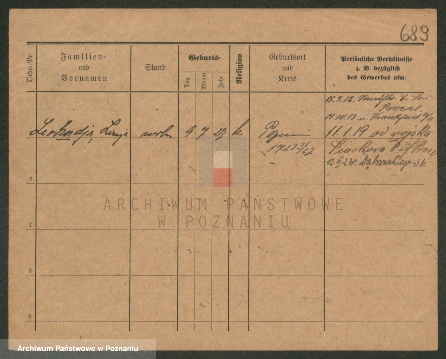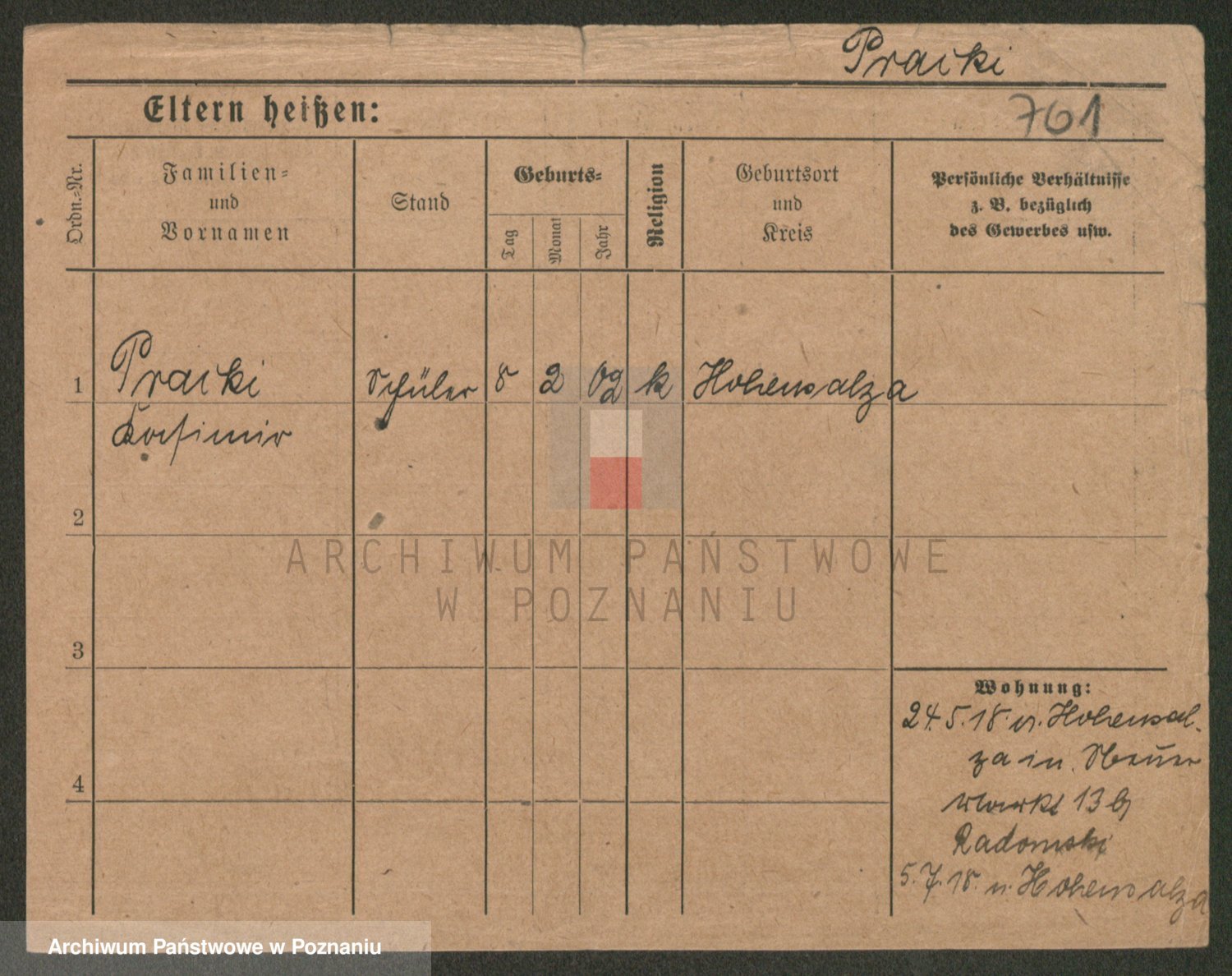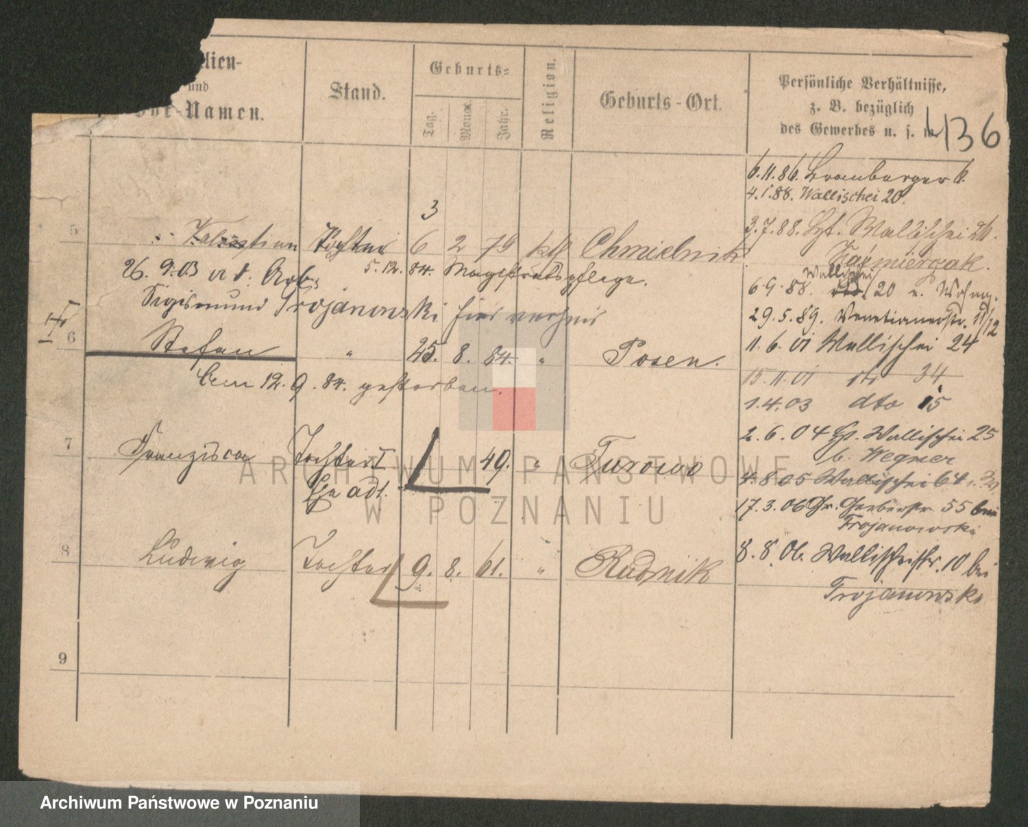 Podgląd karty osobowej dostępny jest po kliknięciu na nazwisko lub ikonkę karty. Można dokonywać powiększenia (ikony na górze) lub przechodzić między kolejnymi skanami (strzałki po bokach).