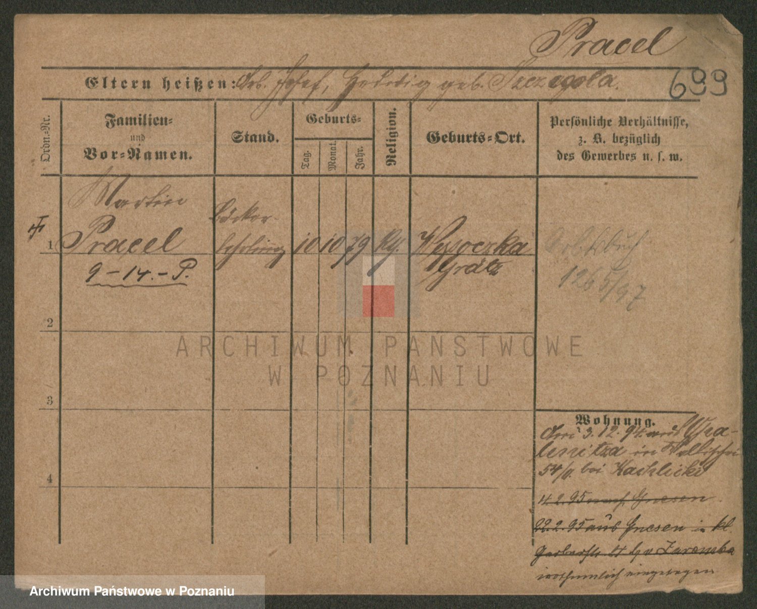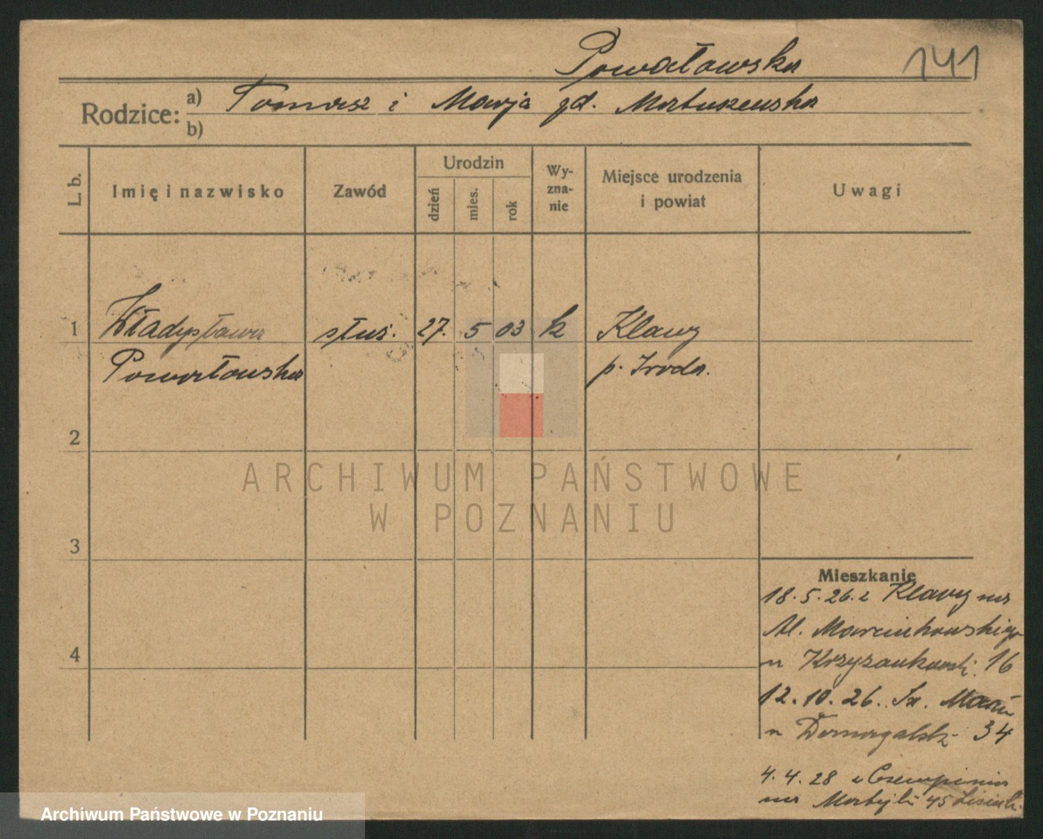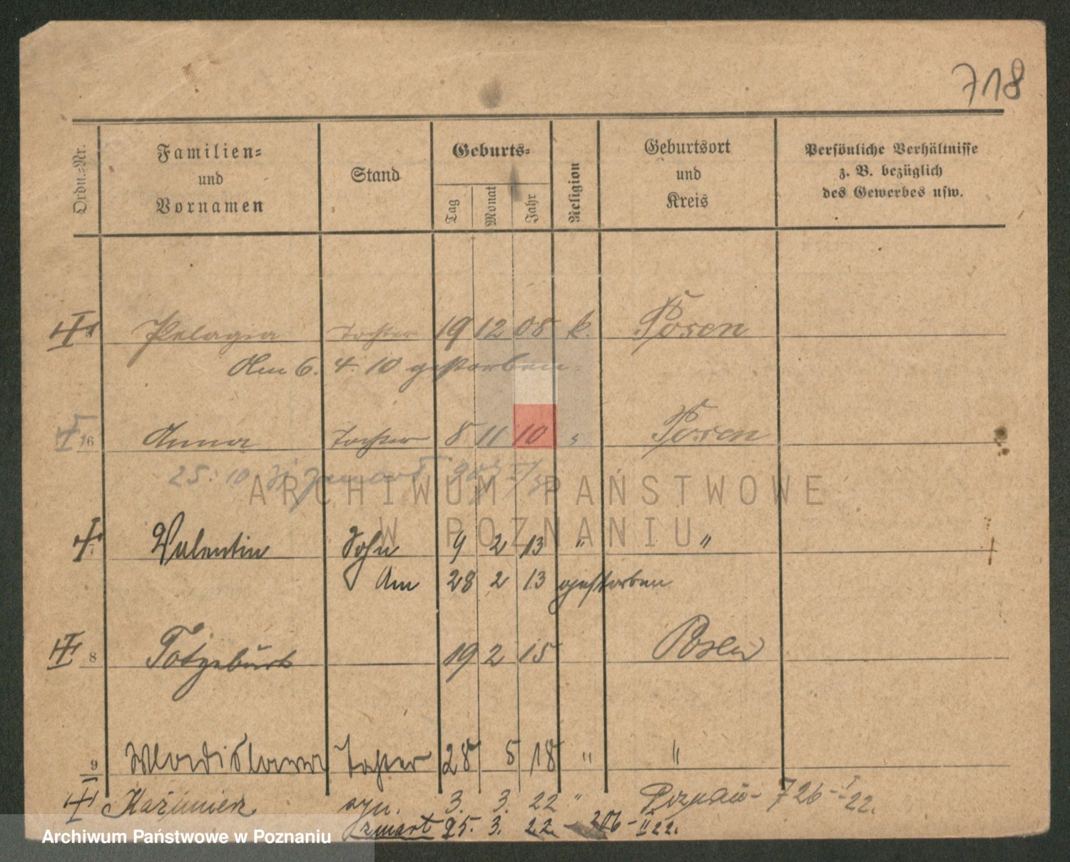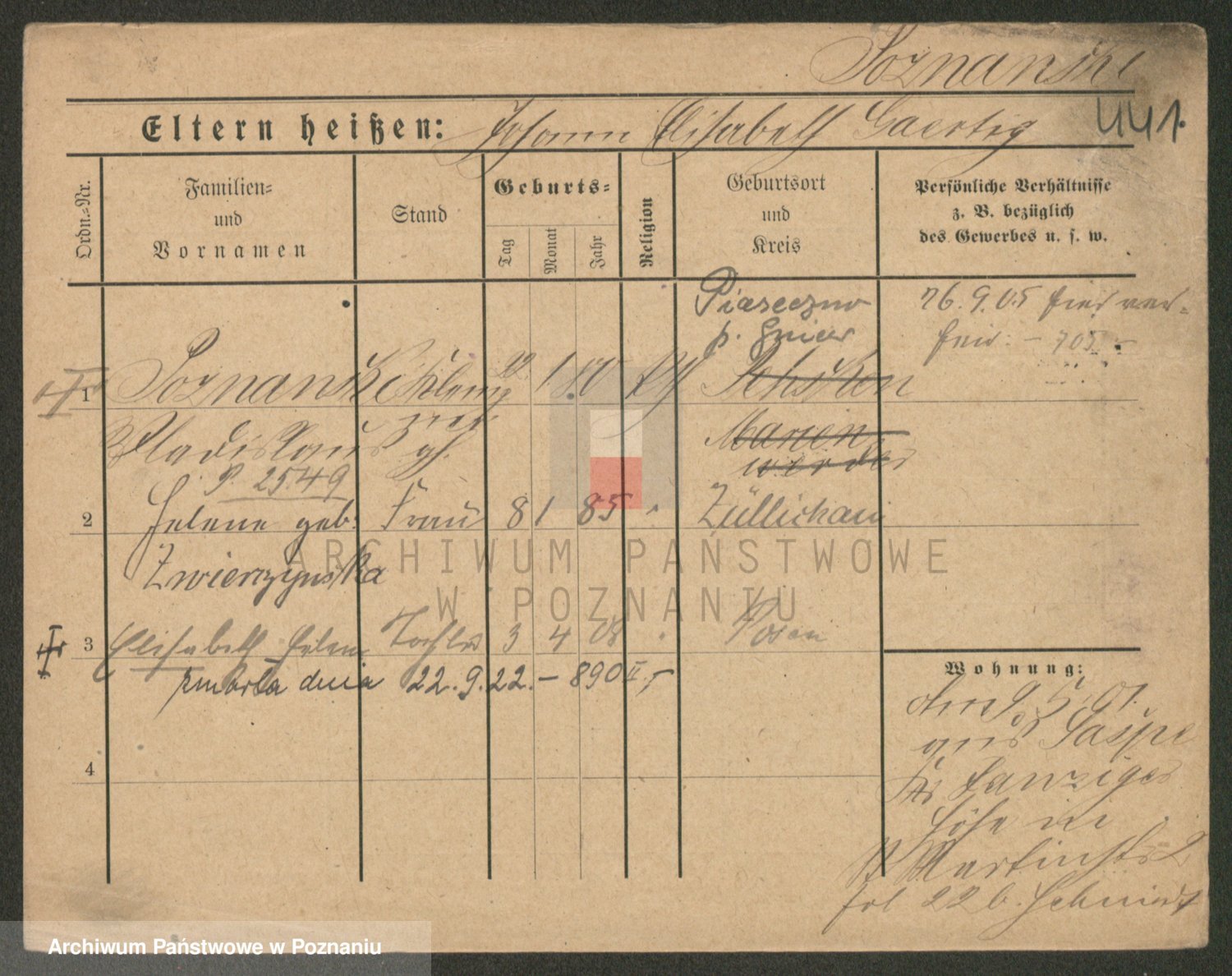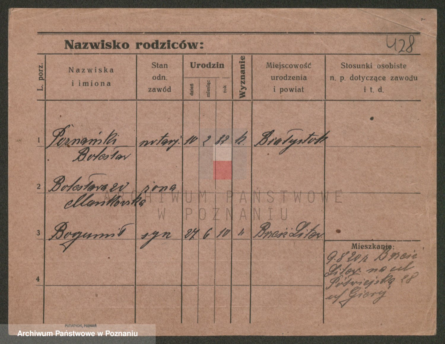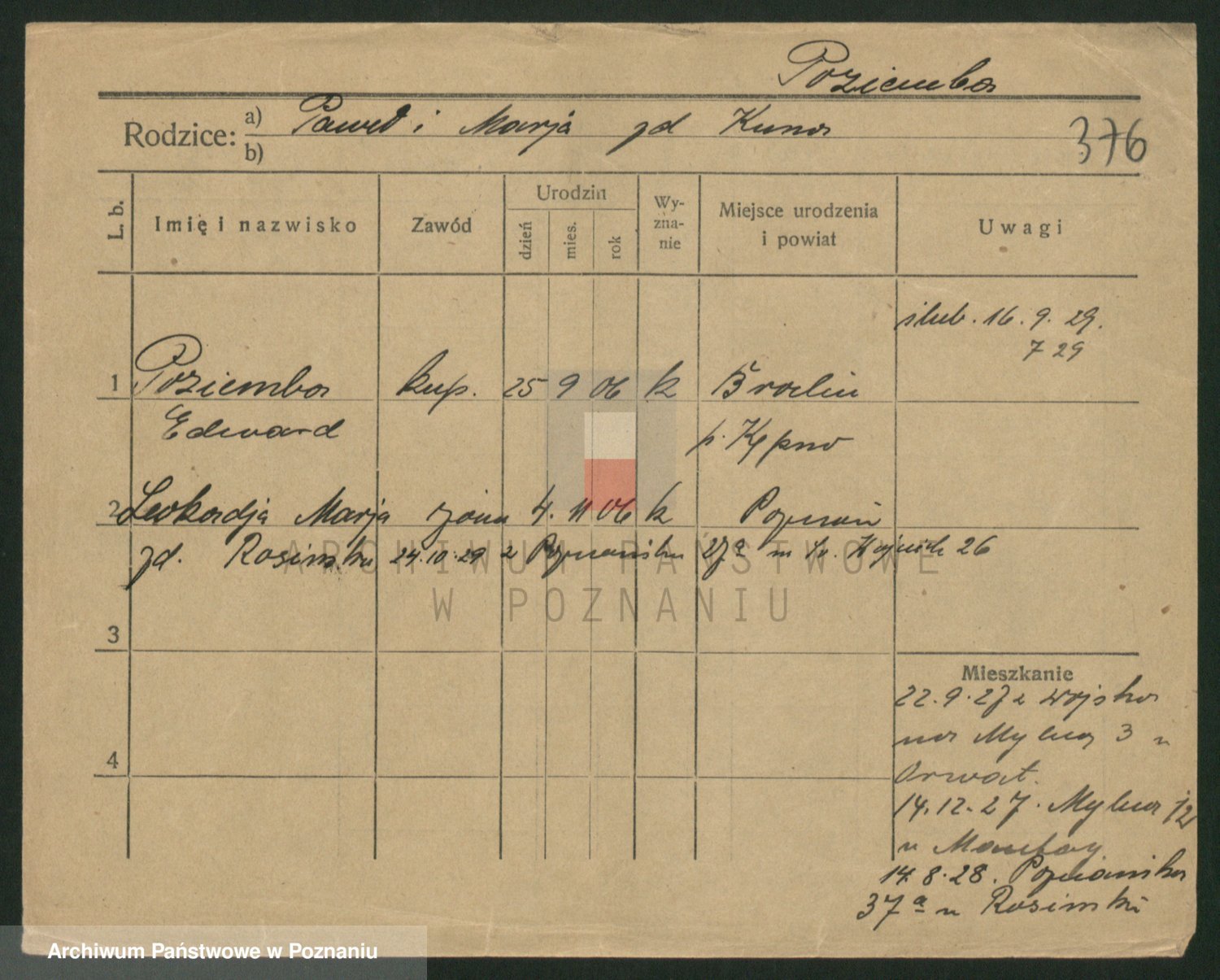 Podgląd karty osobowej dostępny jest po kliknięciu na nazwisko lub ikonkę karty. Można dokonywać powiększenia (ikony na górze) lub przechodzić między kolejnymi skanami (strzałki po bokach).
